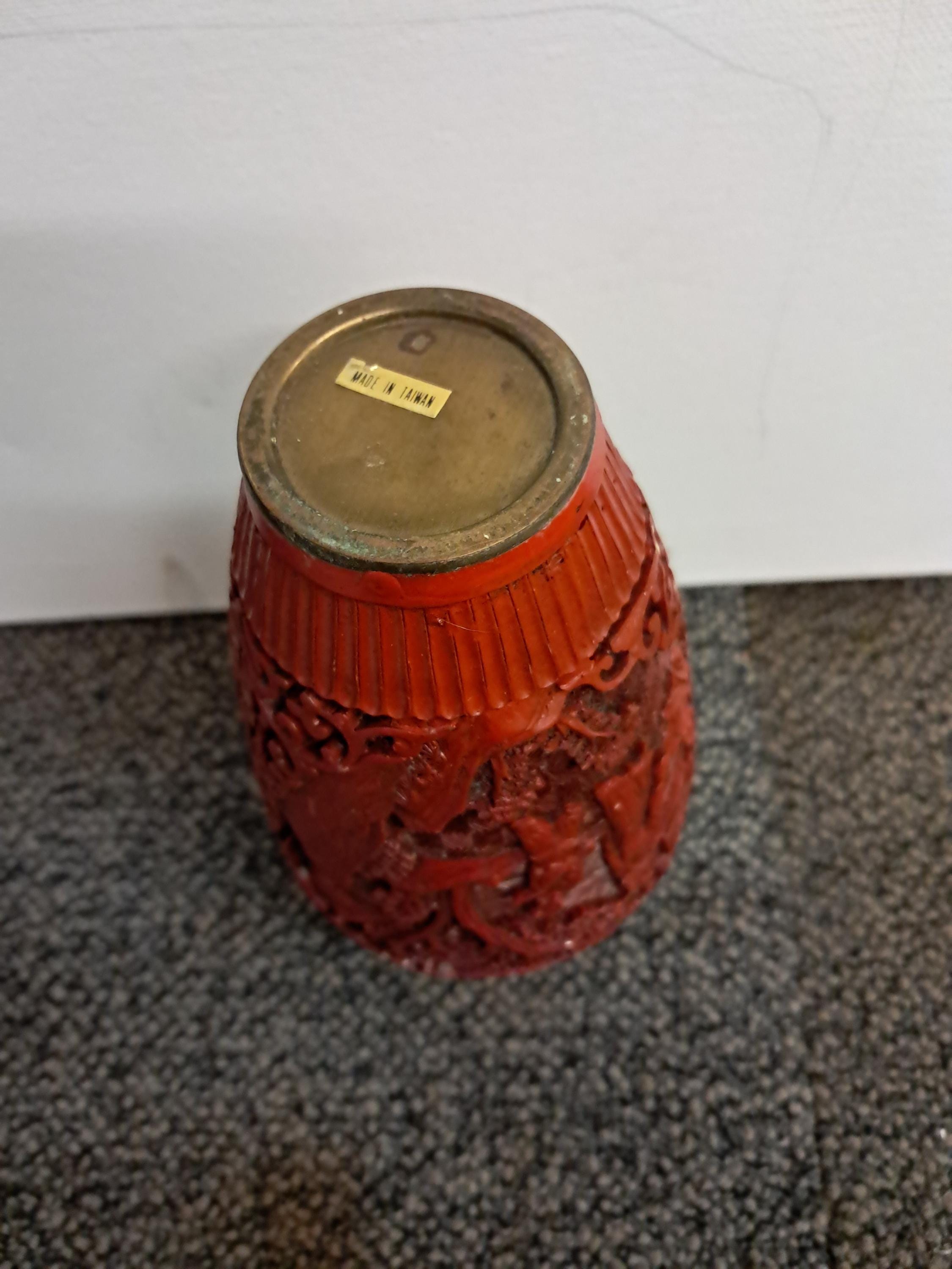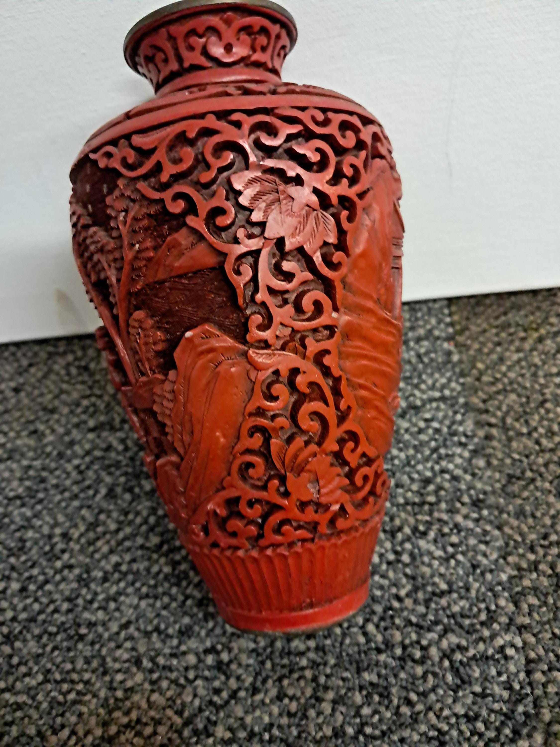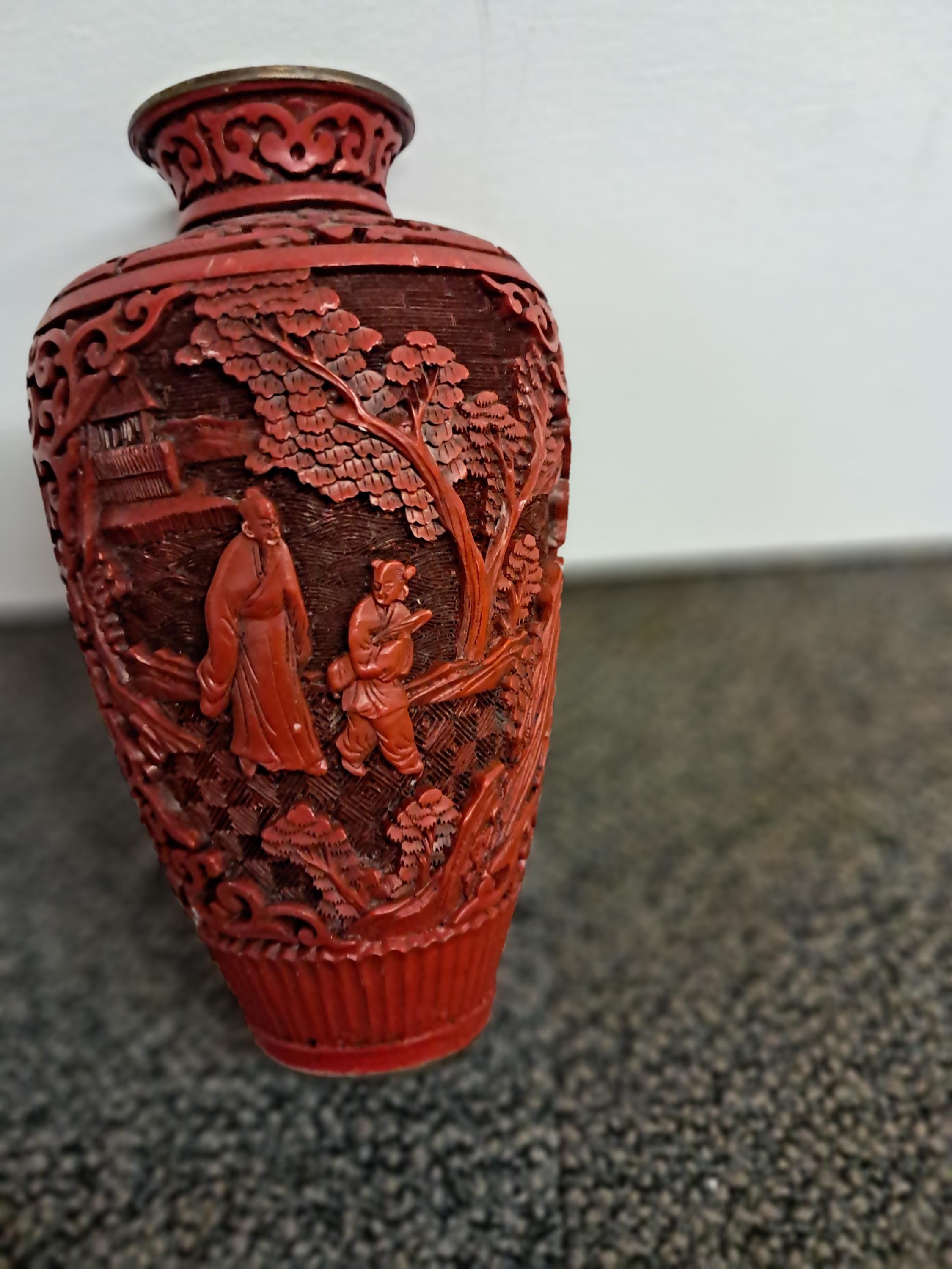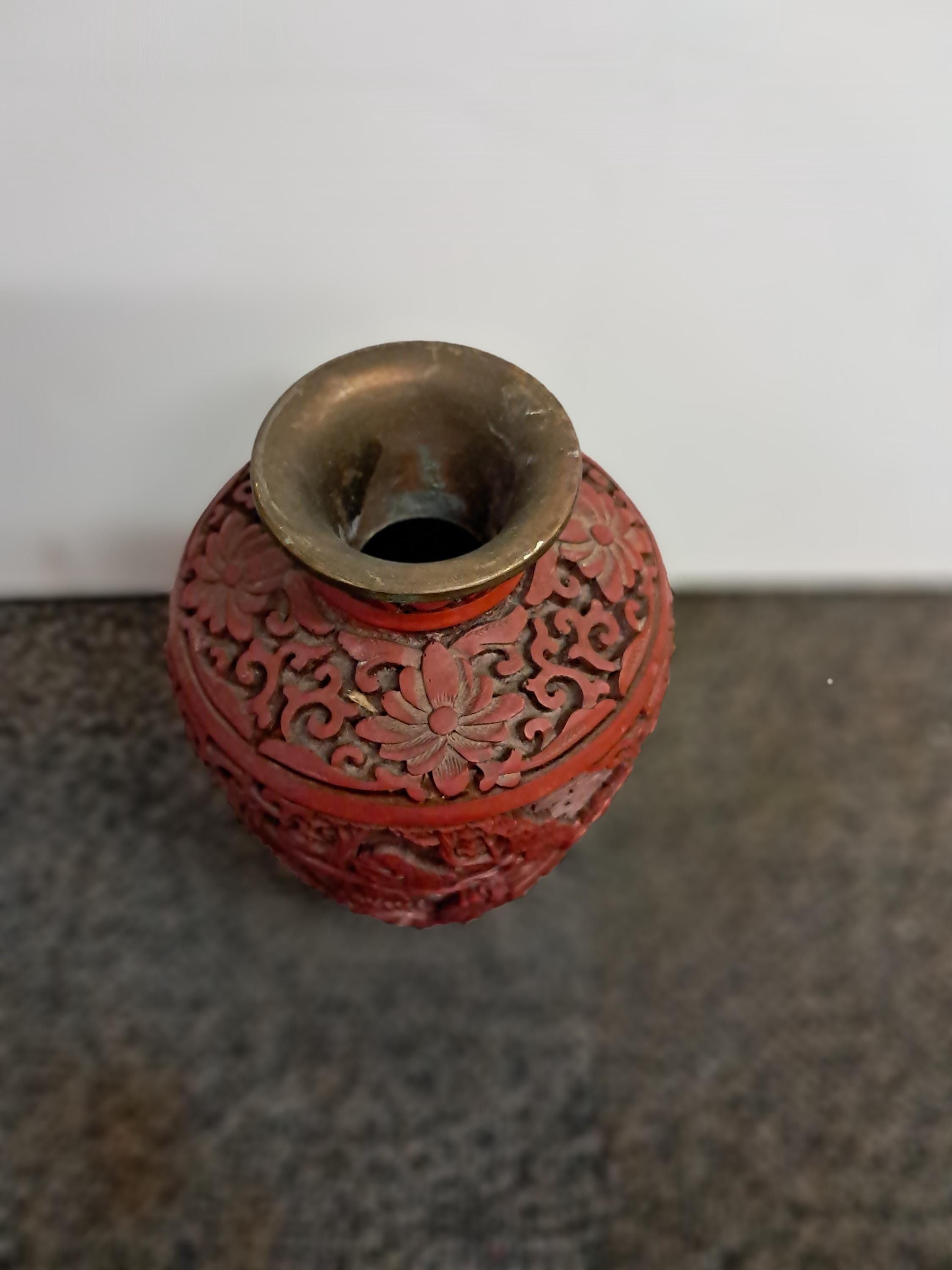 Antique Red Chinese Cinnabar Relief Lacquer Gourd Shaped Vase .Replica