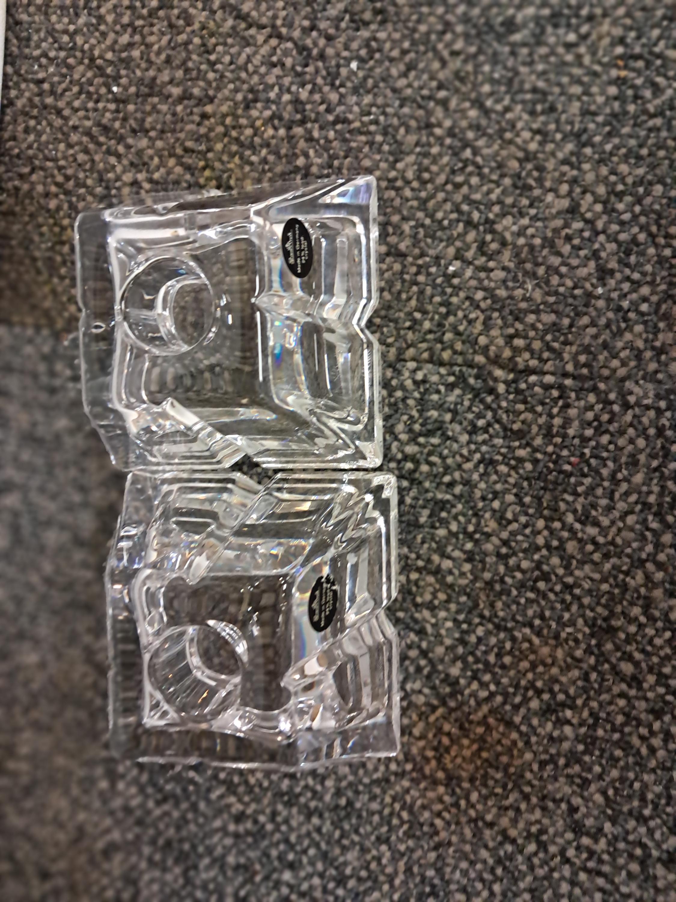Rosenthal 24% Lead Crystal Candle HolderTapered Glass Multi function Candle Holders SetCandle can be placed at either side2.5" tall x 3.25" wide x 3.25" deepIn excellent never used condition