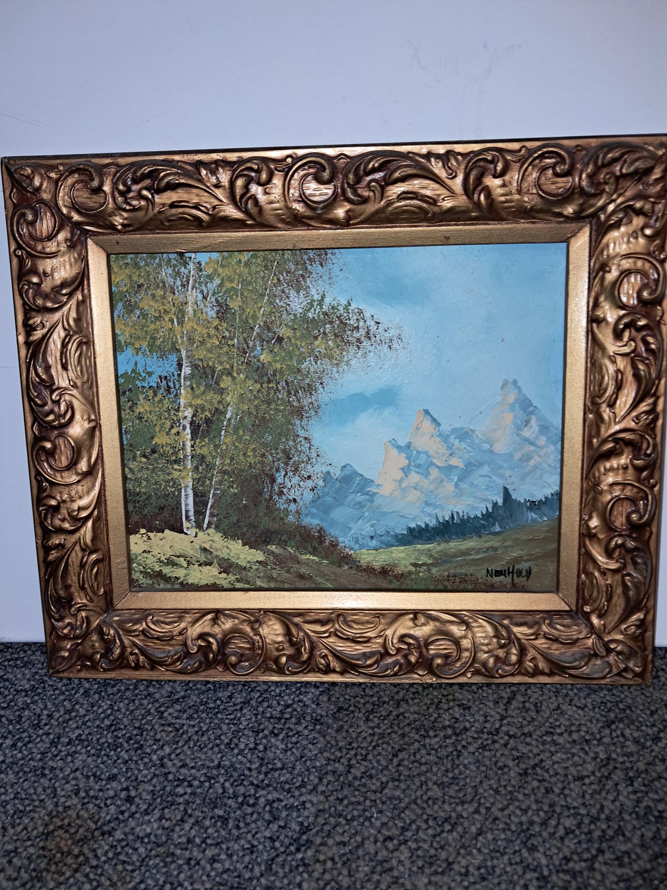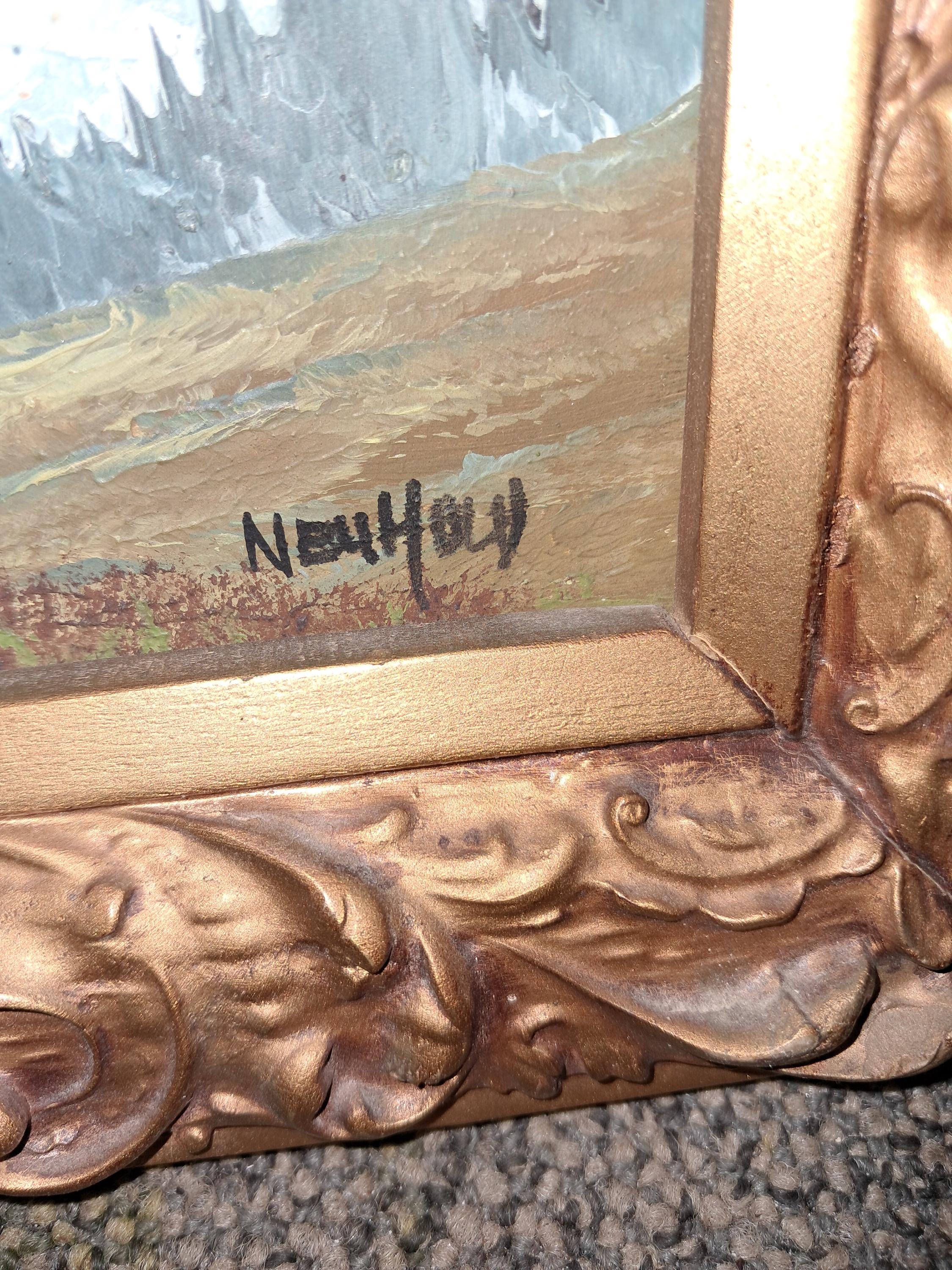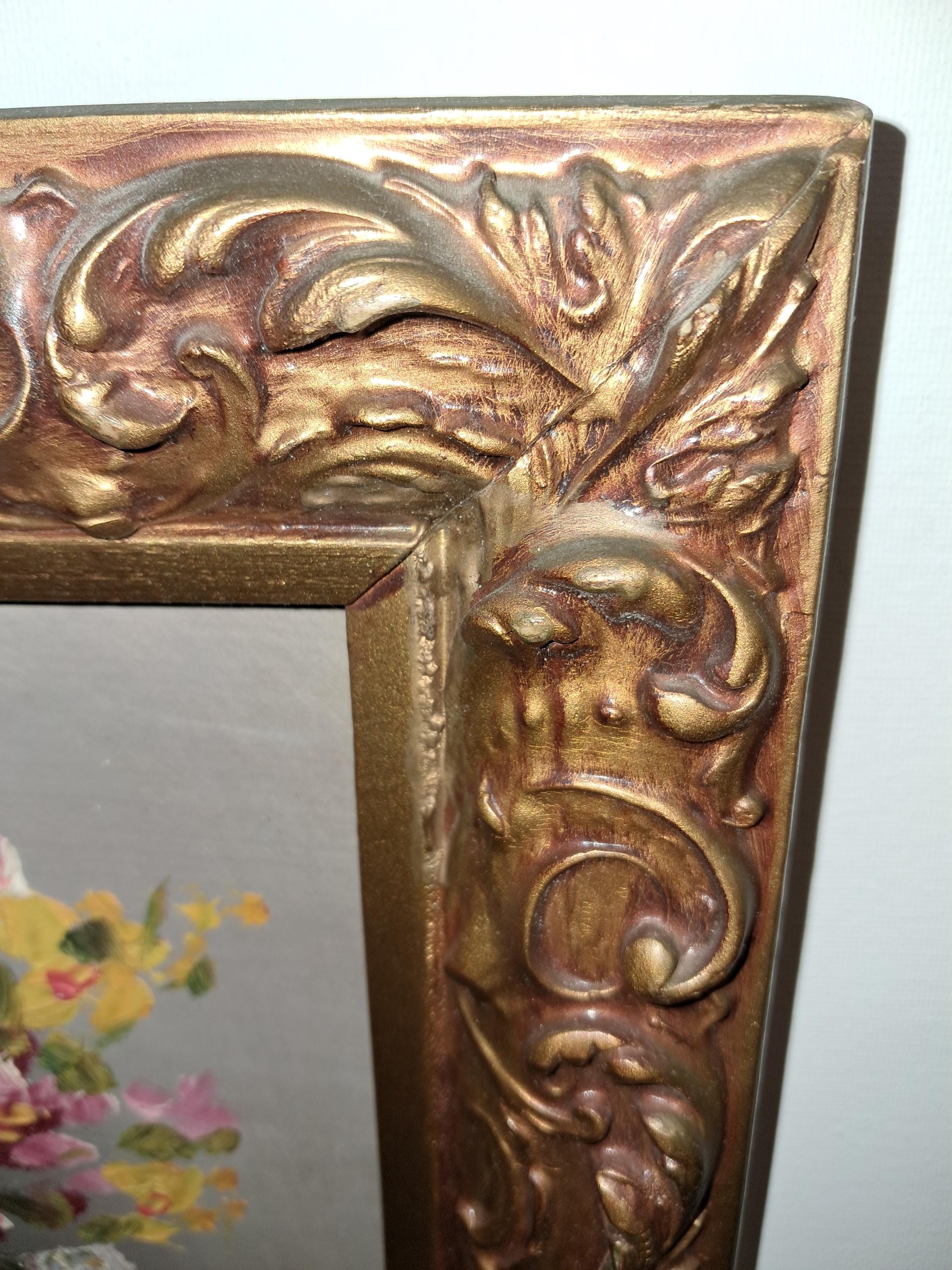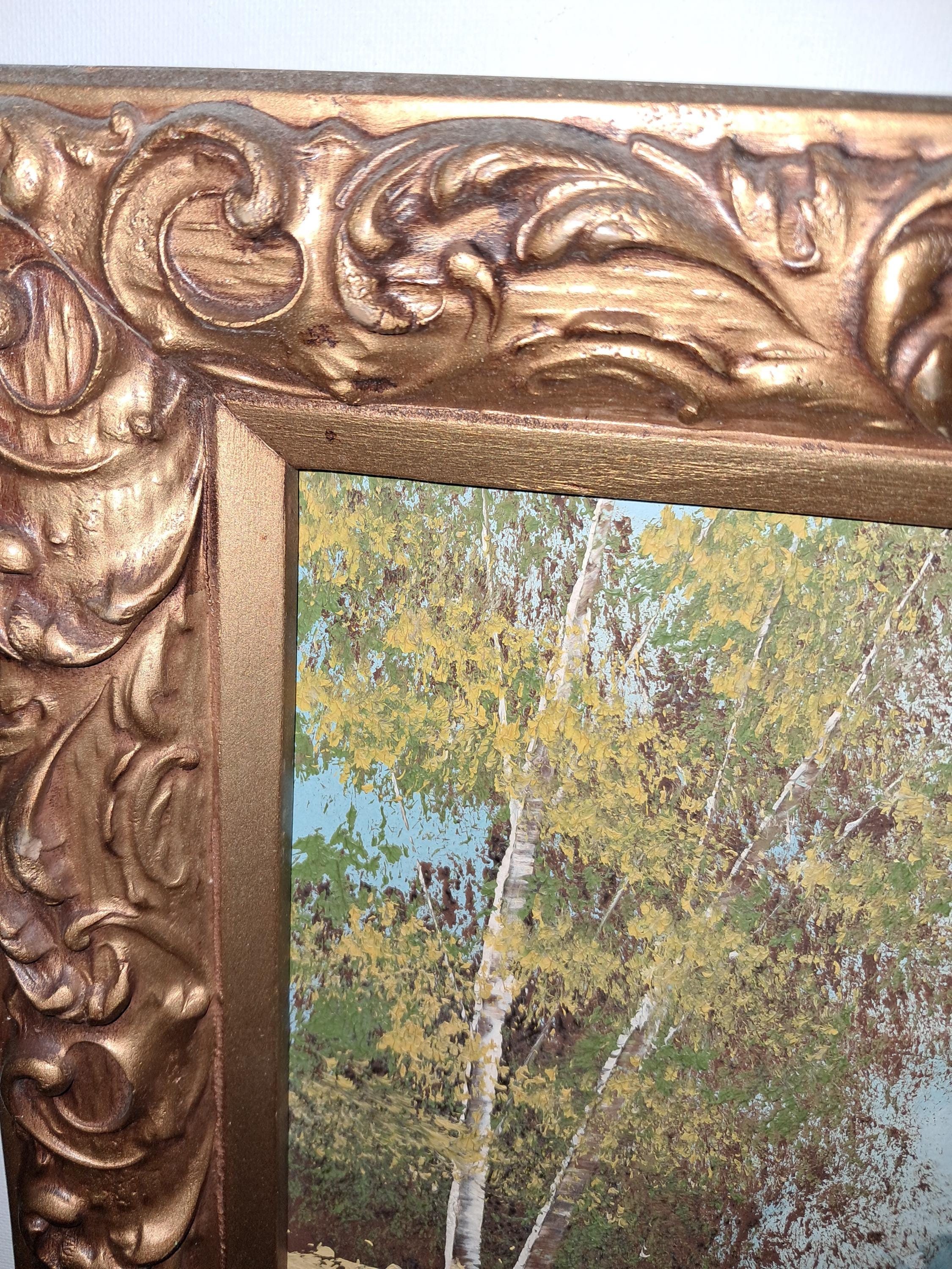 Bouquet of Flowers in Vase And Fall Landscape Oil Painting on Board