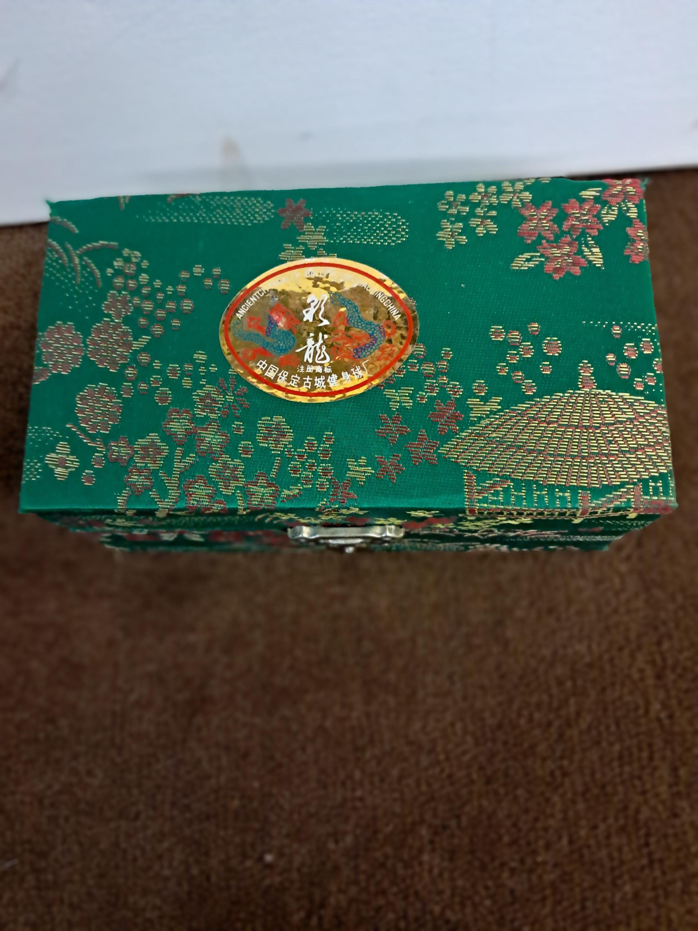 1 3/4" Diameter, In Green Silk Covered Box w/ Pamphlet and Tag