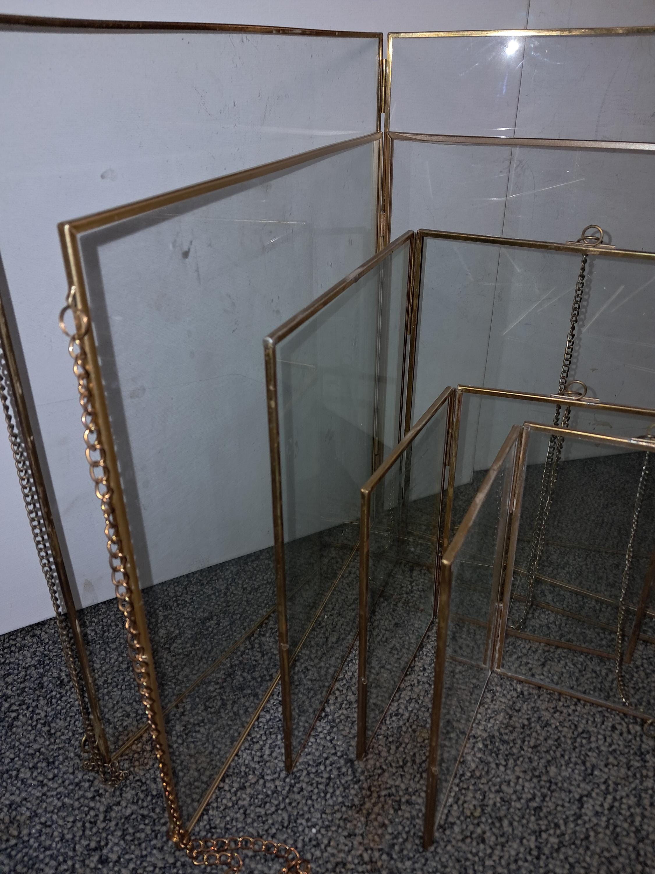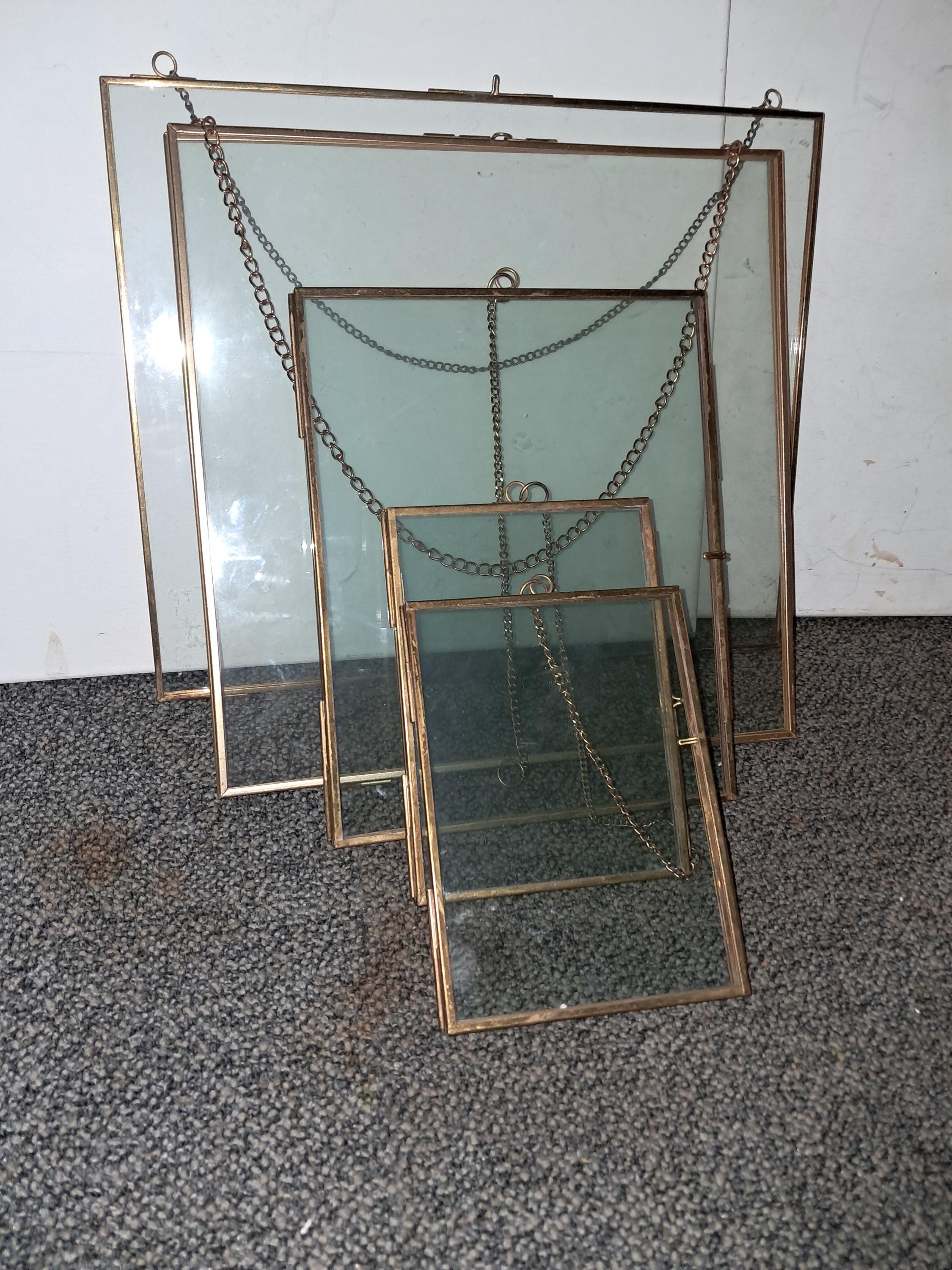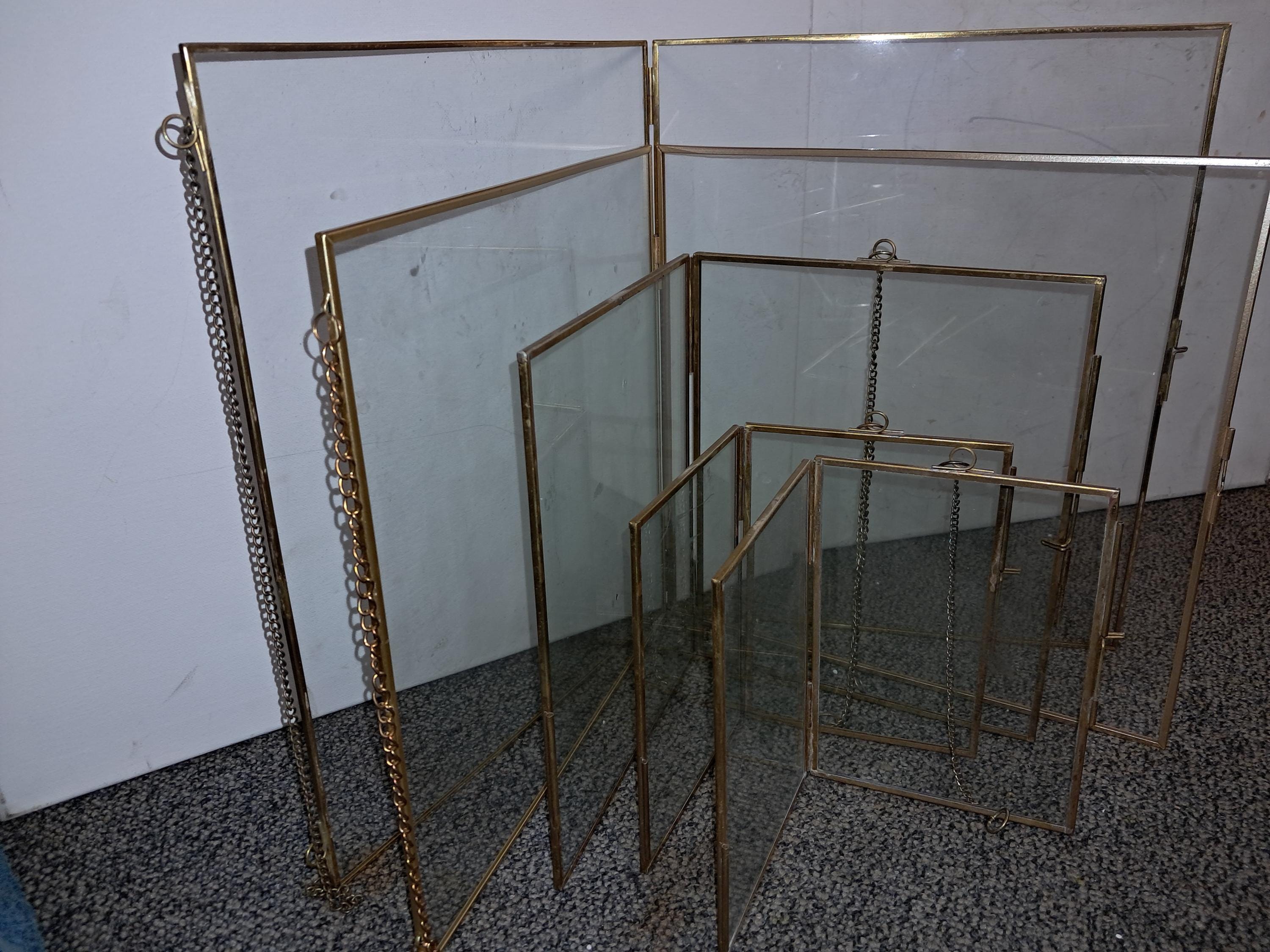 Five Double Sided Glass Frames with Brass /Gold Wall Hanging For Pictures