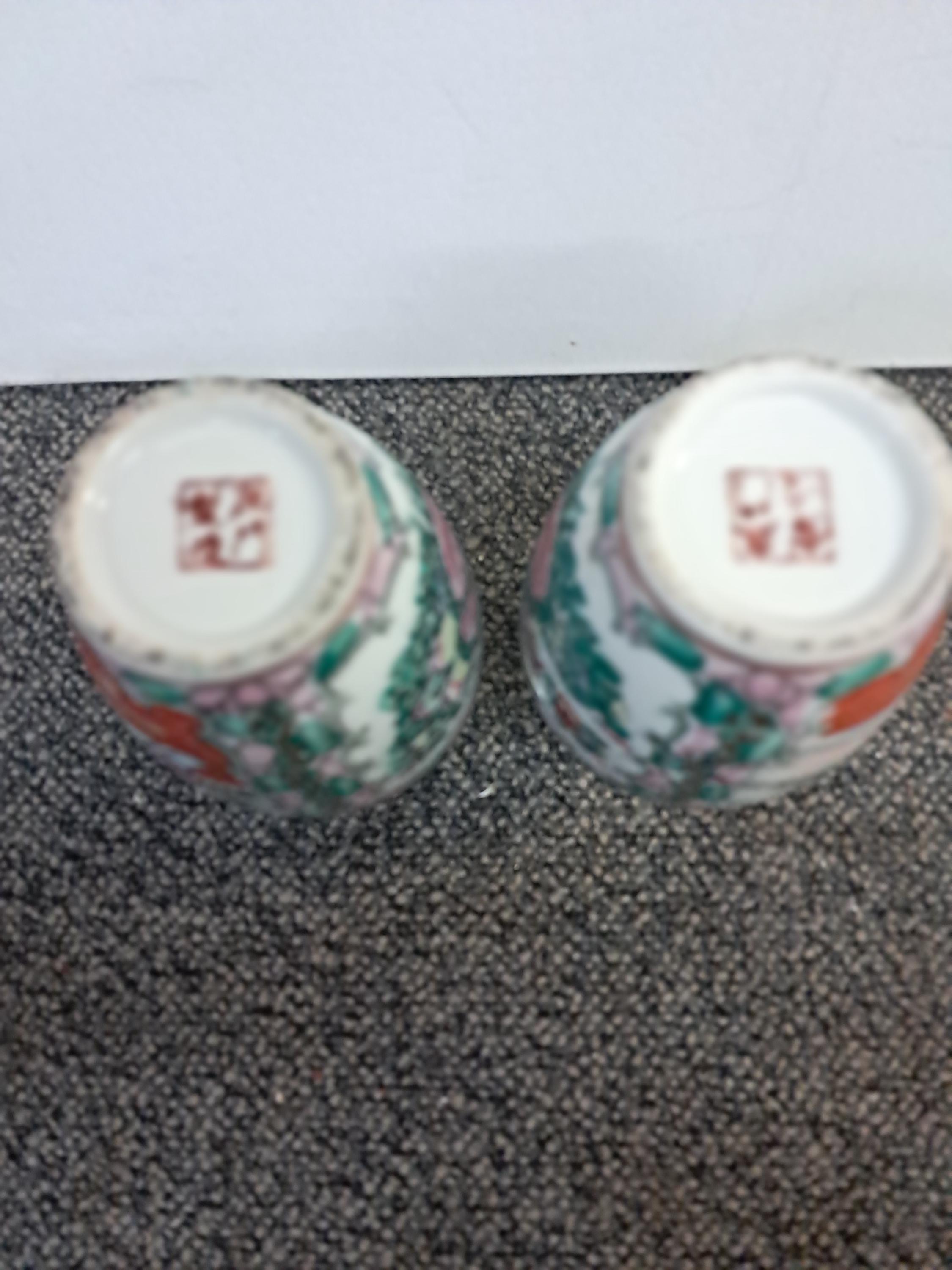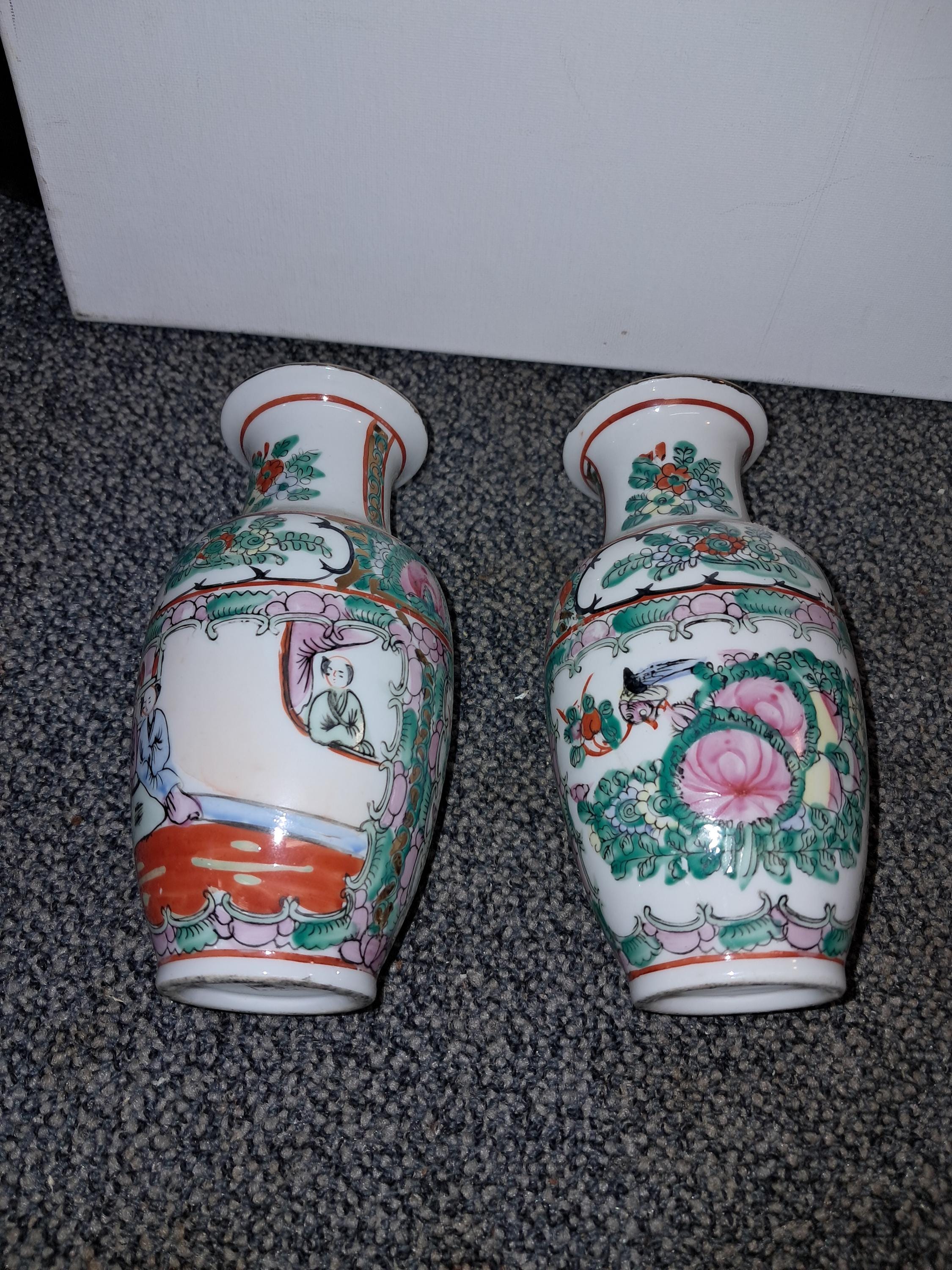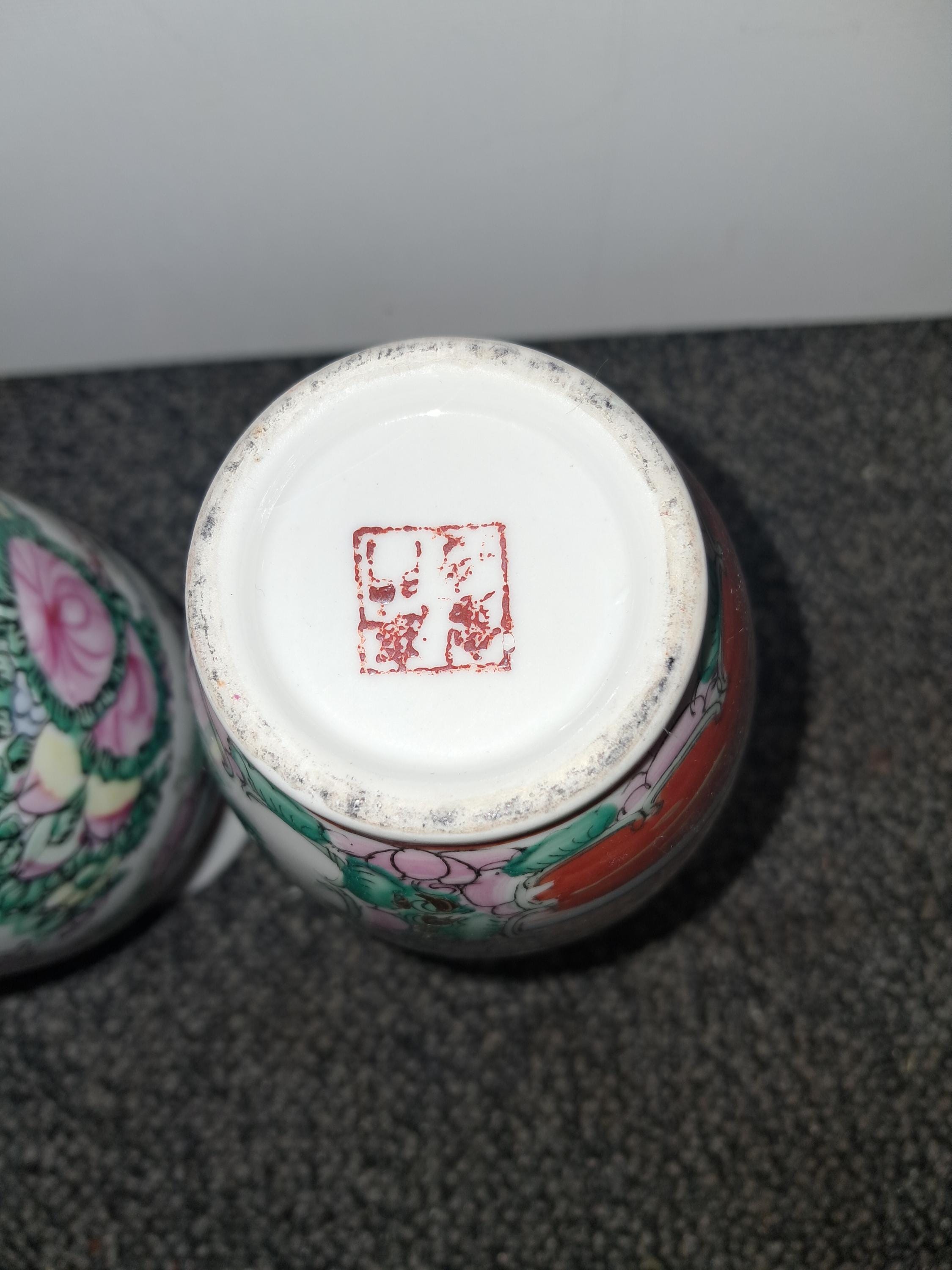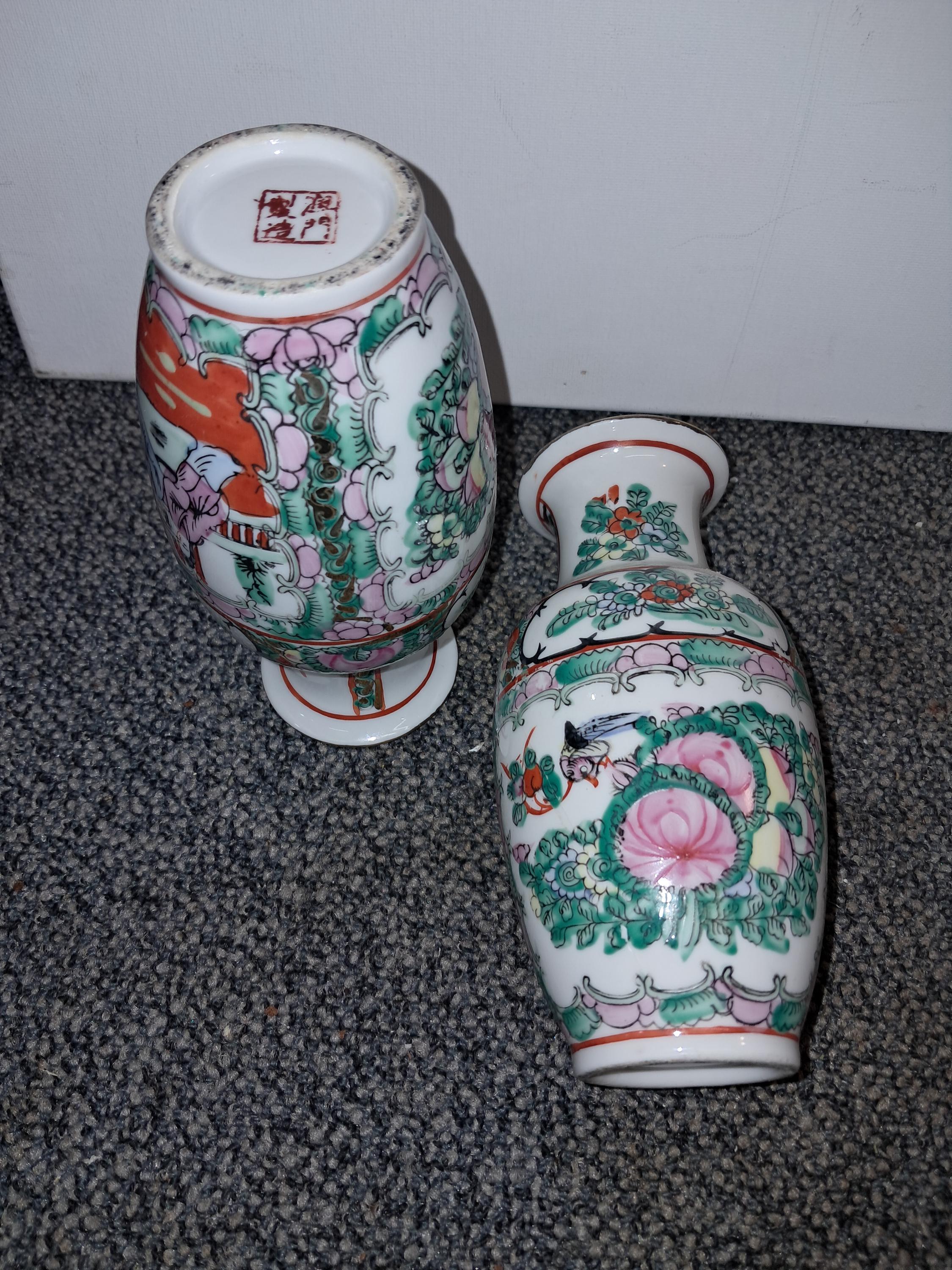 Two Vintage Famille Rose Chinese Porcelain Vase with Floral Design, Pink Yellow Hand Painted