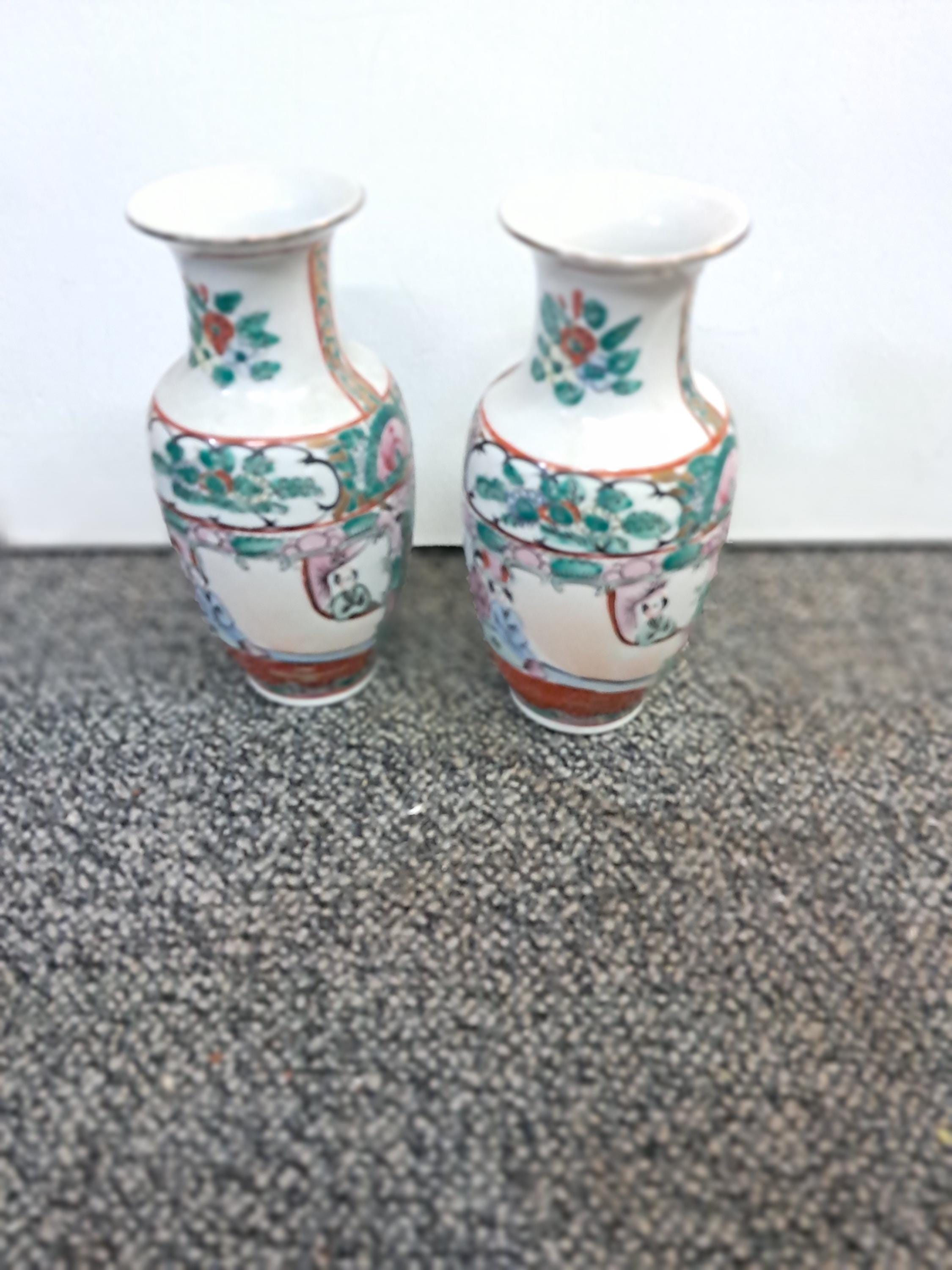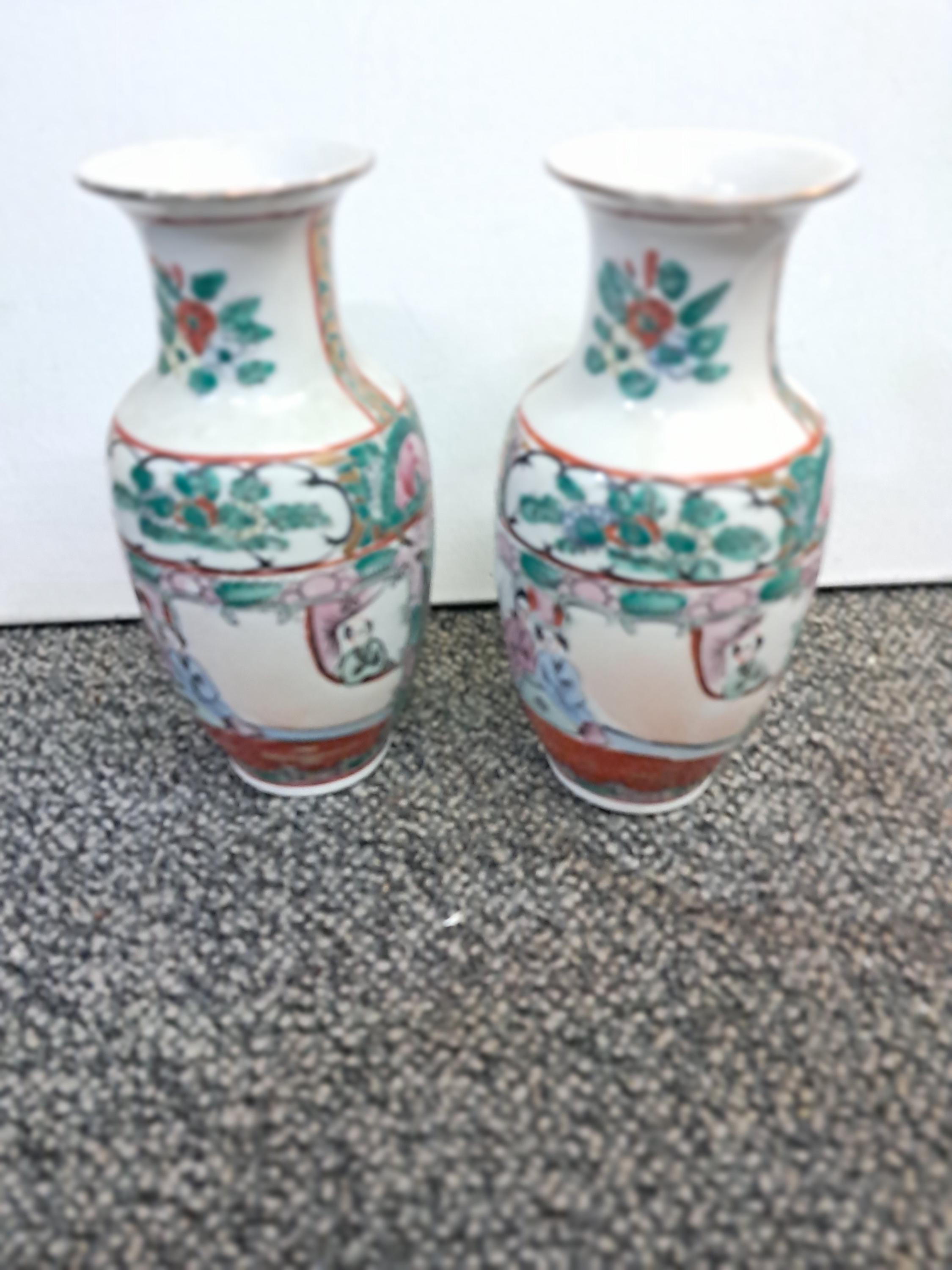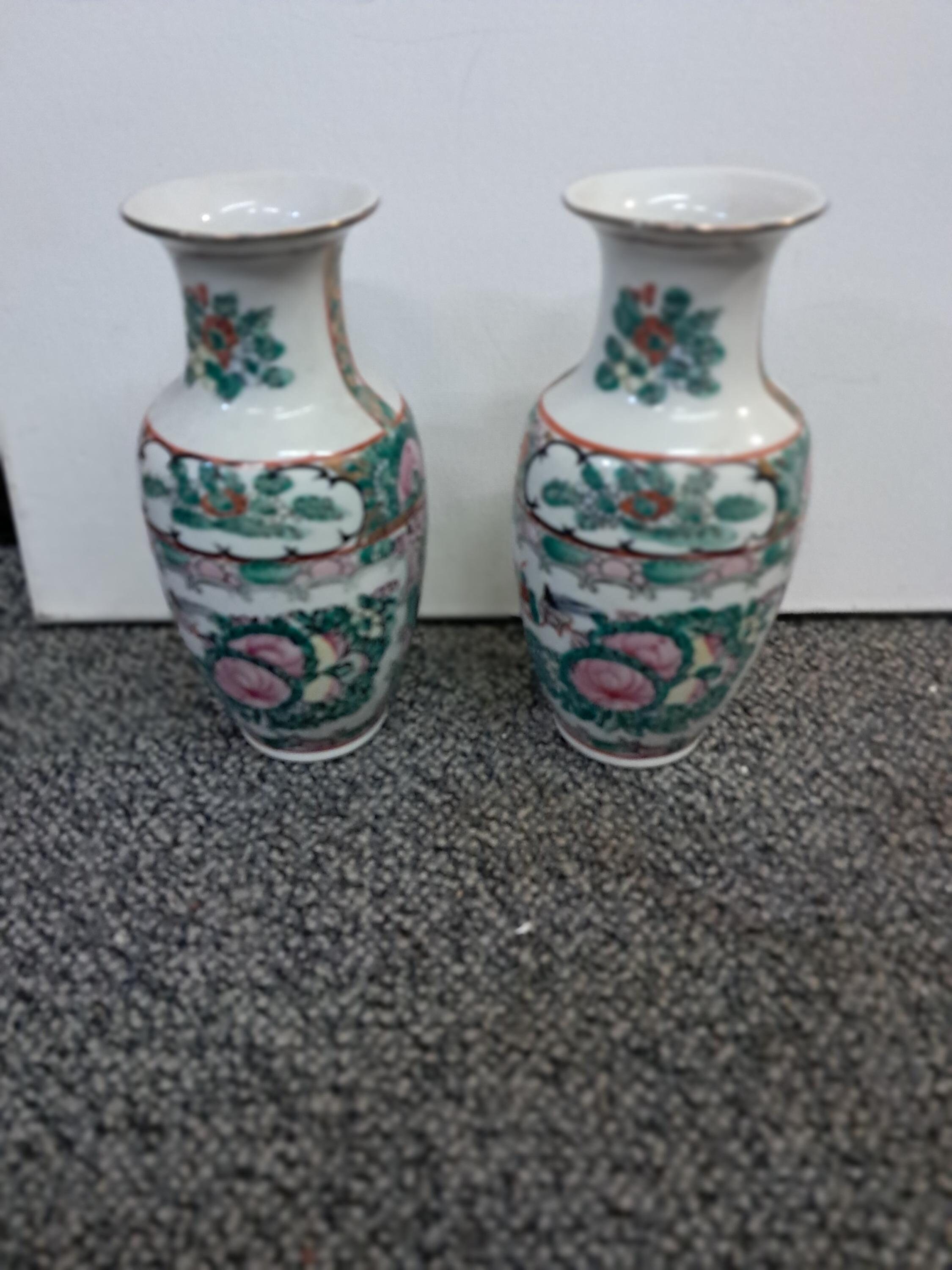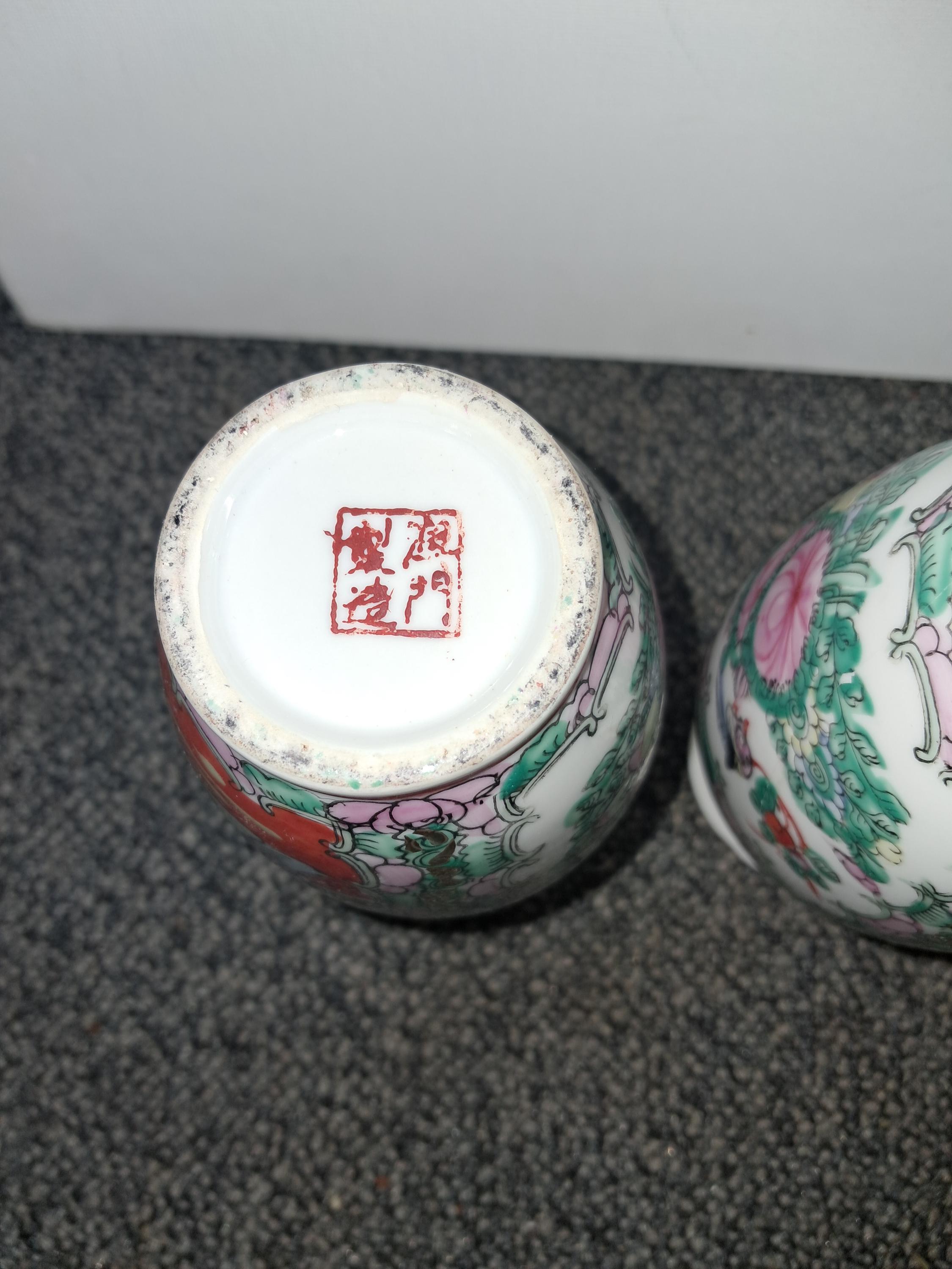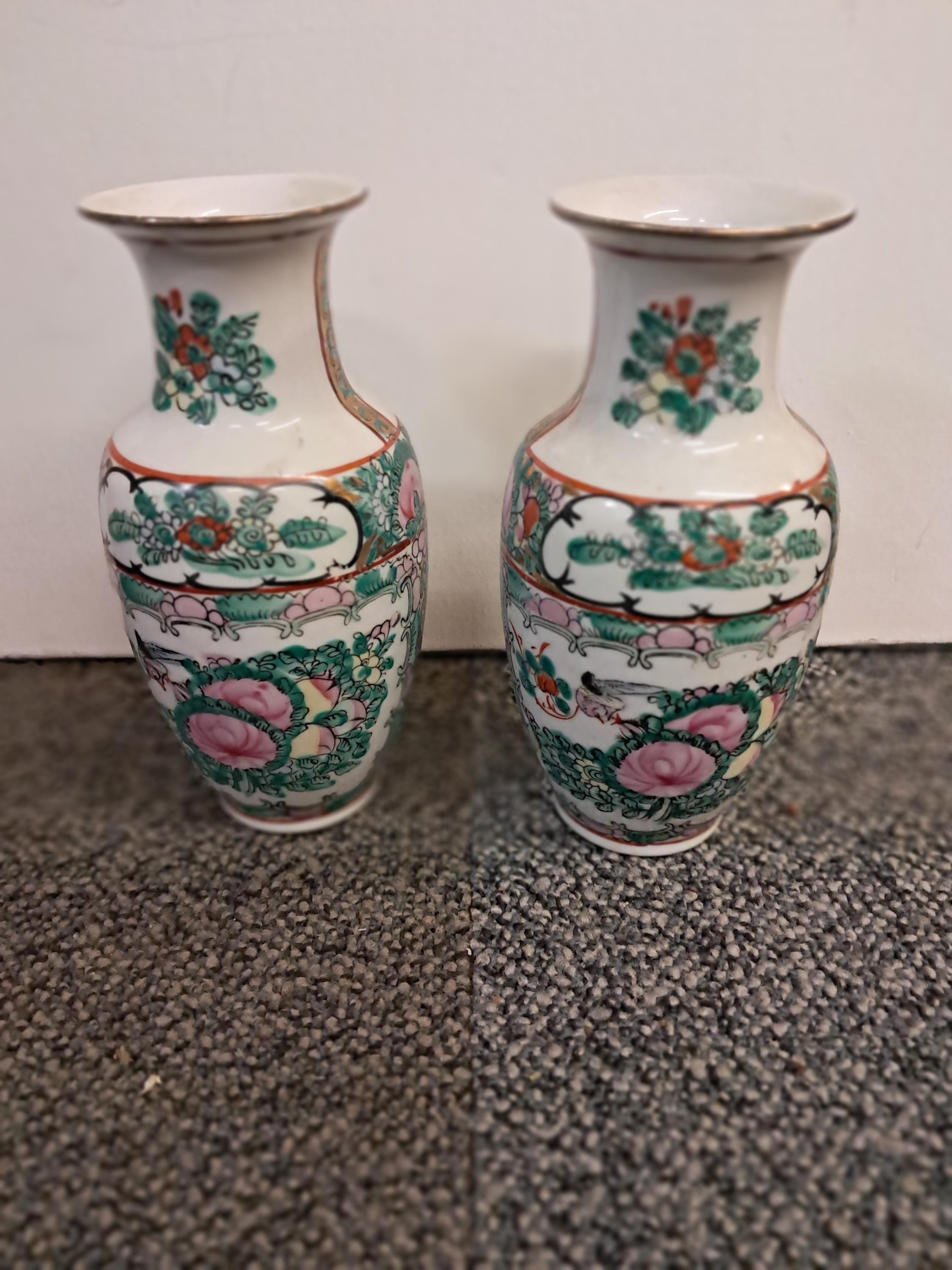 Two Vintage Famille Rose Chinese Porcelain Vase with Floral Design, Pink Yellow Hand Painted