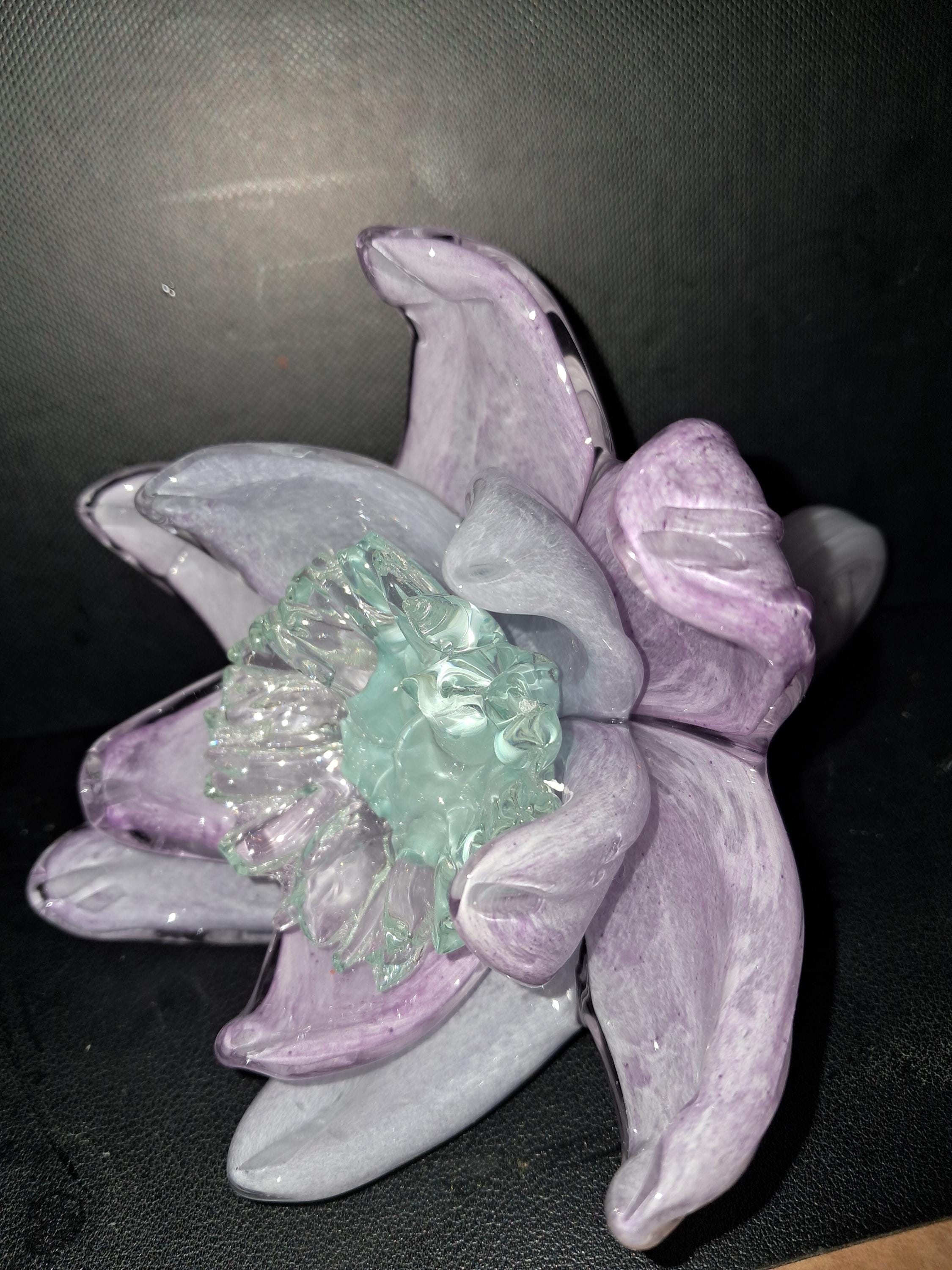 Handmade Purple Artichoke Glass Flower Art Deco Figurine Made In ItalyEstate Sale findHandmade5.5" wide x 4.5" tall x 3.5" deepExcellent Condition. No damages