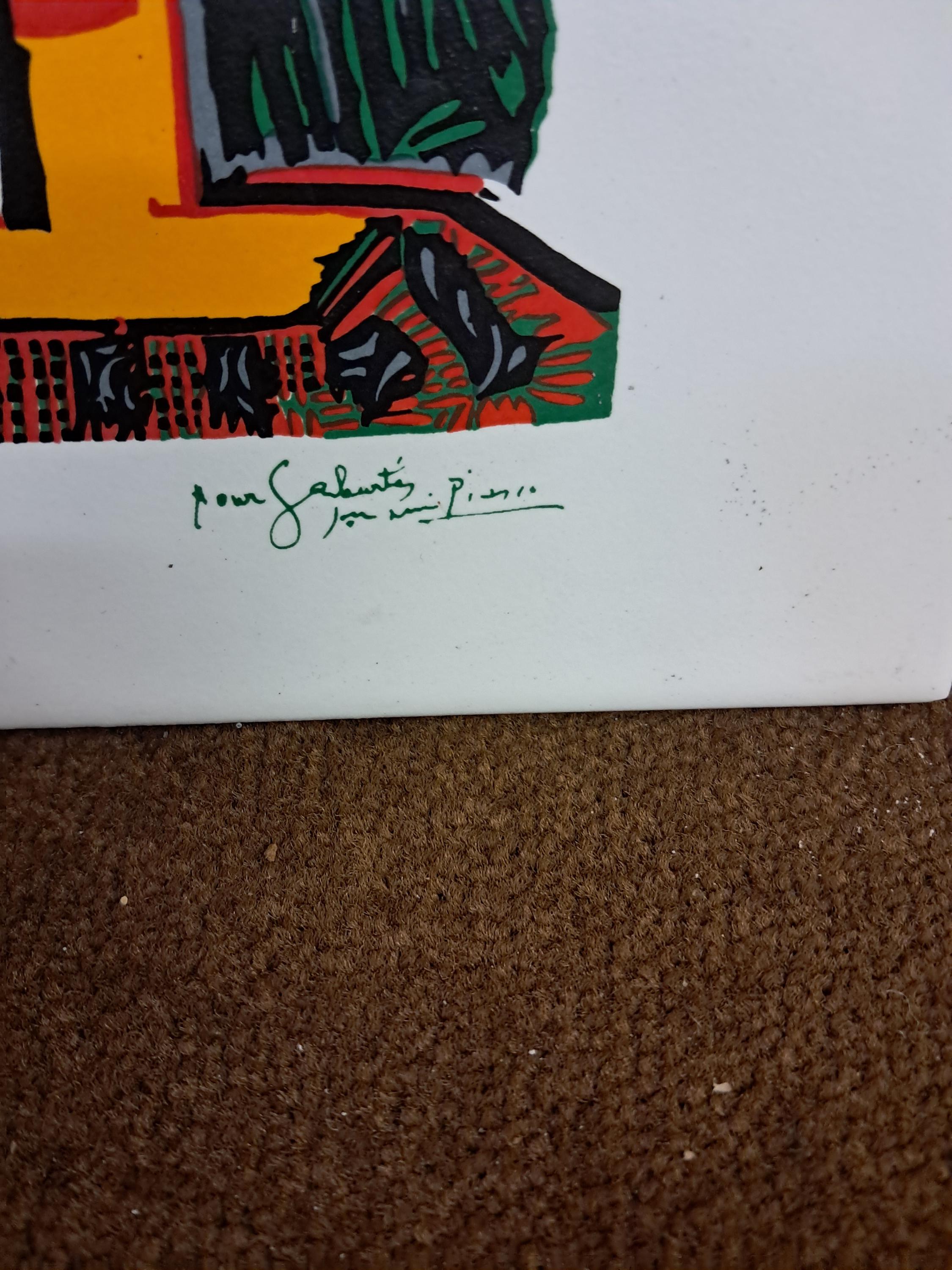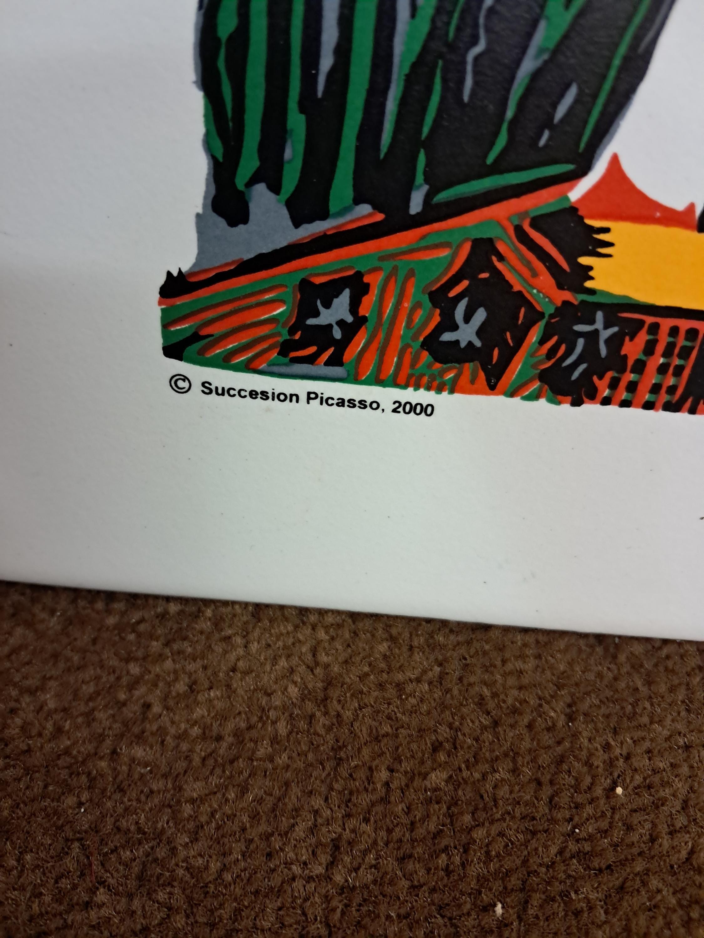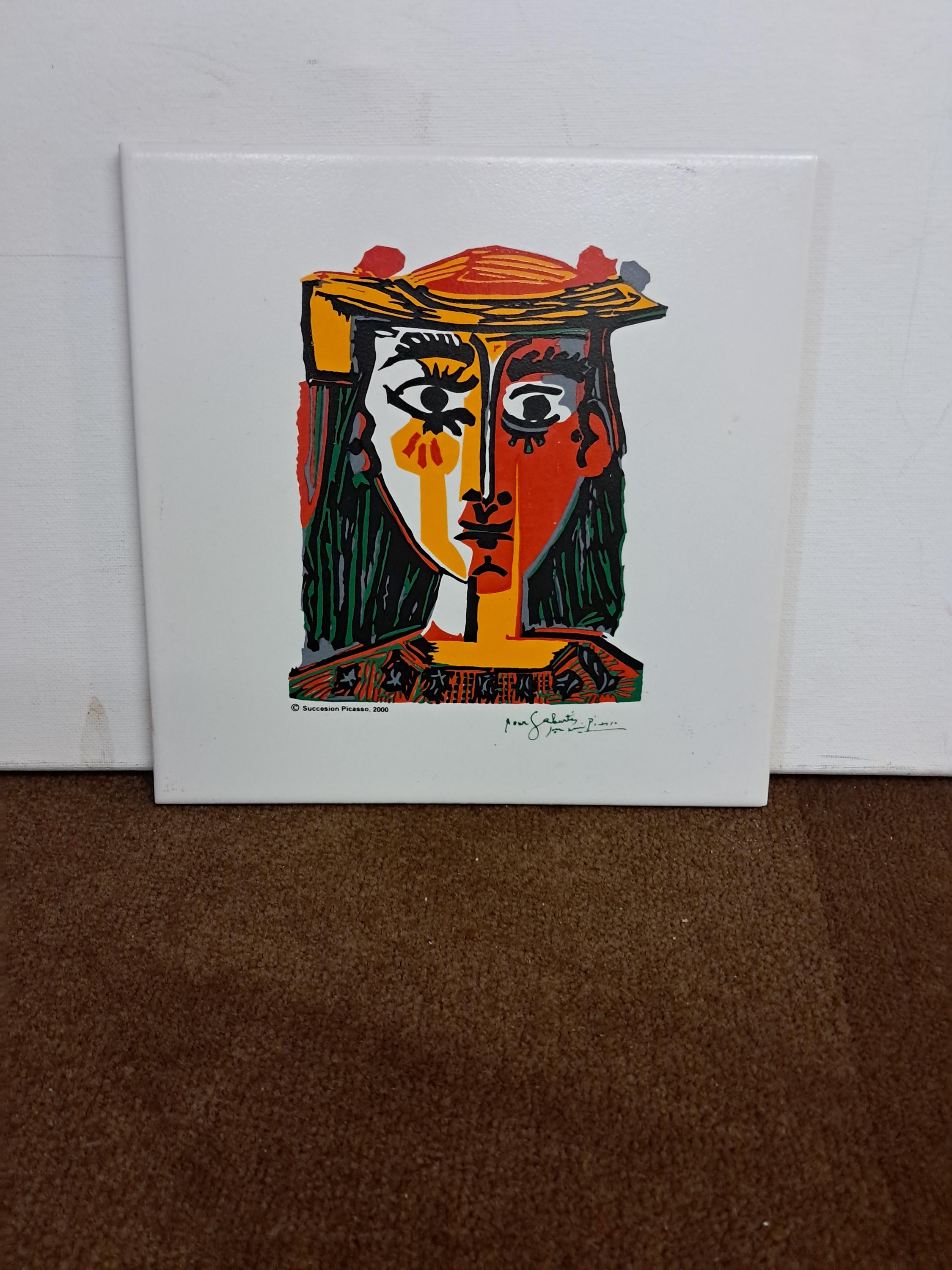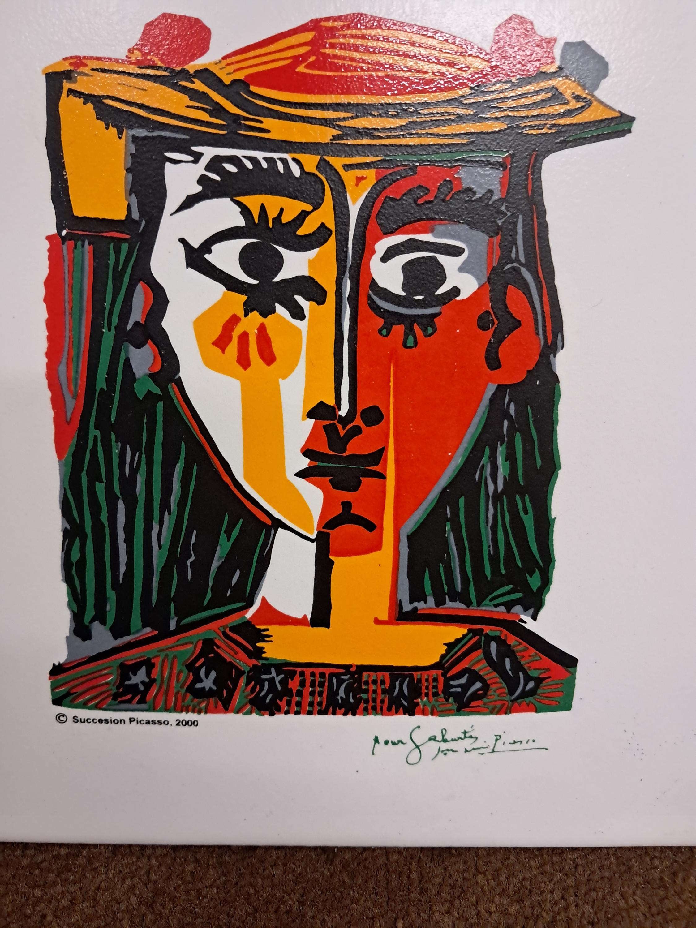 PICASO Woman in a Hat with Pompoms and a Printed Blouse, Circa 20008 x 8 x .25 Excellent Condition with no damages Printed on MOSAIC