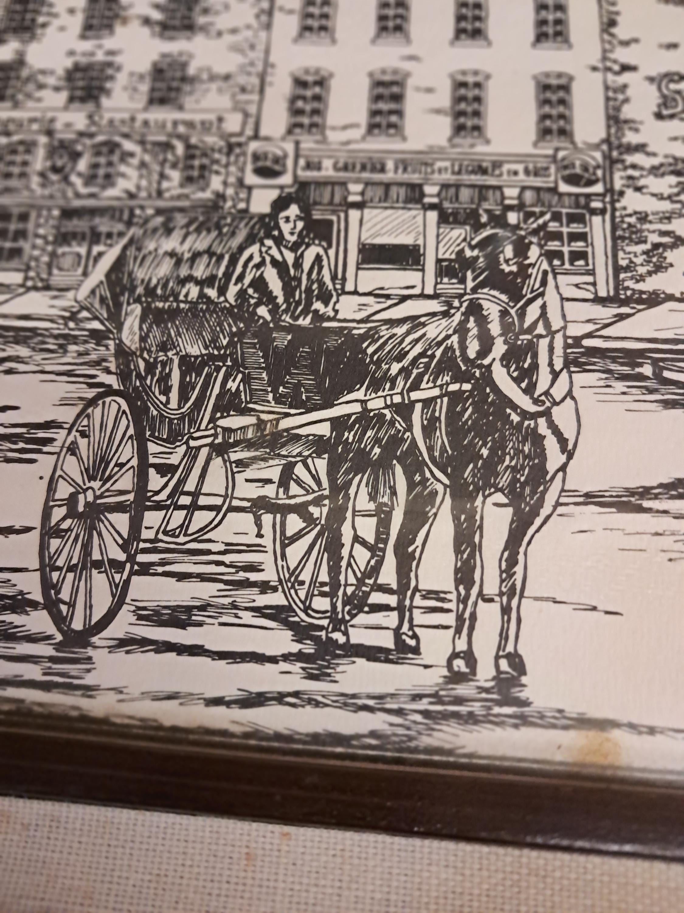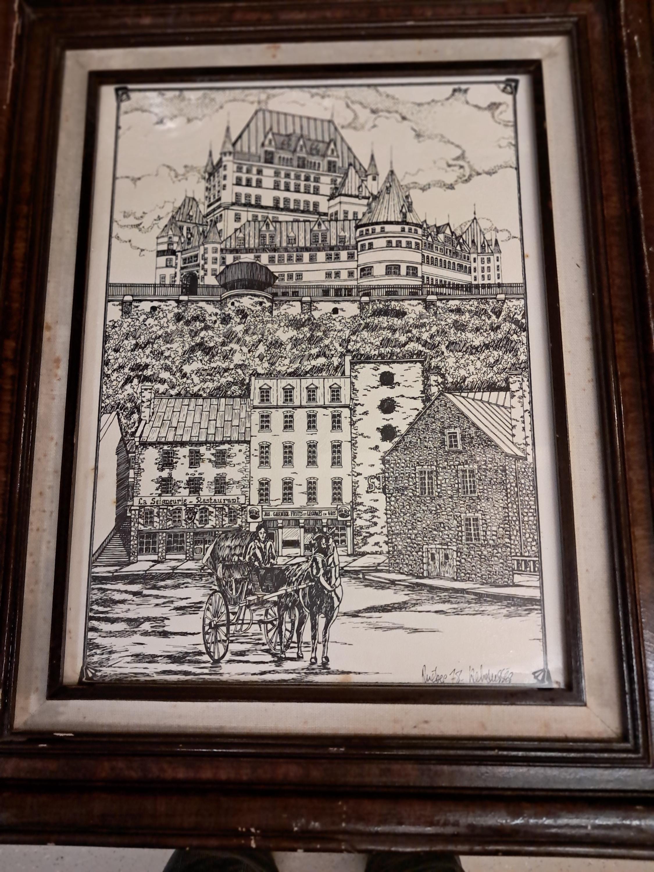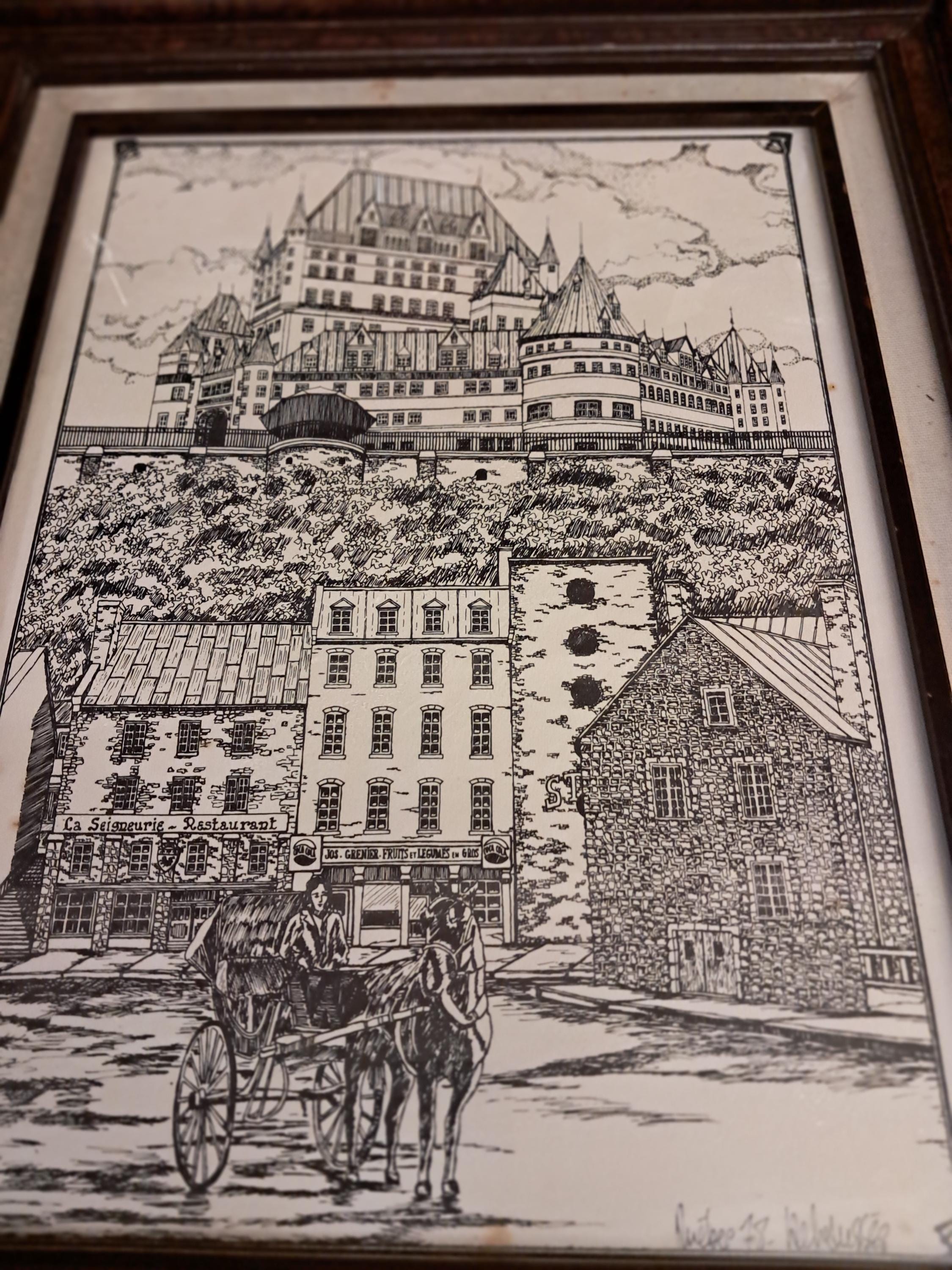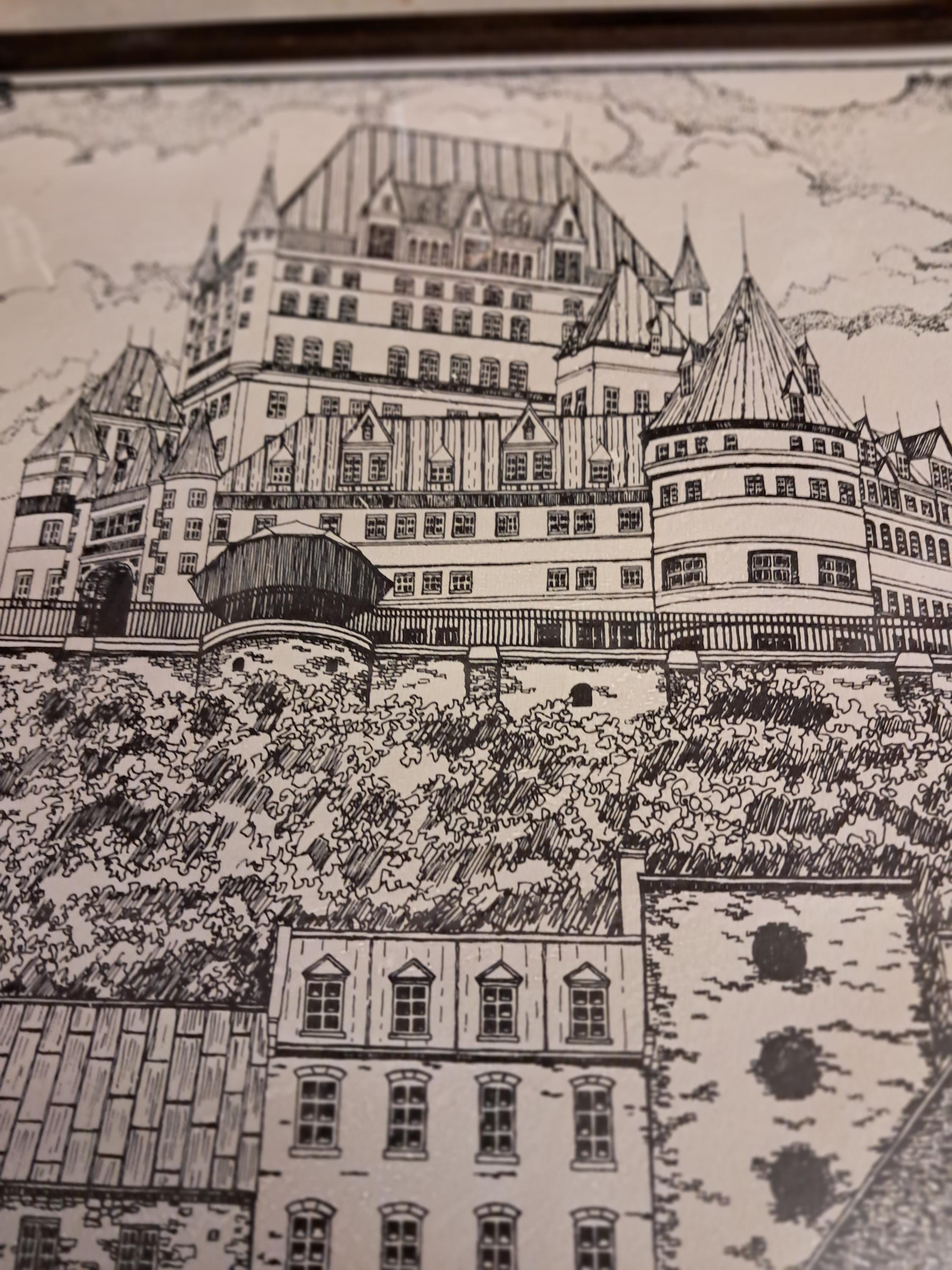 Vintage Etching of Fairmont le chateau Frontenac in Montreal