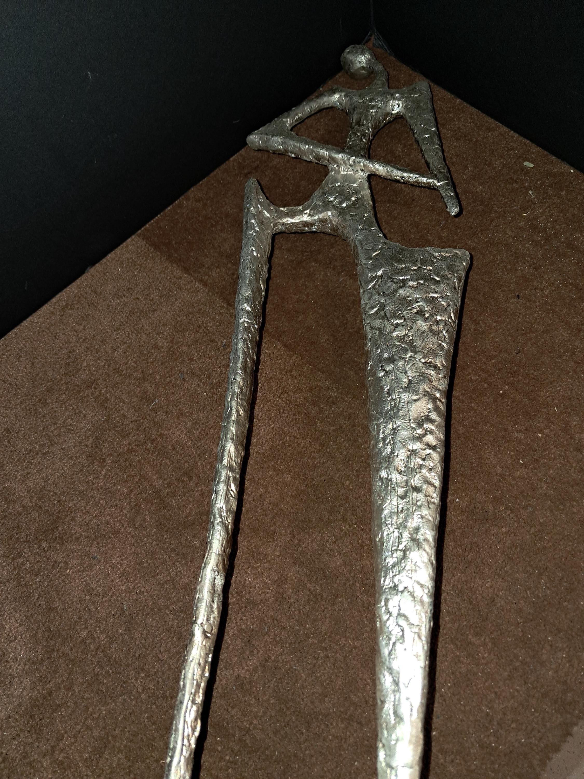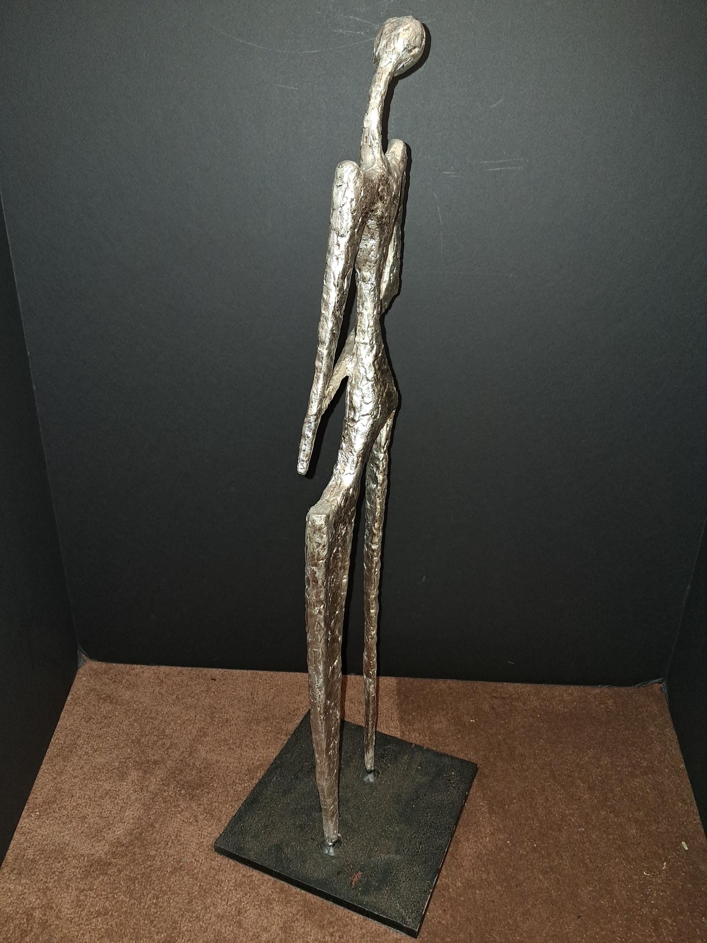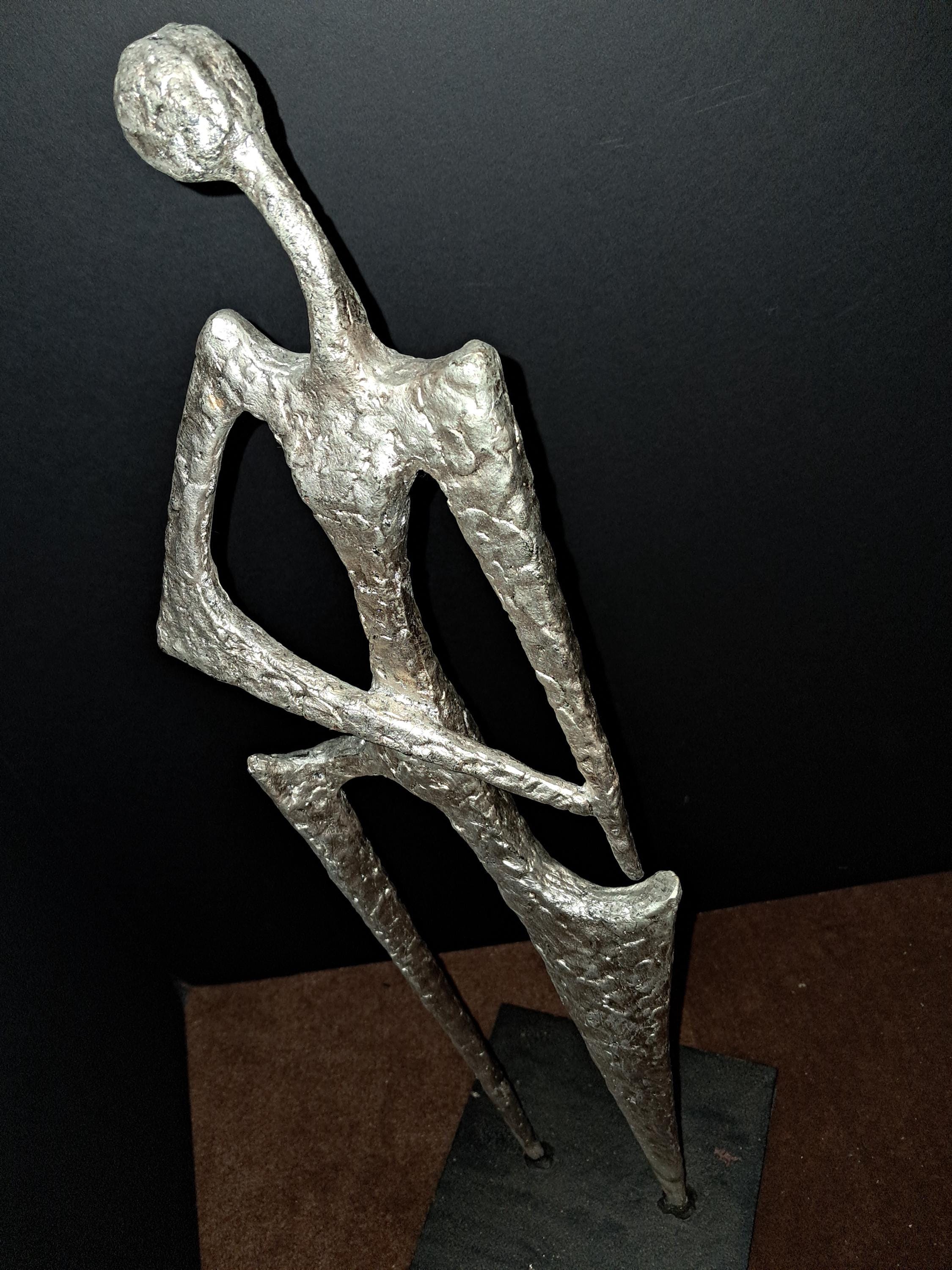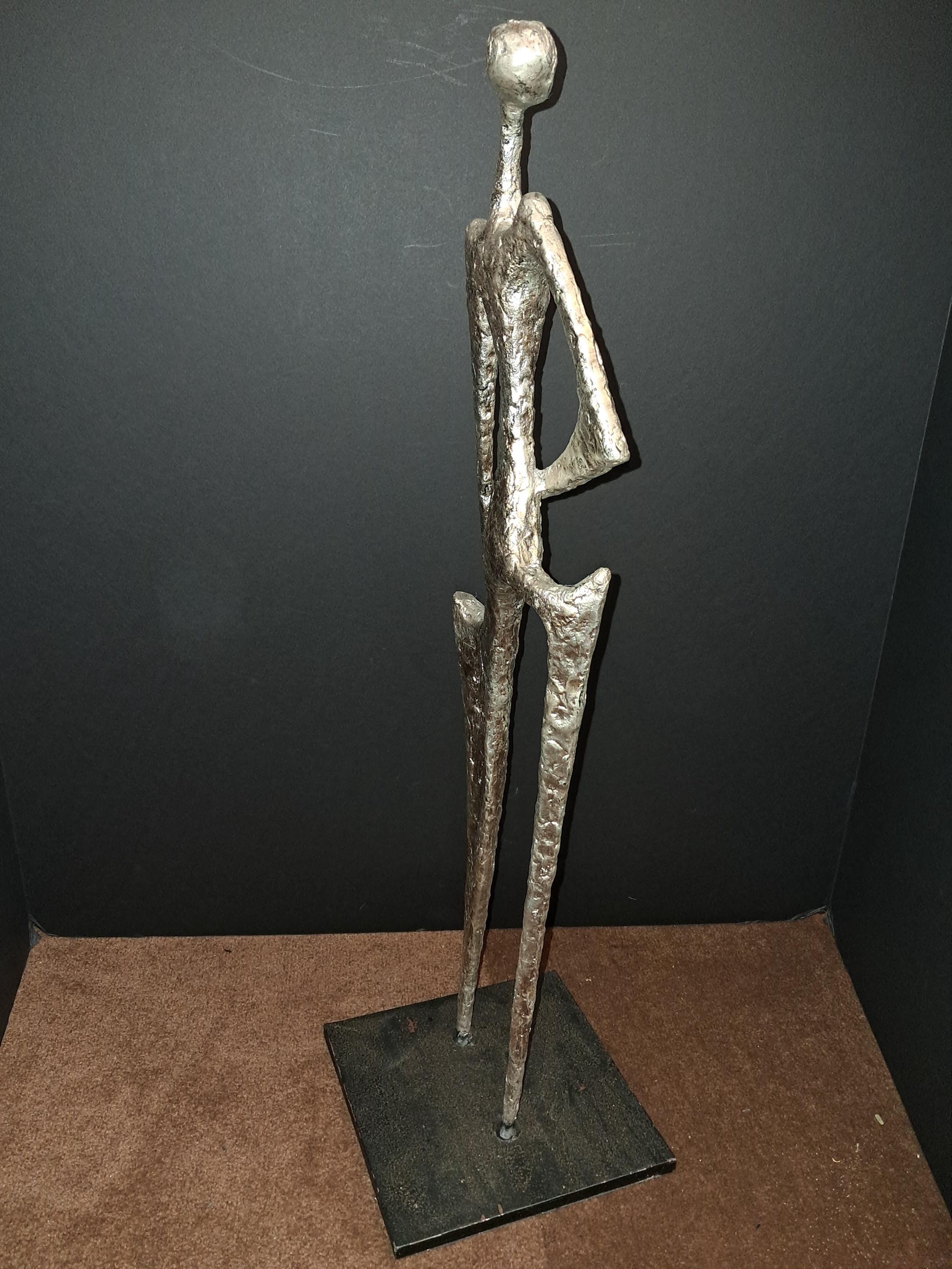 Hipster Lady Sculpture by Ann Conroy. in Silver PatinaHipster Lady Metal Sculpture Silver Finish Excellent Condition6.75W X 6.75D X 22.75H