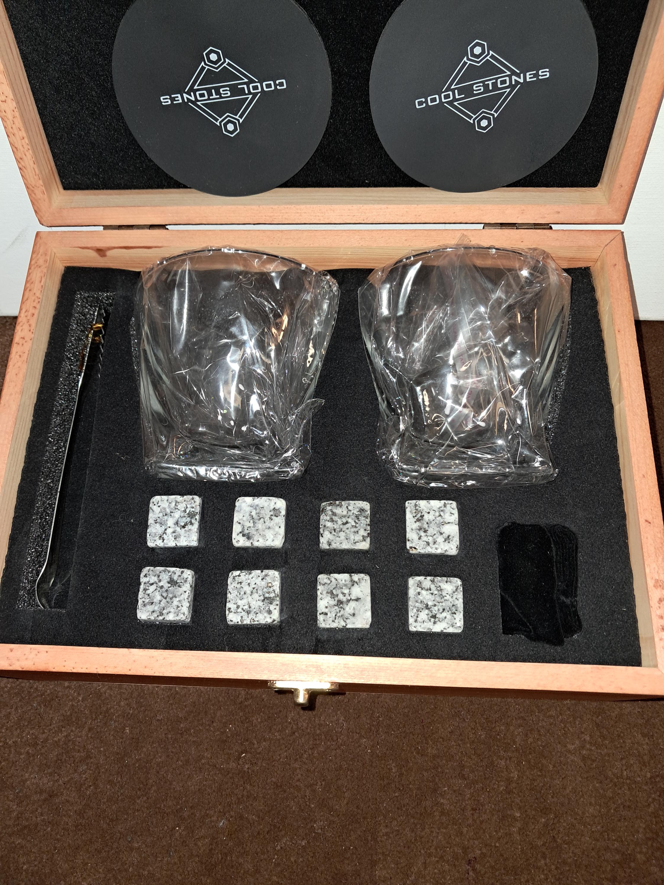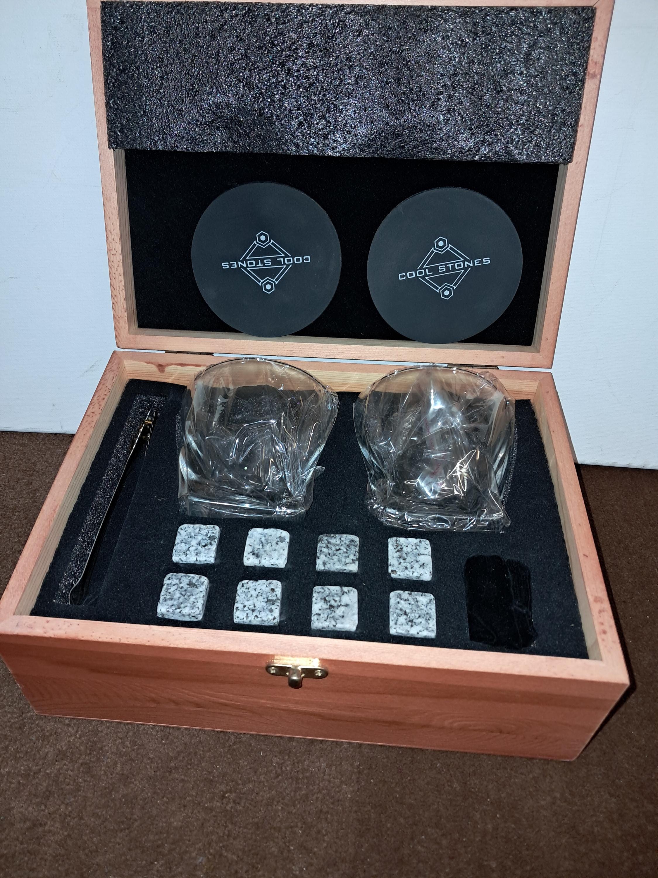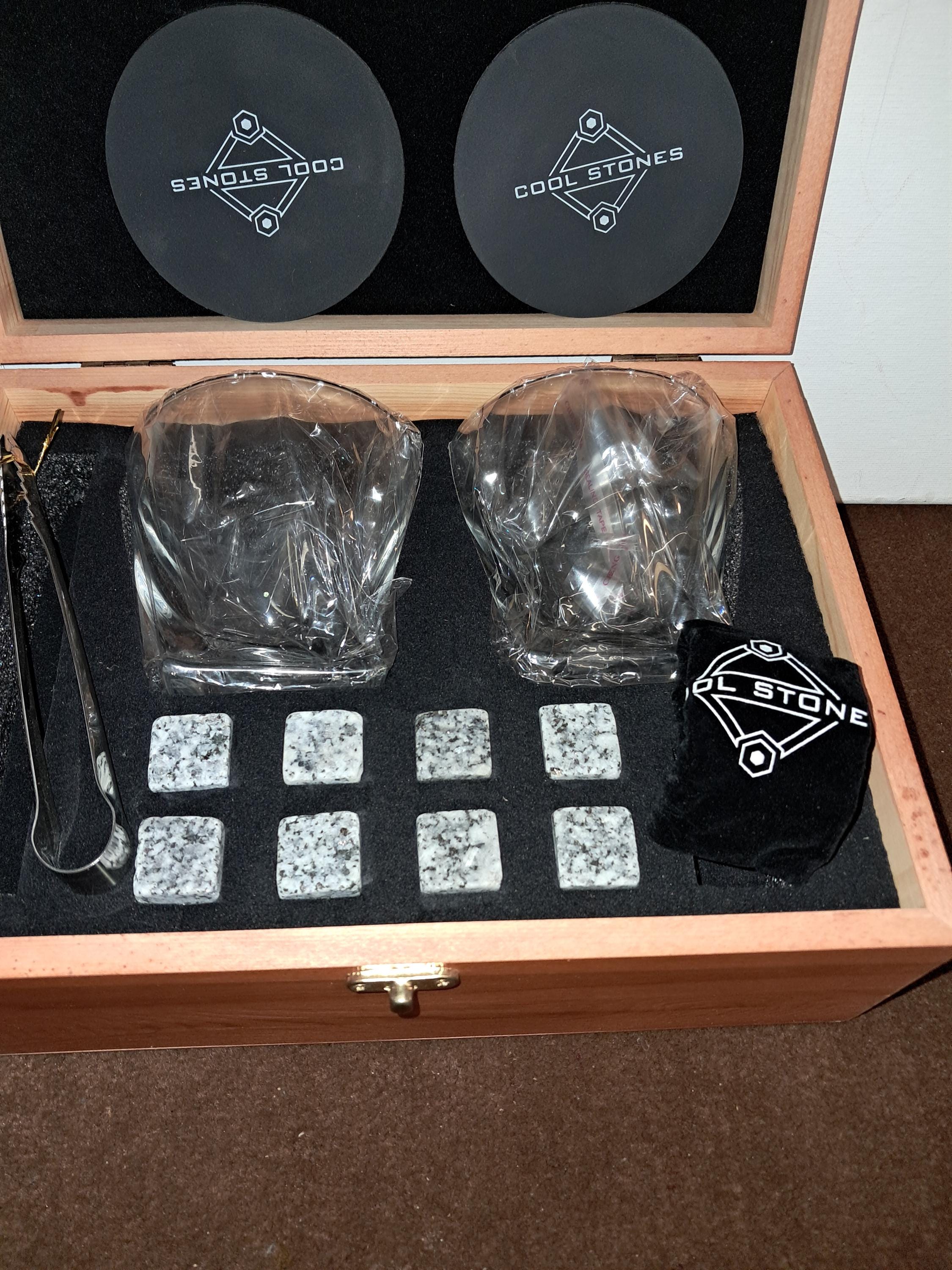 Cool Stones and Whiskey Glass Gift Boxed Set, 8 Granite Chilling Whisky Rocks
