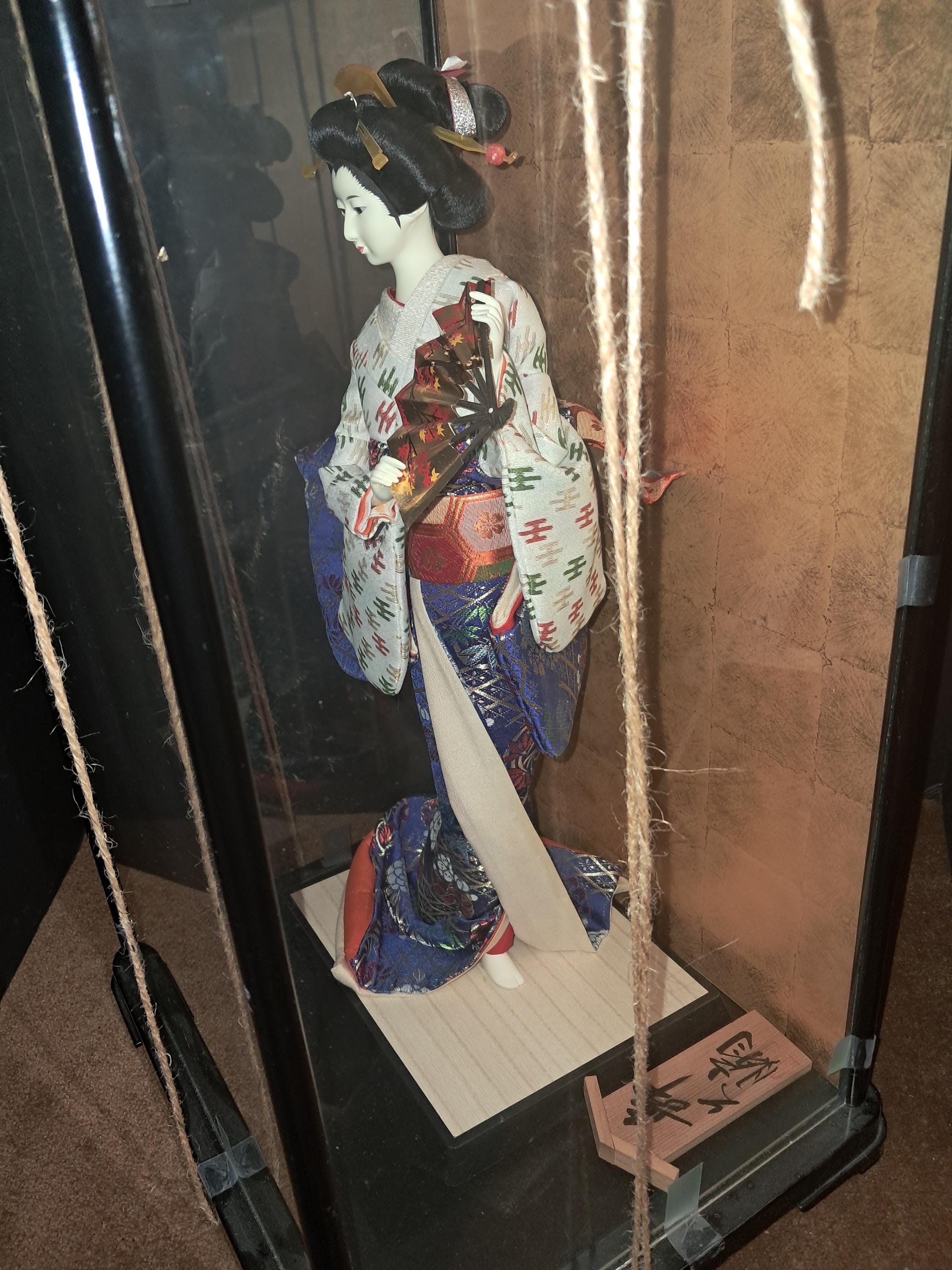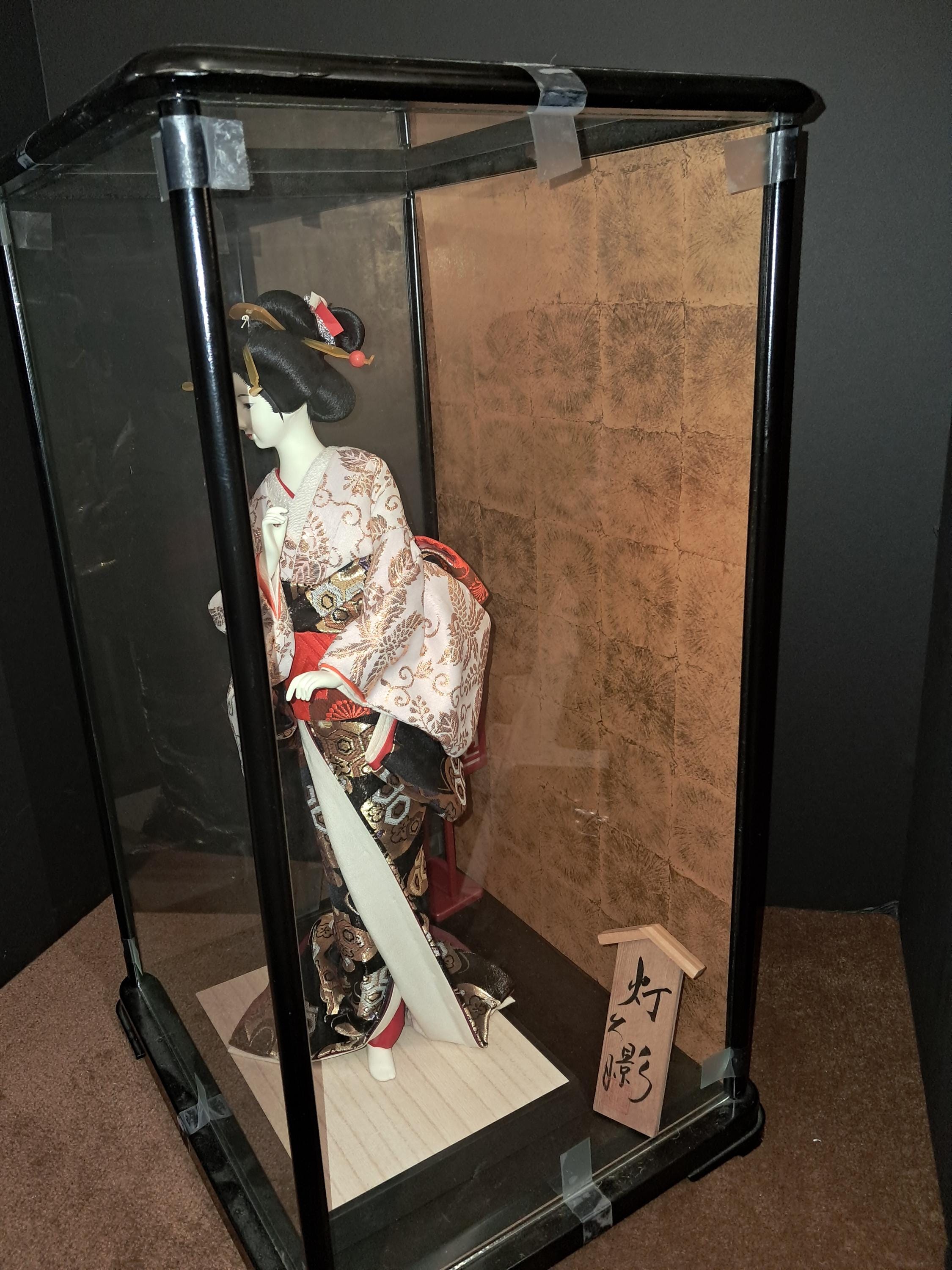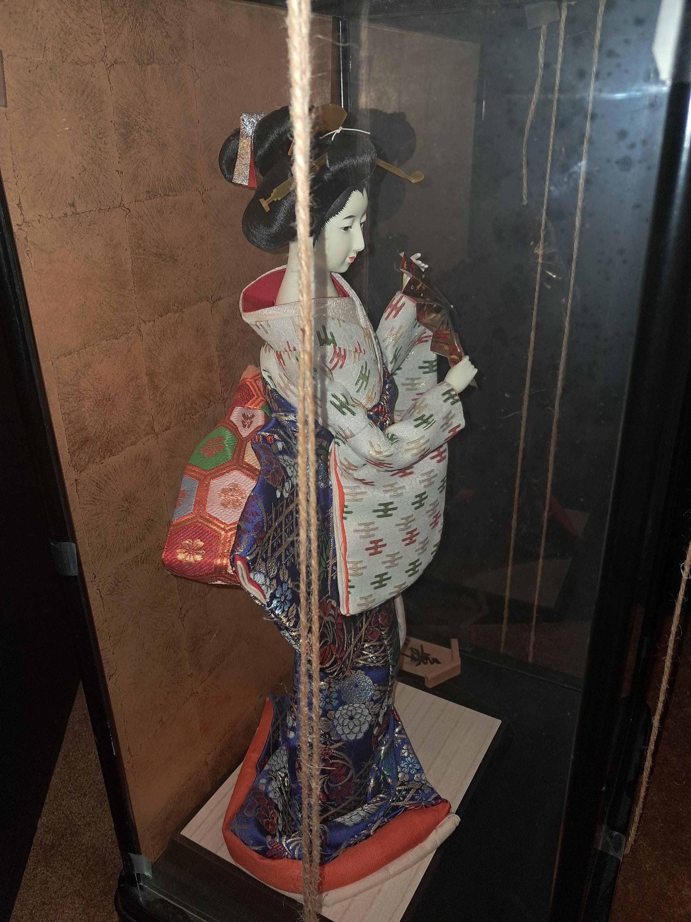 Behold the enchanting beauty of the Kyugetsu Japanese Geisha Porcelain Doll! Crafted with meticulous care in Tokyo, Japan, this vintage treasure stands tall at 18 inches, with a base measuring 7"x8". Adorned with intricate details and delicate craftsmanship, this doll exudes elegance and grace. Its porcelain construction showcases the artistry and skill of the Kyugetsu brand, known for their exquisite dolls. With its excellent condition, this doll is not only a collector's dream but also a captivating centerpiece for any display. Add a touch of Japanese tradition and sophistication to your collection with the Kyugetsu Japanese Geisha Porcelain Doll, a true masterpiece of artistry and beauty.
