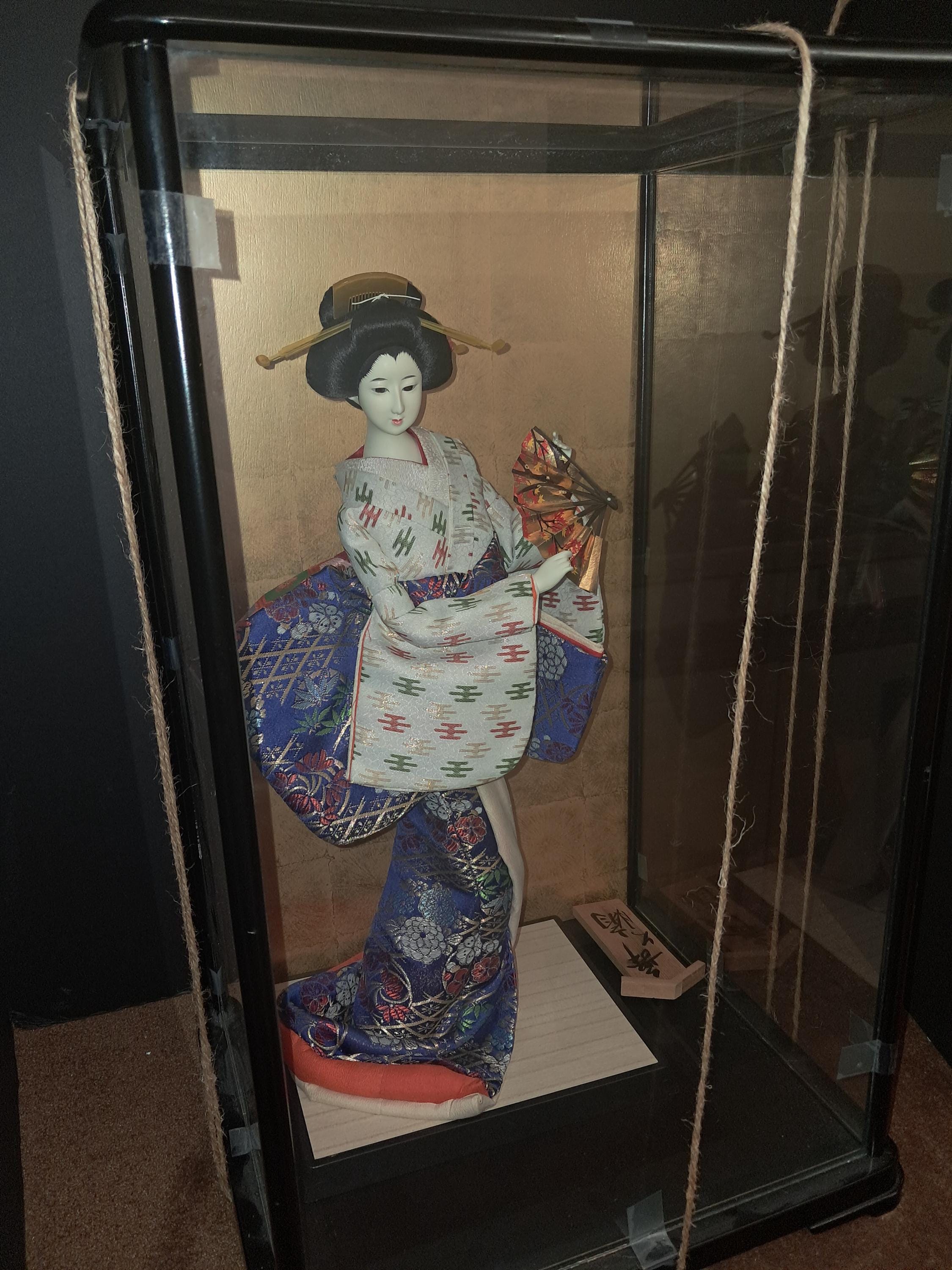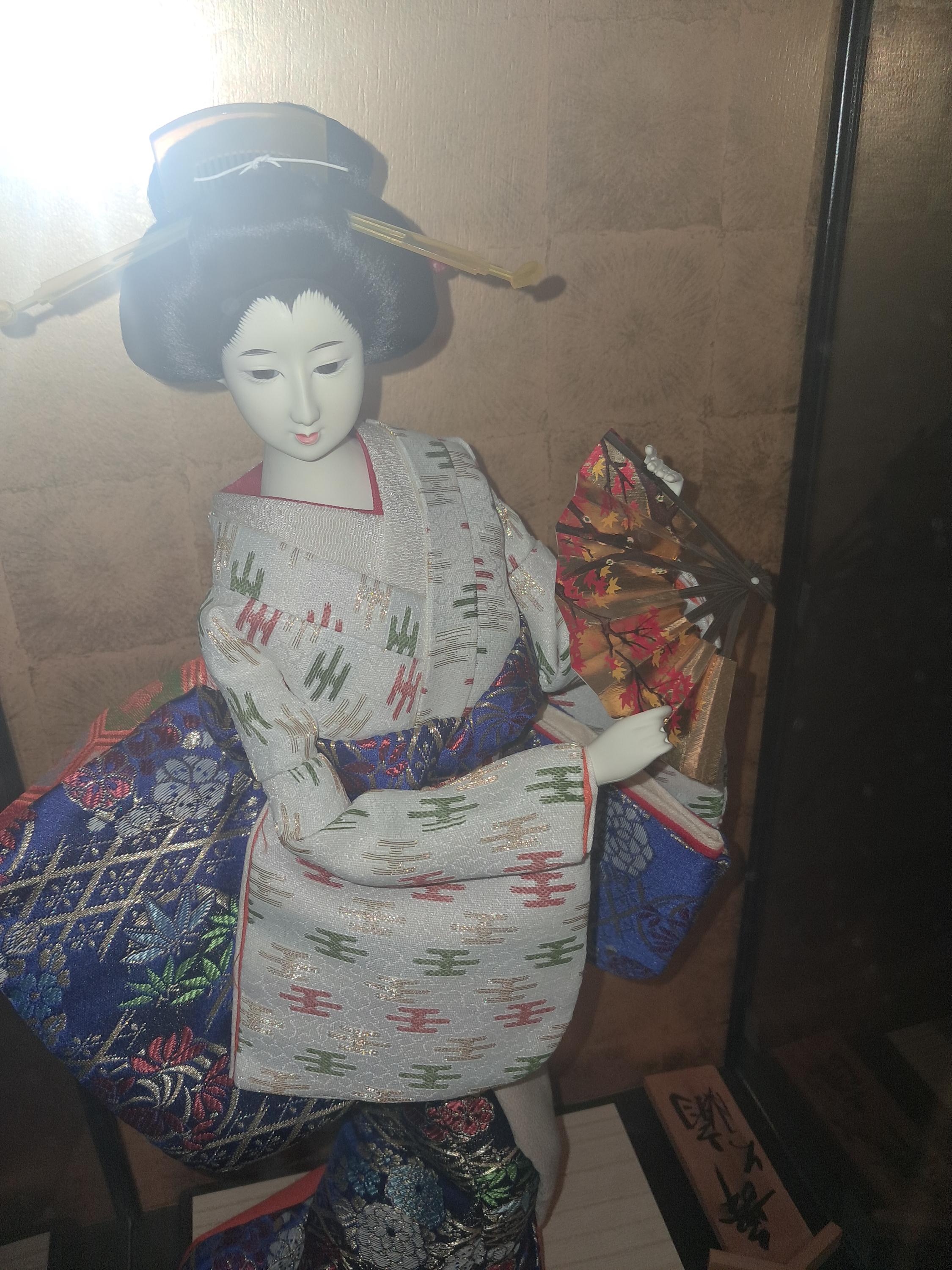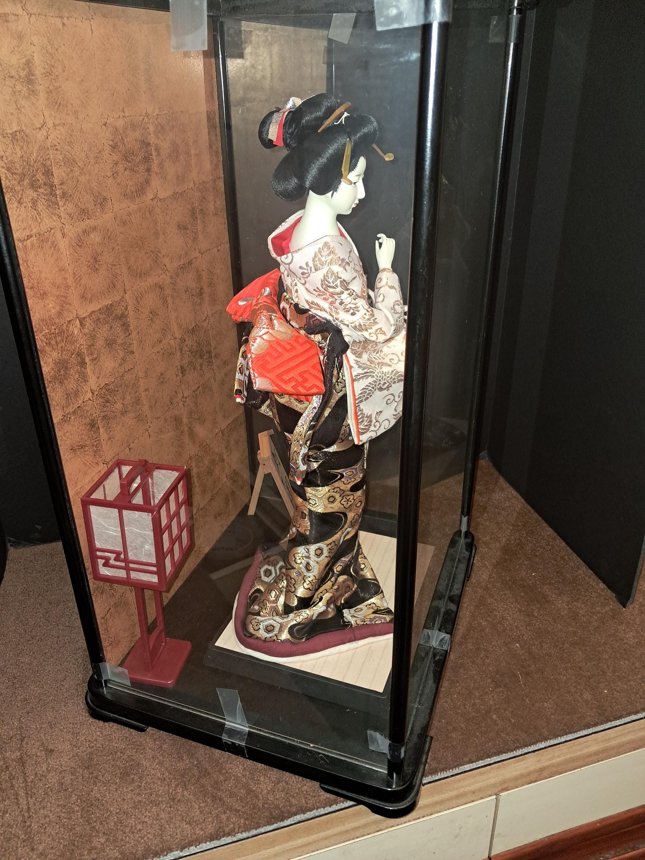 Behold the enchanting beauty of the Kyugetsu Japanese Geisha Porcelain Doll! Crafted with meticulous care in Tokyo, Japan, this vintage treasure stands tall at 18 inches, with a base measuring 7"x8". Adorned with intricate details and delicate craftsmanship, this doll exudes elegance and grace. Its porcelain construction showcases the artistry and skill of the Kyugetsu brand, known for their exquisite dolls. With its excellent condition, this doll is not only a collector's dream but also a captivating centerpiece for any display. Add a touch of Japanese tradition and sophistication to your collection with the Kyugetsu Japanese Geisha Porcelain Doll, a true masterpiece of artistry and beauty.