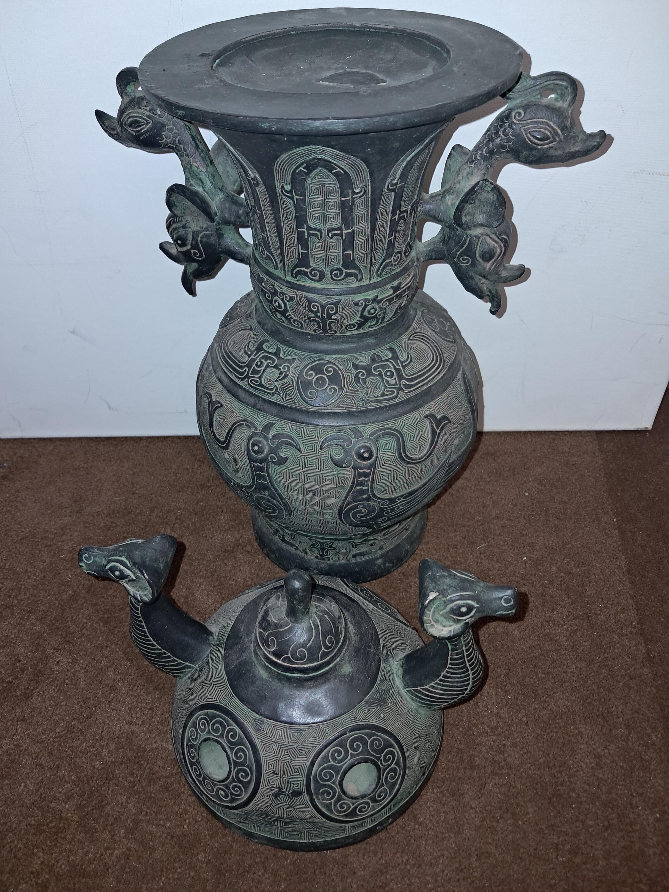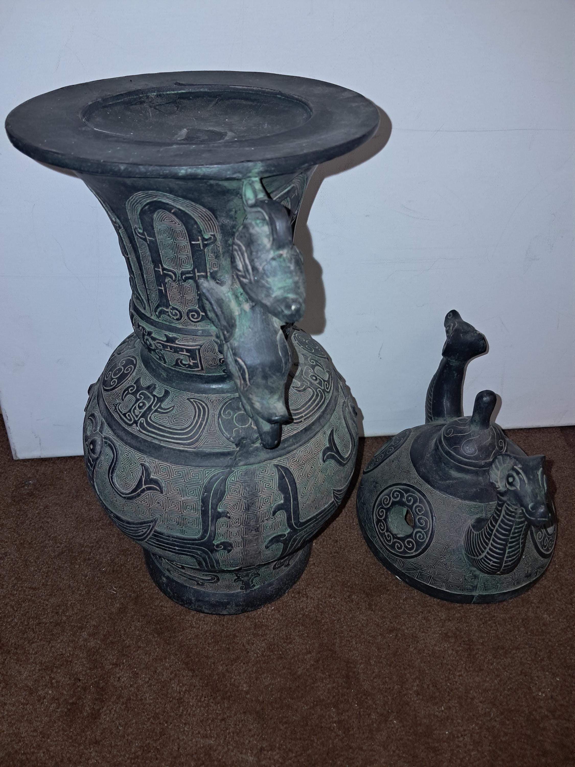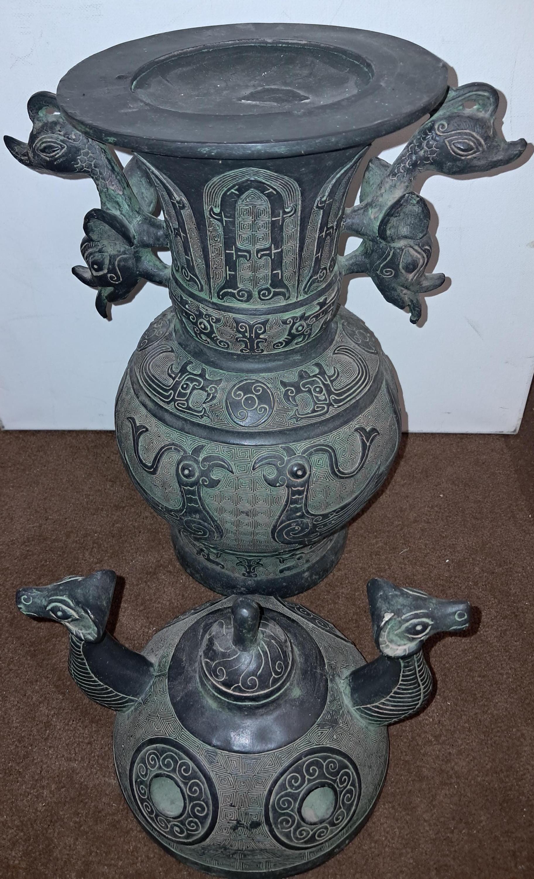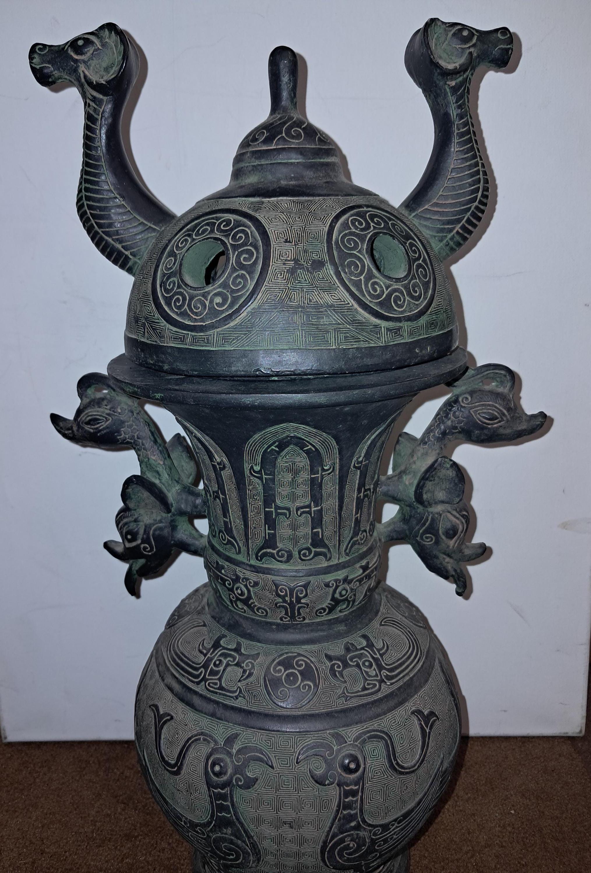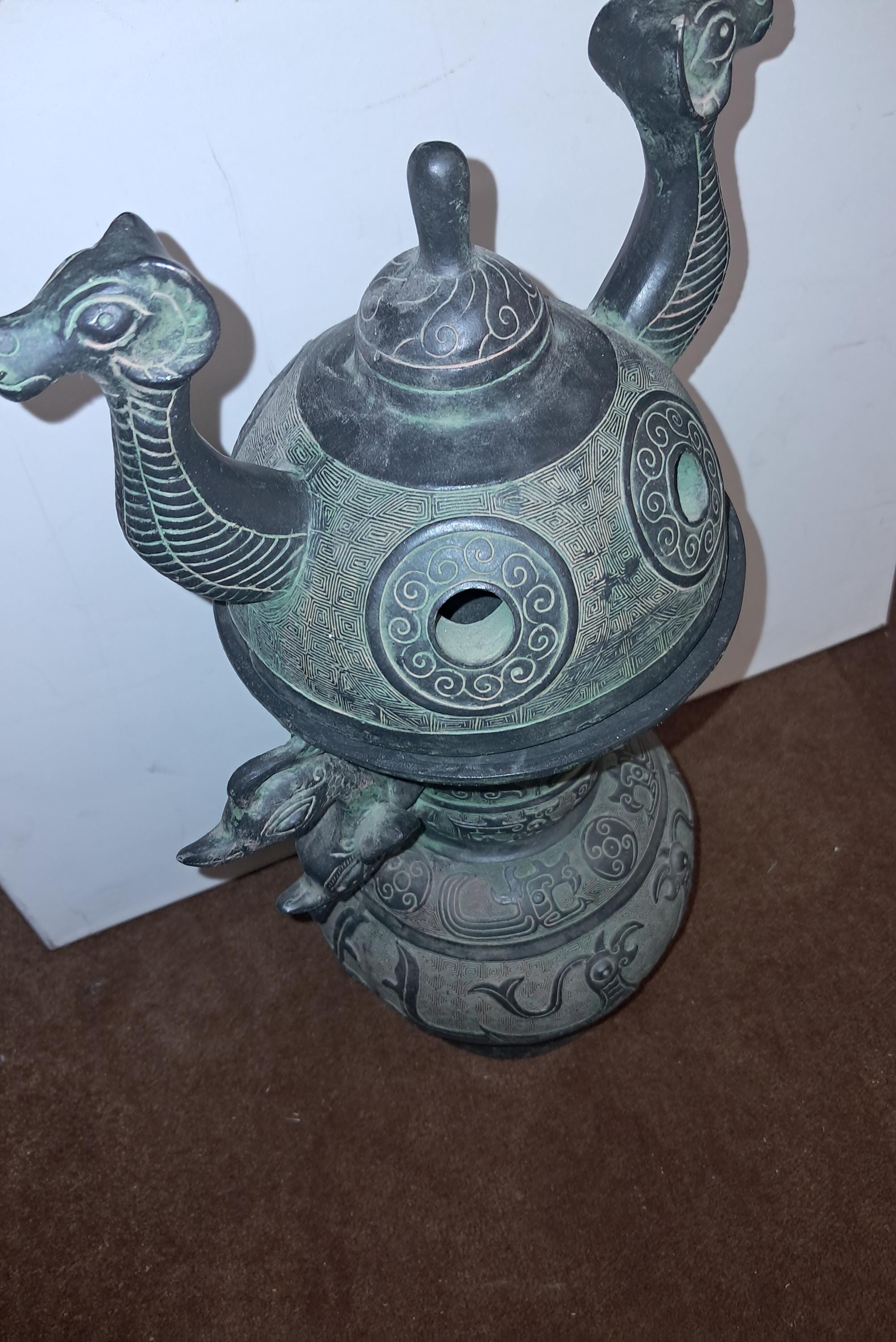 Replica of Antique Bronze Incense Burner. Asian Ritual Vessel.