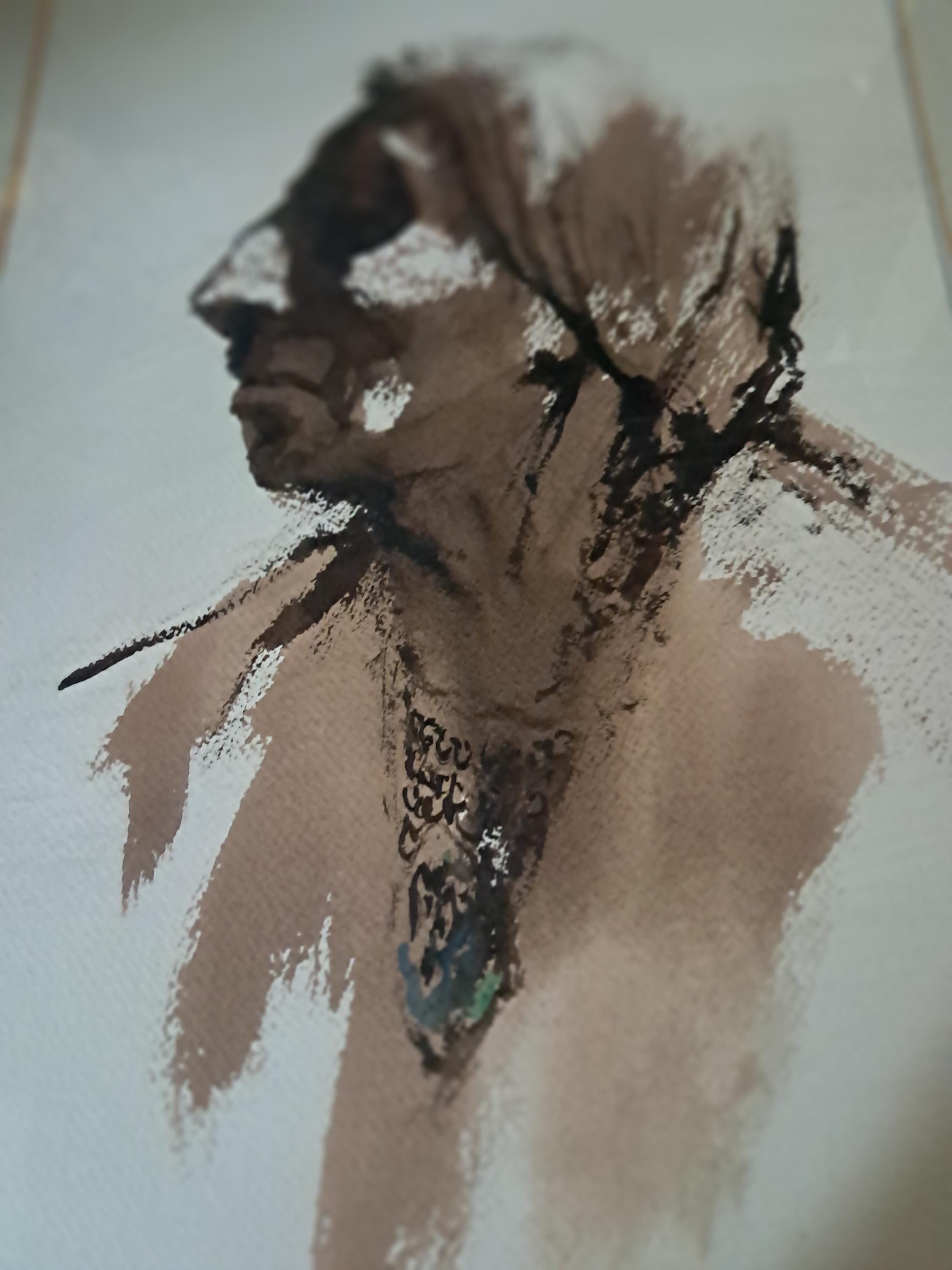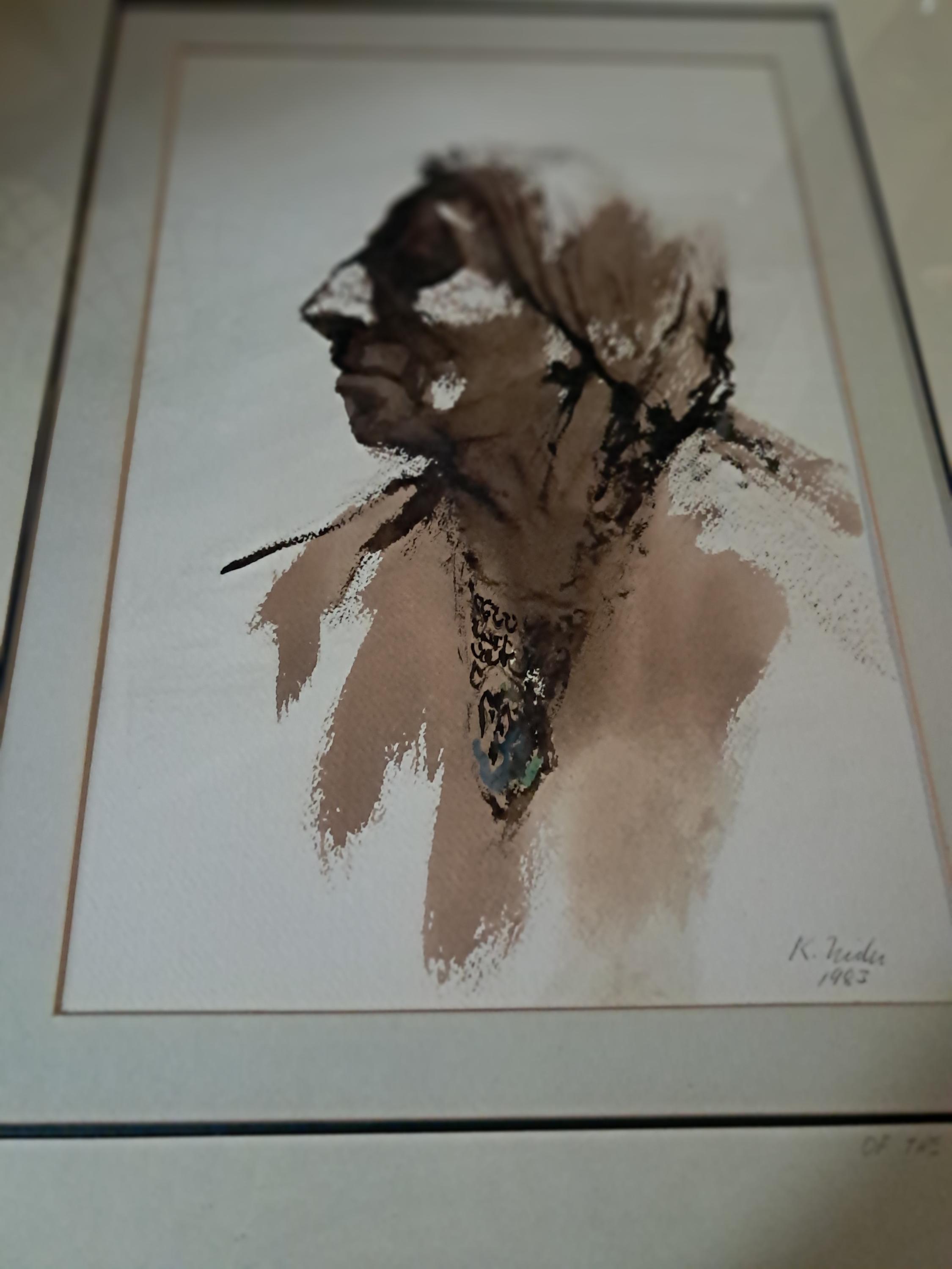 Native Indian Watercolor " Of The Plains "Signed By Artist Dimensions Framed Size : 24" tall x 19" wide x 1" deep Image Size : 17 x 12Condition :ExcellentSigned by Artist K. ,,,,,Title: Of The Plains