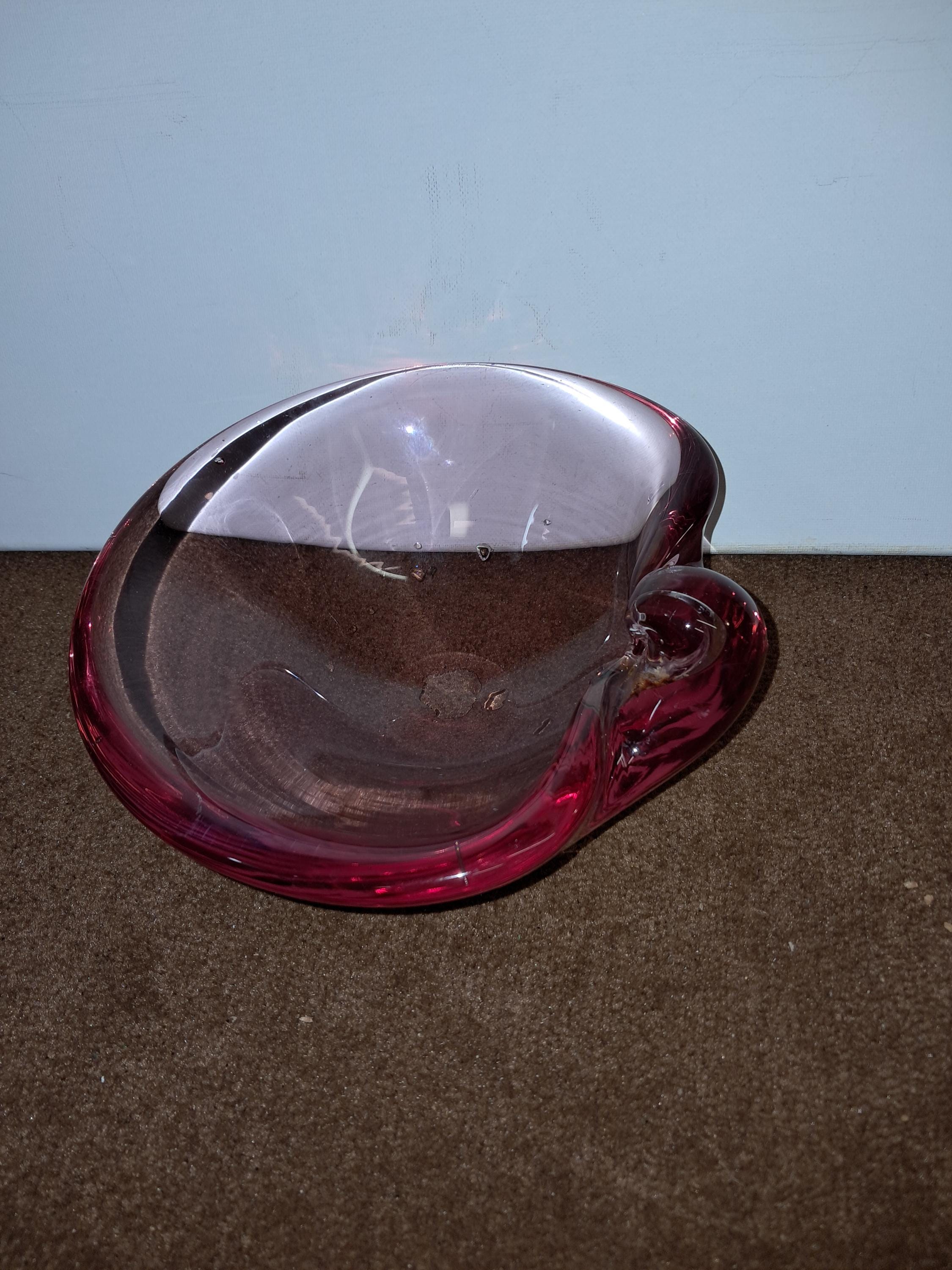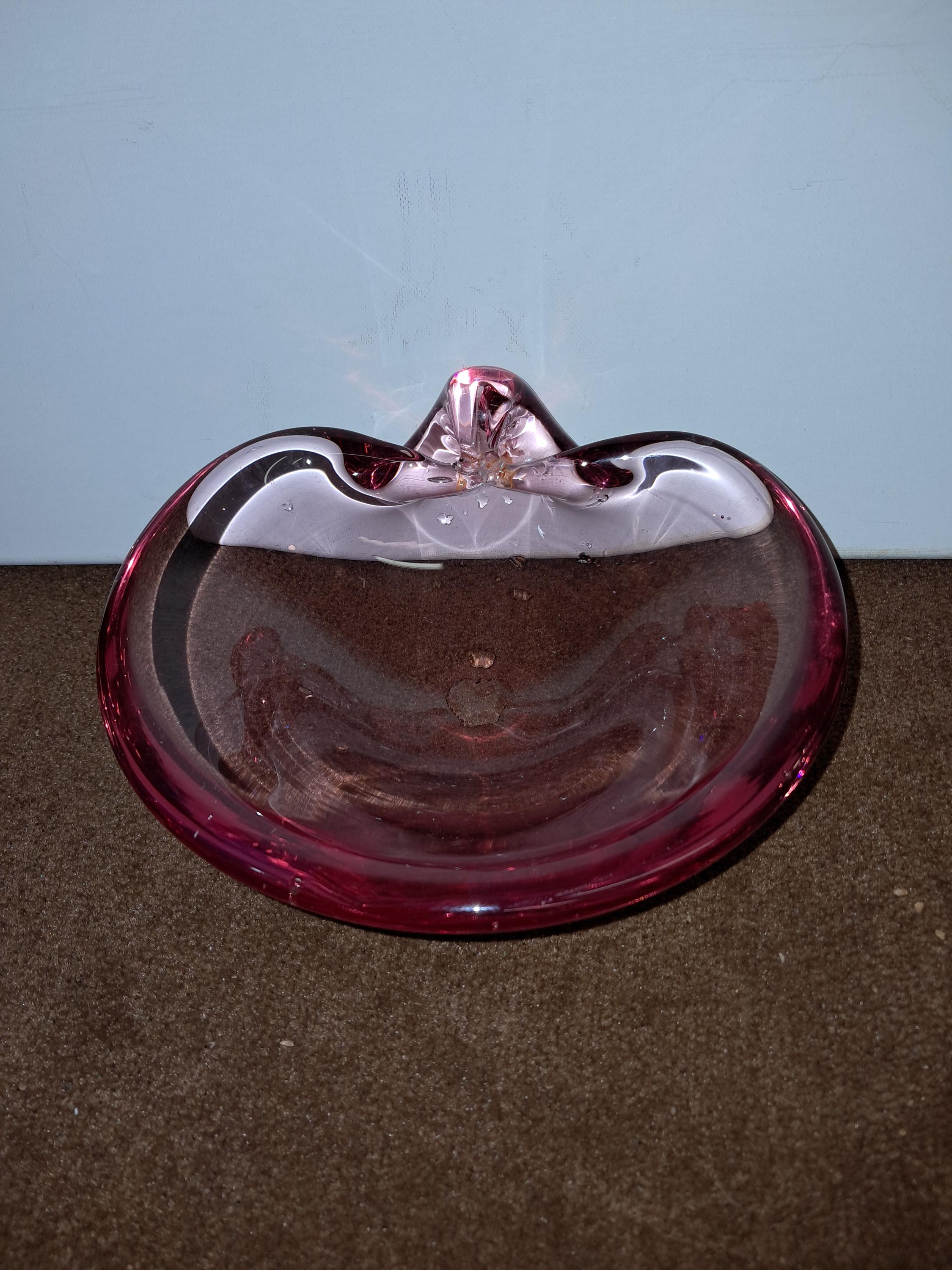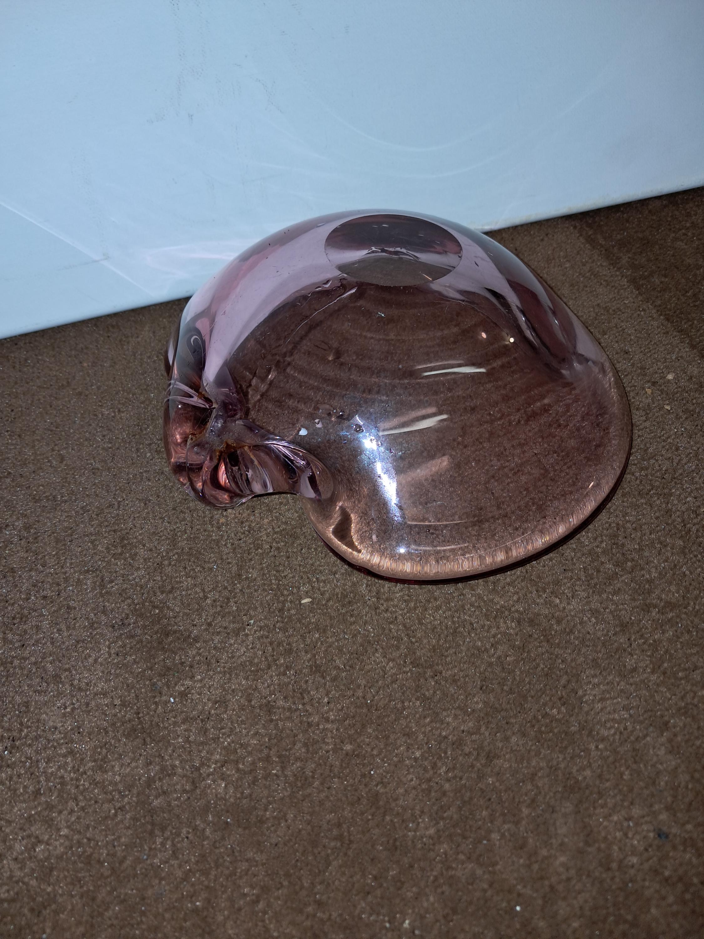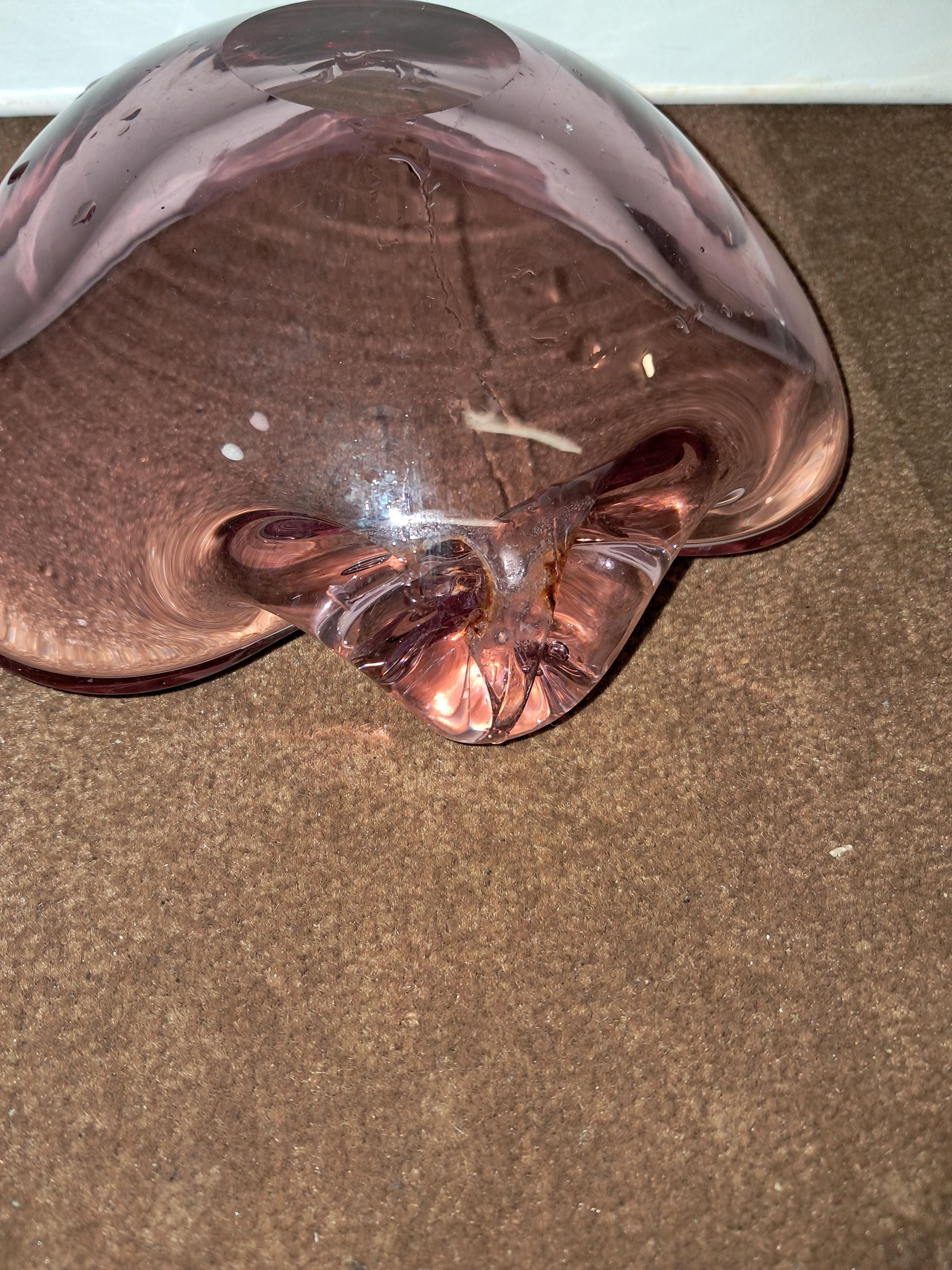 This stunning bowl features a great organic free form design in Plum color. Great used as a centerpiece or on a console.