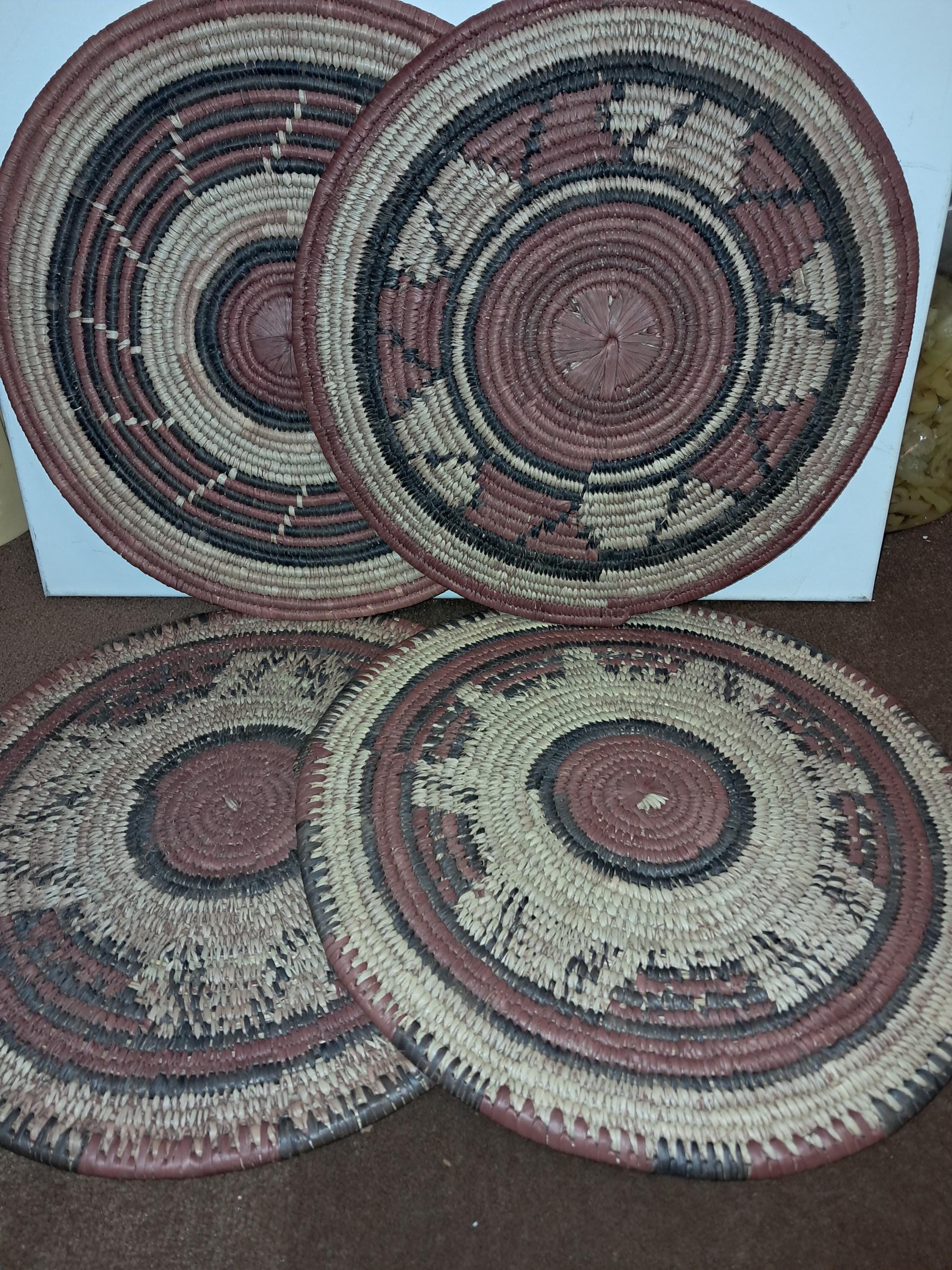 4 Native African Handmade Woven Mats 12.5" in diameter and .25" thick Brand New Never Used Country of origin : Batswana Sold as a set at discount