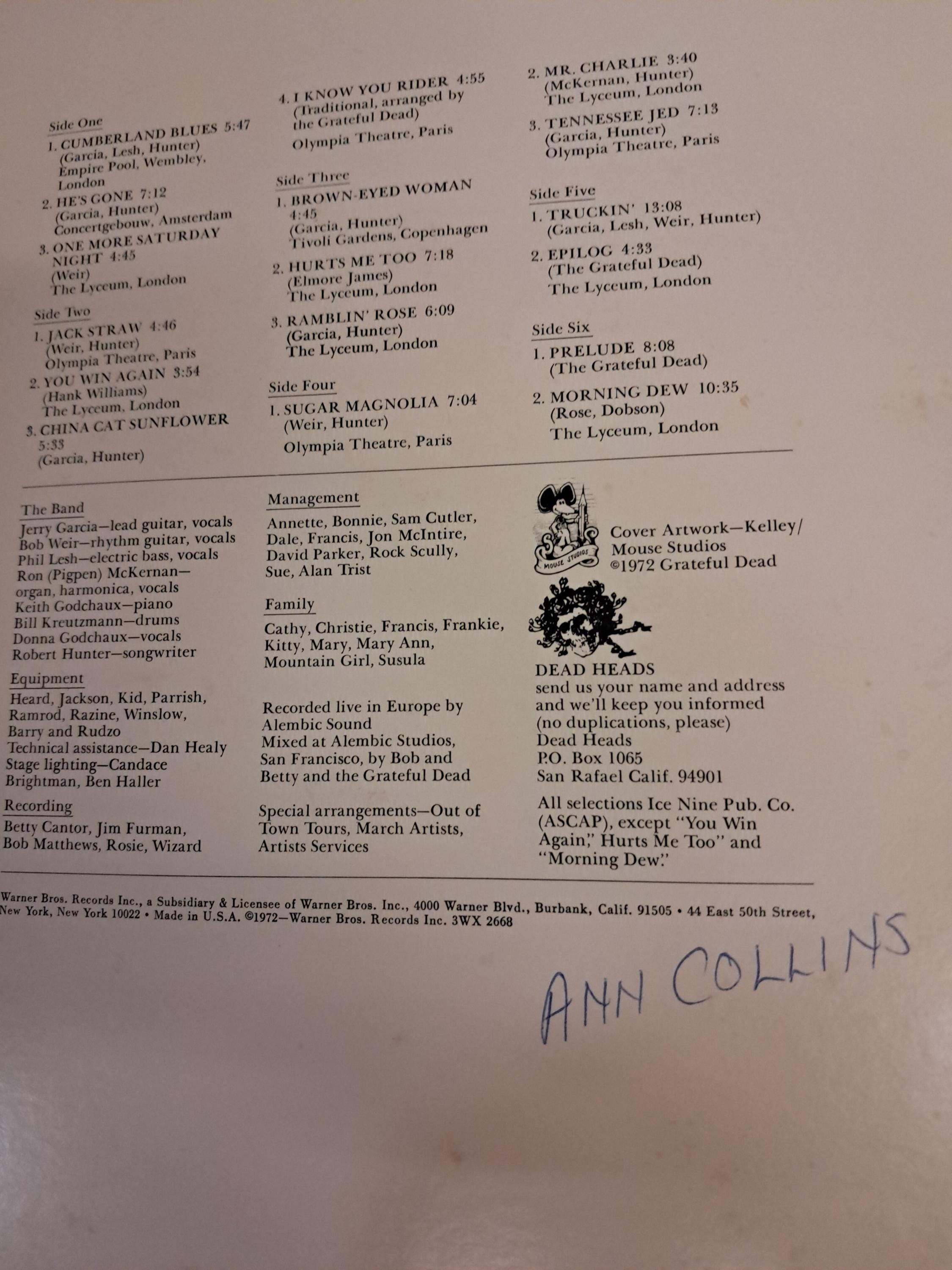 Label: Grateful Dead Europe 72