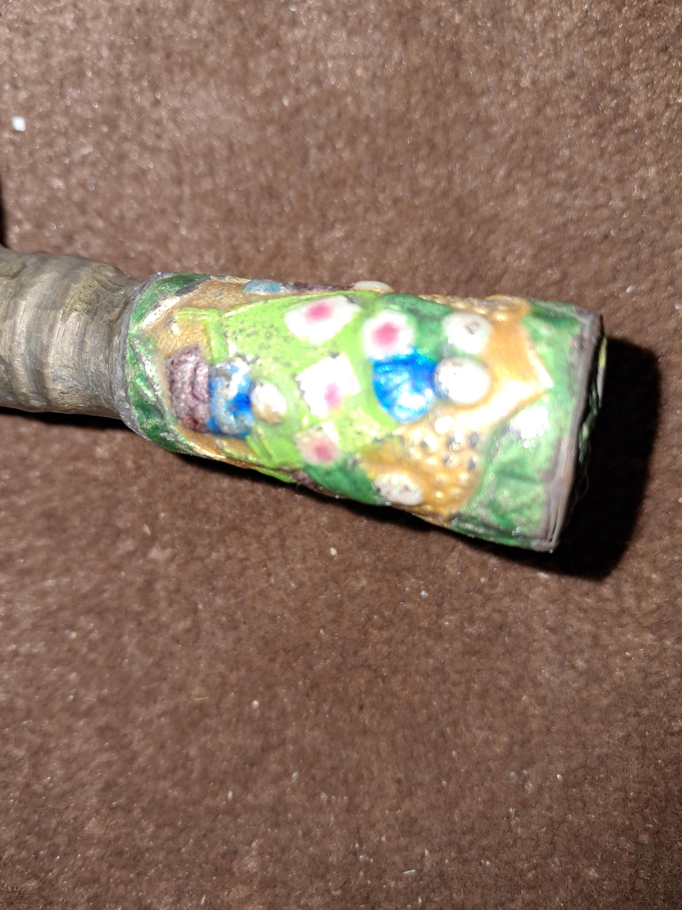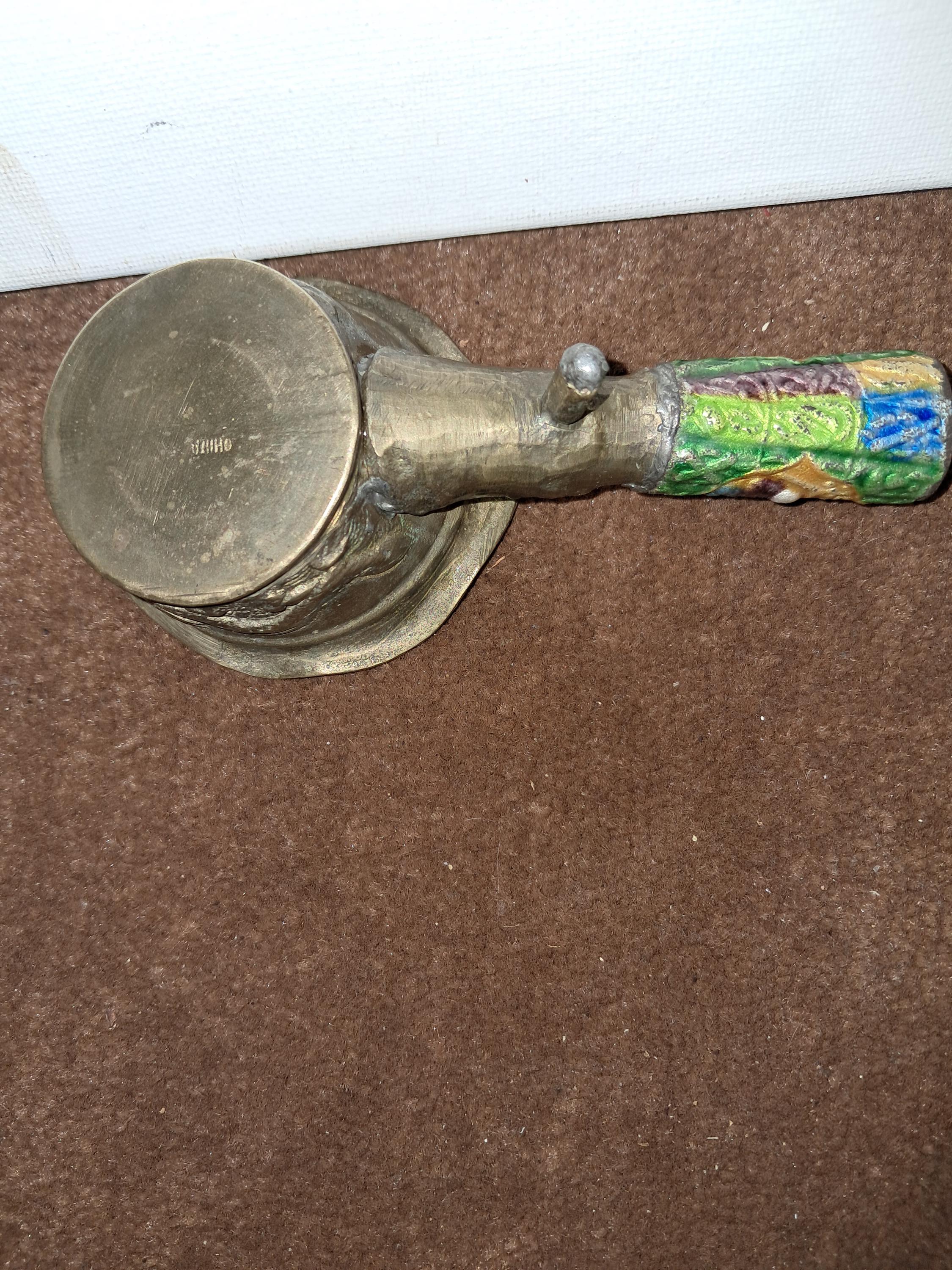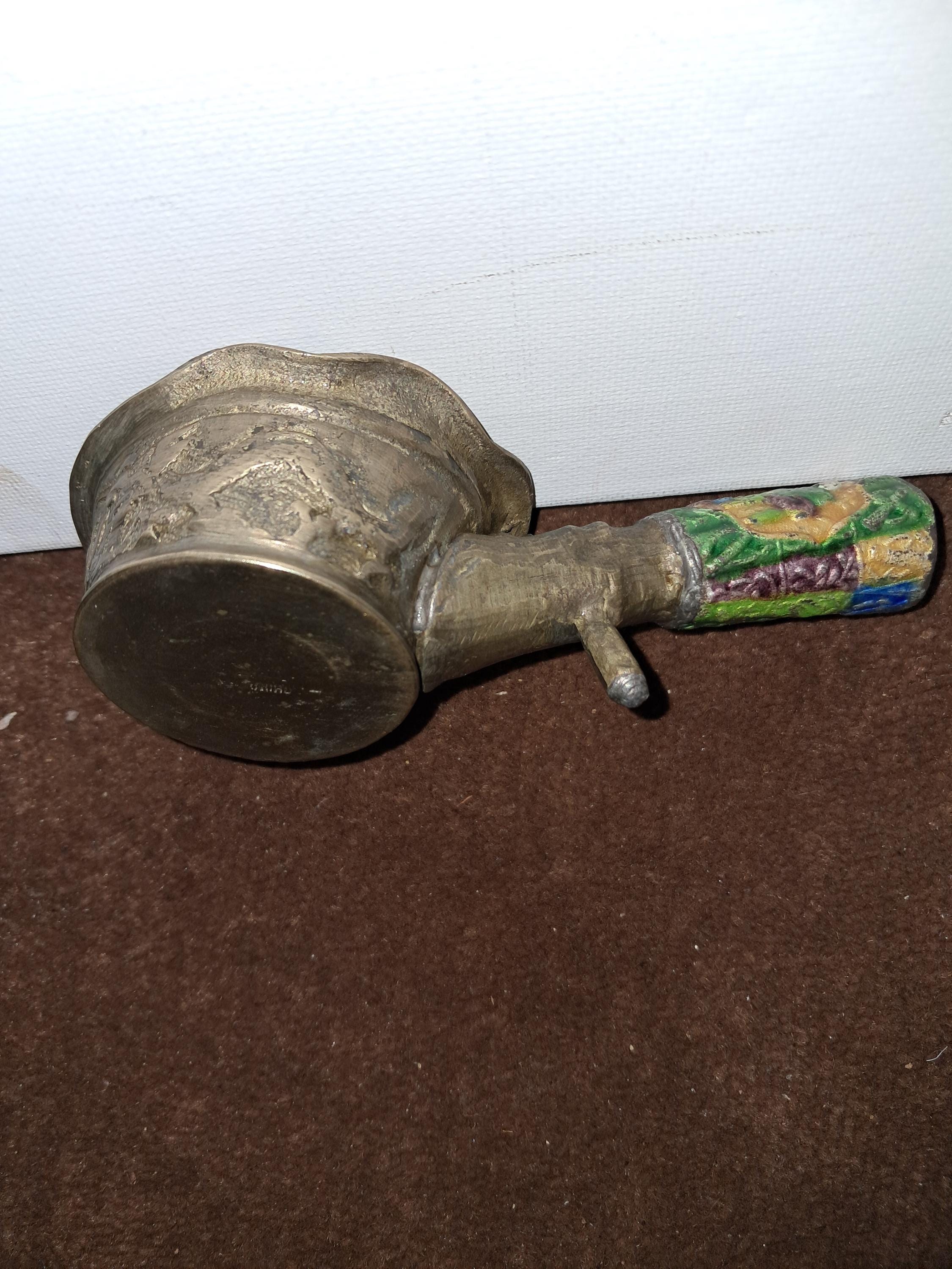 Unusual looking with handle and colorful engraving of Monks on the handle with 2 Dragons on the side