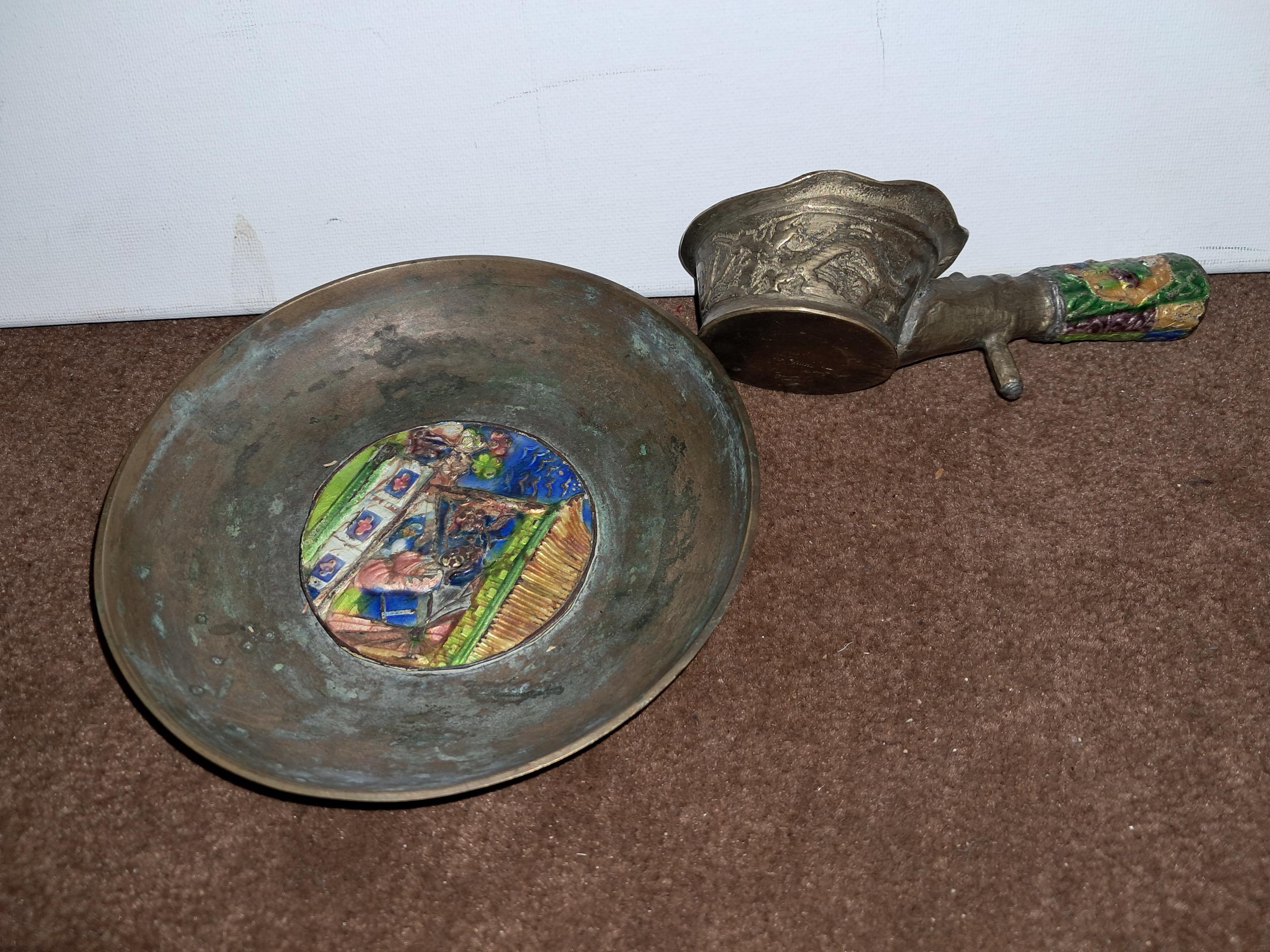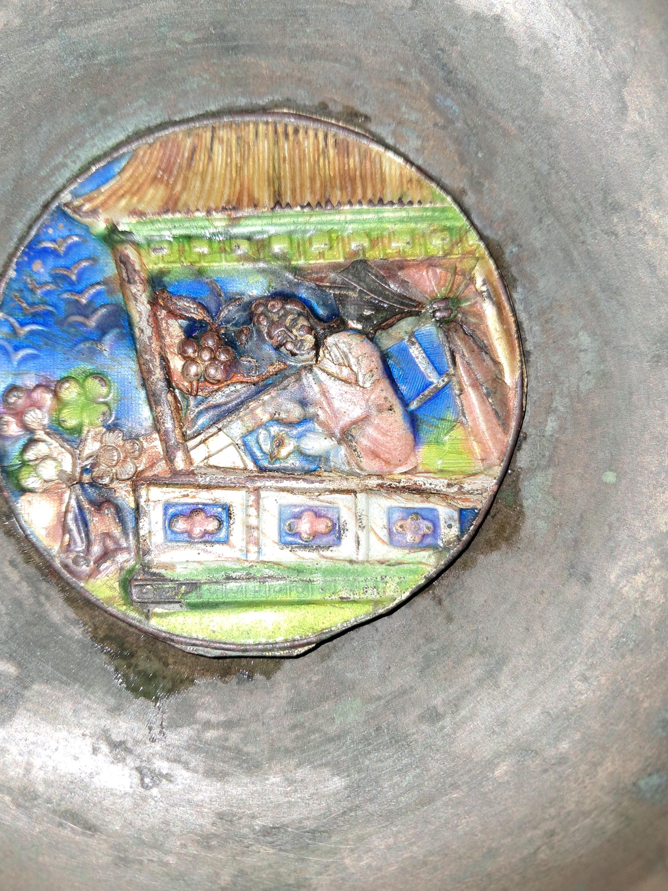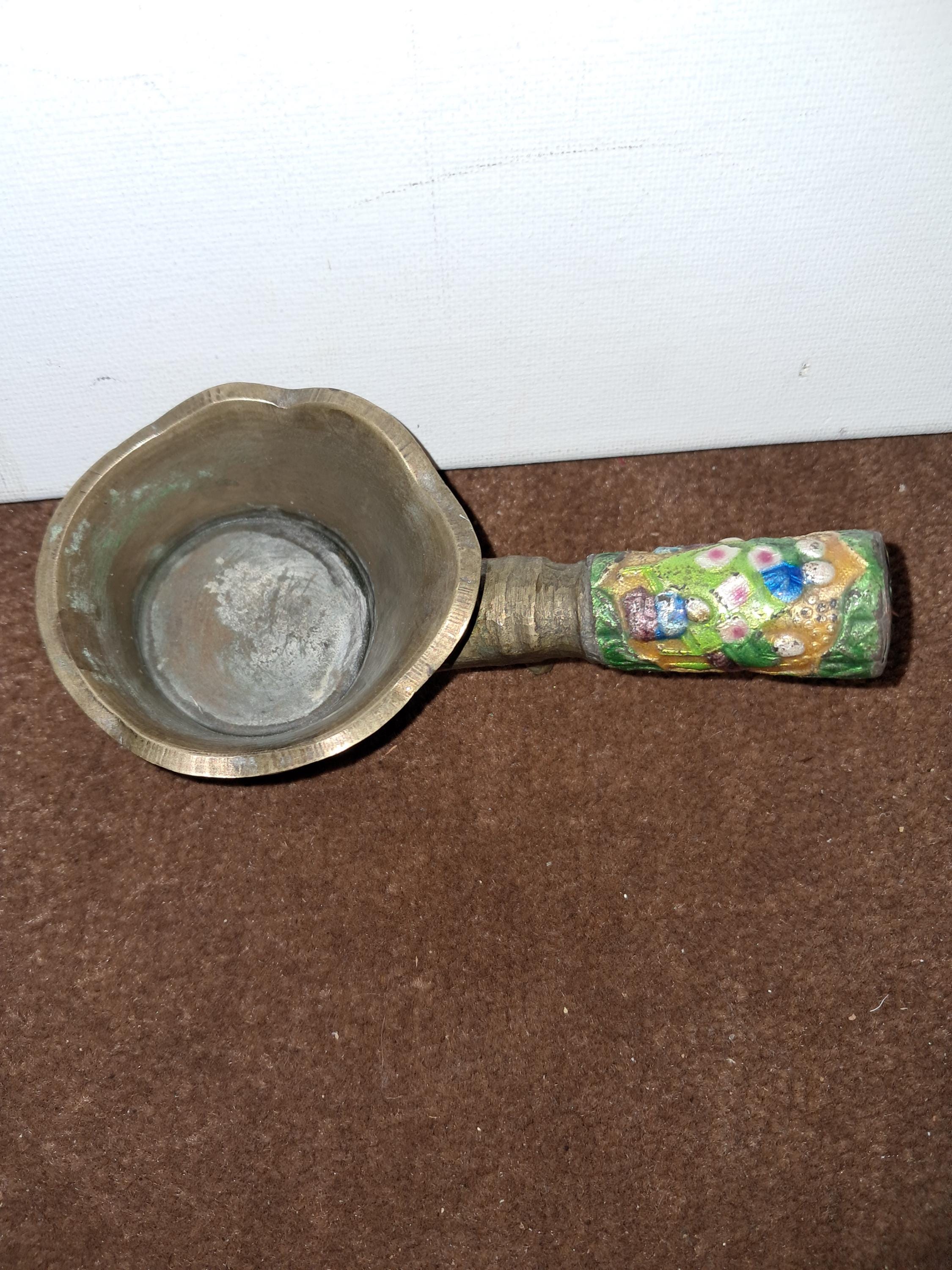 Unusual looking with handle and colorful engraving of Monks on the handle with 2 Dragons on the side