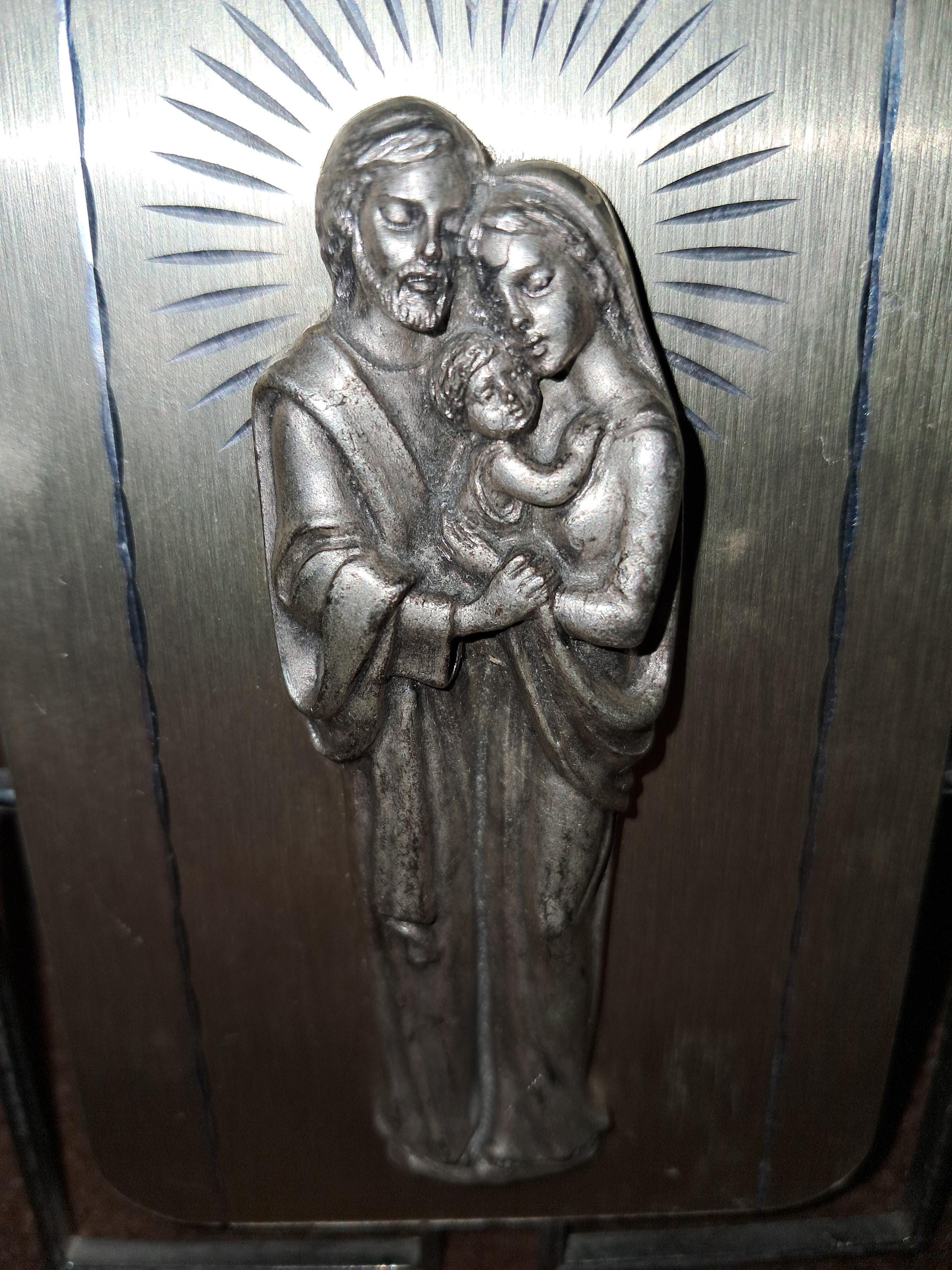 Holy Family PlaqueColors :Gold/ Silver / PewterMade In Italy 5" tall x 3.5" wide x .5" deep Standing frame