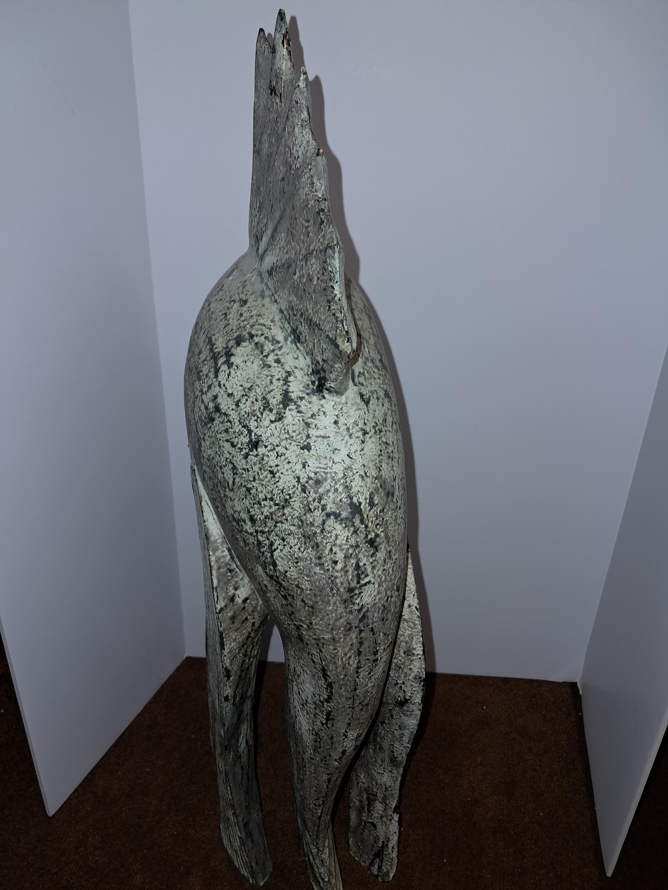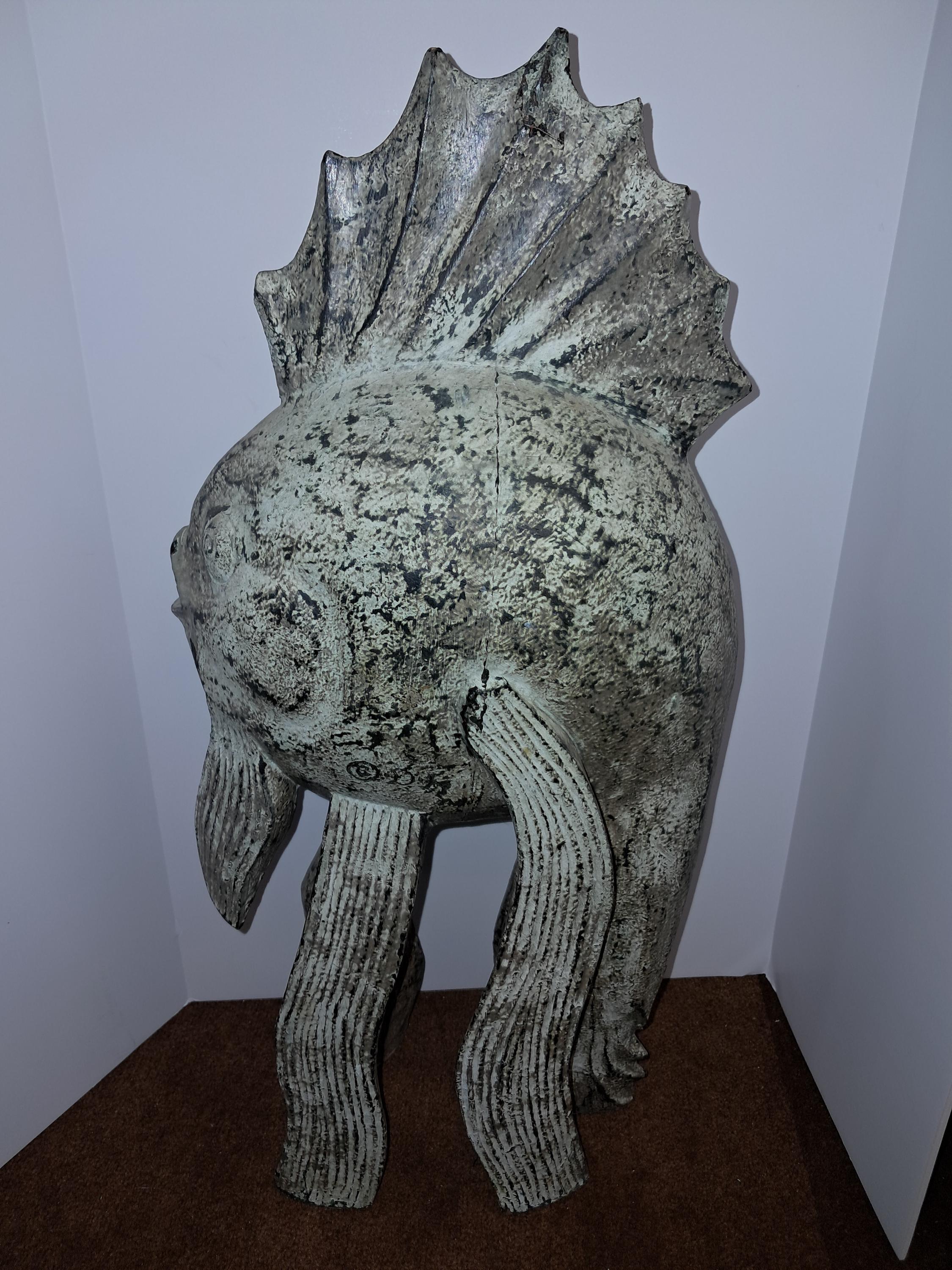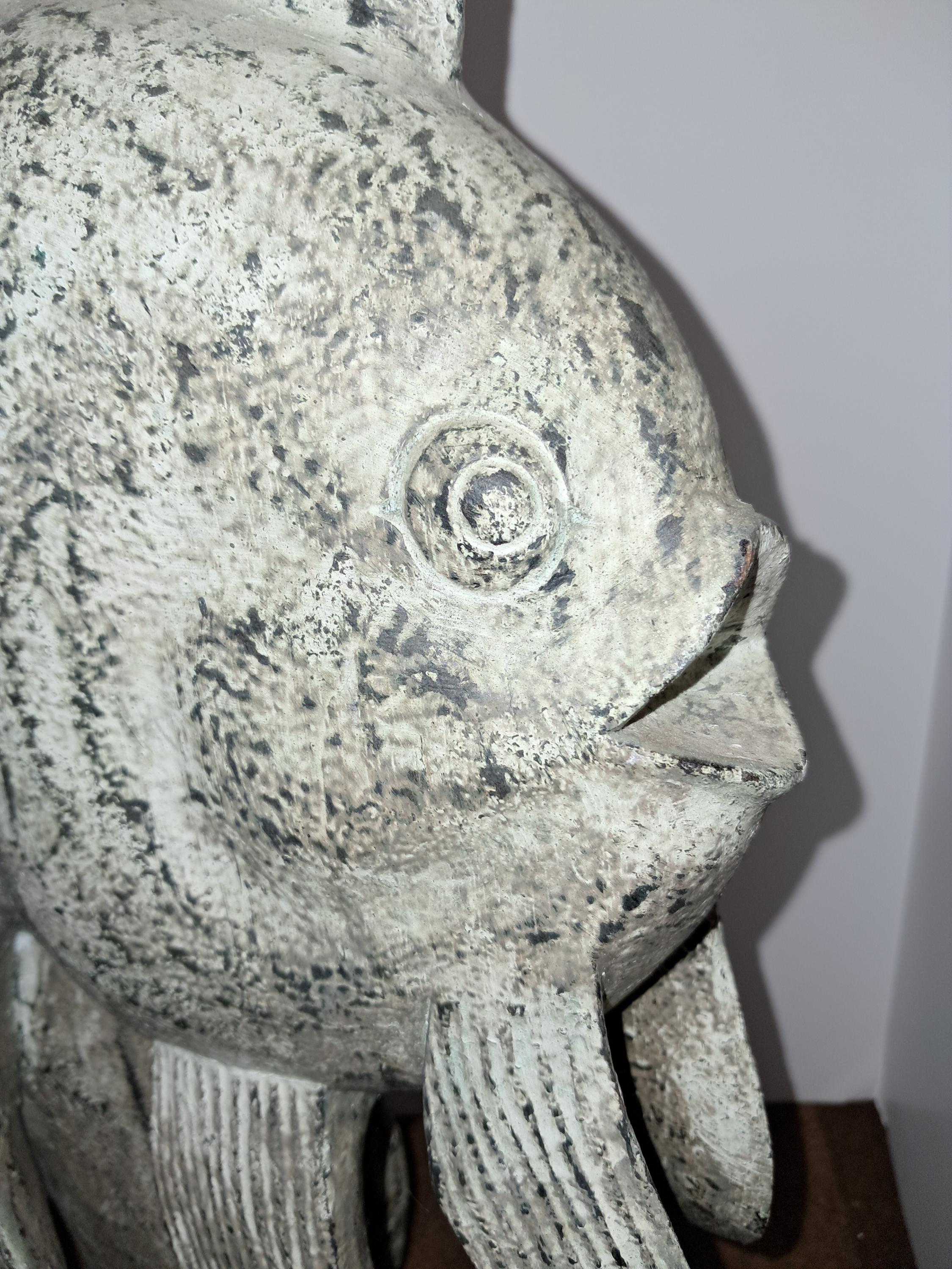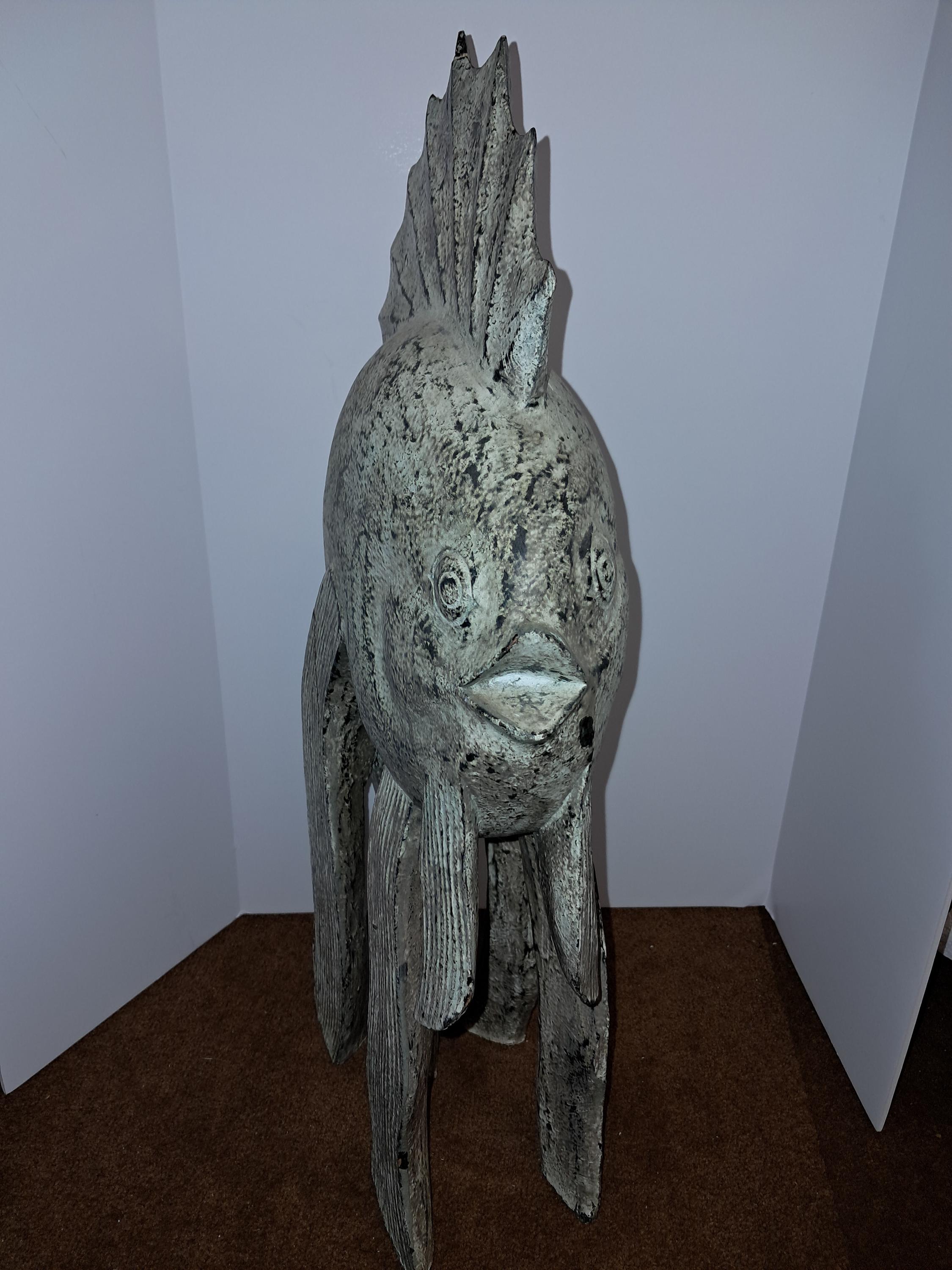 Handmade Fish Sculpture 20" tall x 8" wide x 4" deep Marked by the Artist Handmade Material Wood Color: Green / Gray Estate Sale Find Circa Mid 20th Century