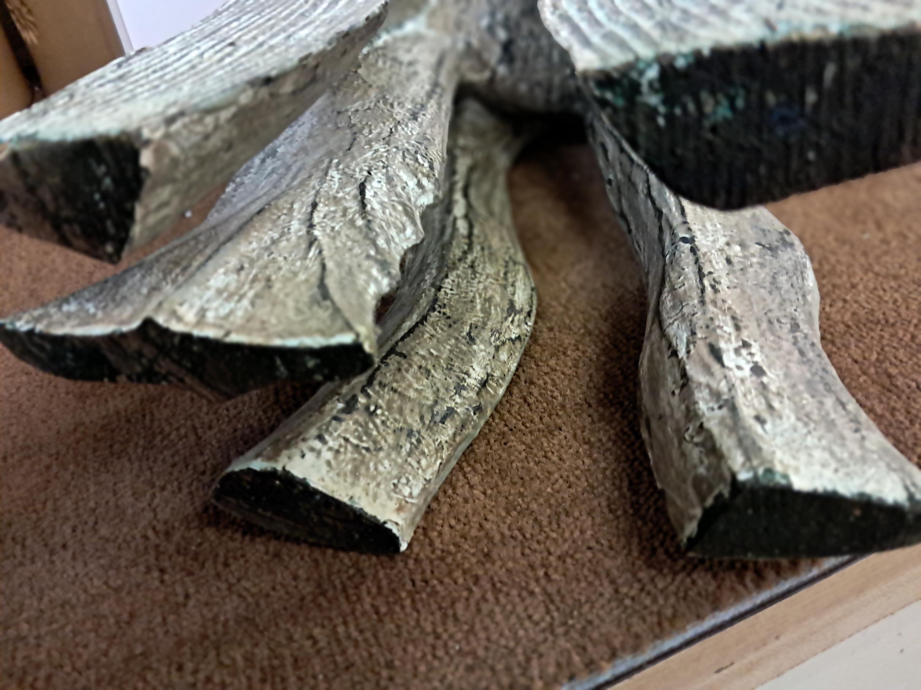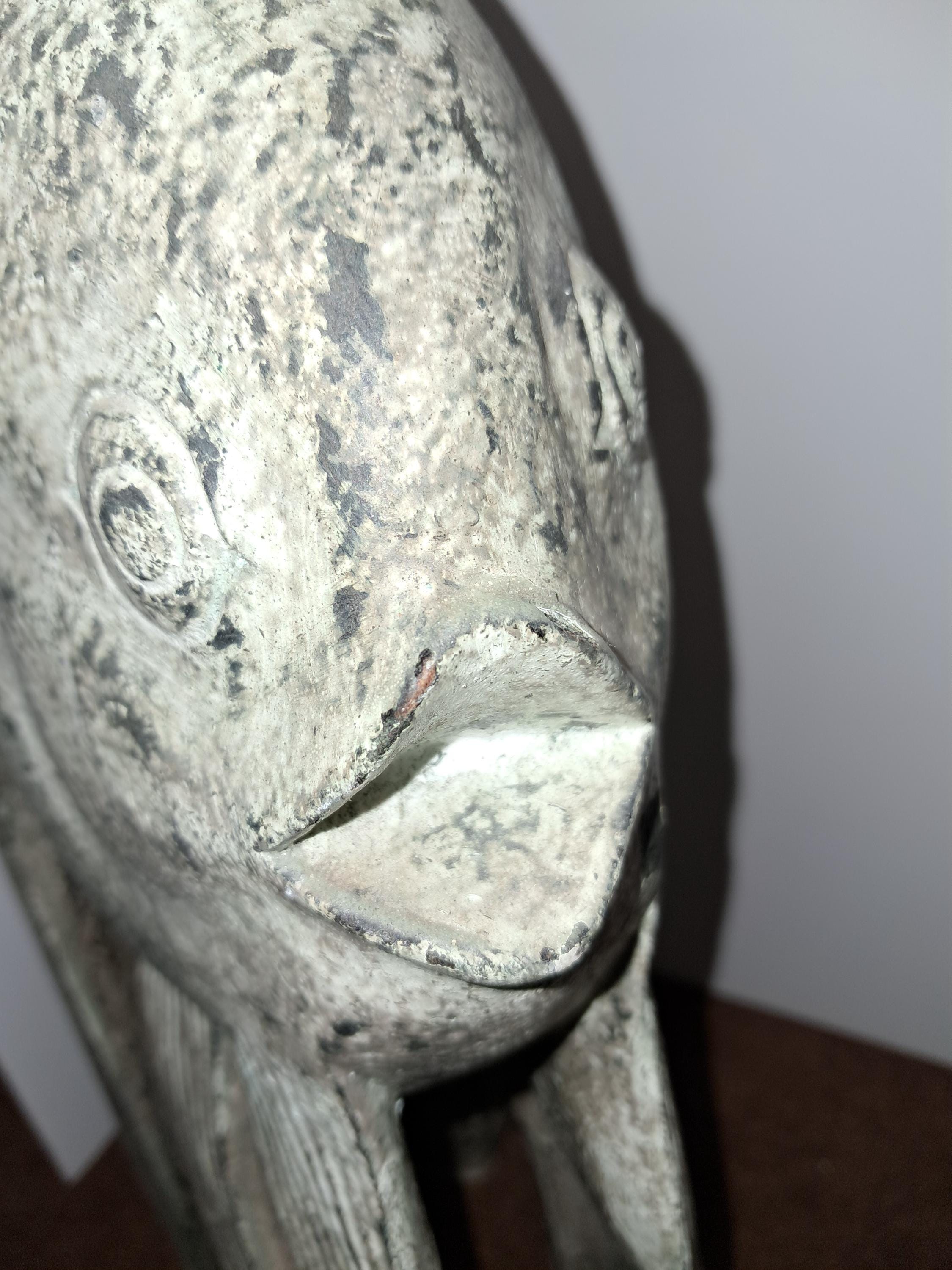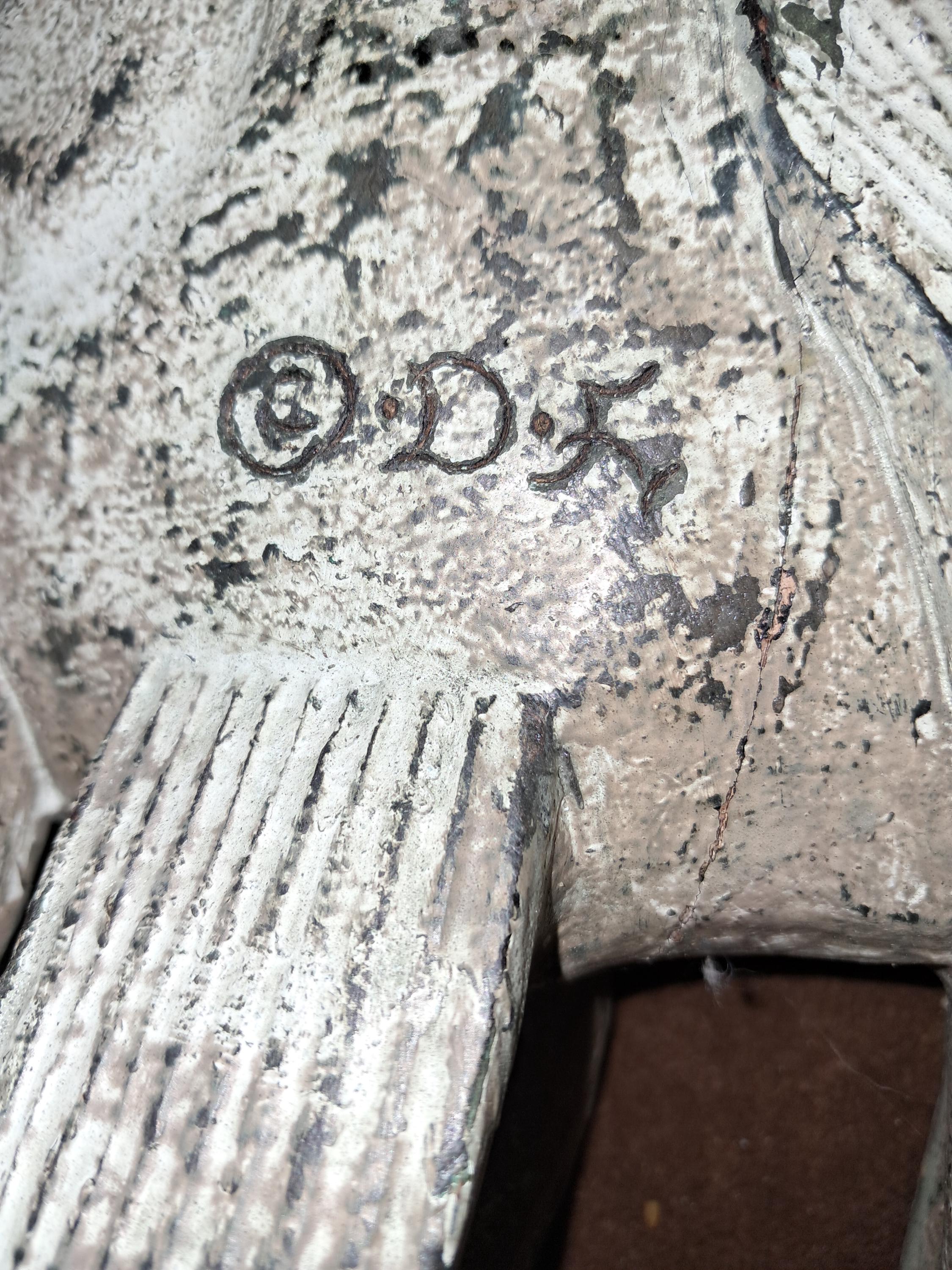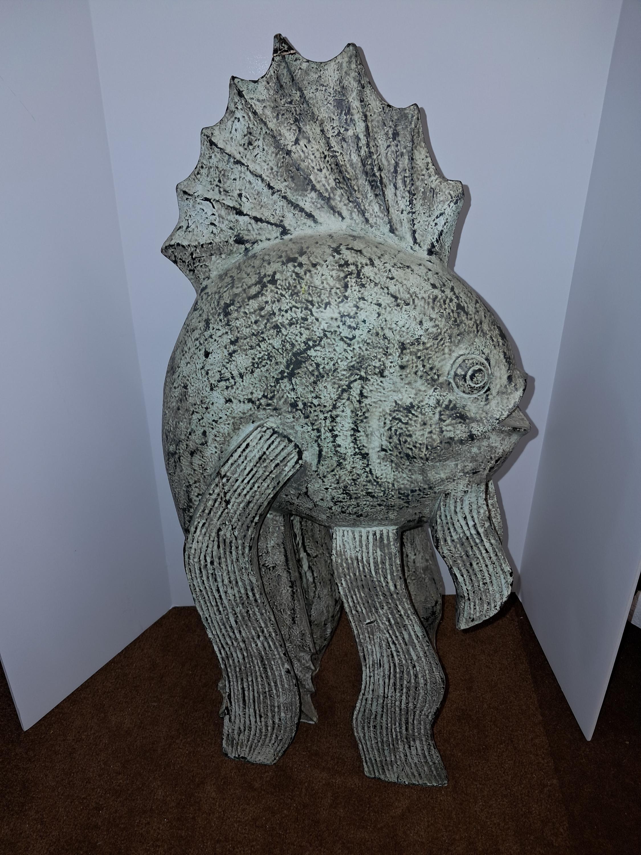 Handmade Fish Sculpture 20" tall x 8" wide x 4" deep Marked by the Artist Handmade Material Wood Color: Green / Gray Estate Sale Find Circa Mid 20th Century