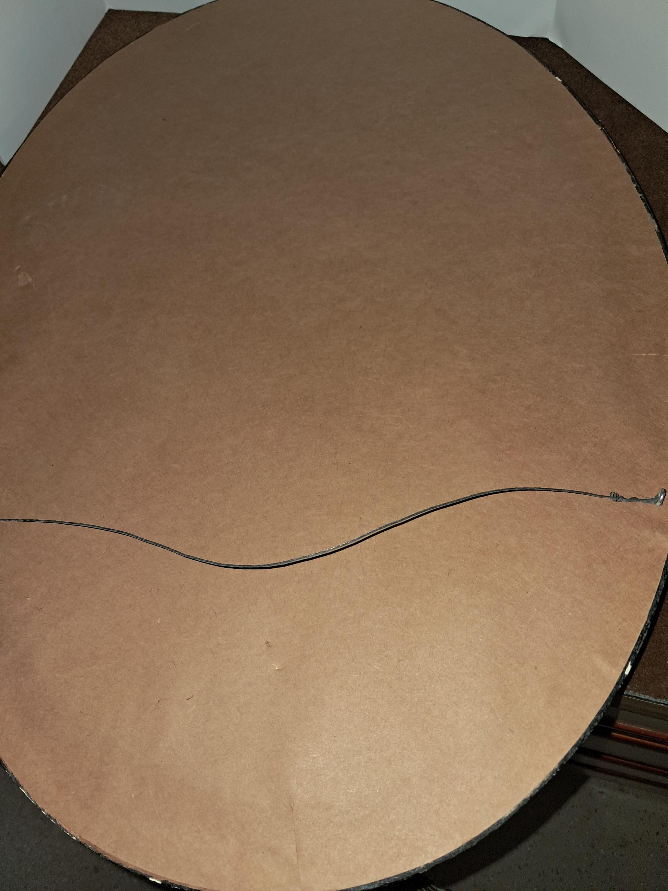 • Oval shape with heavy wood frame