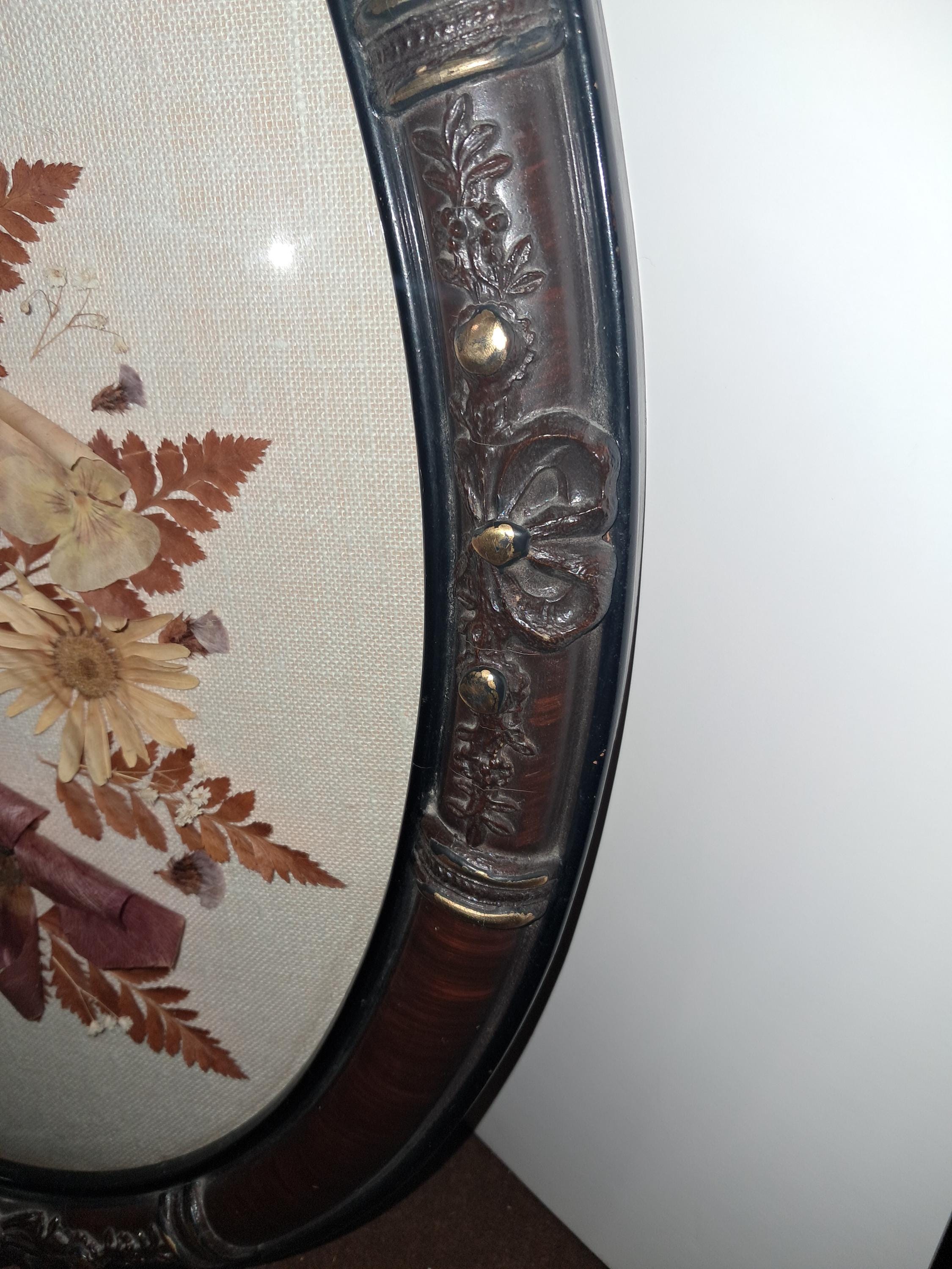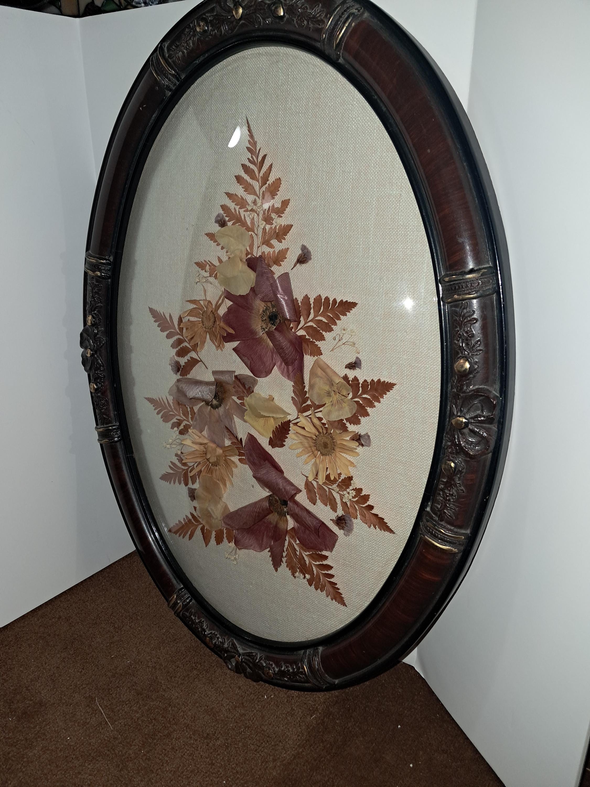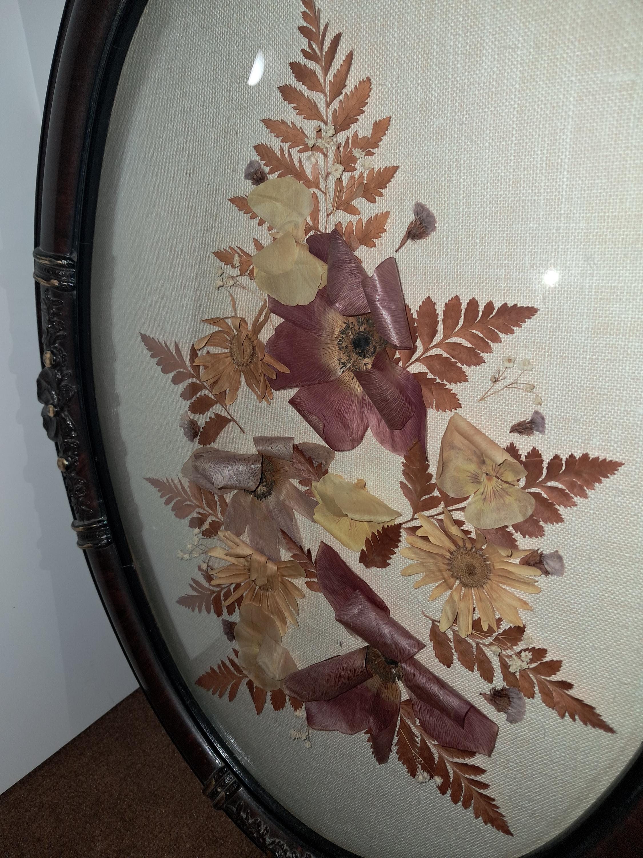 Vintage Dried Flowers Under Glass Oval Wall Hanging Plaque