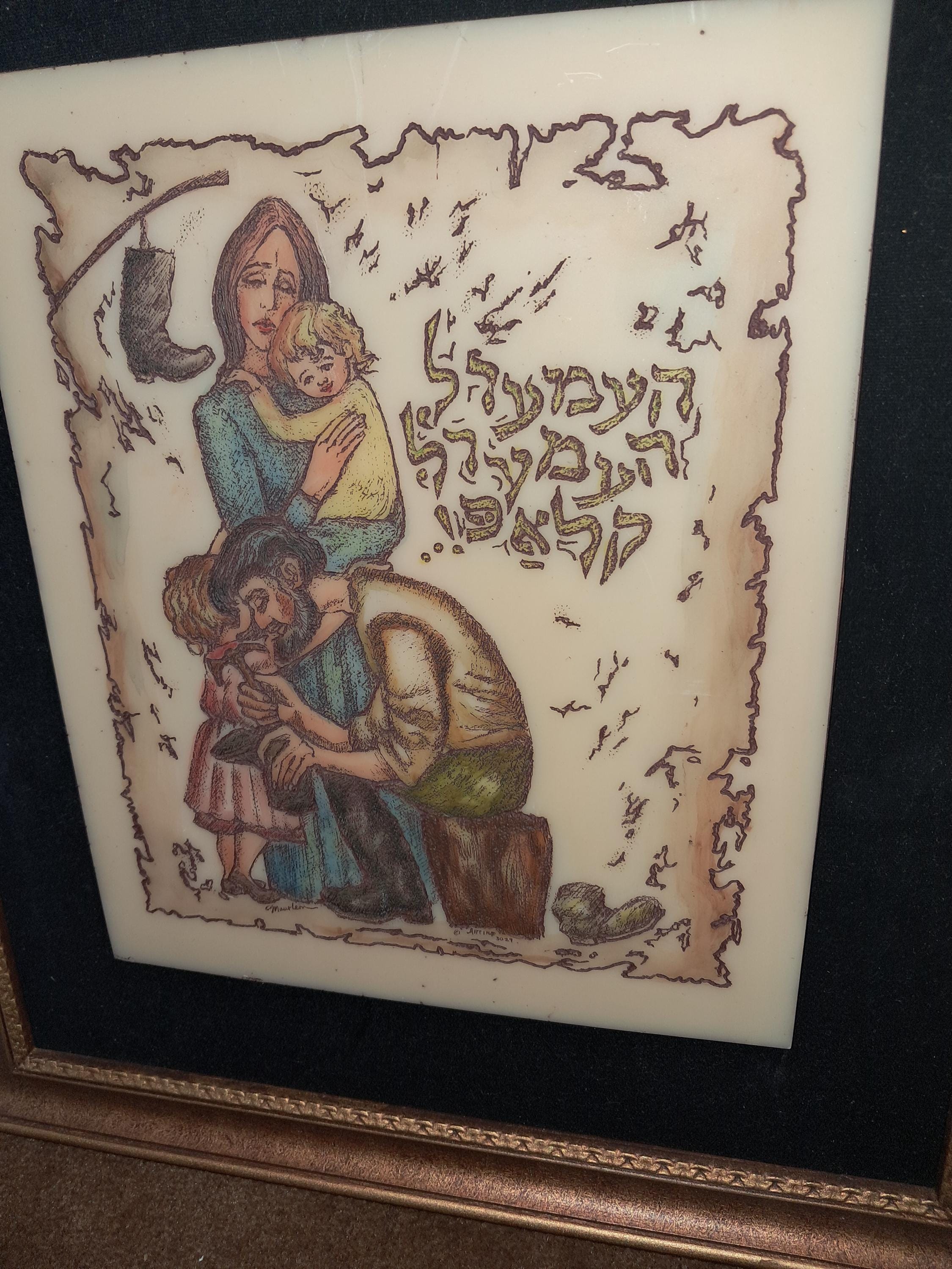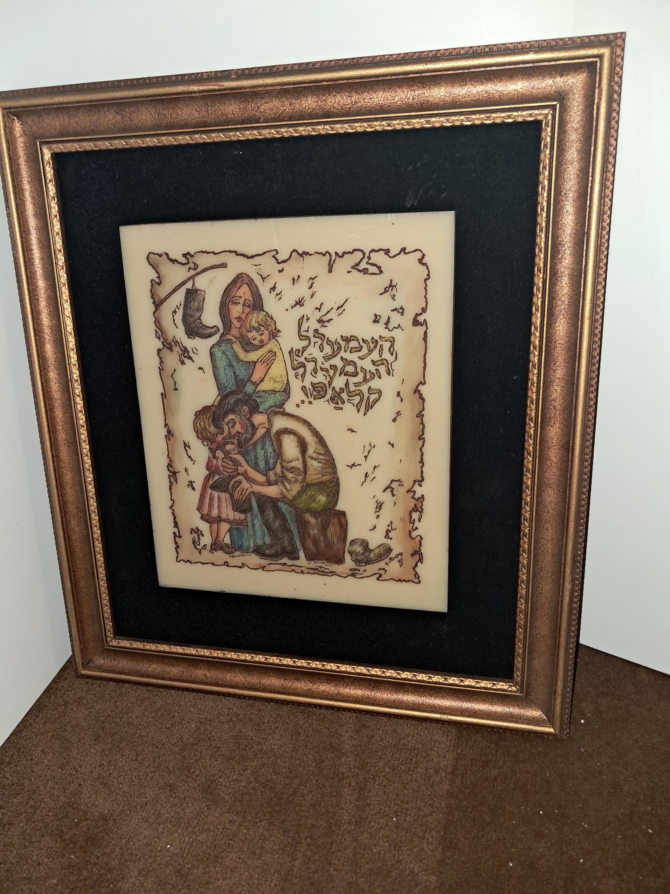 Artini Jewish Judaica Art Engraving On Tile Resin Acrylic Featuring Family 16.5" tall x 14.5" wide x 1" deep Excellent Condition No Damages