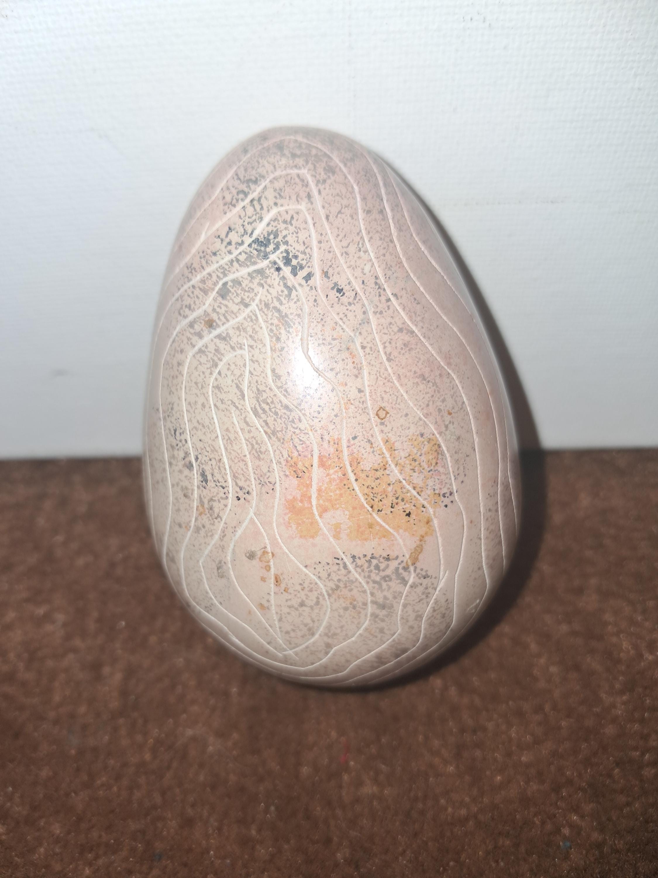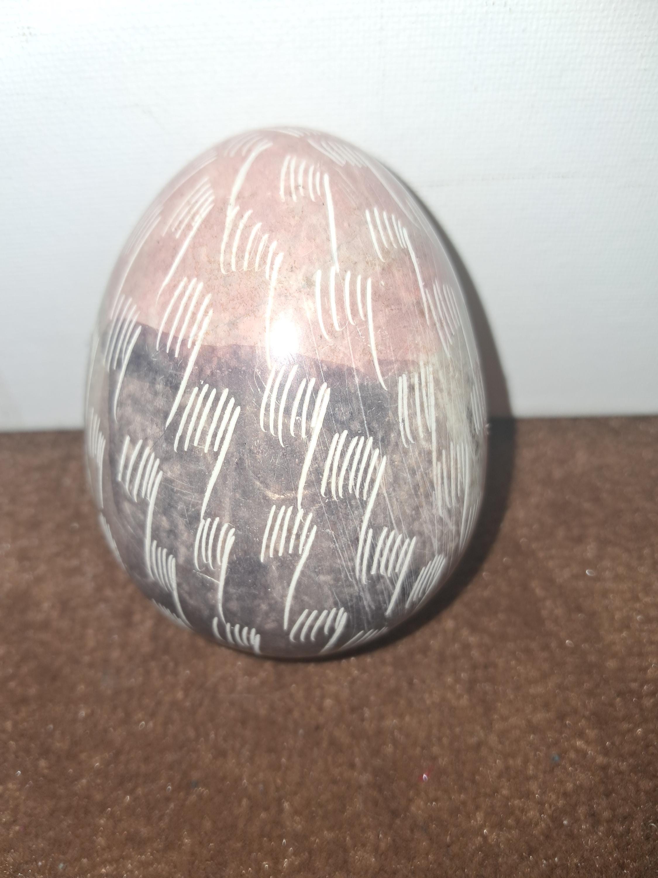 Hand Carved African Egg, Vintage Carved Stone Egg, Black and Pink Egg with Etched Design, Vintage Boho Home Decor, African Folk Art Egg