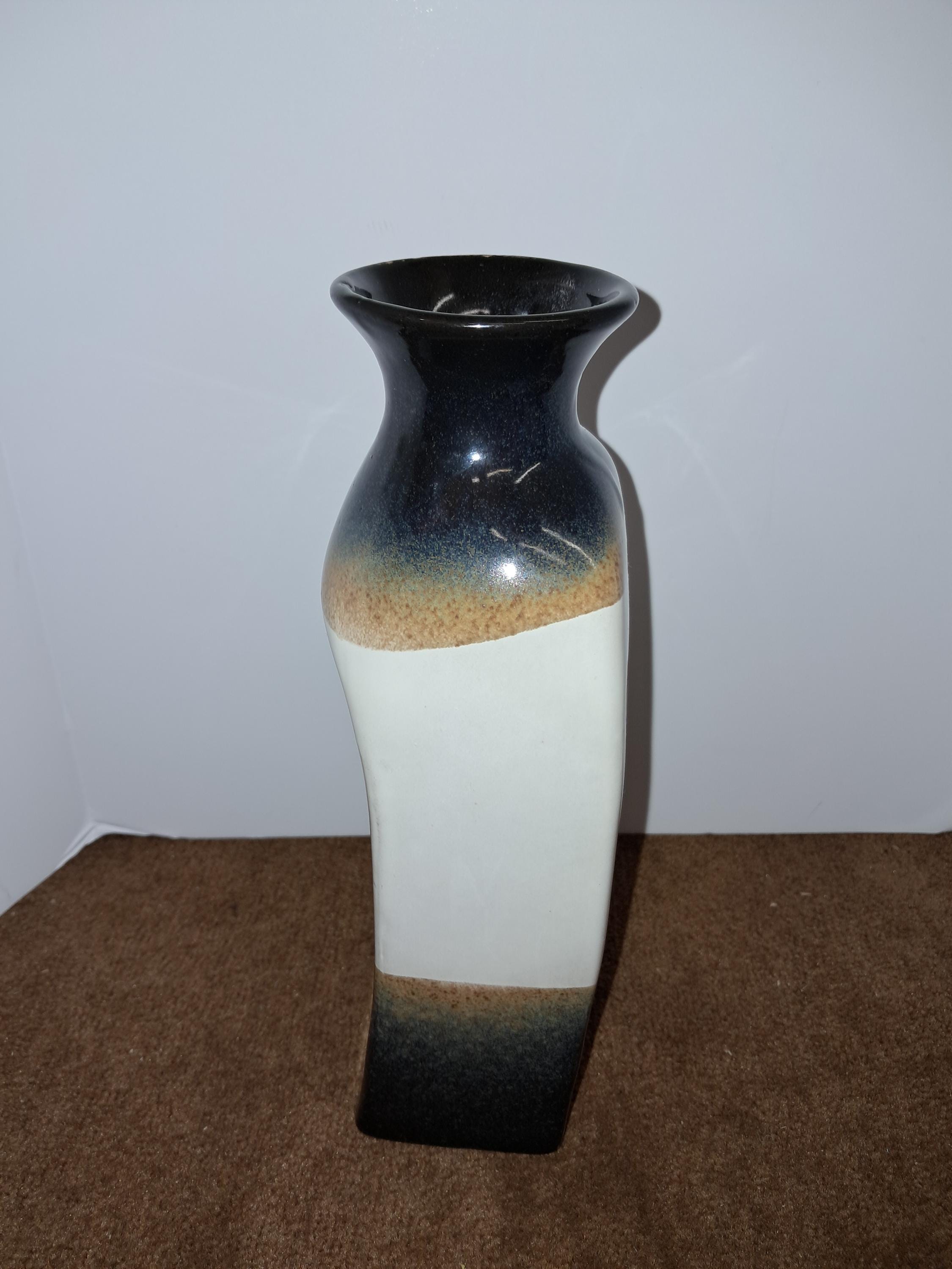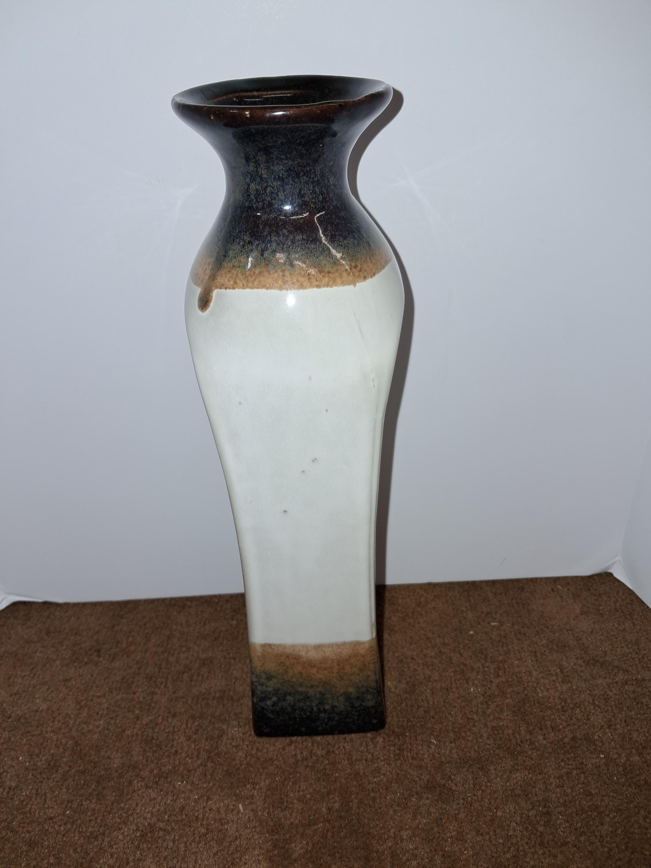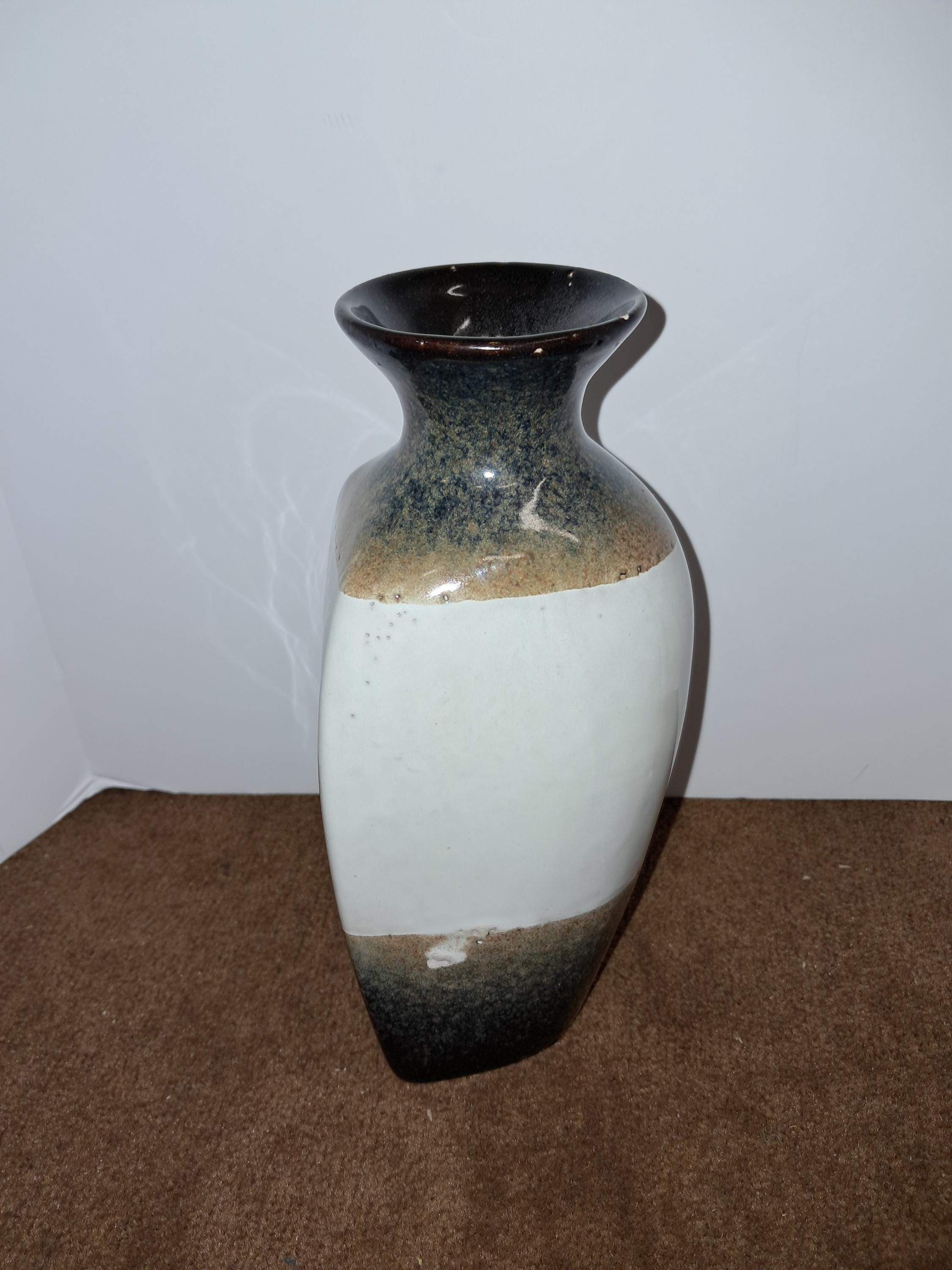 Elements Reactive Nesting Vases - set of 5 in beige and brown drip glaze style. Vases can be used as a unit nested or separated - really beautiful and interesting set. Vintage Elements Reactive Nesting Flower Vase 5 Set Beige Brown Ceramic Decorative