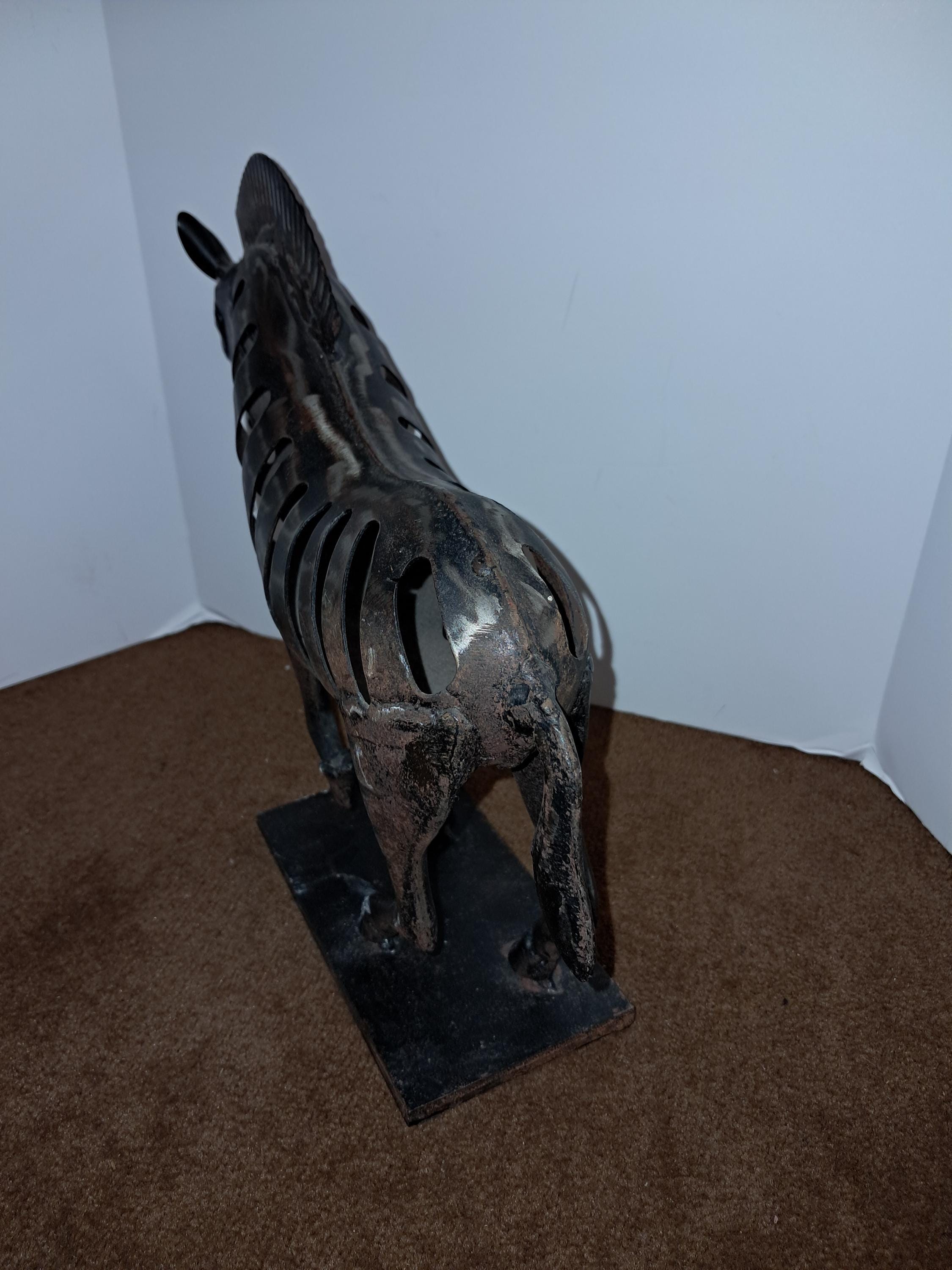 Vintage Brutalist Modern Sculpture Metal Running Zebra Horse Art Stripes