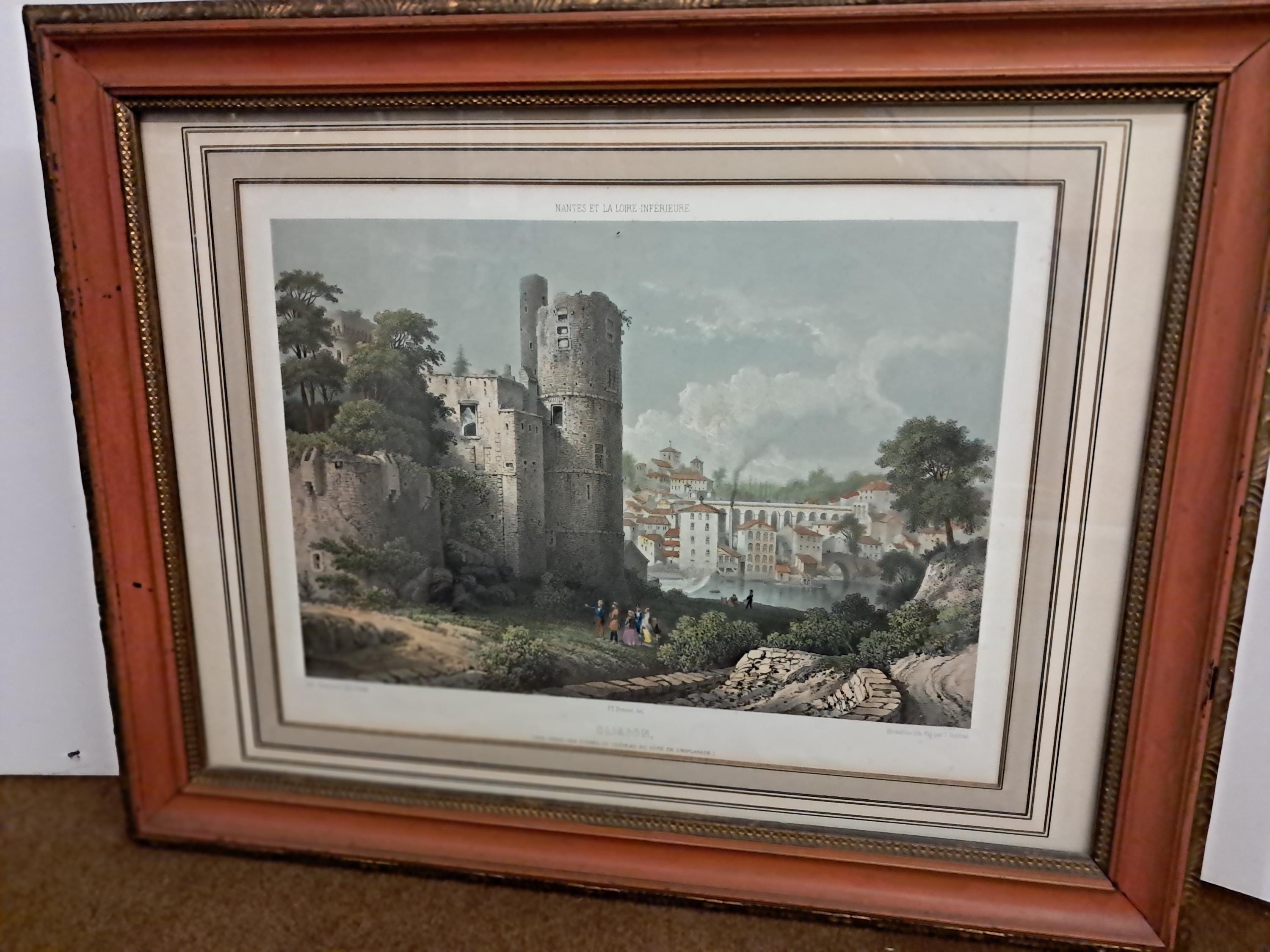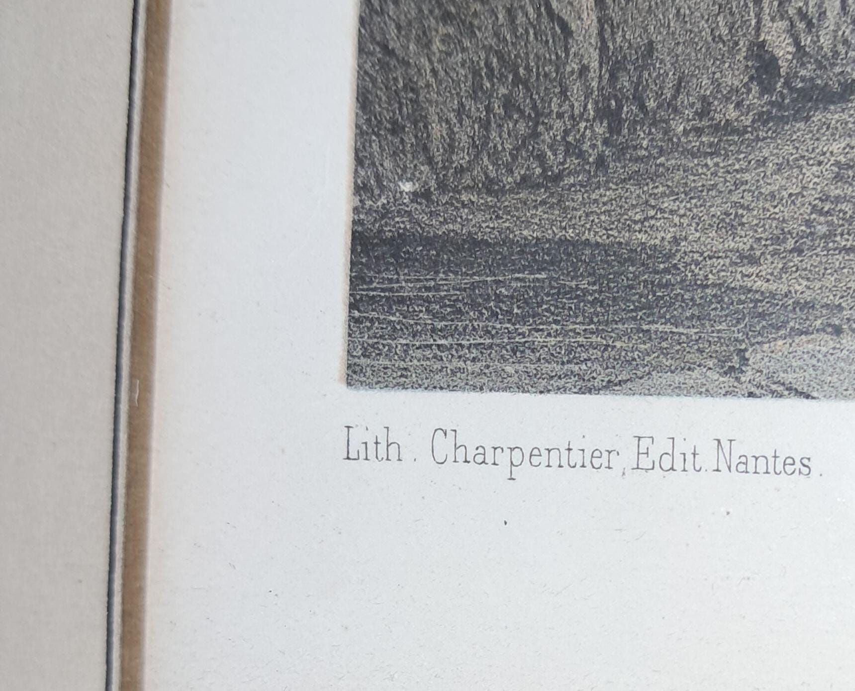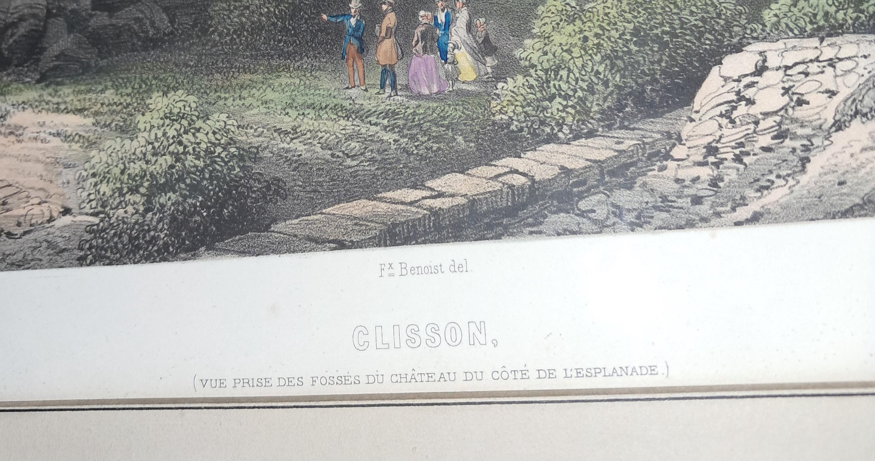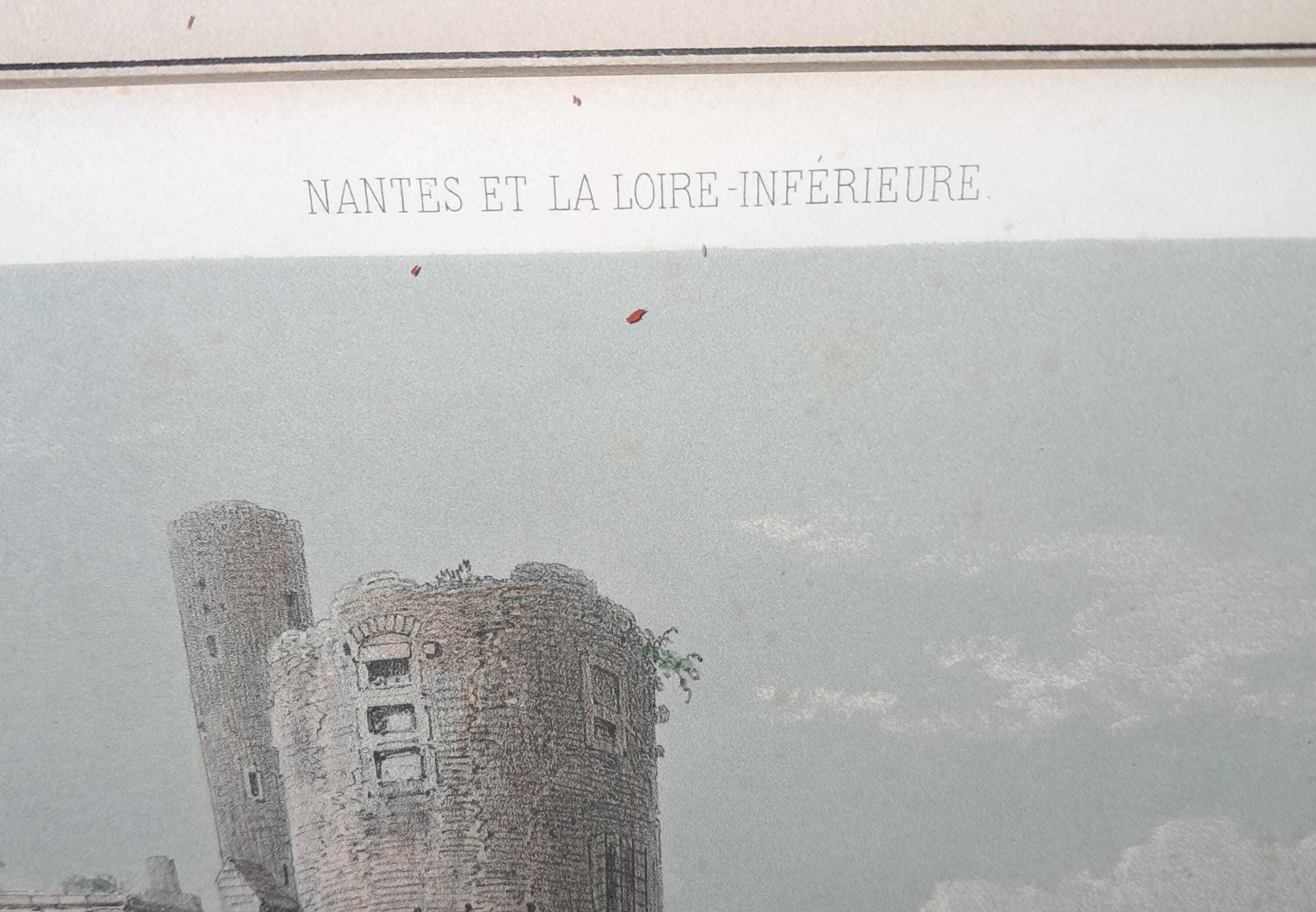 The Castle in Clisson, France lithograph likely refers to depictions of the Château de Clisson in western France, specifically in the Loire-Atlantique department. Lithographs, a type of printing technique, were popular in the 19th century for capturing scenes like this. The castle is a medieval structure located on the Sèvre Nantaise river