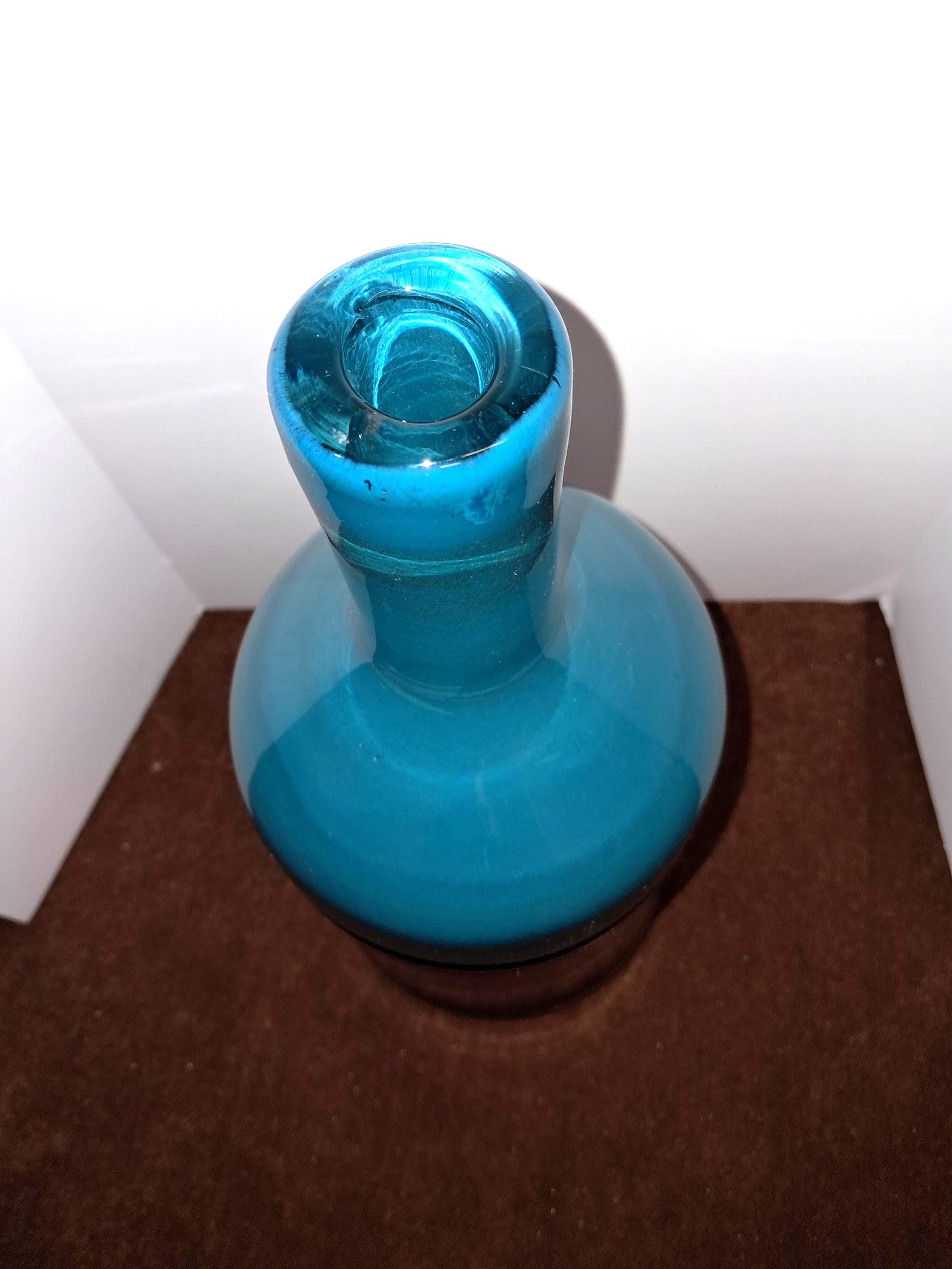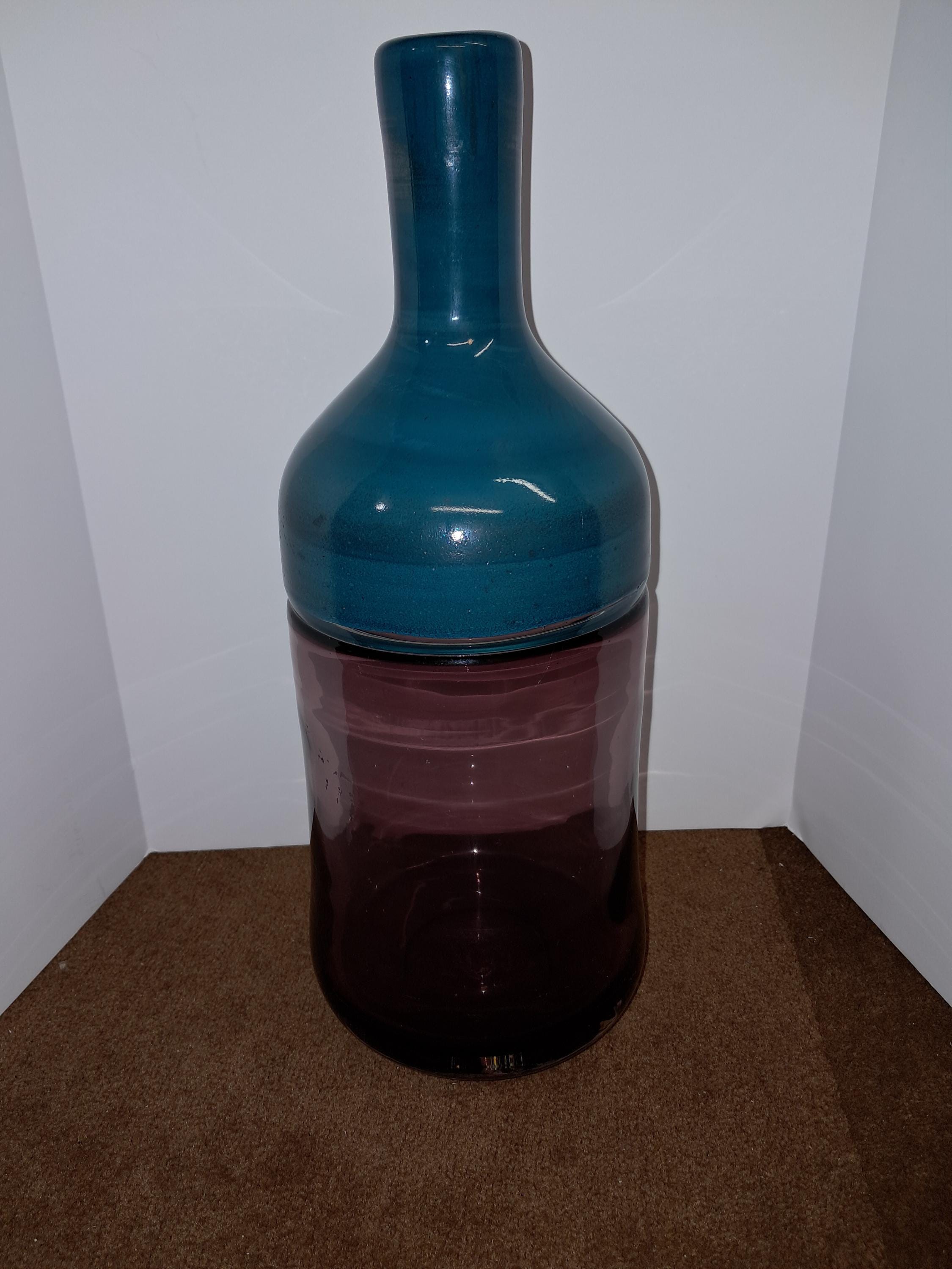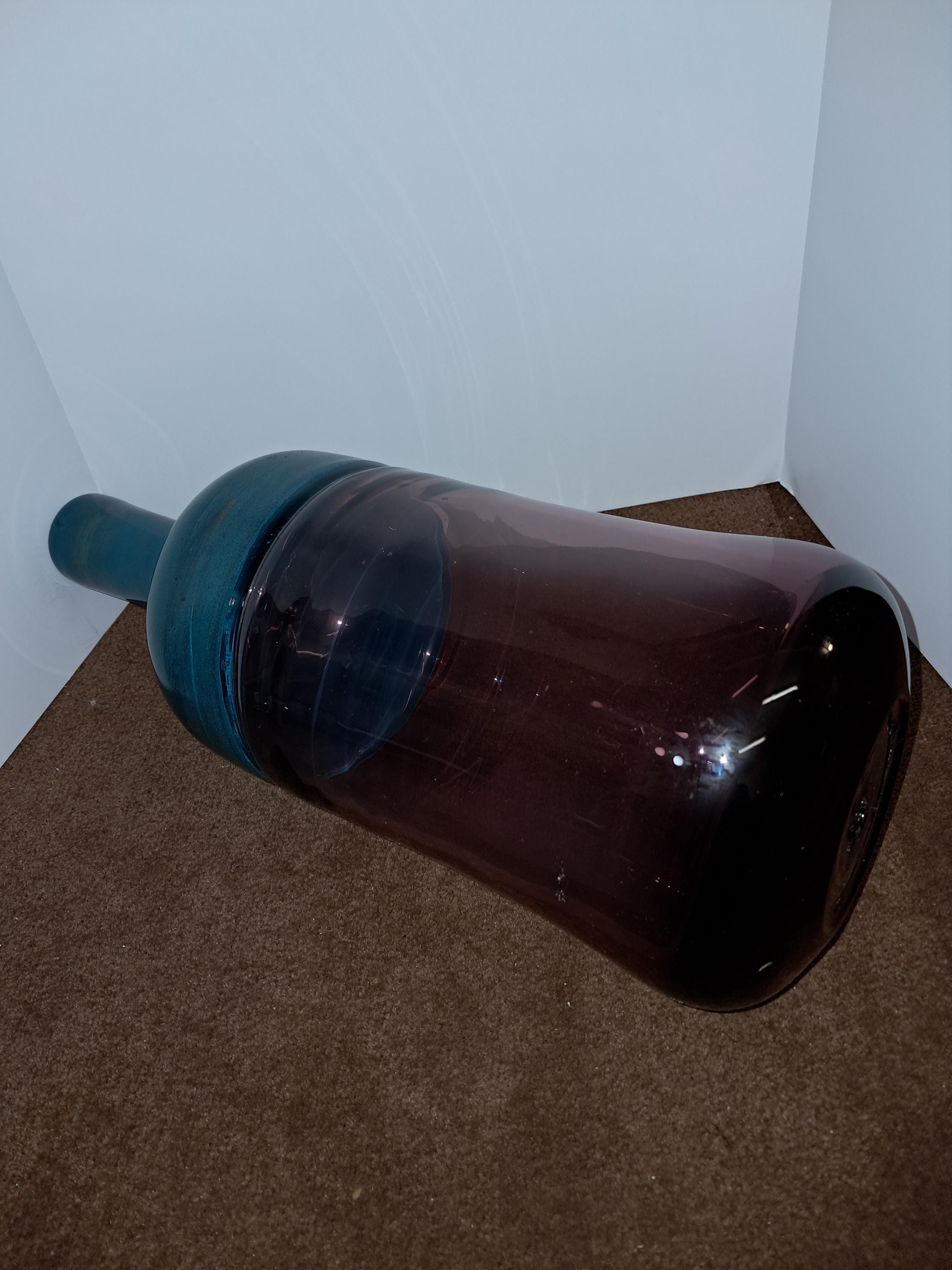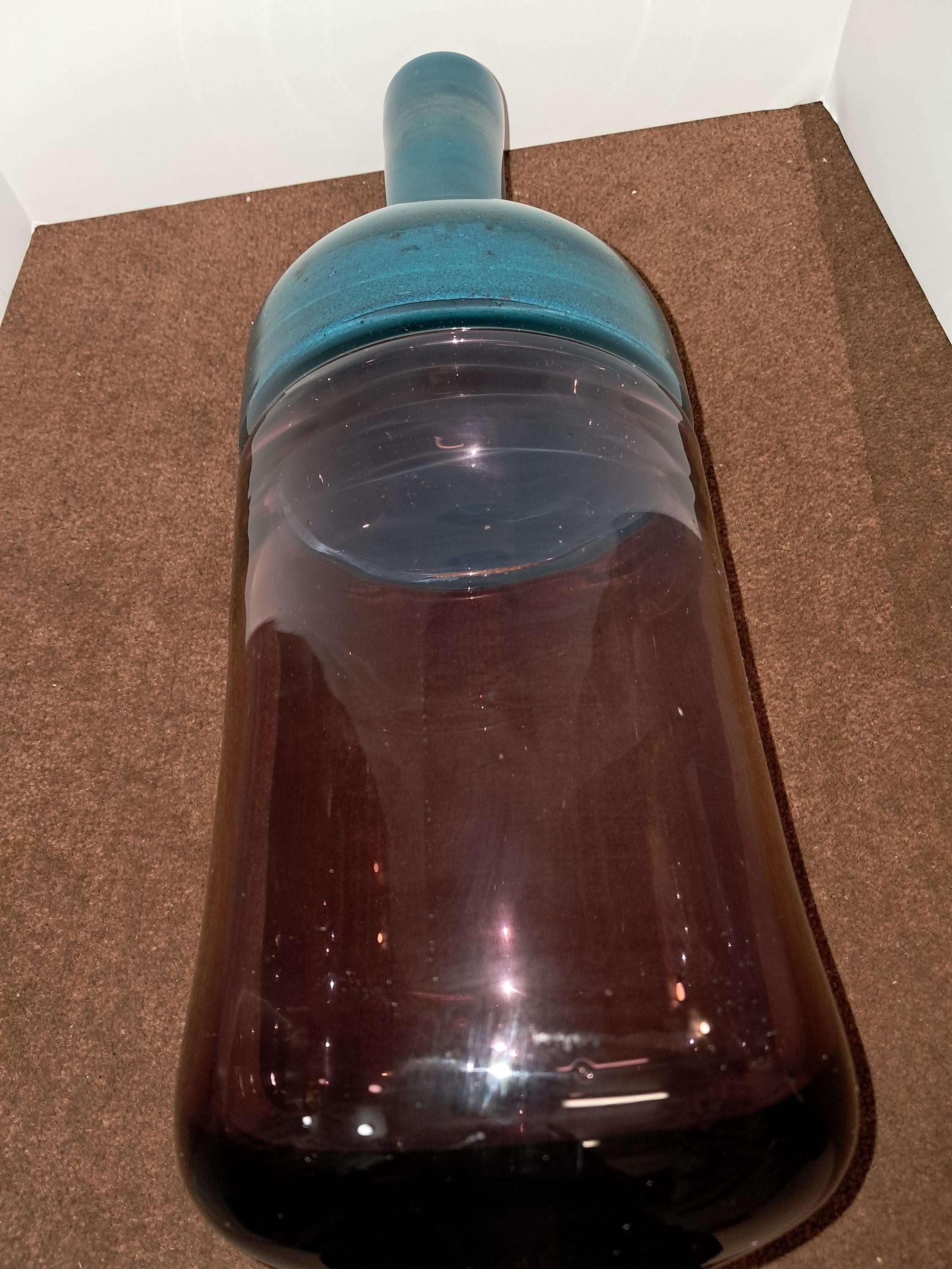 Large Handmade Two Tone Sapphire/ Brown Vintage Bottle15" tall x 7" in diameterHandmadeNo Marking Circa Mid 20th centuryEstate Sale Find Excellent Condition