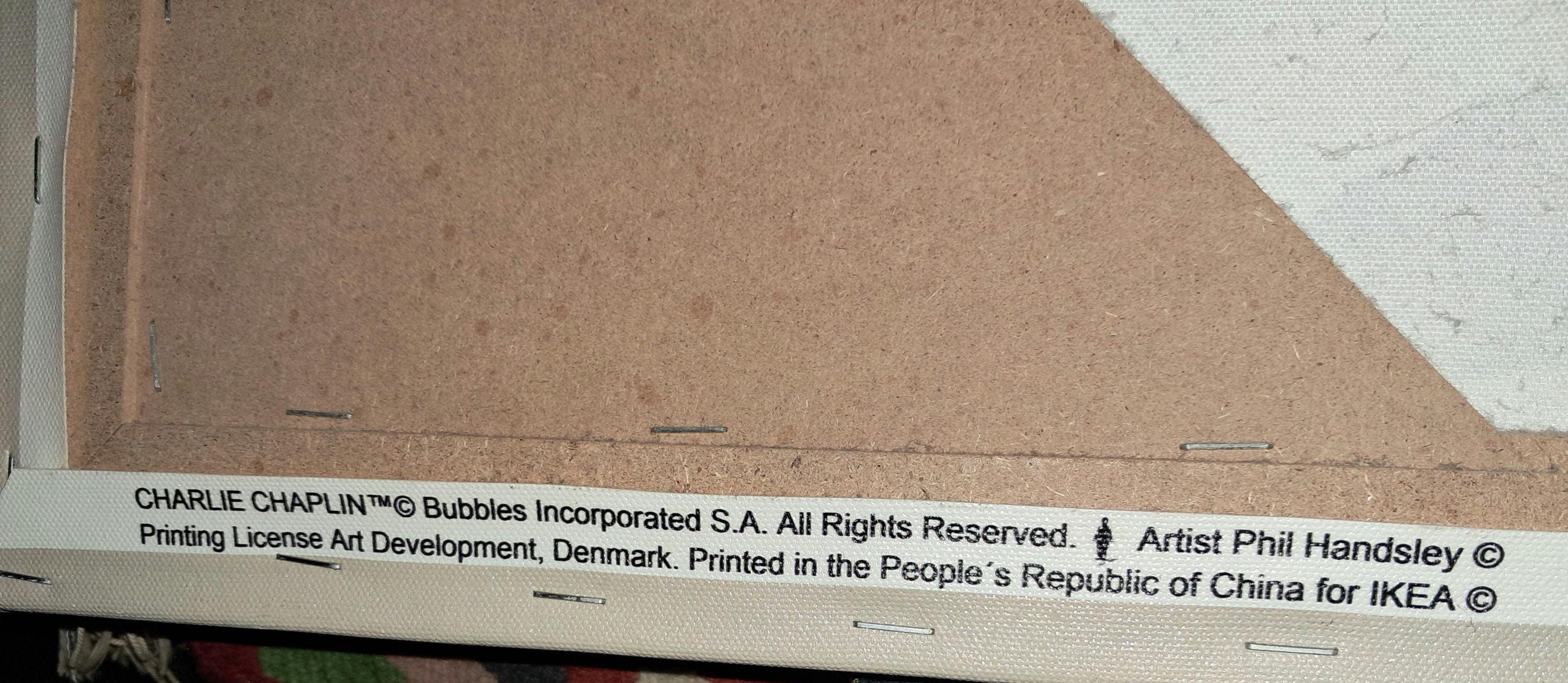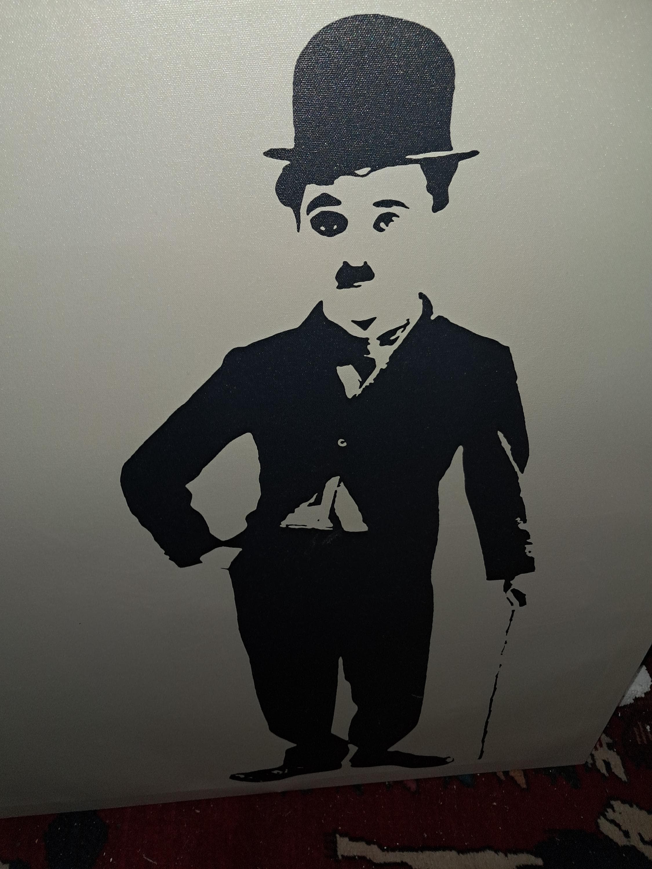 Phill Handley Art Work of Charlie Chaplin For Ikea, Canvas PrintStretched Canvas on wood frame print35.5 " x 35.5" x .75" Excellent Condition