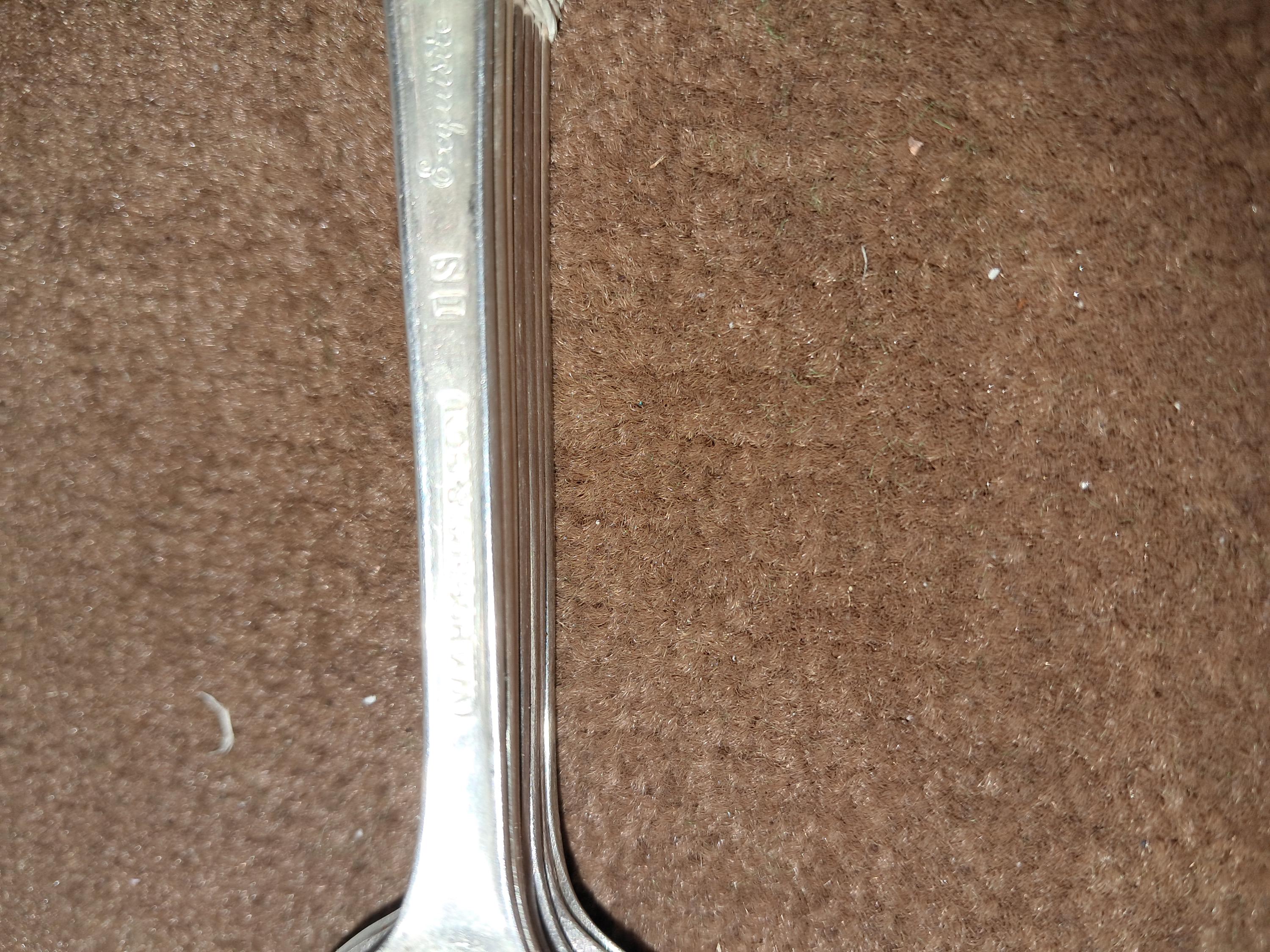 Exquisite by Wm Rogers & Son IS, International Silver Company, 1940 silverplate flatware pattern exemplifies mid-century design. The mirror finish and stylistic lines of this silverware are popular on today's table.