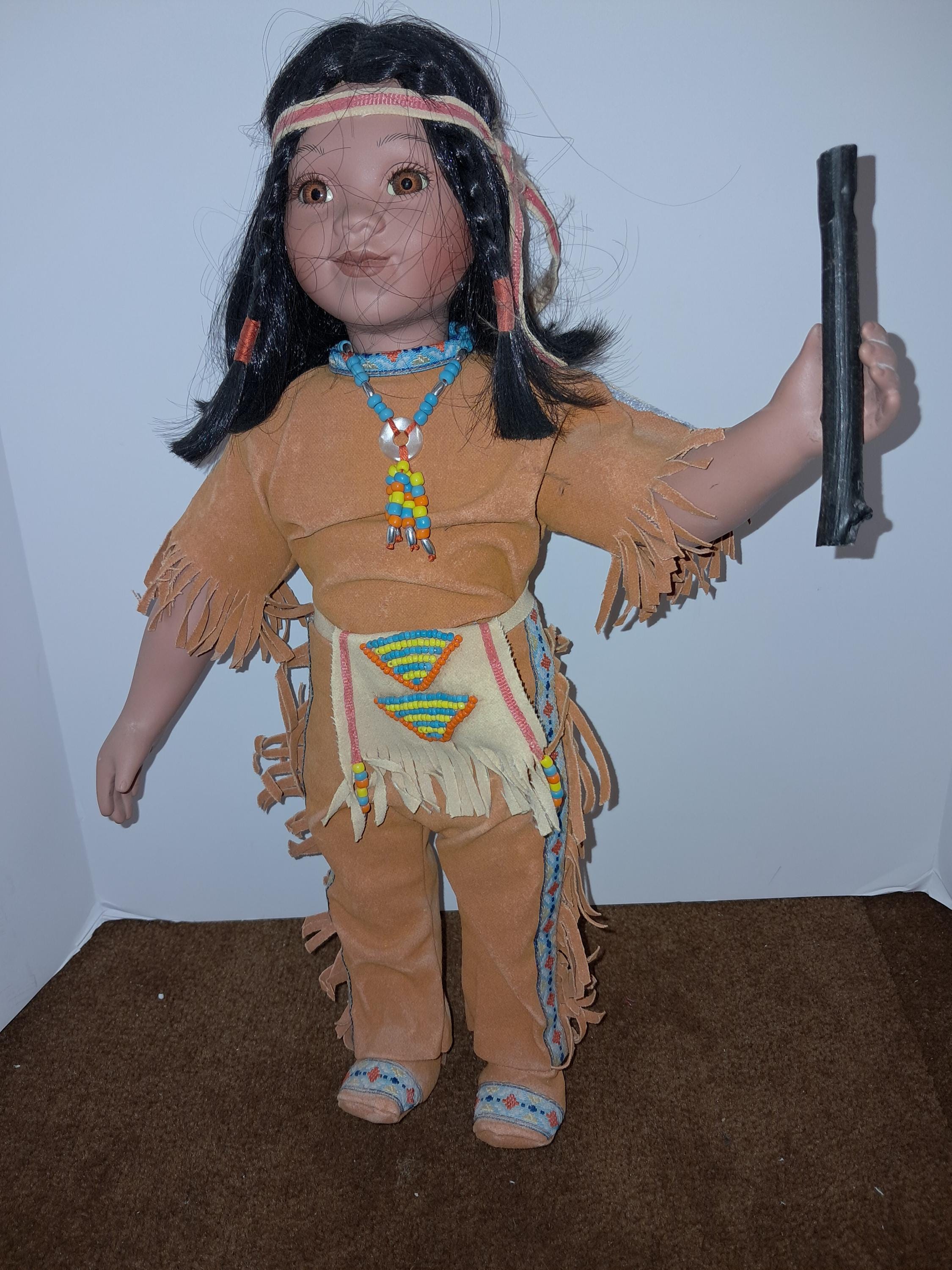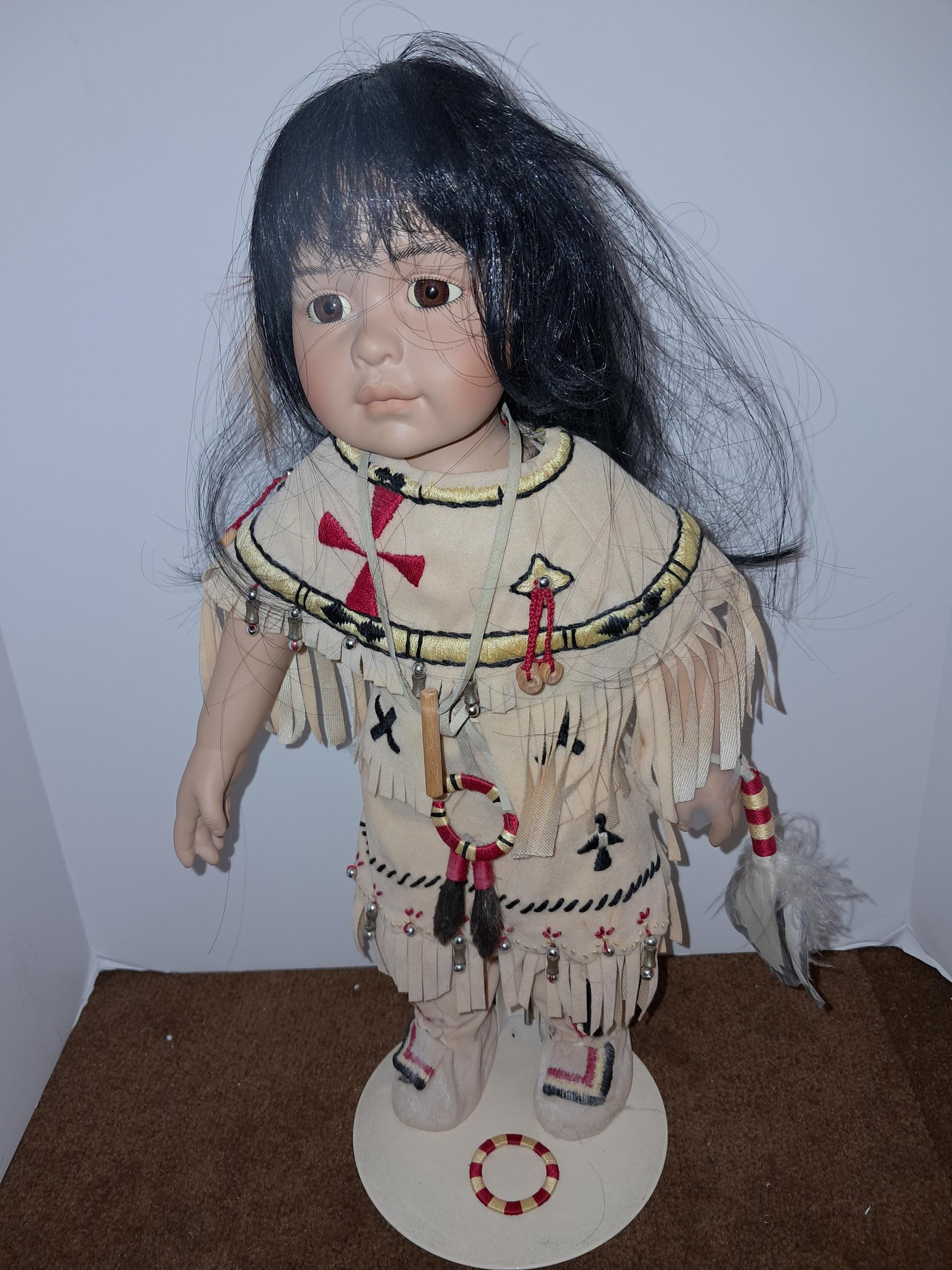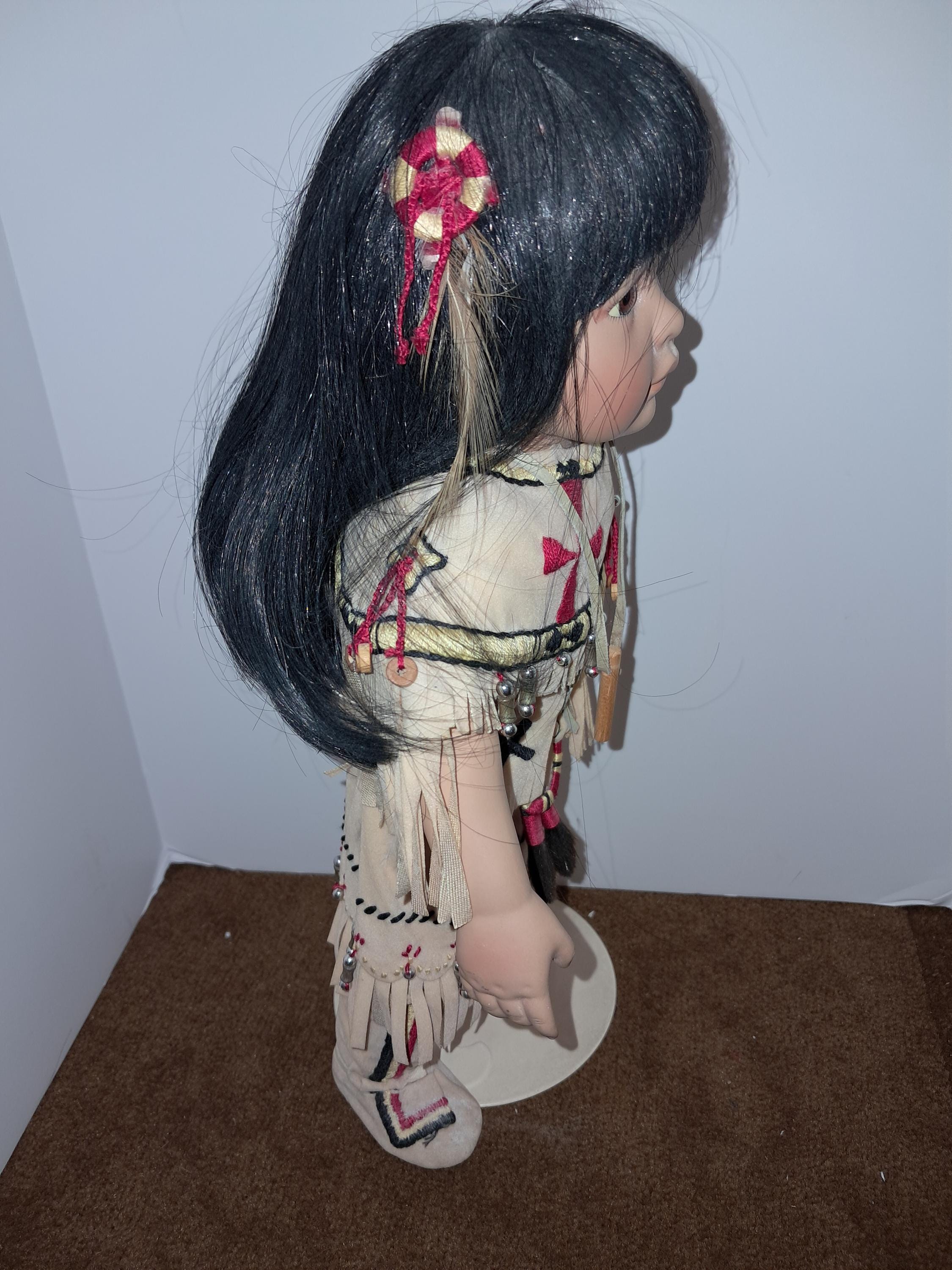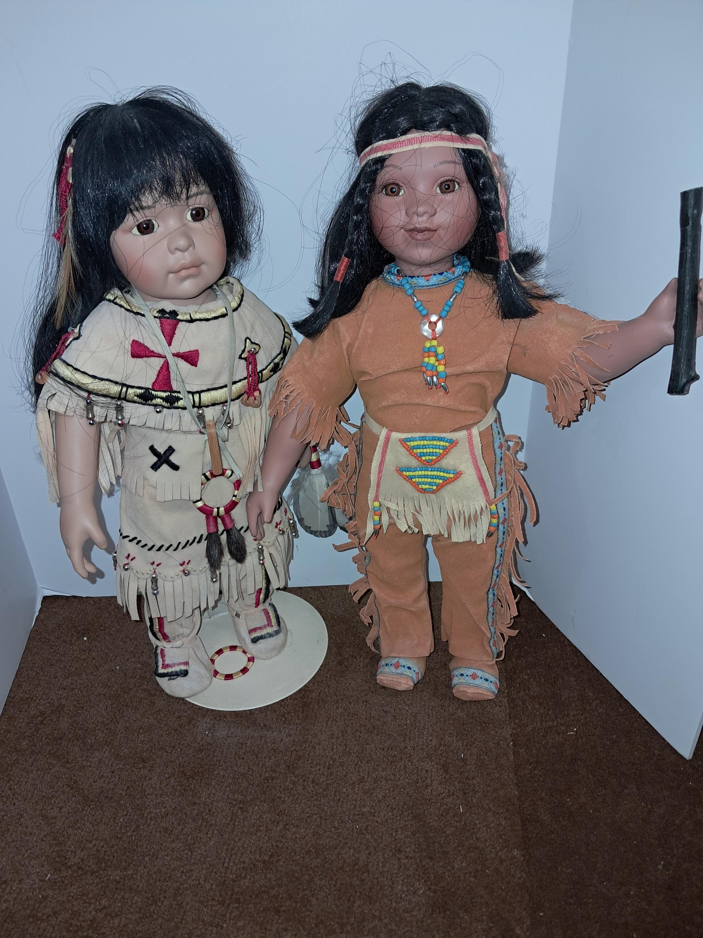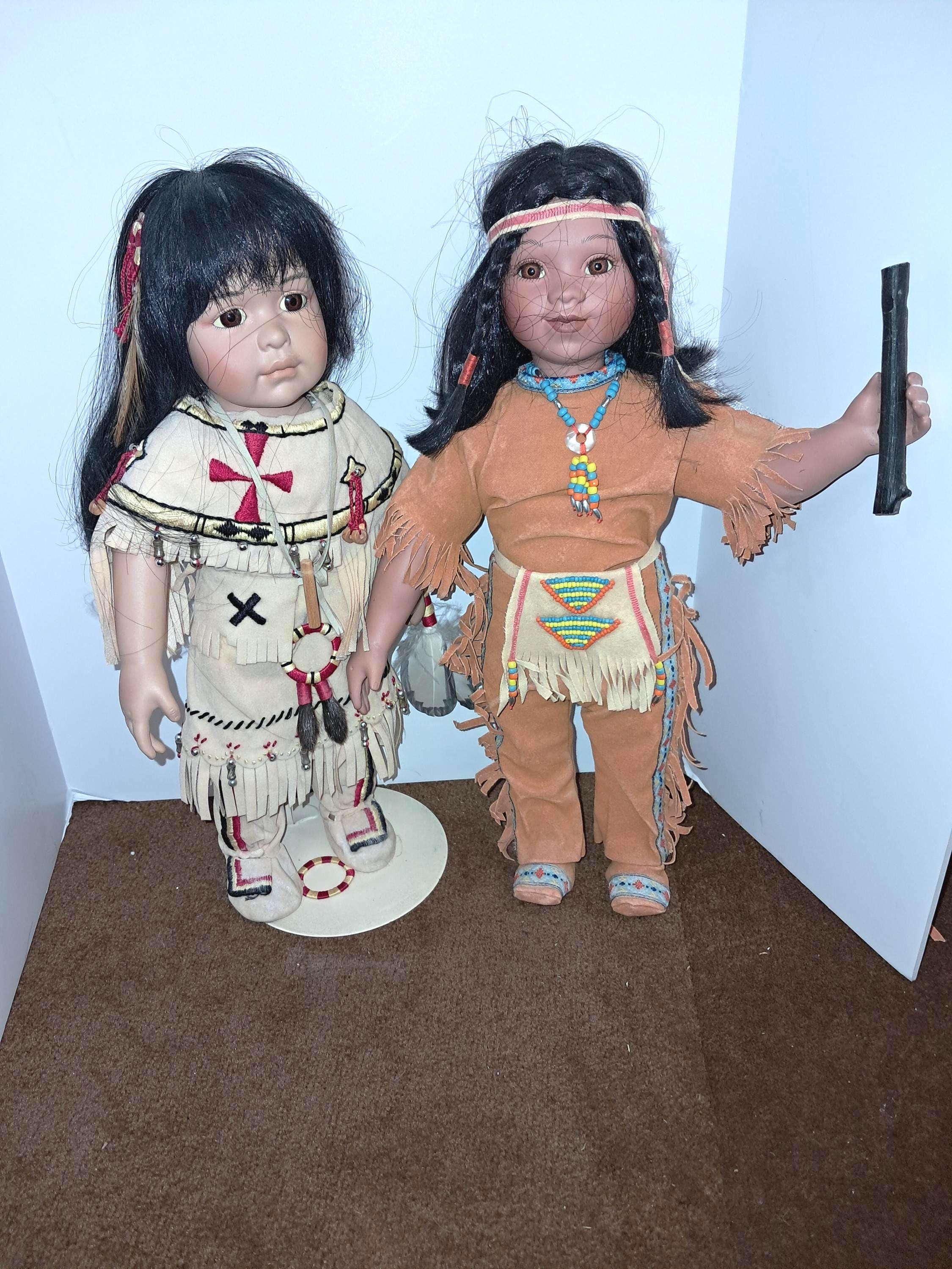 Pair of Vintage Buffalo Child Porcelain 13" Early 90s Native American Boy & Girl Dolls