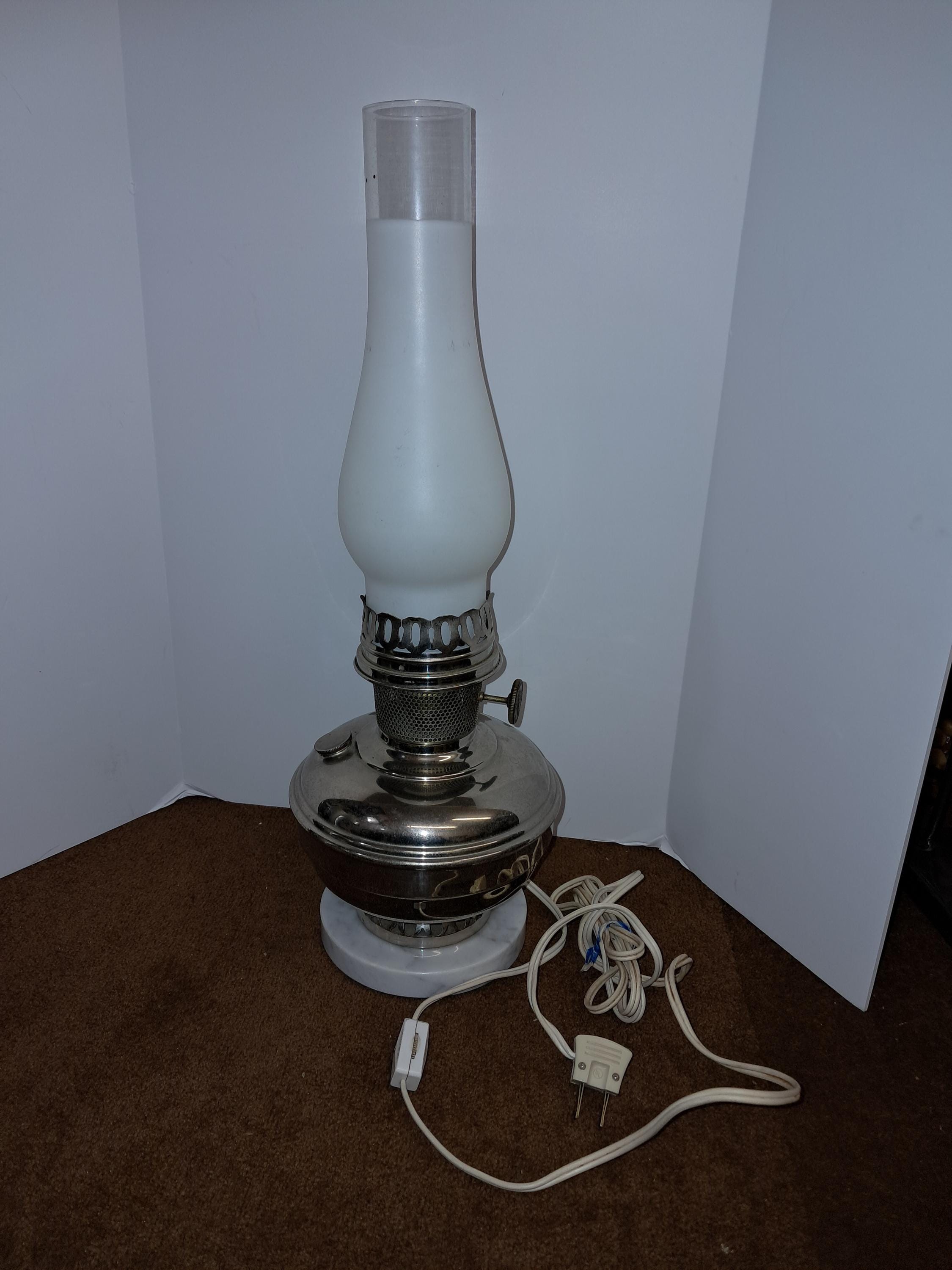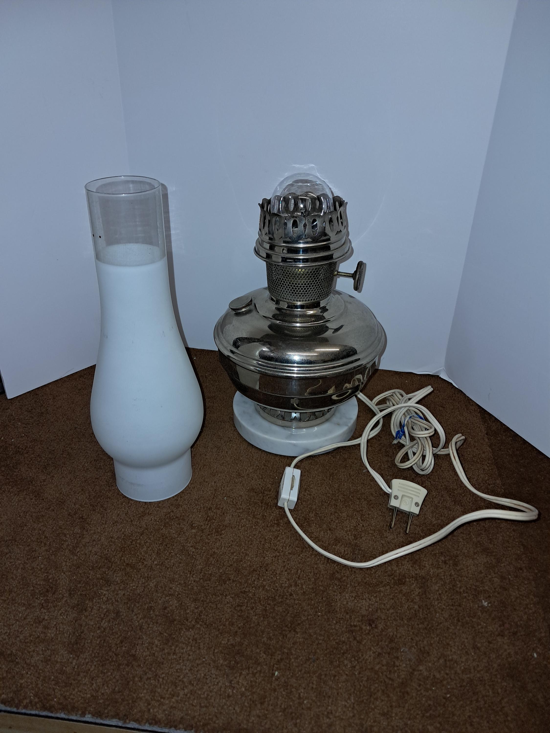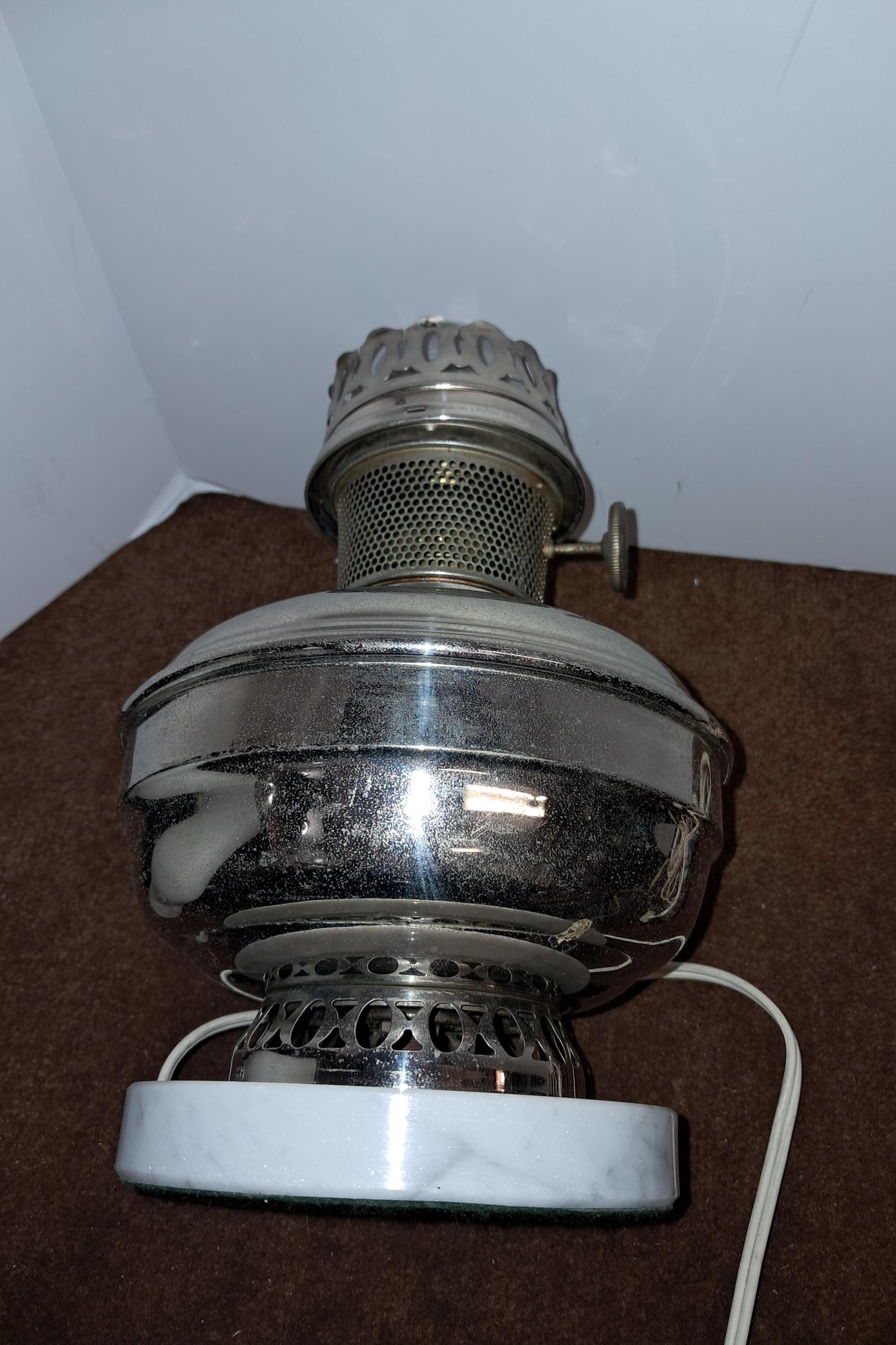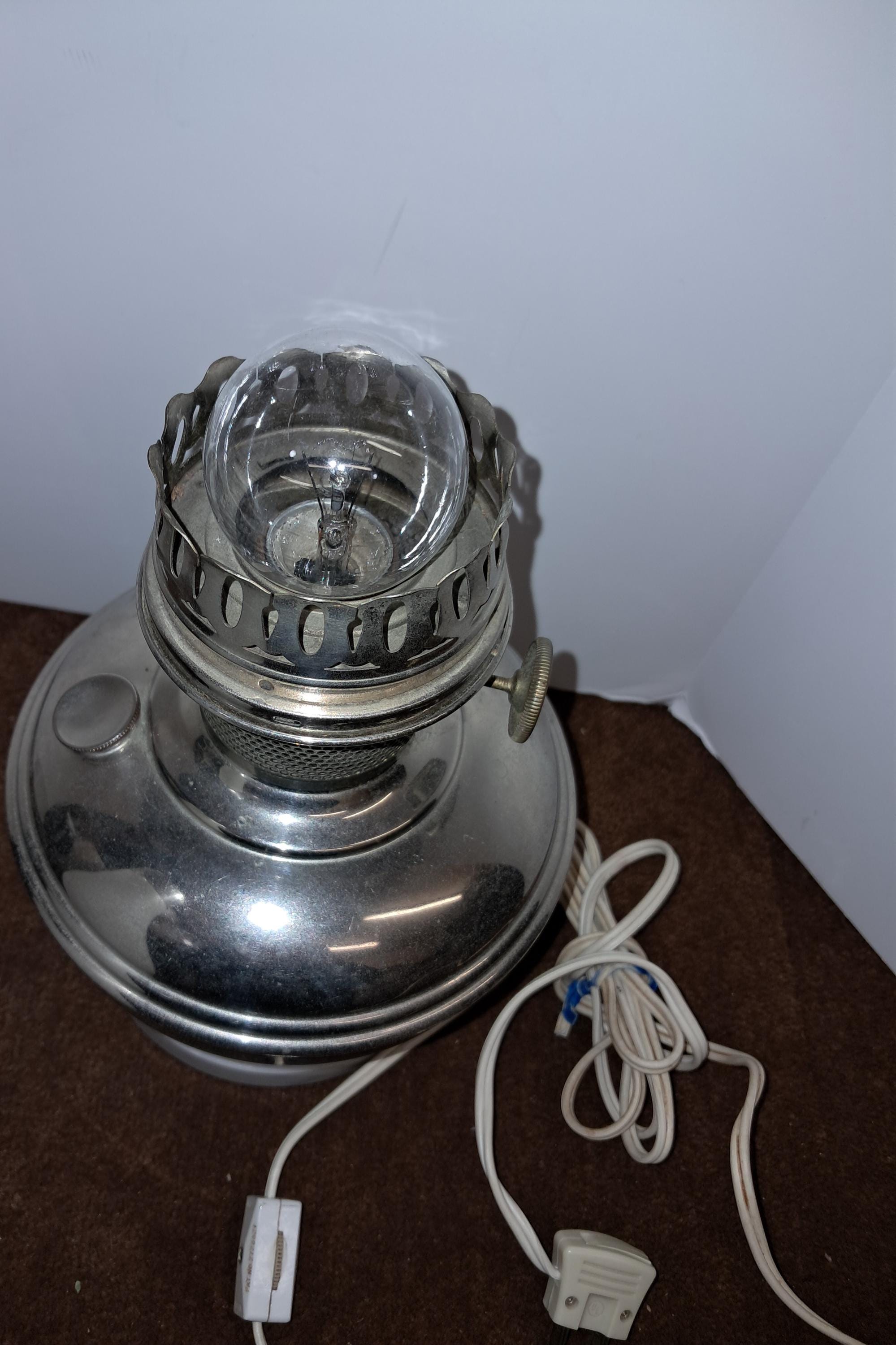 Midcentury vintage Aladdin oil lamp with glass shade, turned into elecyric lamp