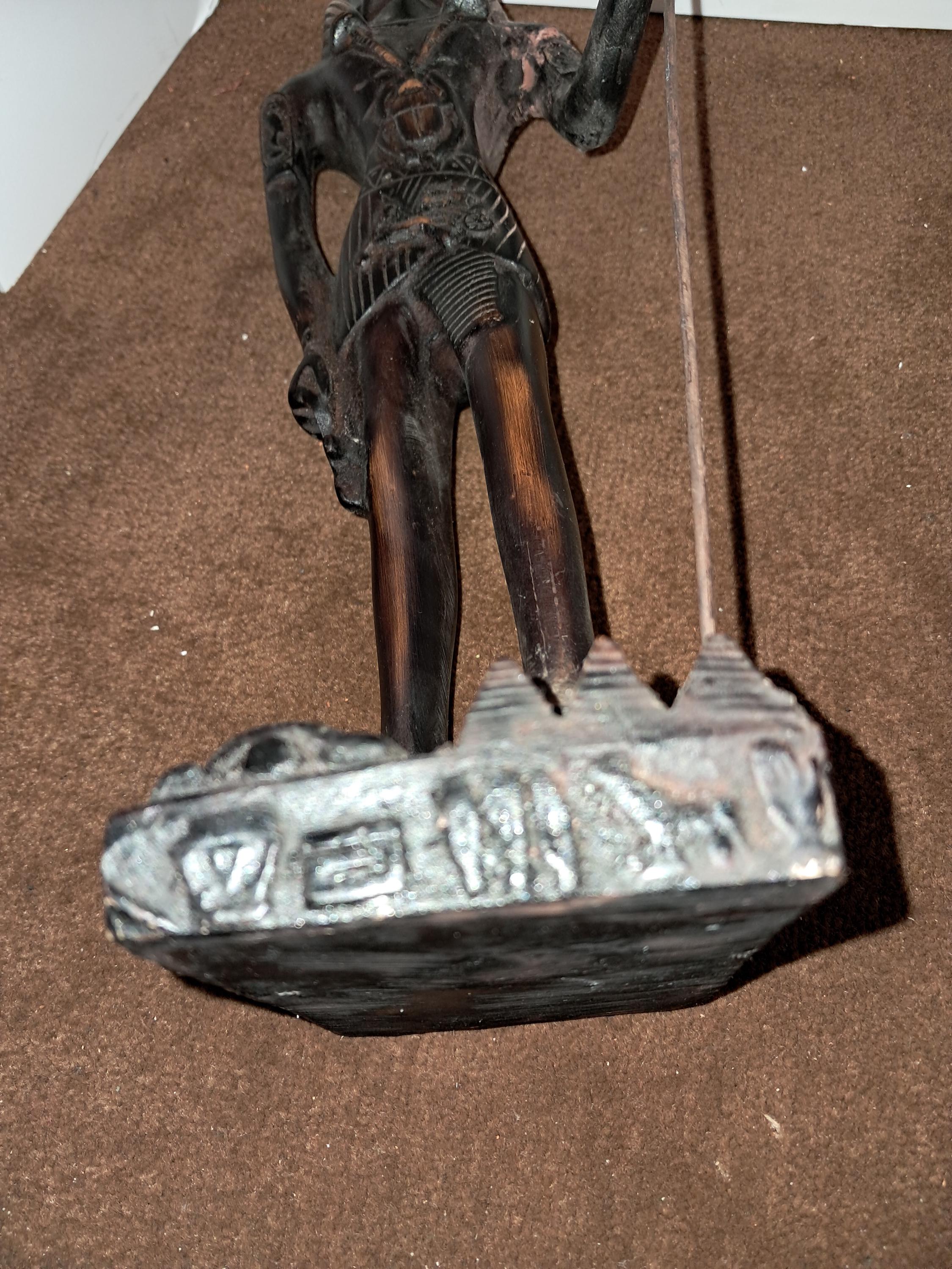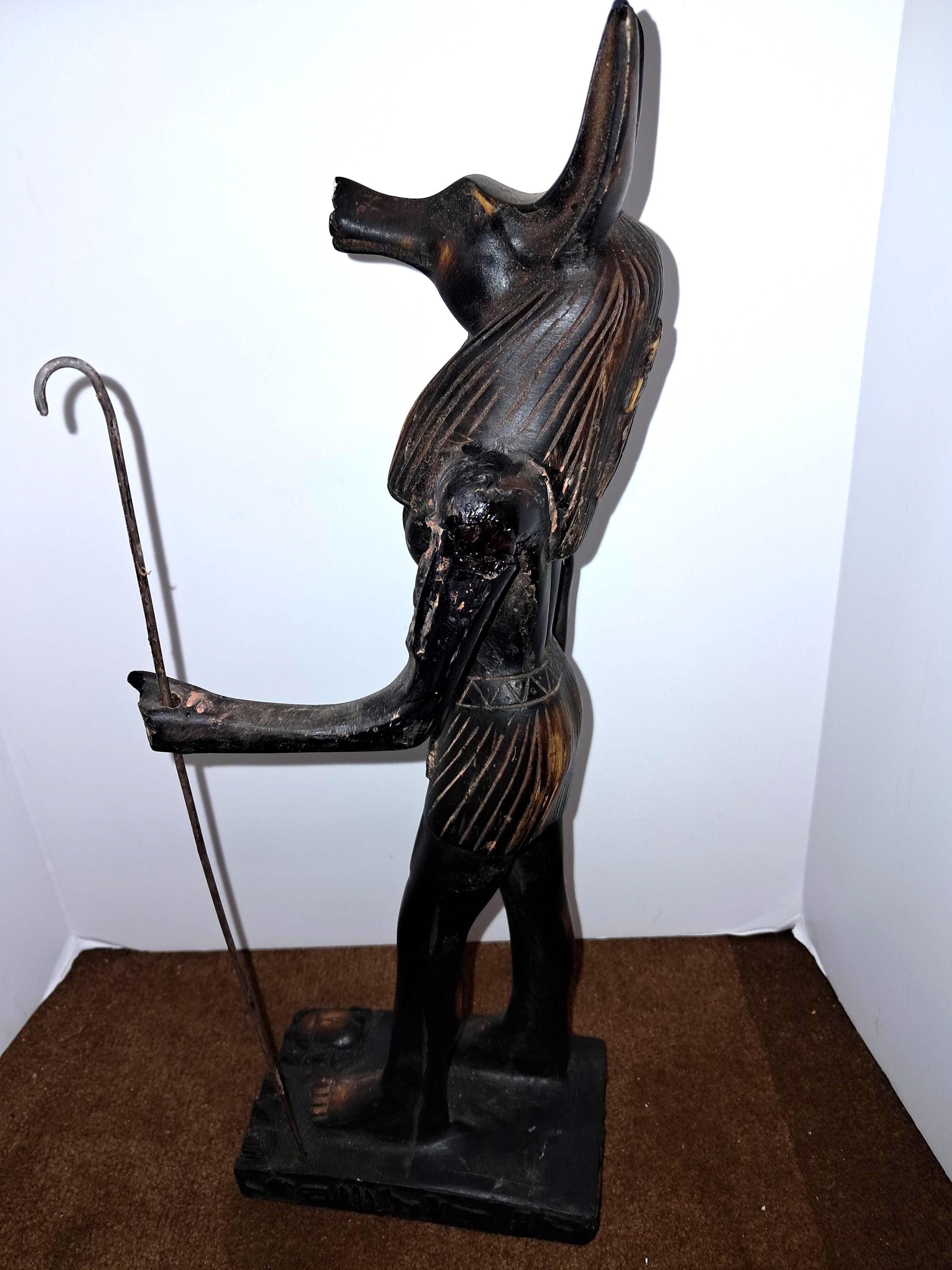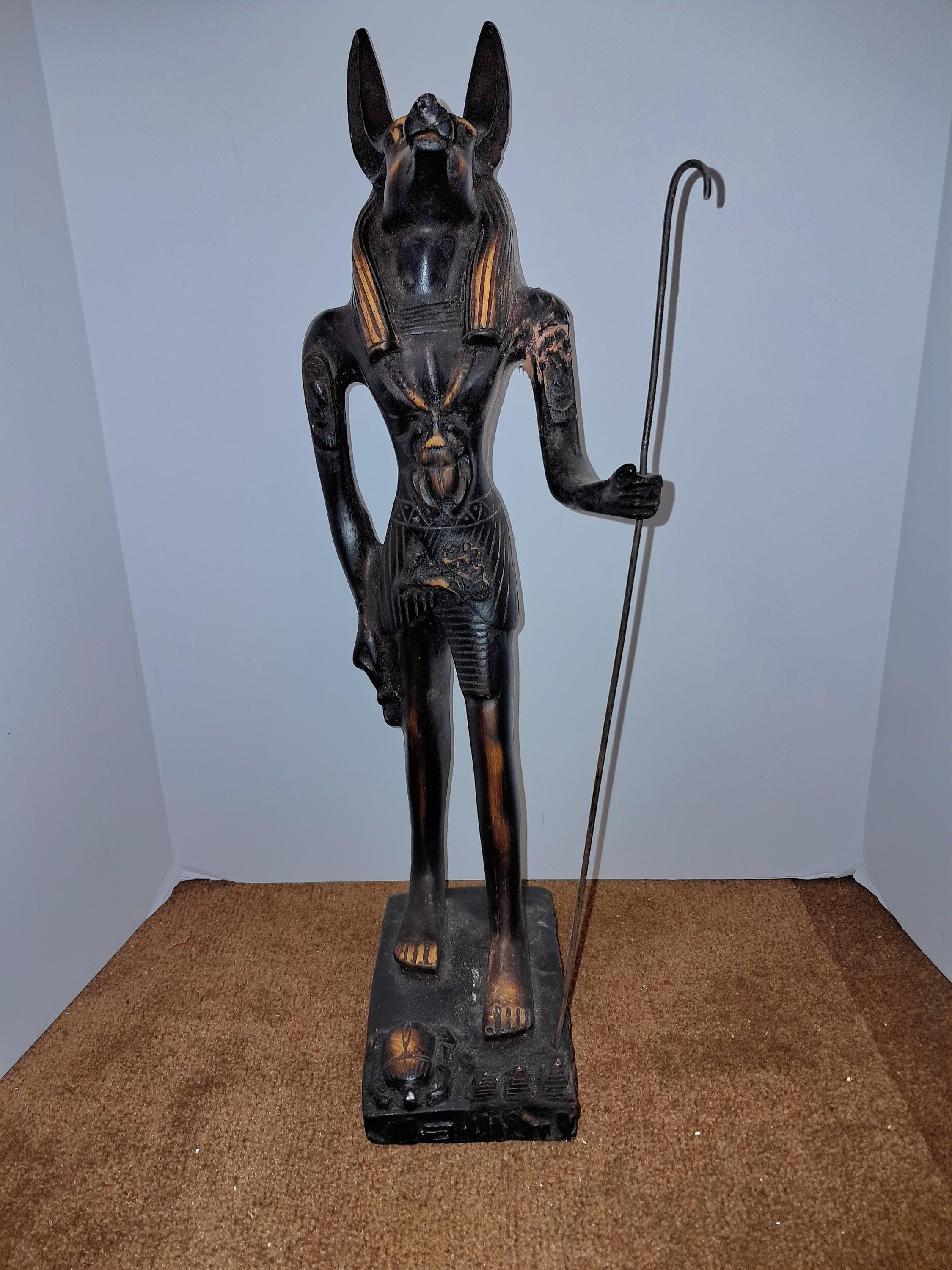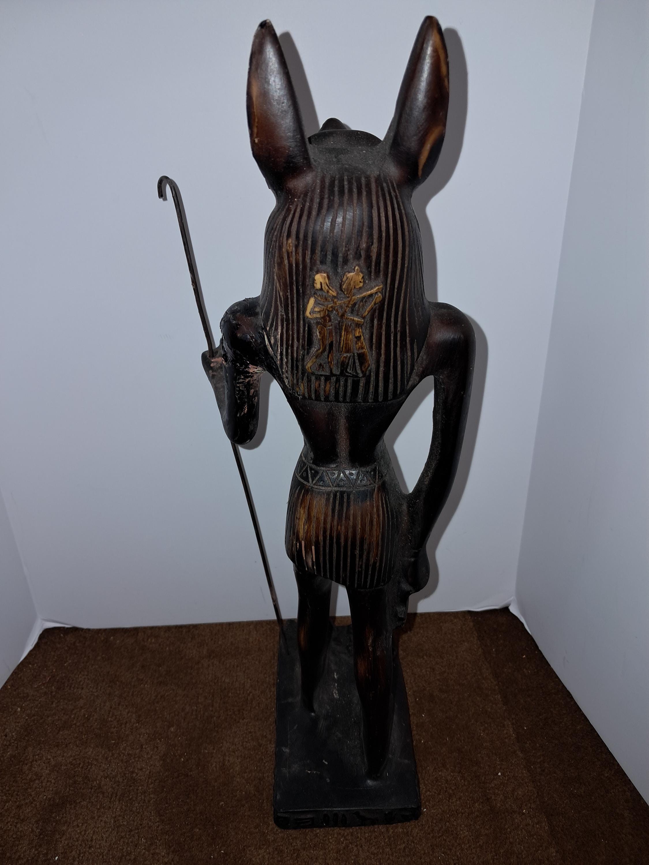 He stands 15 1/2 inches high with gold detail and hieroglyphics around the base. ( 5.5 x 3.25)