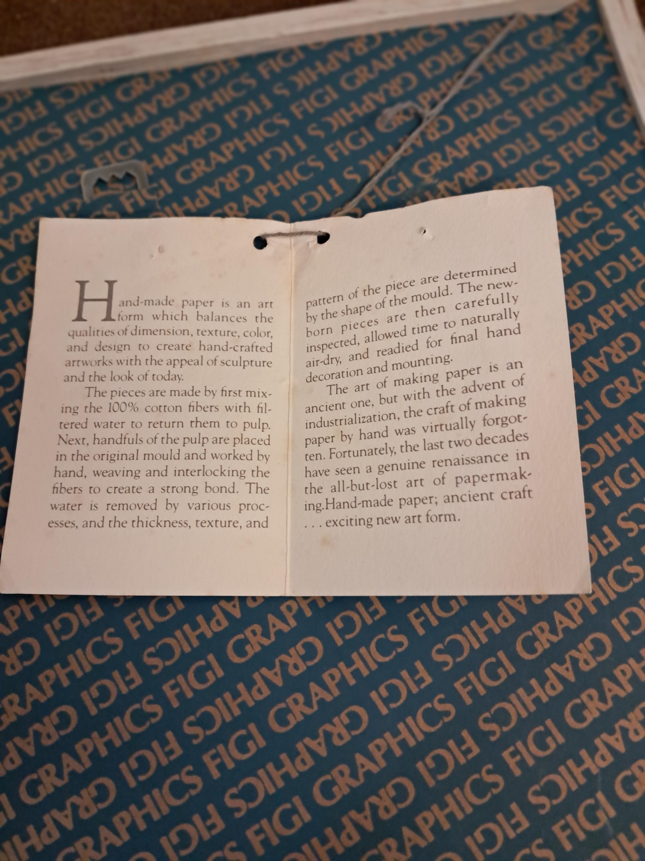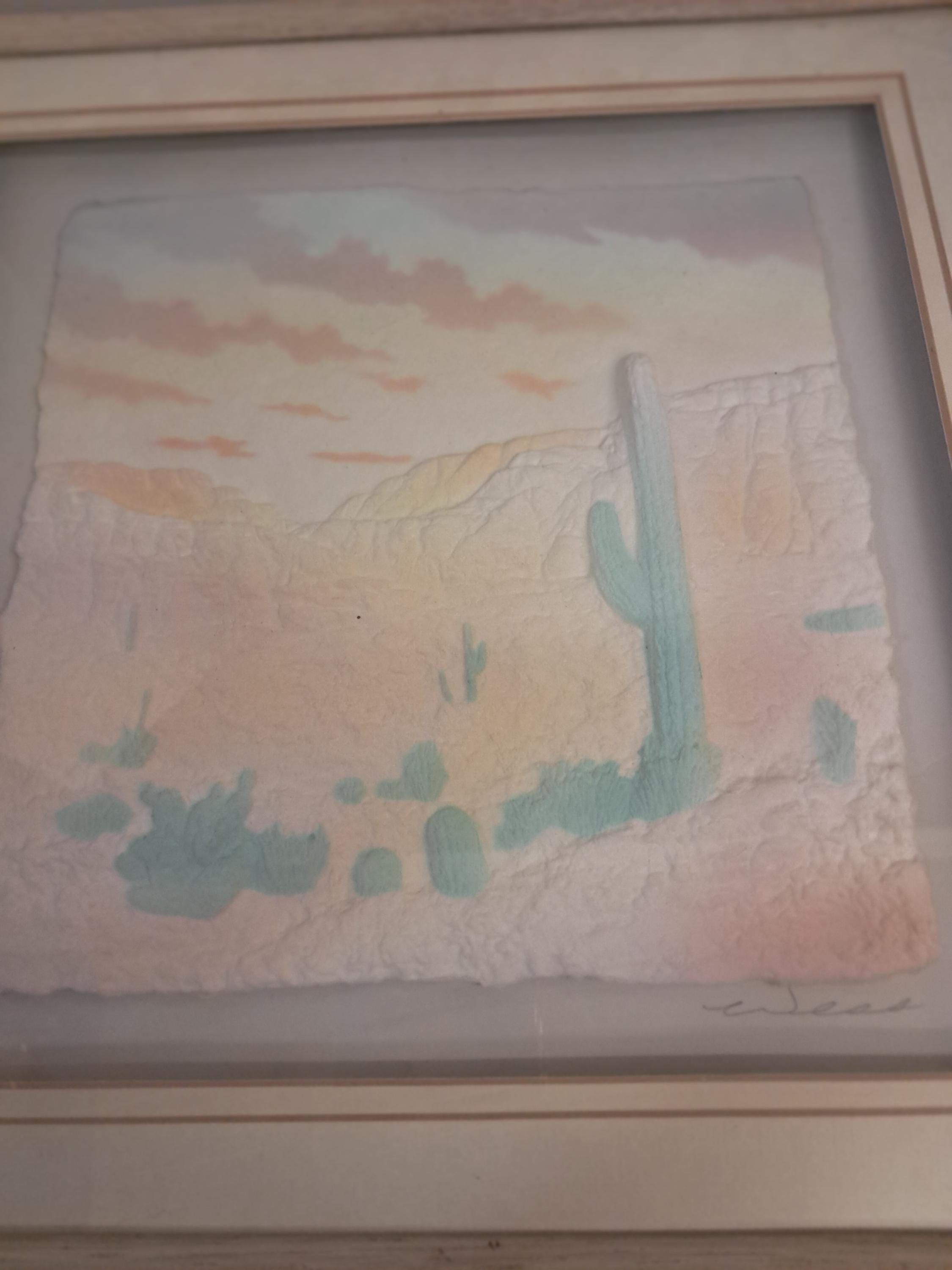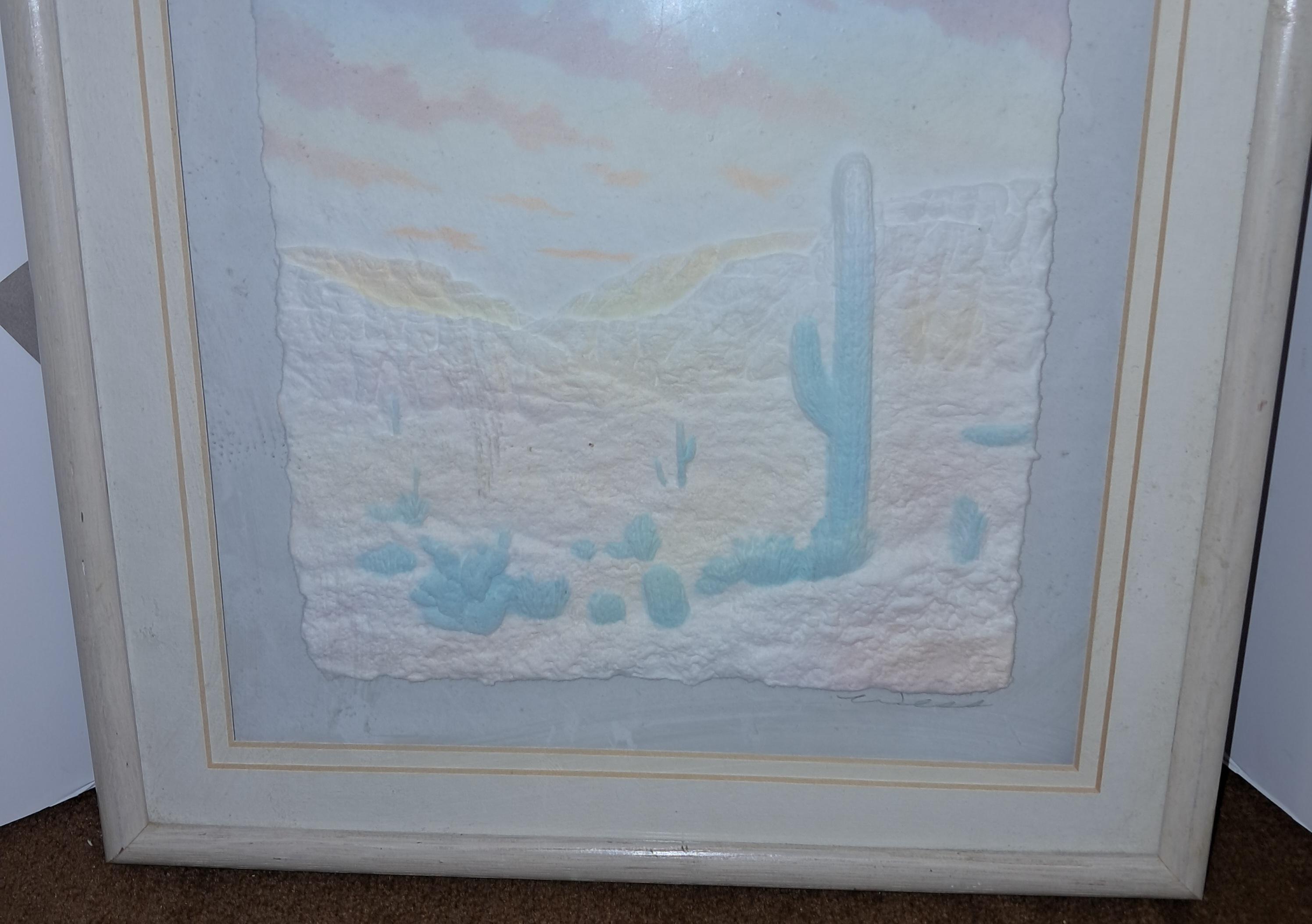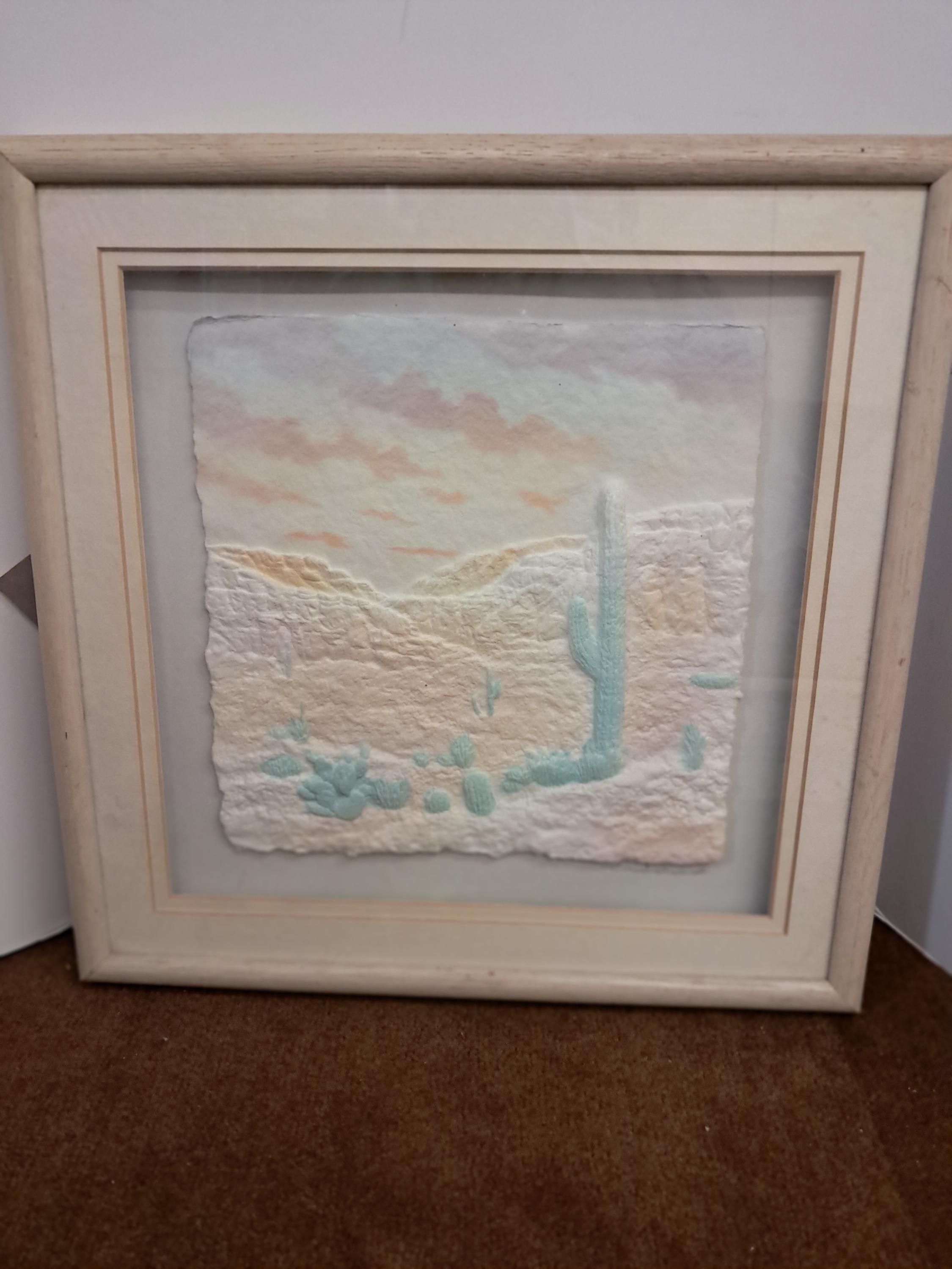 Vintage Cactus Framed FIGI Graphics Hand Cast 3-D Paper Art .Signed Framed Size : 12 " wide x 13" tall x 1 " deep Image Size : 8" x 8" In Excellent Original Condition