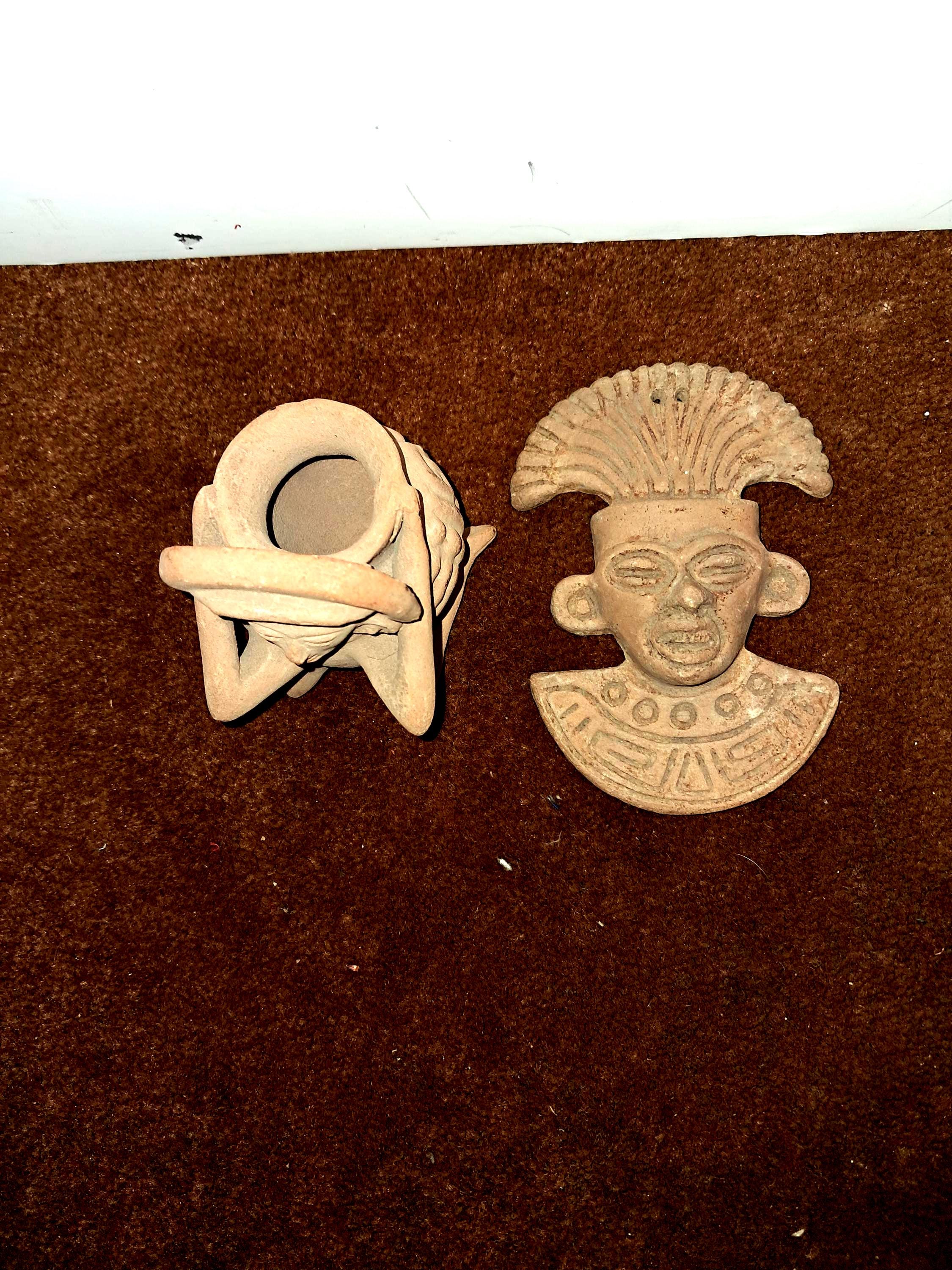 Two Handmade Mayan Terracotta Mexican Art craft Figurines