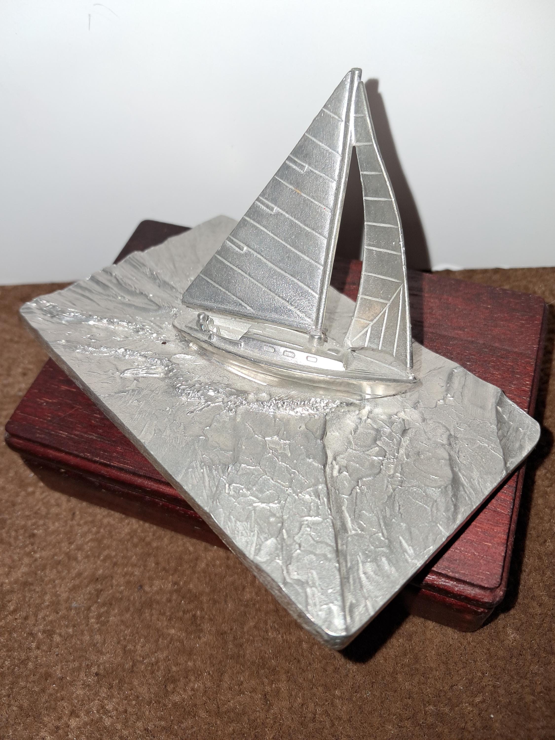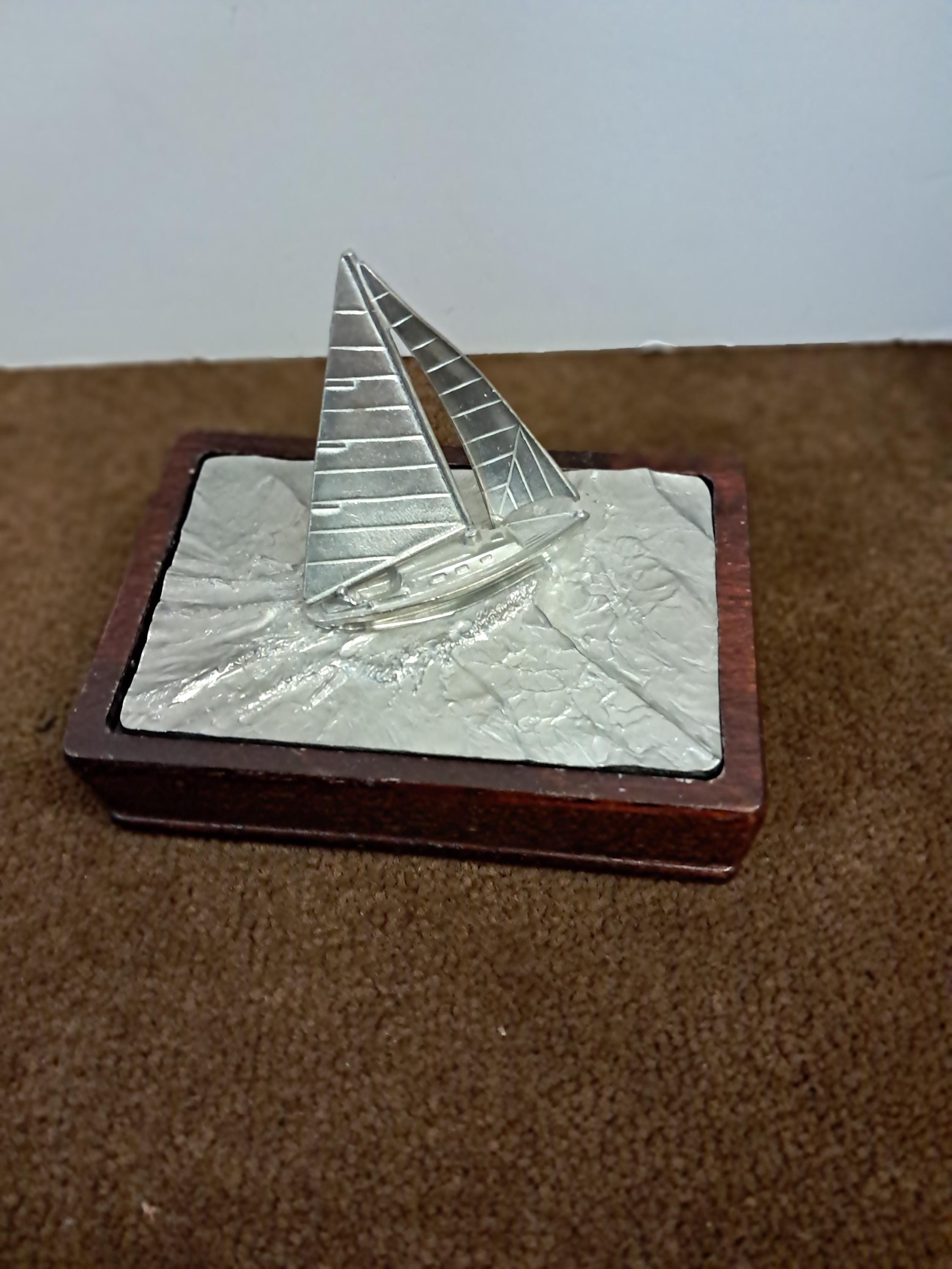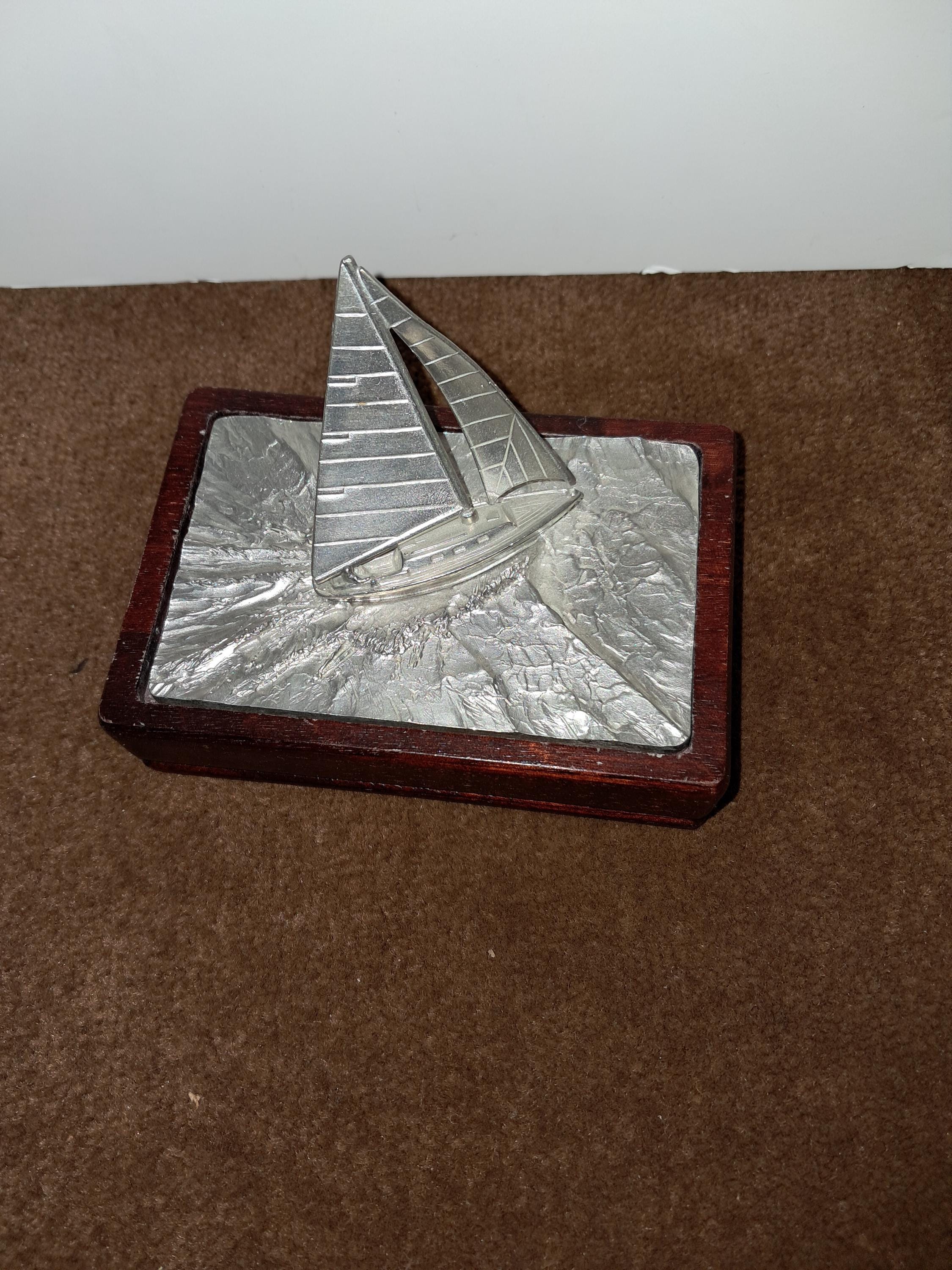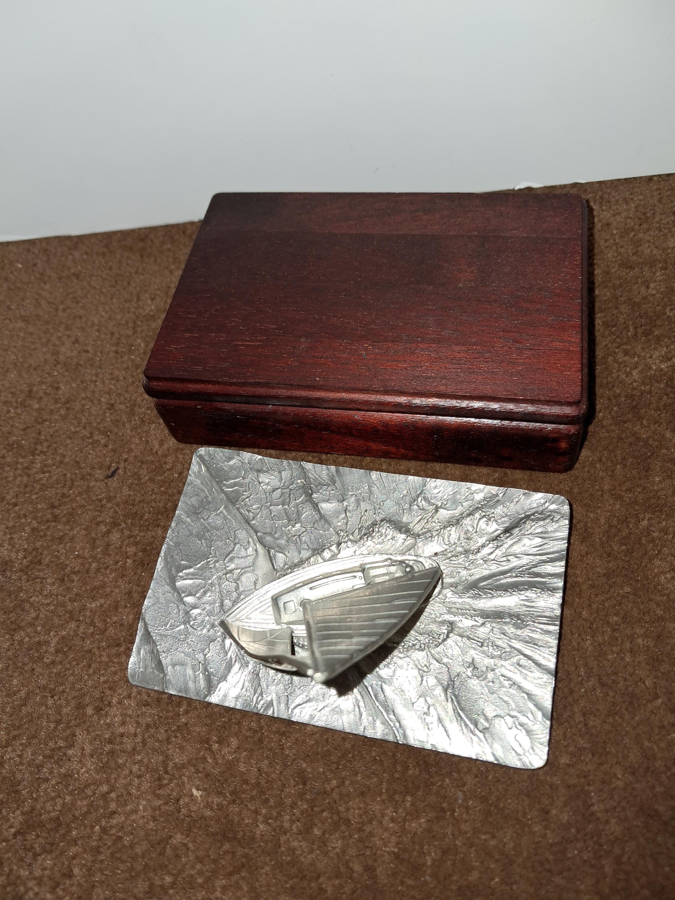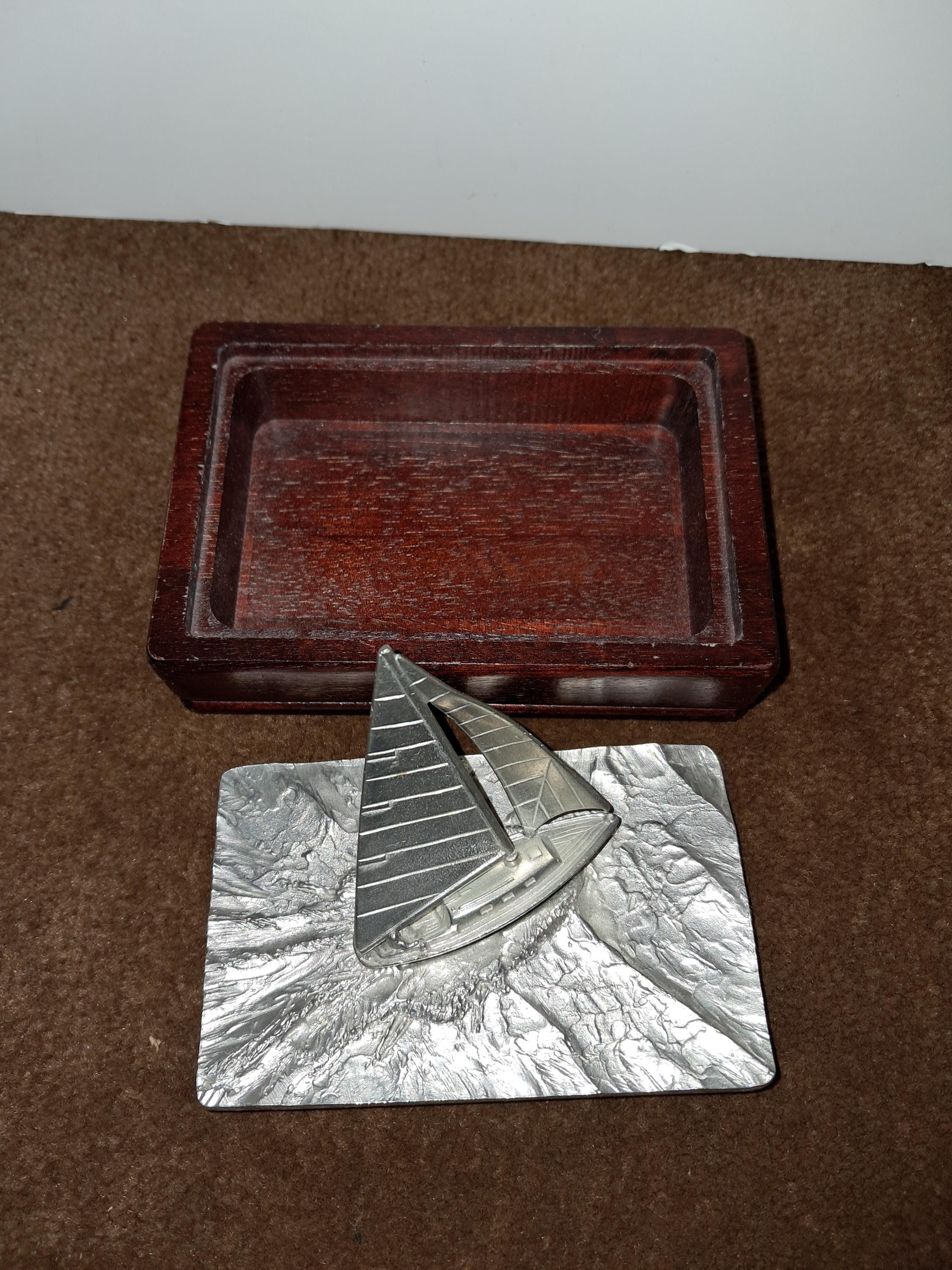 Vintage Kirk Stieff Pewter Sailboat Trinket Box Vintage Handmade Business Card