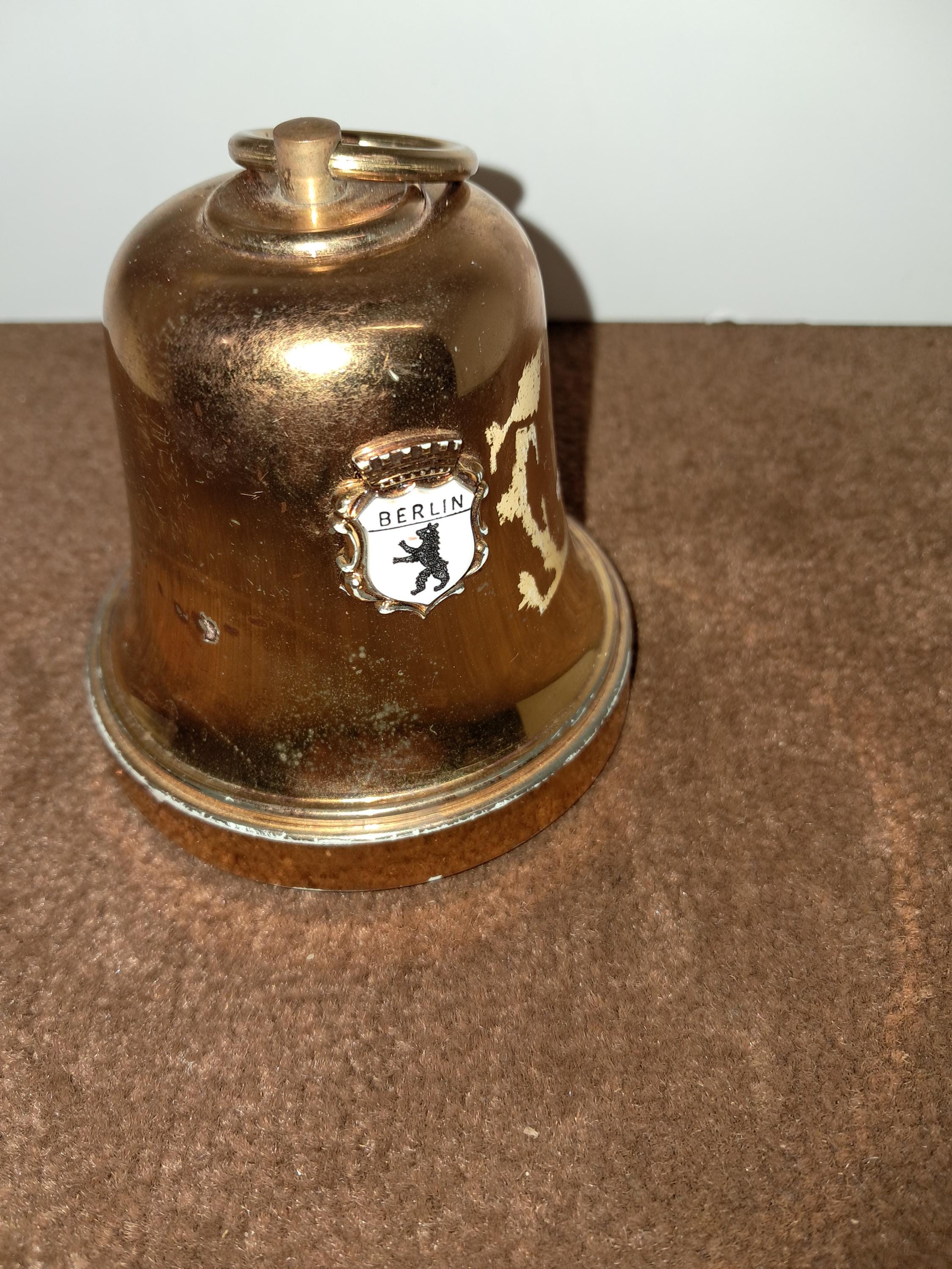 West German, Bell Music Box Souvenir, BerlinMade Before Unification of GermanyCirca 1950'sWorks and plays wellSome discoloration on the body4" tall x 3.25" in Diameter