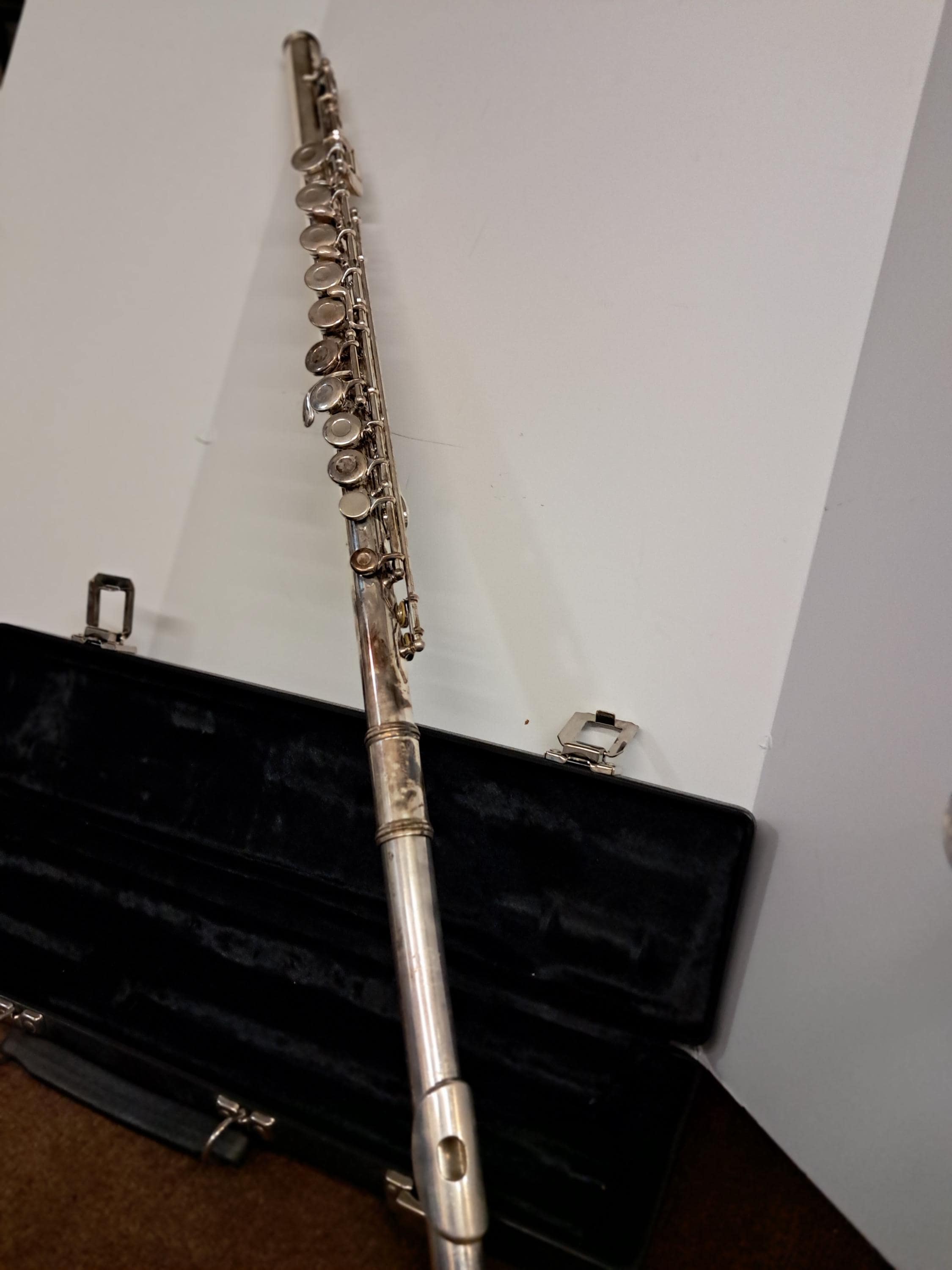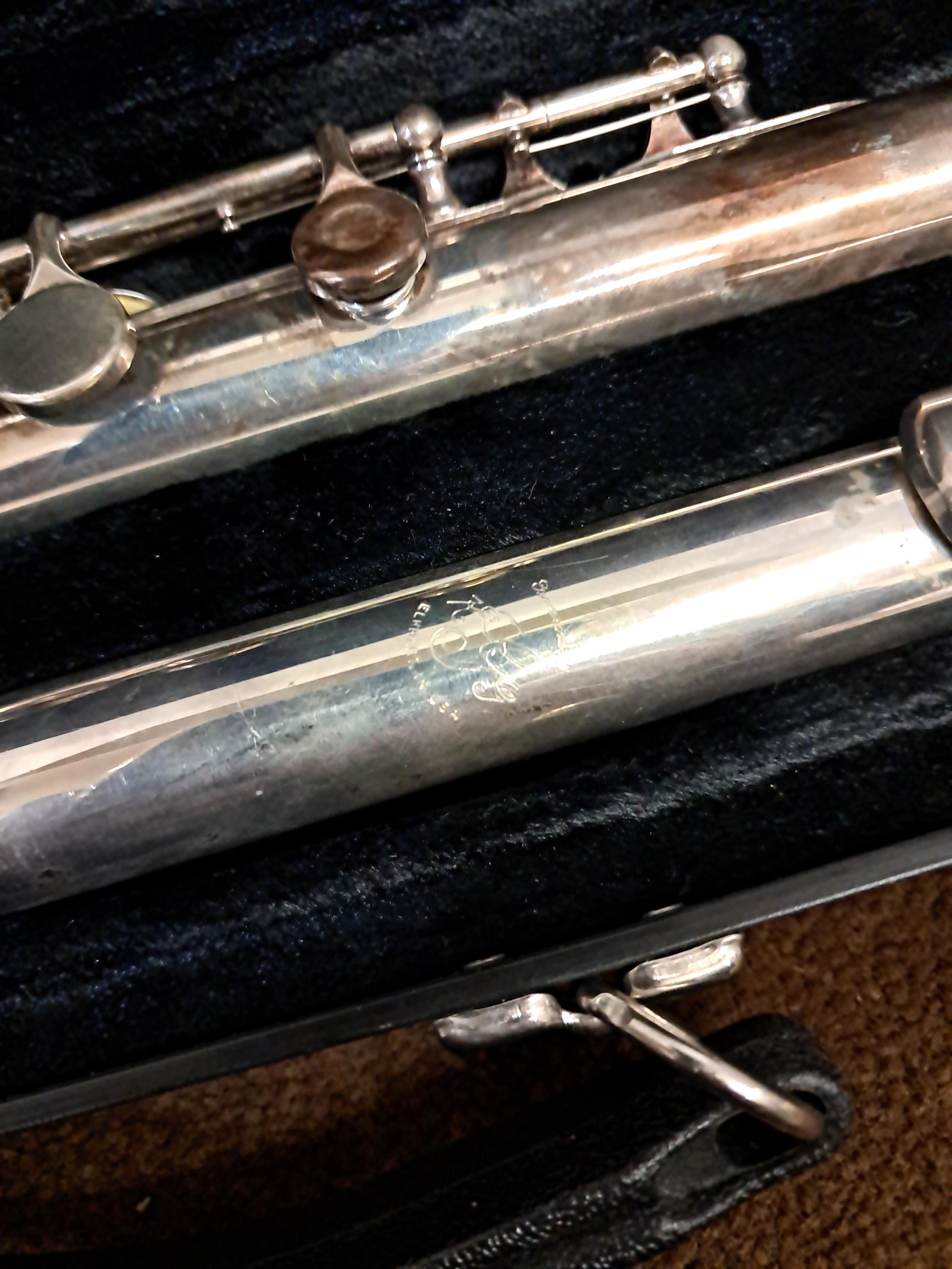 The Gemeinhardt 2SP Silver Plated Flute is a polished and reconditioned concert flute with an offset G key and closed hole design. This flute includes , 3 sections of flute, Gemeinhardt case. It features a silver plated finish on both the machine head and head joint, with a small bore size and straight head joint. Designed with the Albert System, this flute is suitable for beginner, advanced, and expert players, making it a versatile option for musicians in various orchestras or bands. Made in the United States, this flute is a high-quality instrument that delivers excellent sound and performance.