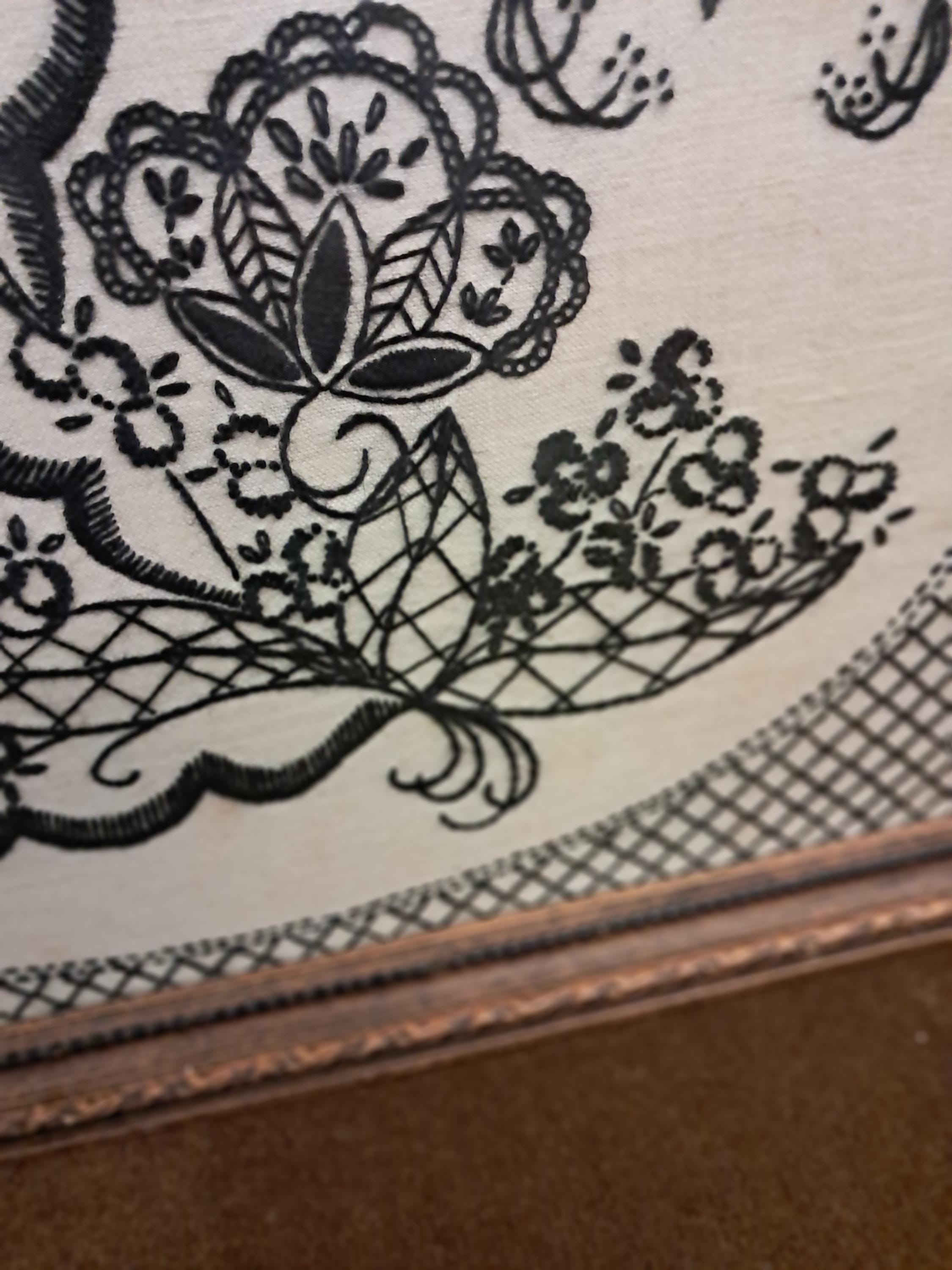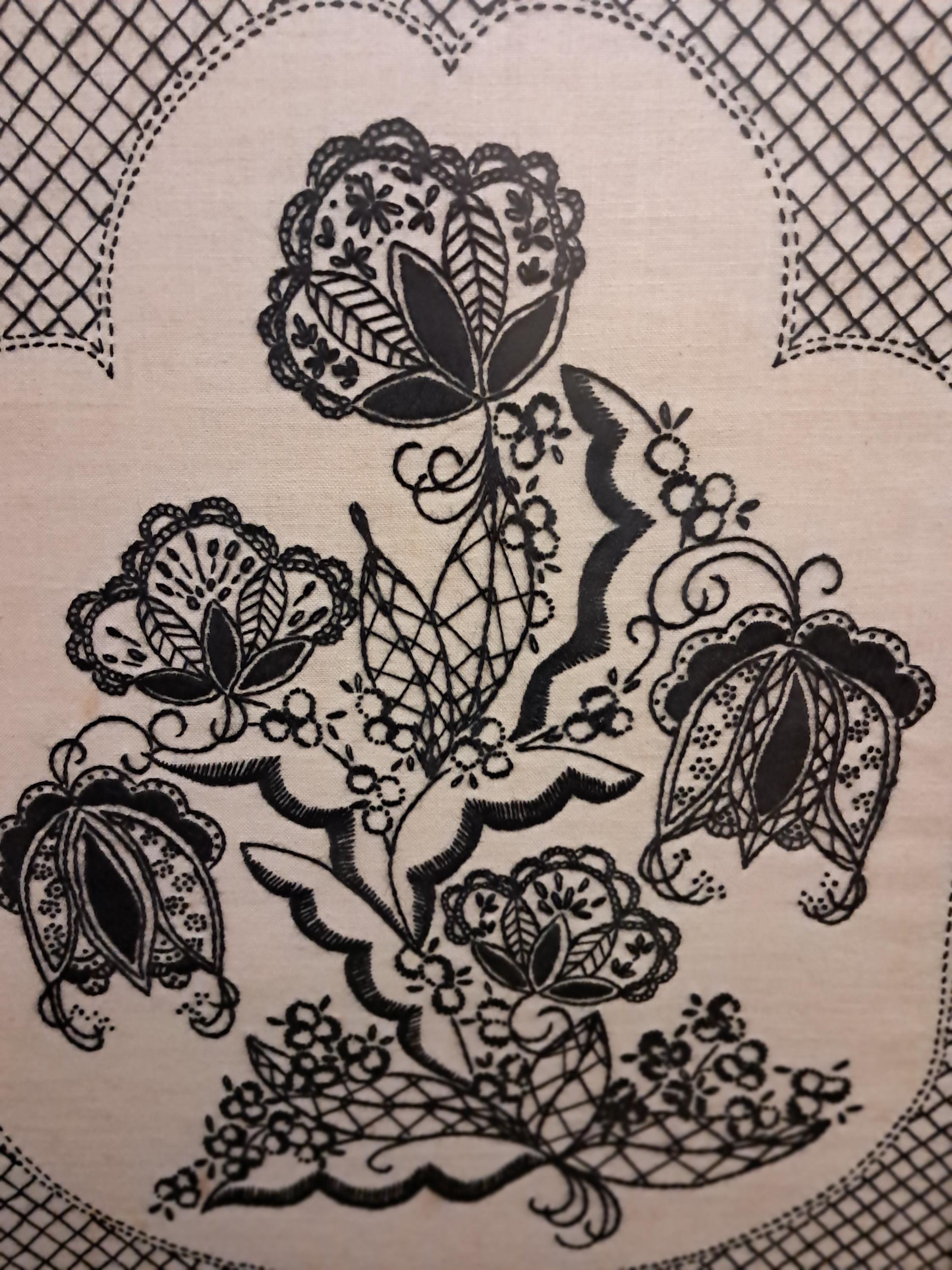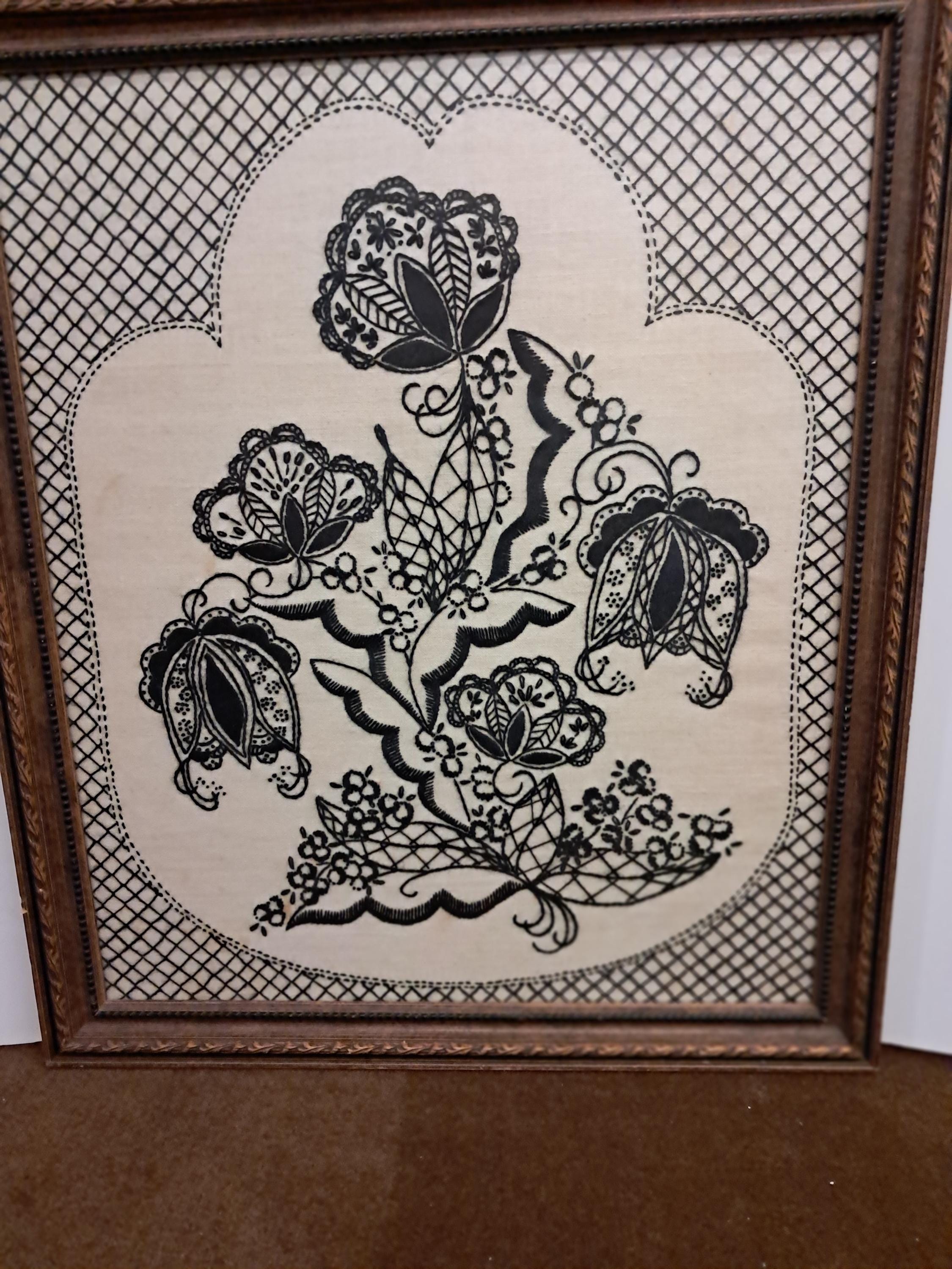 Vintage Jacobean Crewel Floral Design Embroidery ,
