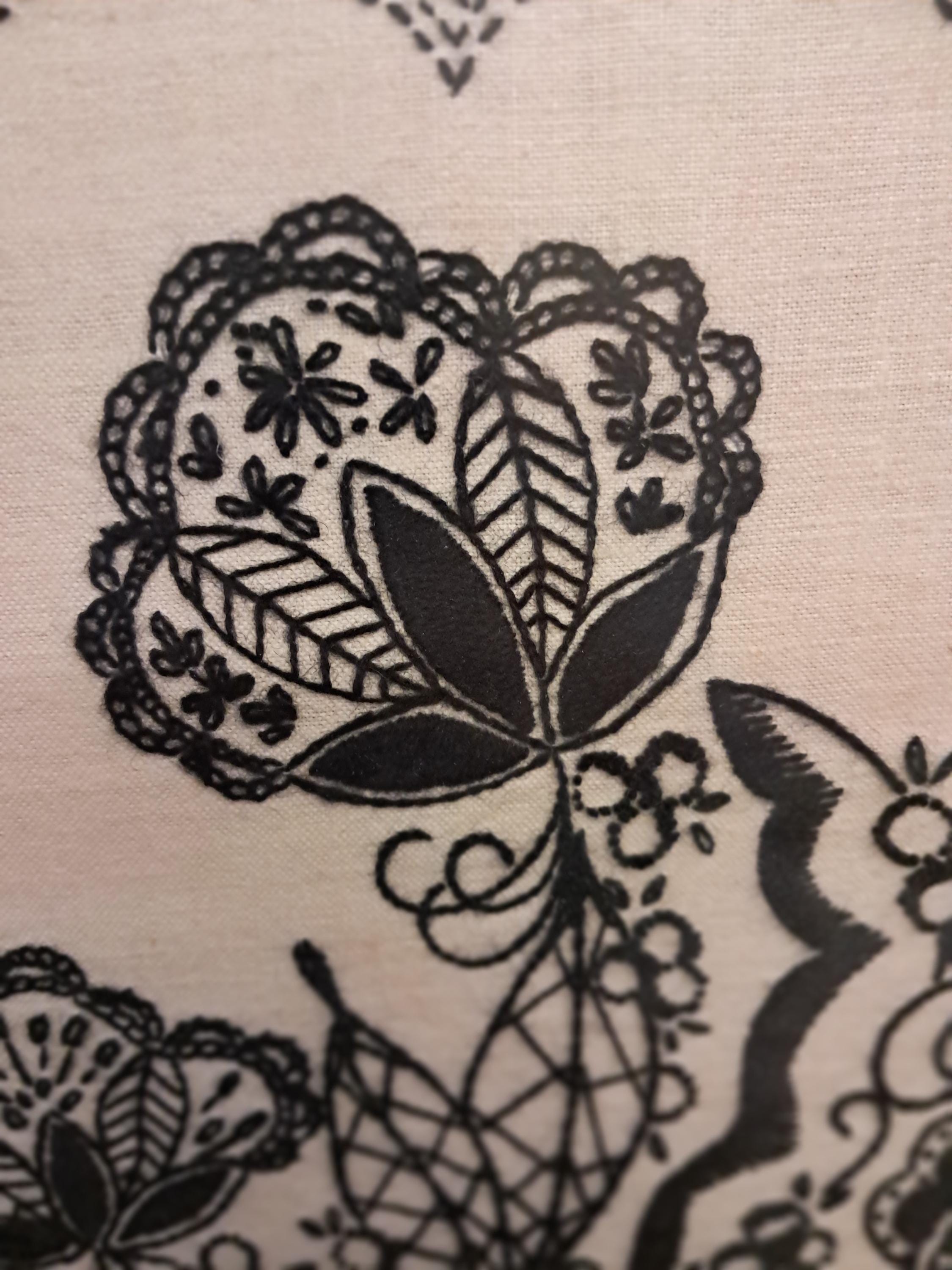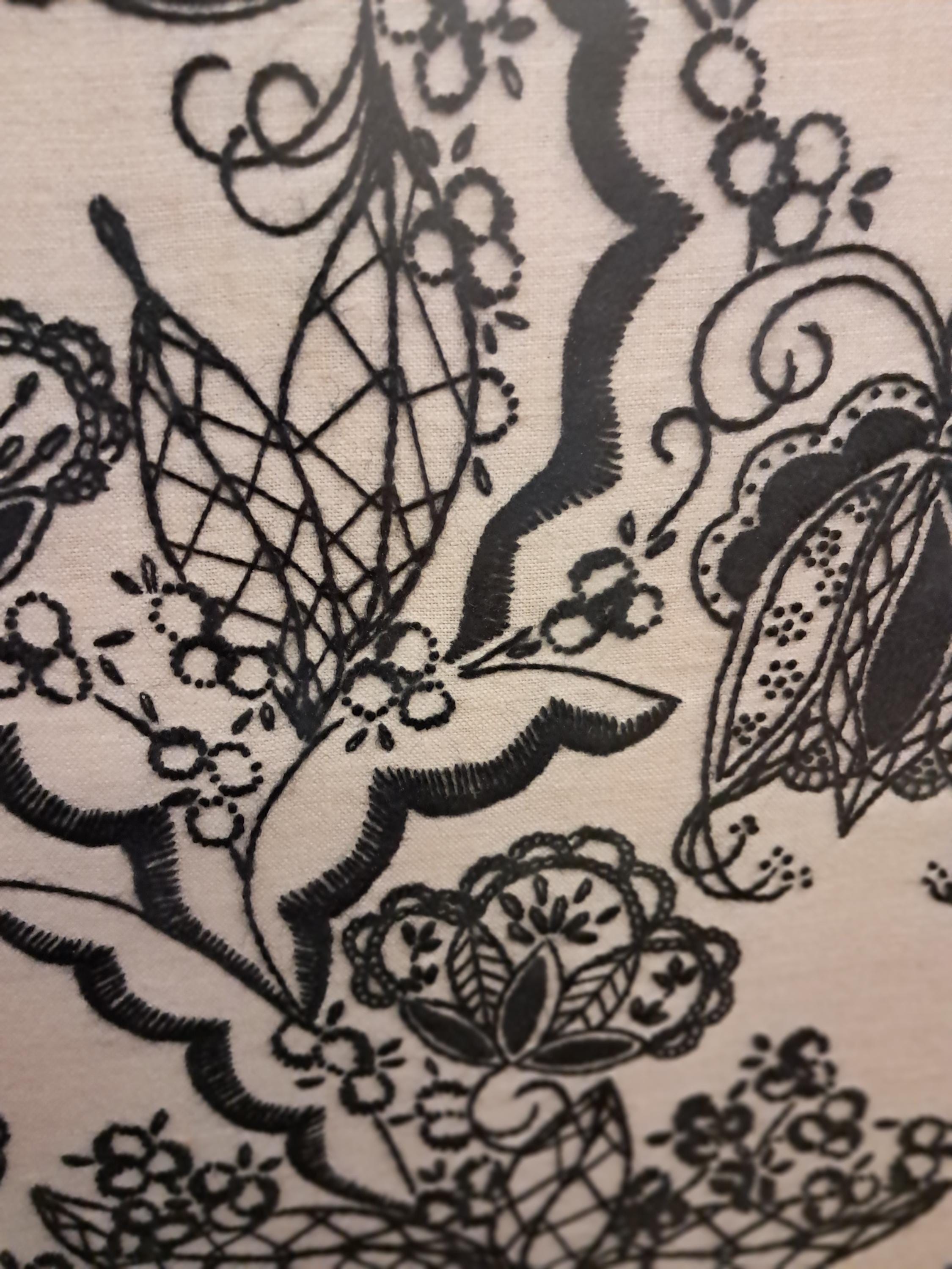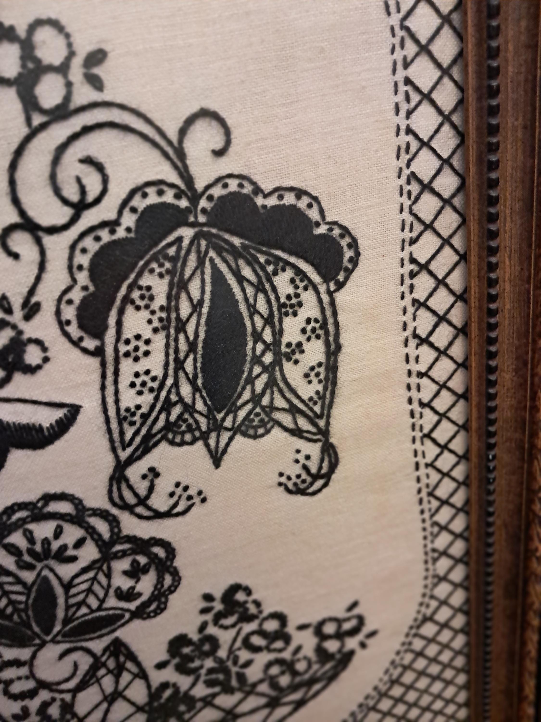 Vintage Jacobean Crewel Floral Design Embroidery ,