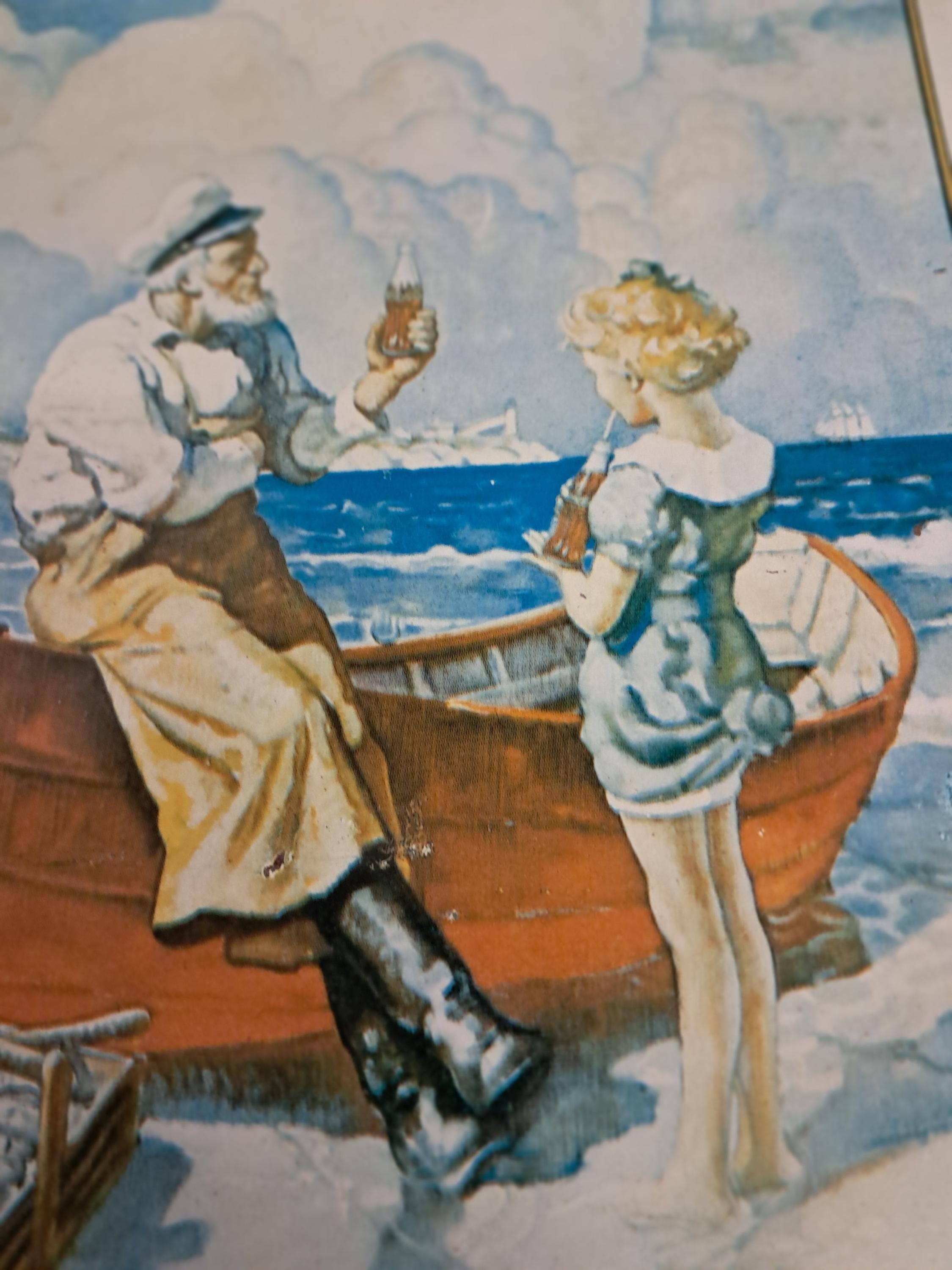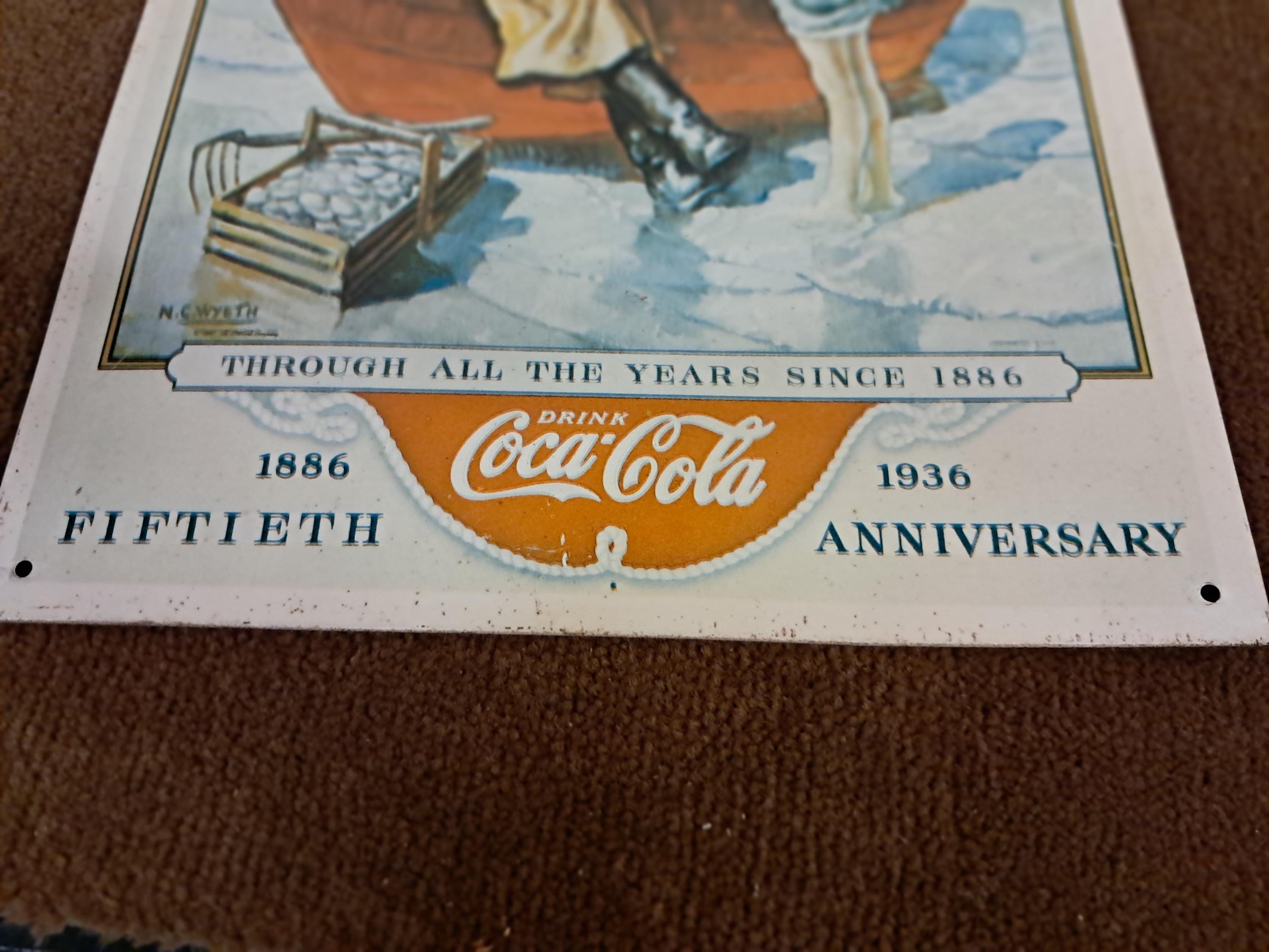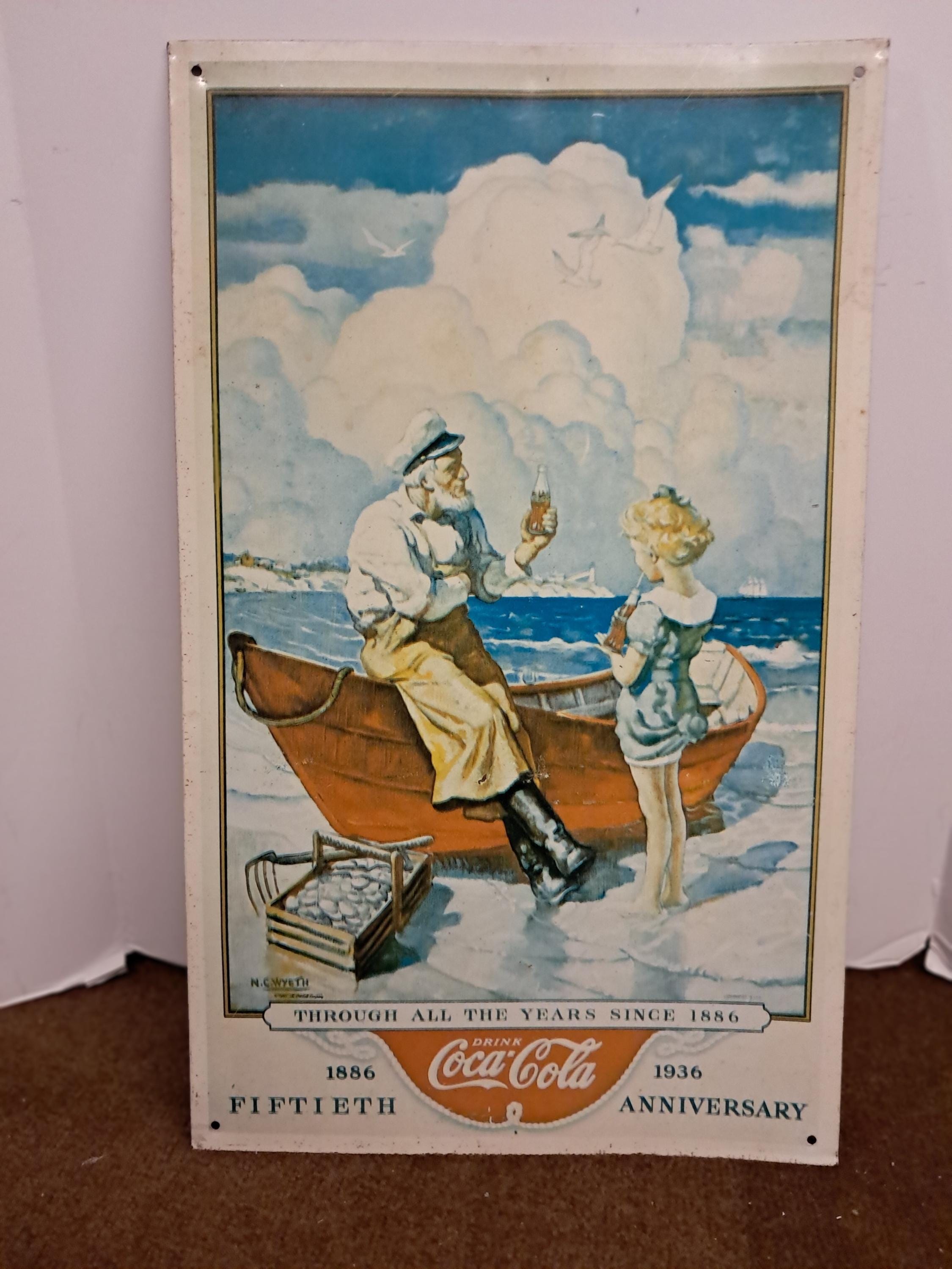 COCA-COLA 50th Anniversary Metal Sign From 1990 with Art Work by N.C. Wyetch