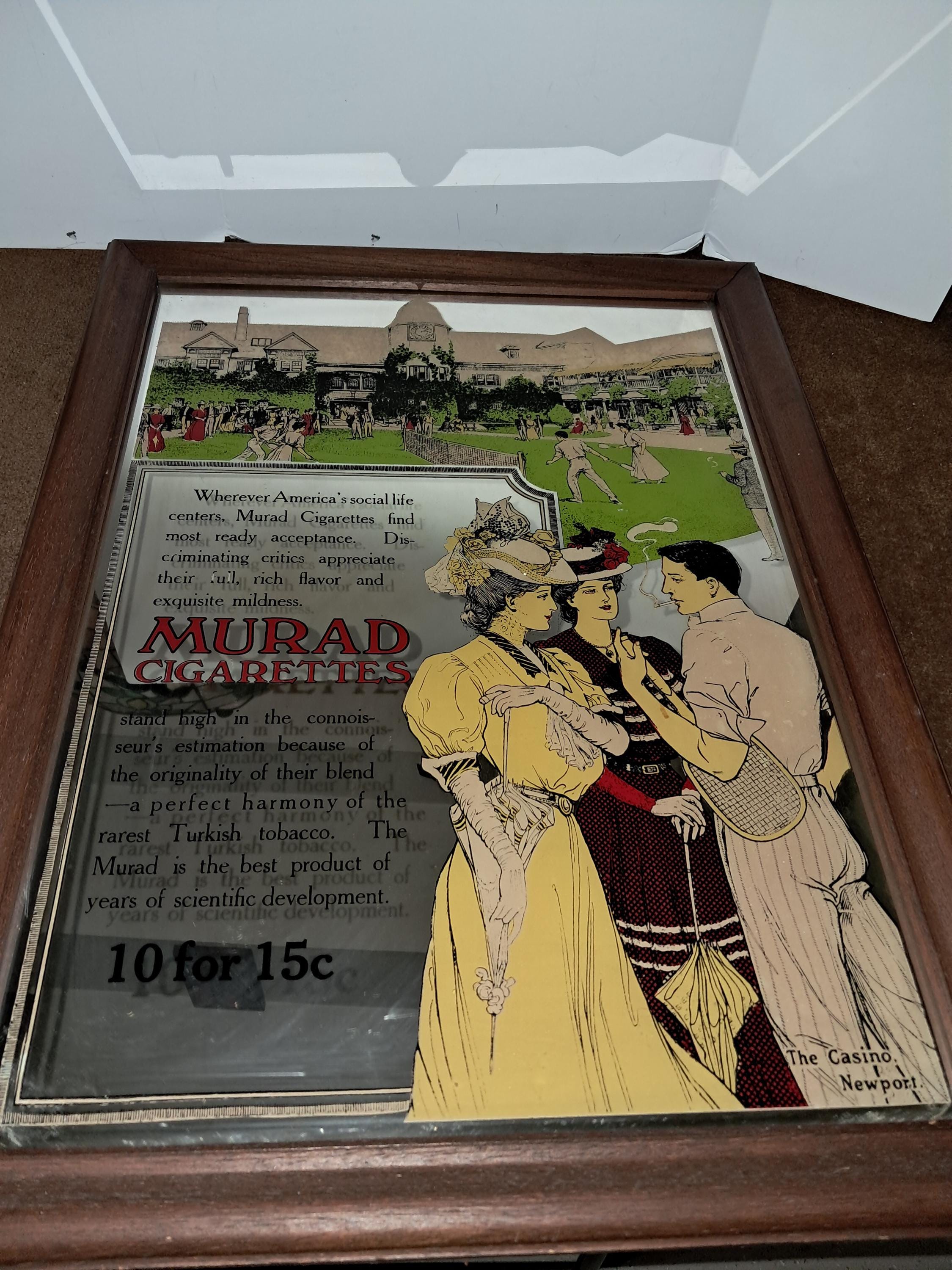 " Vintage Murad Cigarettes Newport Casino Framed Advertising Mirror Great Condition with no damages Wood Framed Size :24.5" tall xx 18,5 " wide xx 1 " deep Printed Mirror Size : 21.5" tall x 15.5" wide