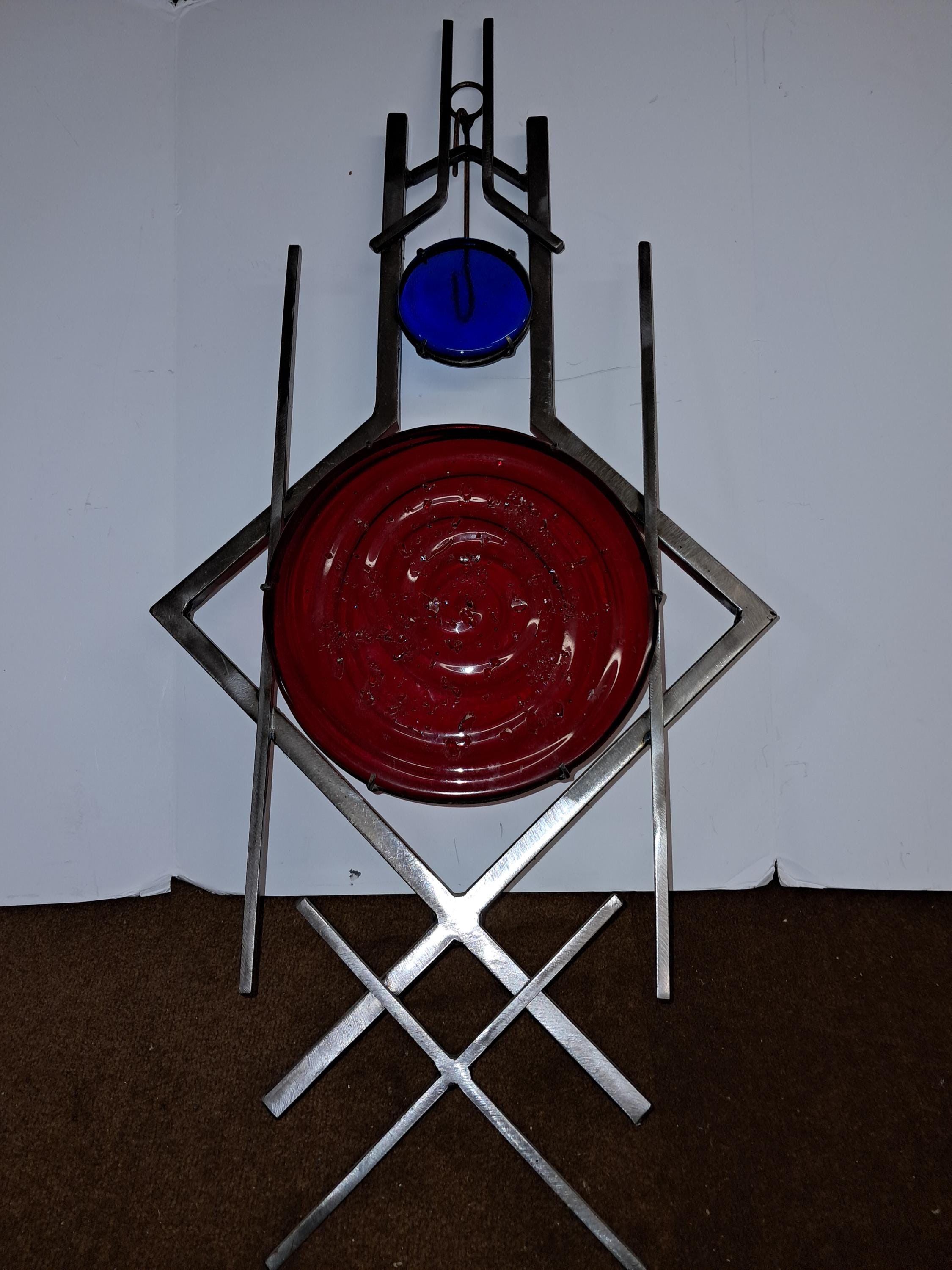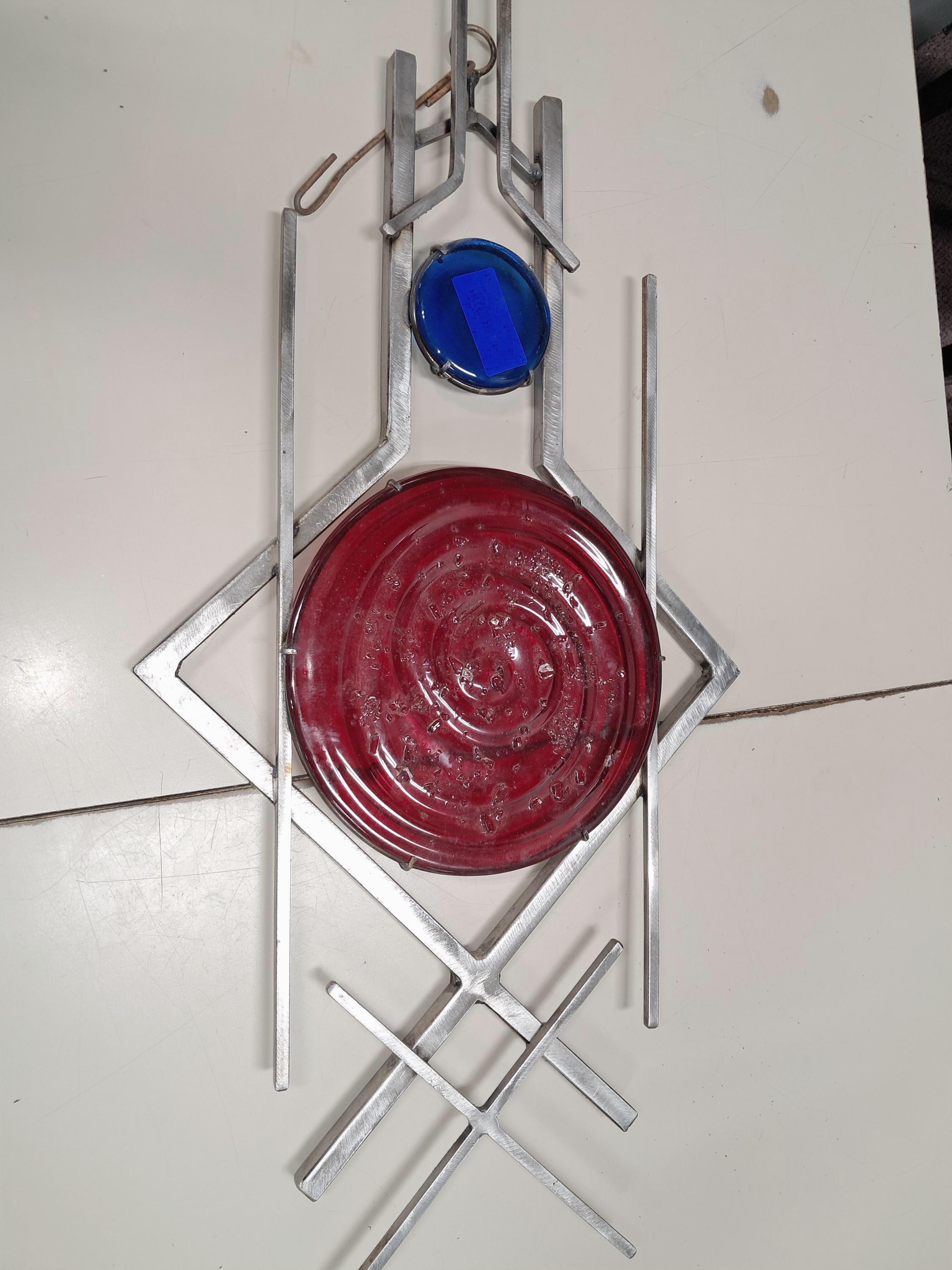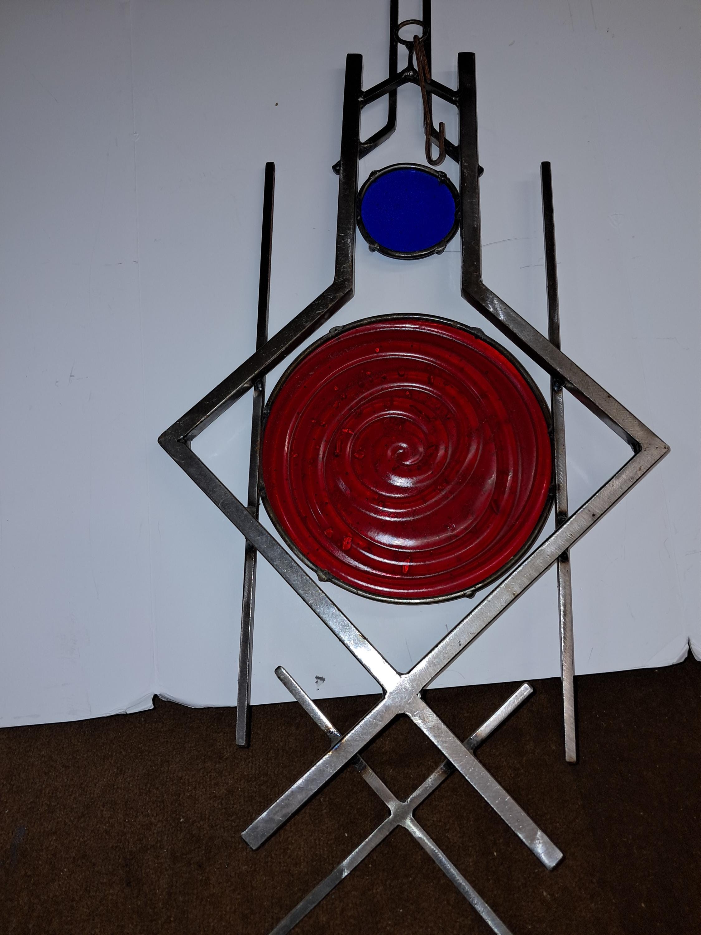 Vintage Abstract Metal Steel & Glass Art workIn Excellent Condition with NO DamagesEstate Sales Find. Circa 1950's ( per E S Seller)27" tall x 13" wide x 1" deep 31" tall with metal hook