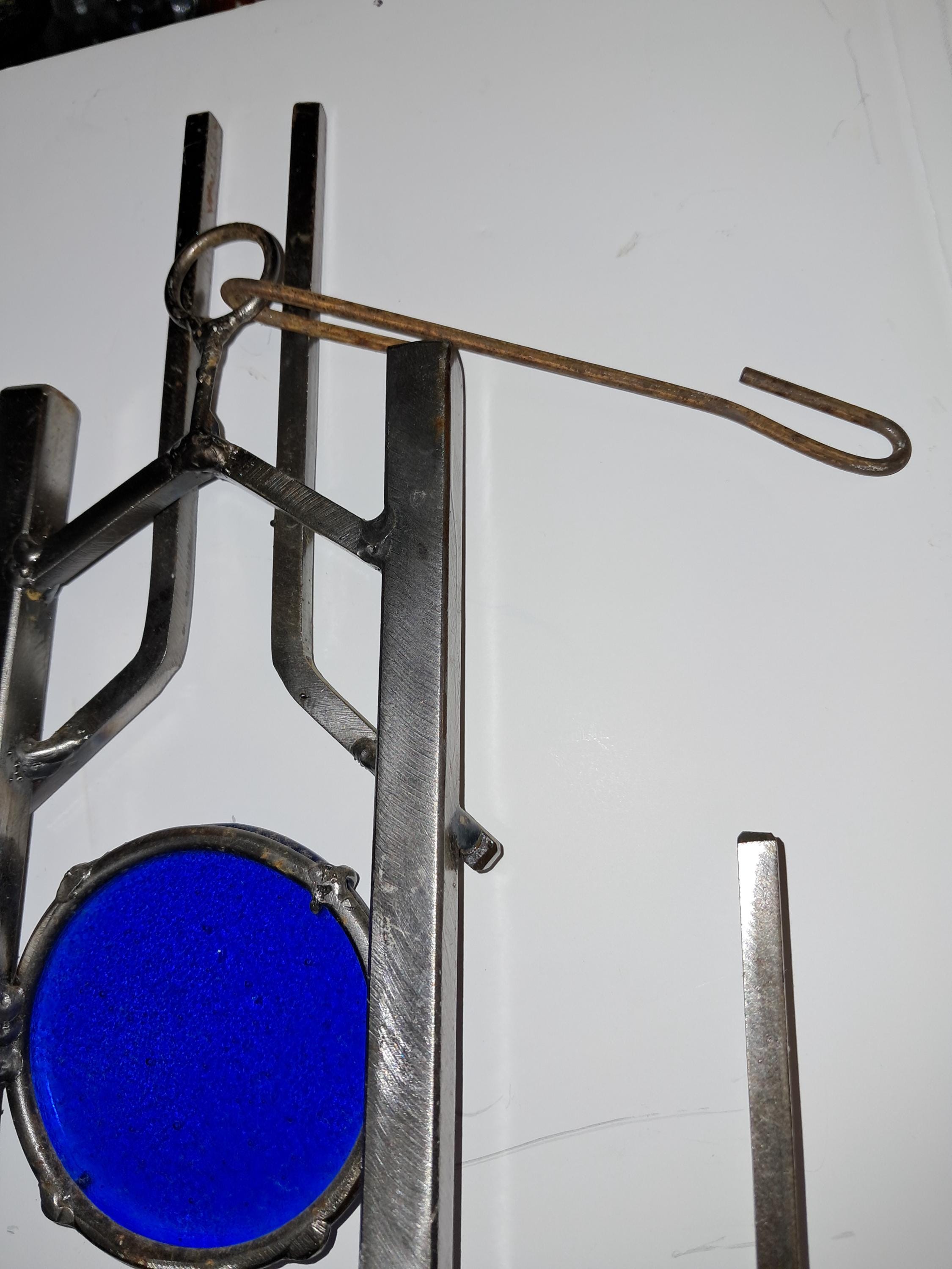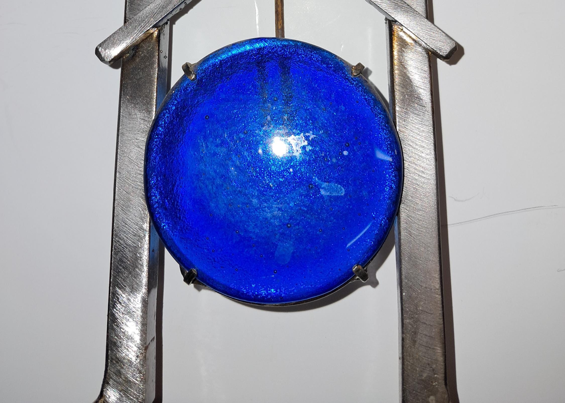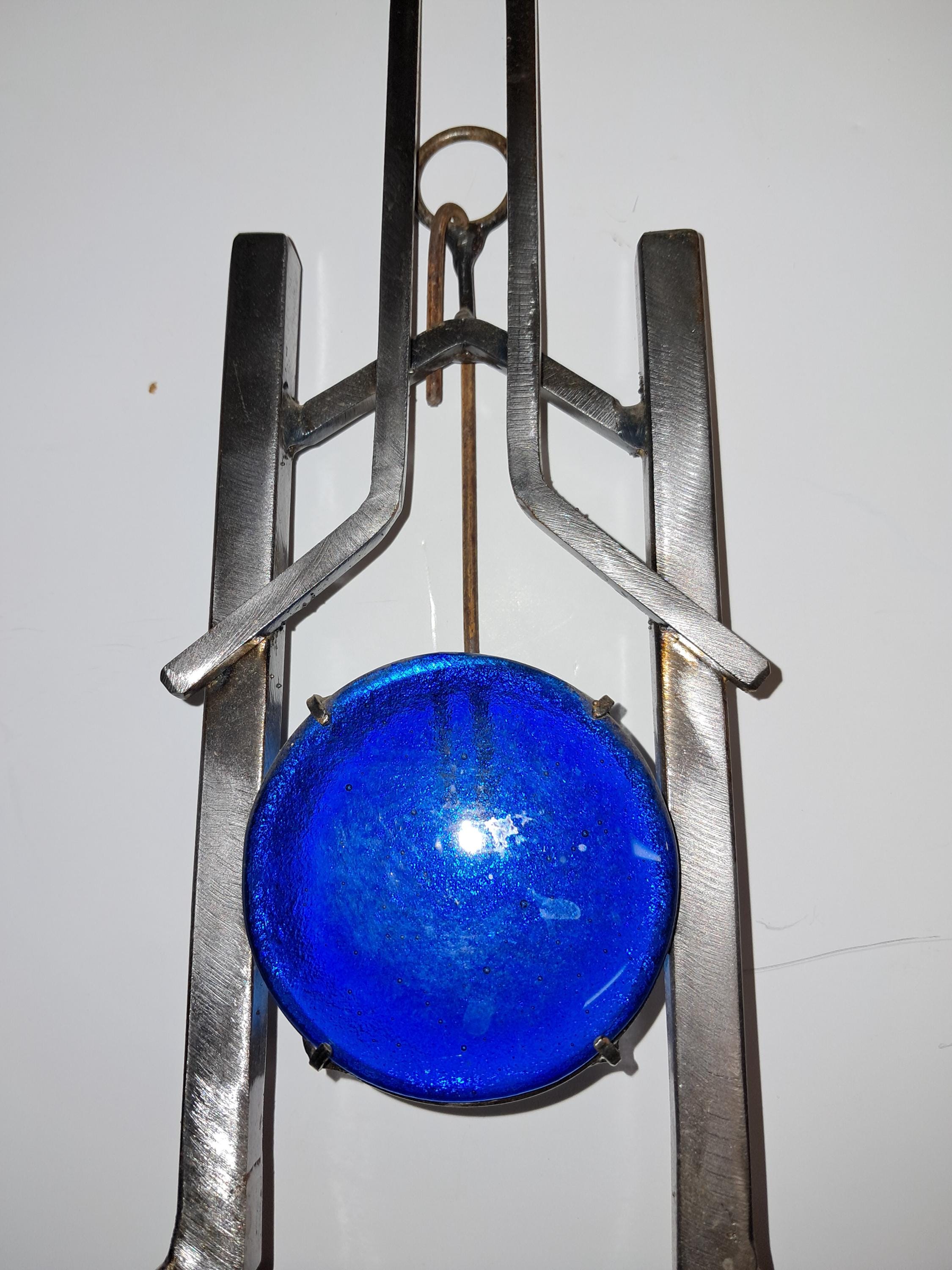 Vintage Abstract Metal Steel & Glass Art workIn Excellent Condition with NO DamagesEstate Sales Find. Circa 1950's ( per E S Seller)27" tall x 13" wide x 1" deep 31" tall with metal hook