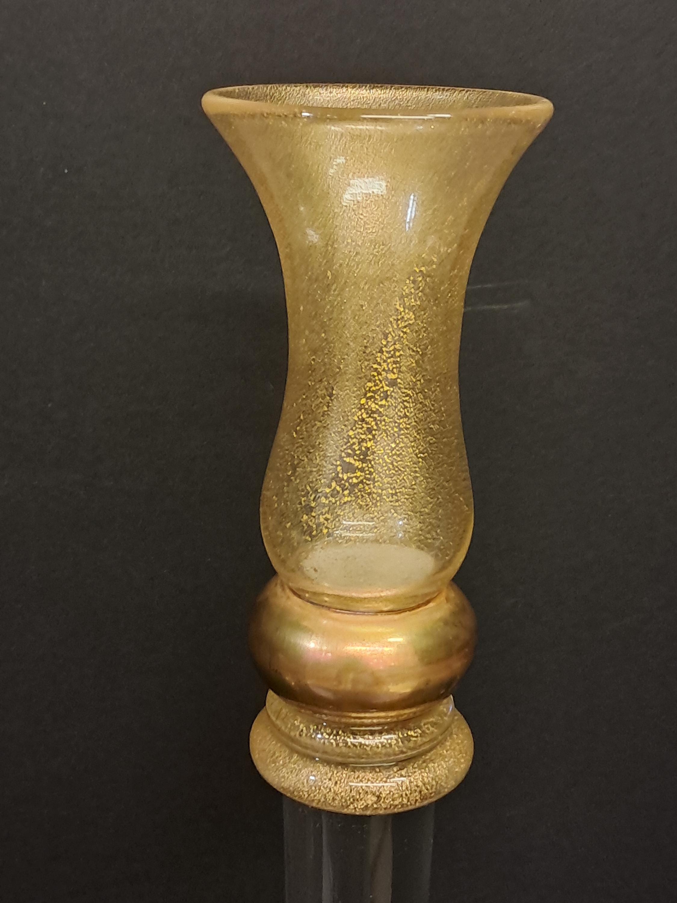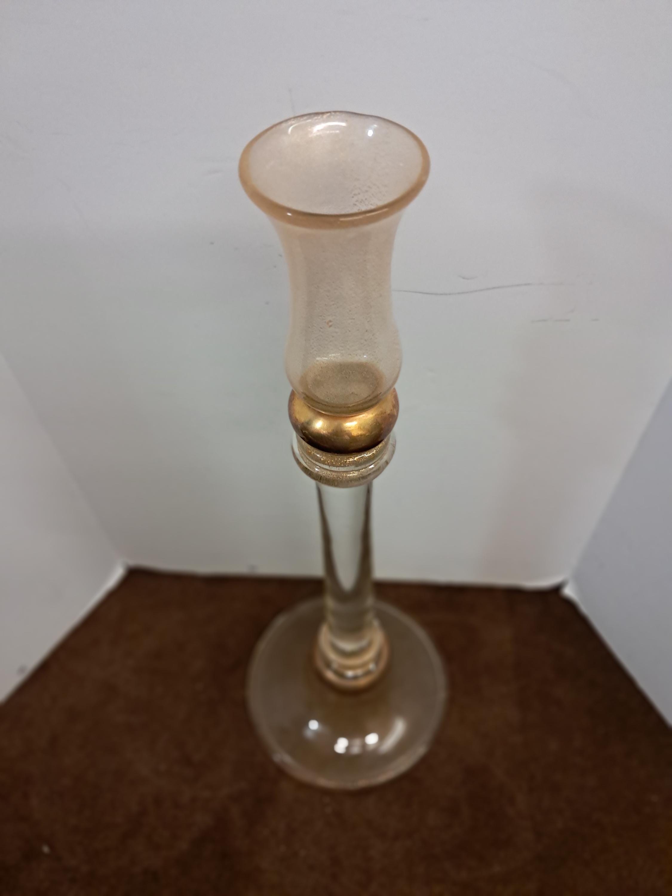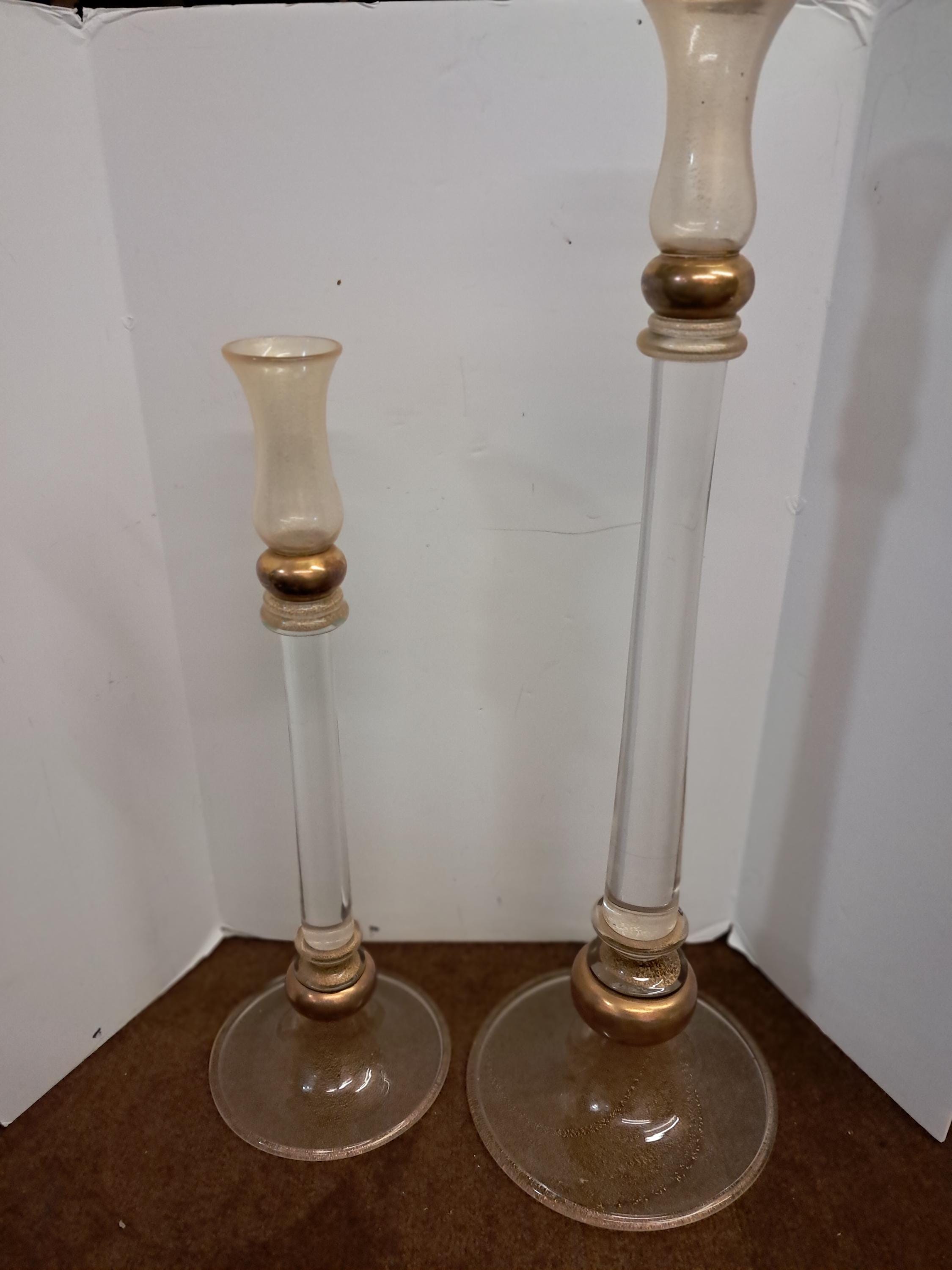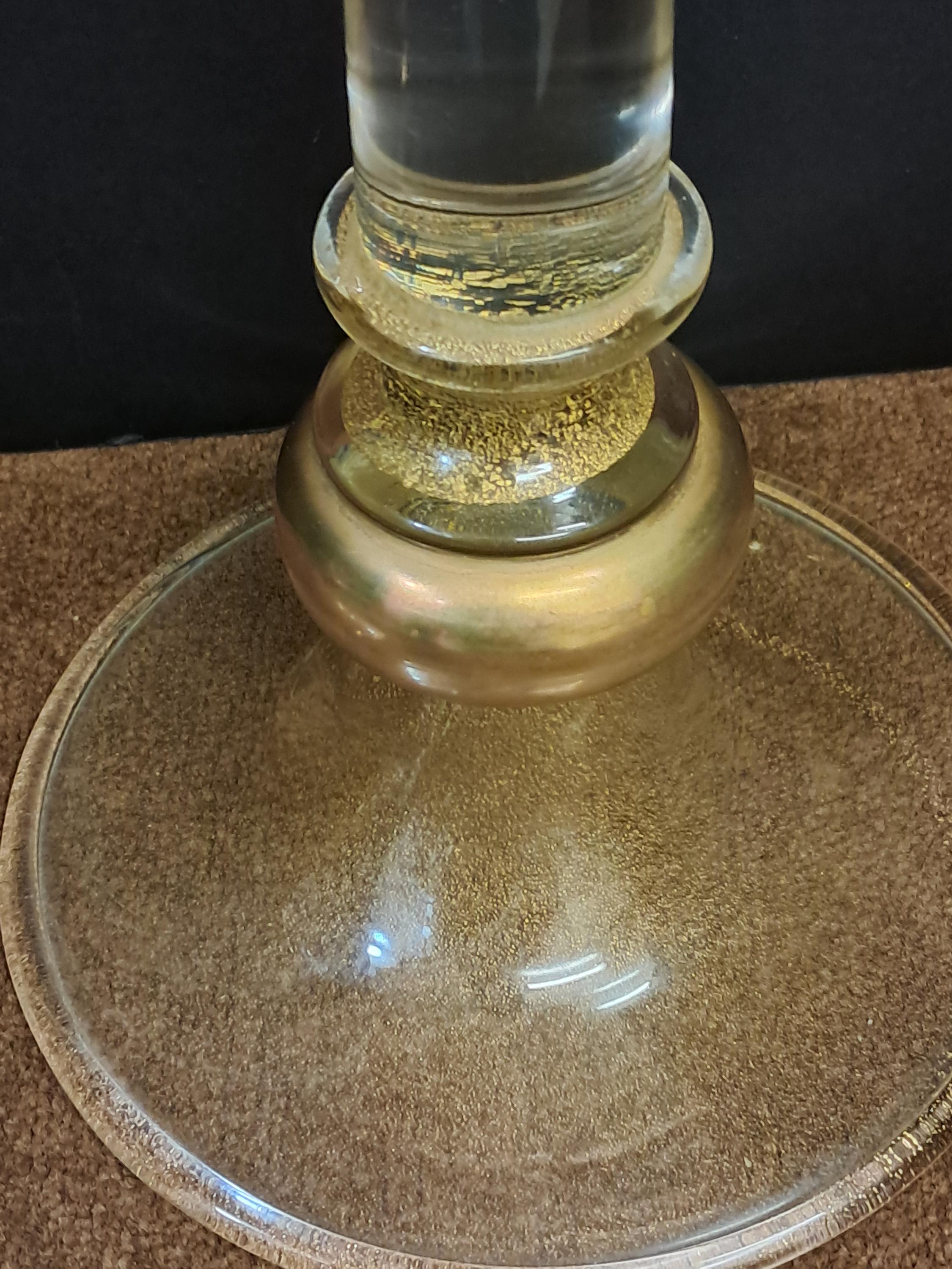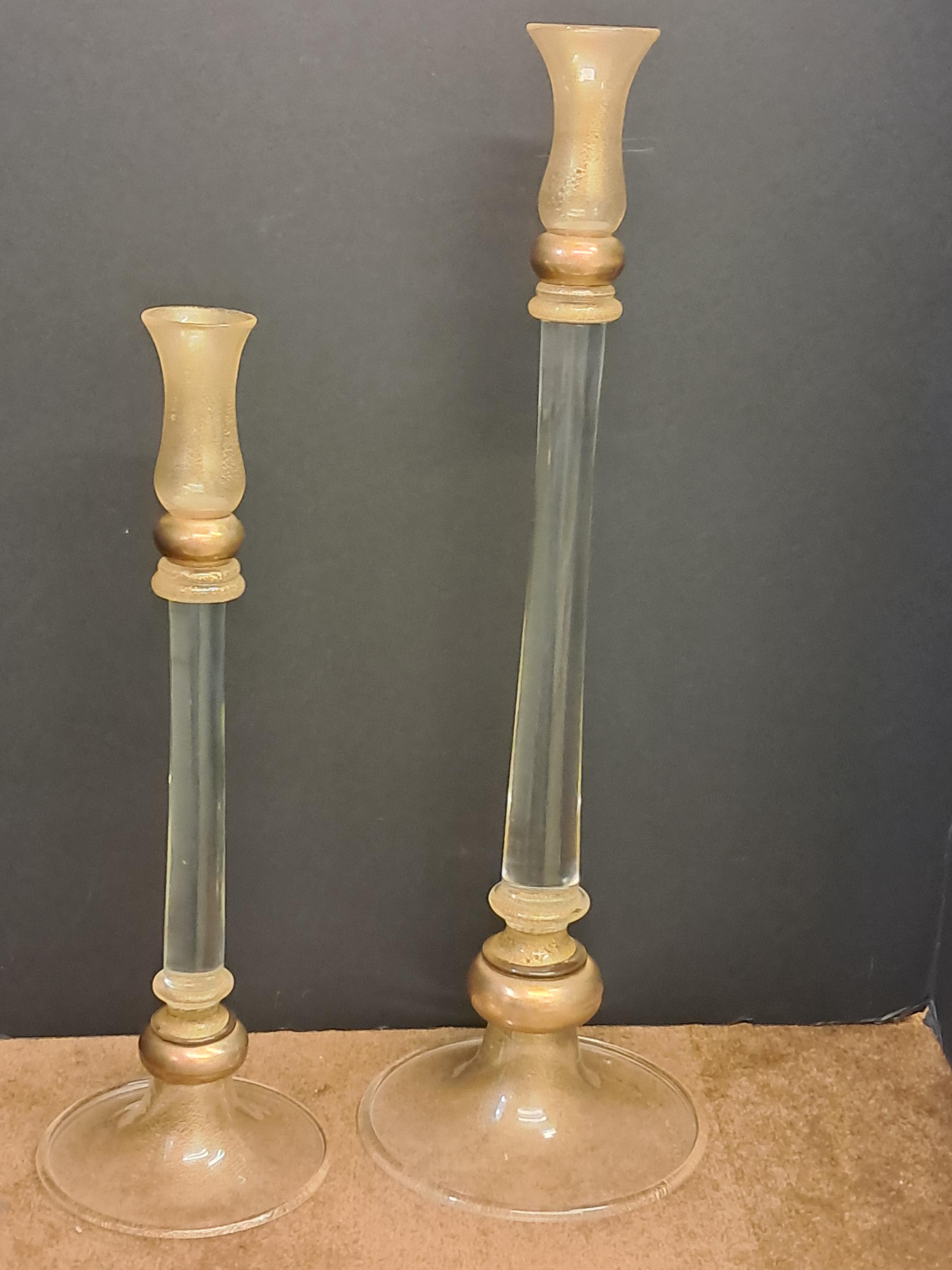 Vintage Seguso Vetri d'Arte Murano Glass Candle Holders Candlesticks with gold flecks and Silver Inclusions - a set of 2 - from a North N.J. Estate.