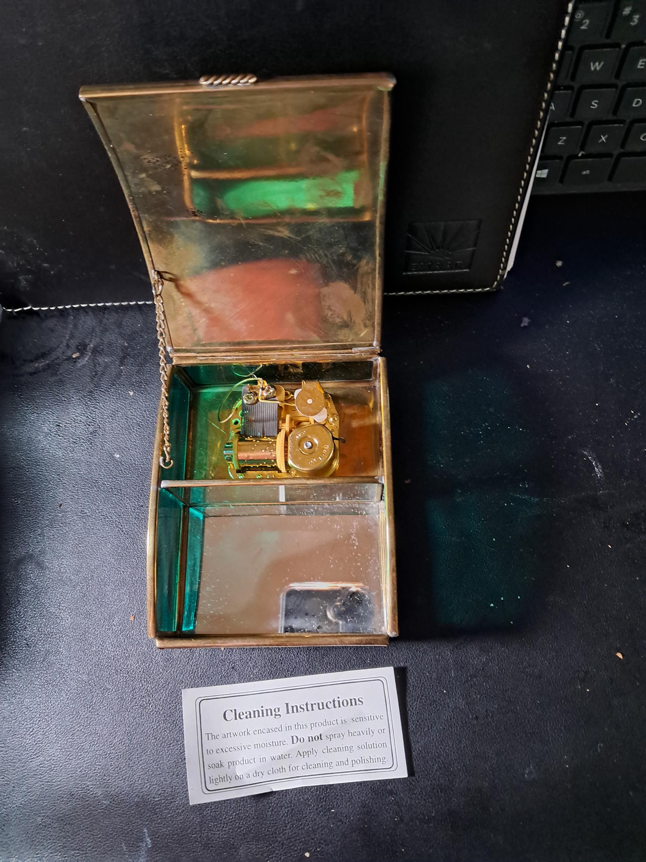 Vintage Enesco Stained Glass Musical Jewelry Box